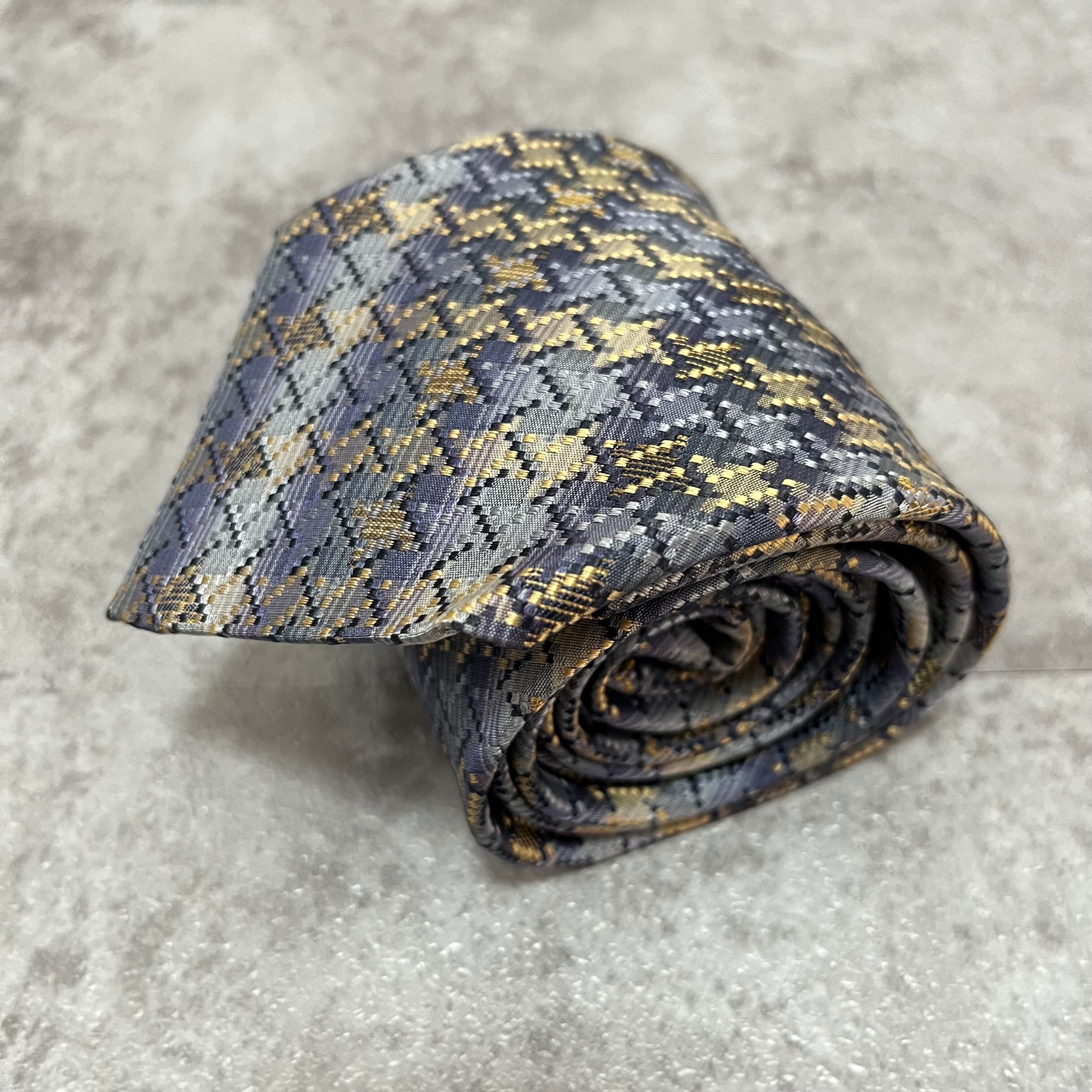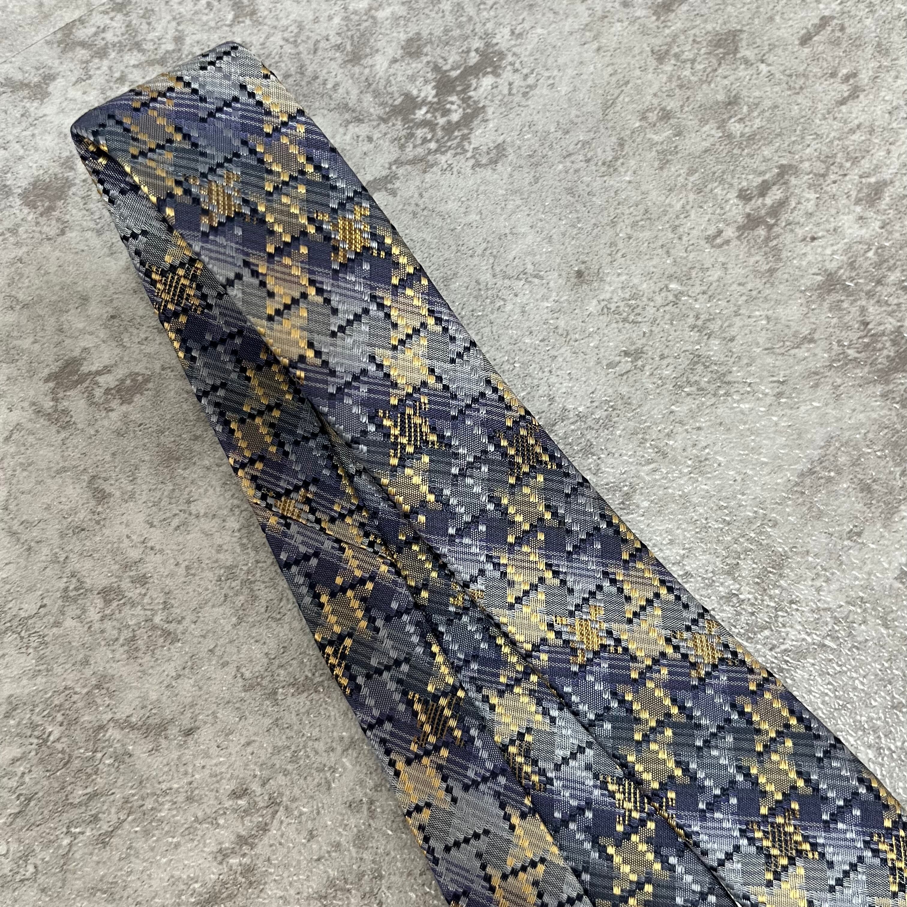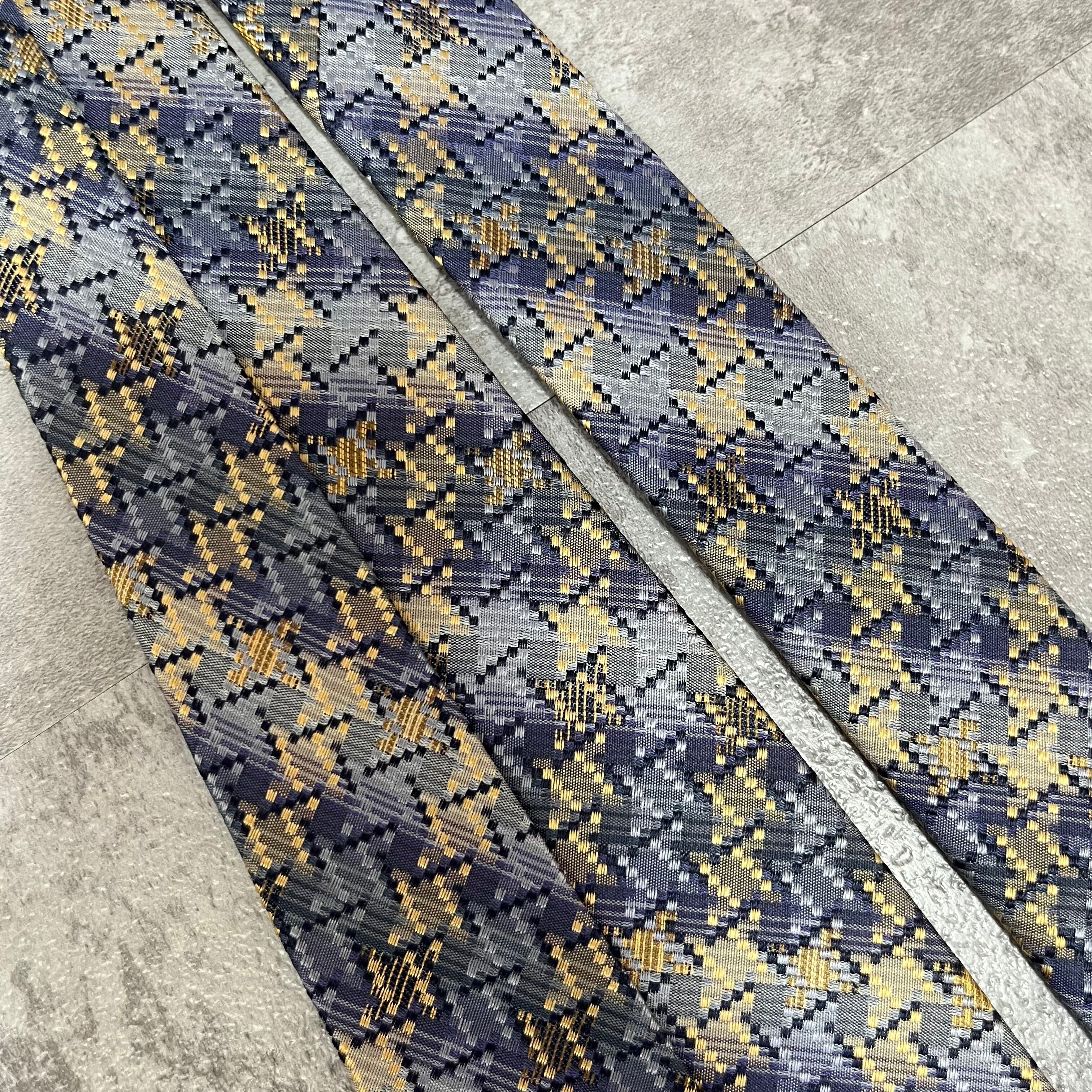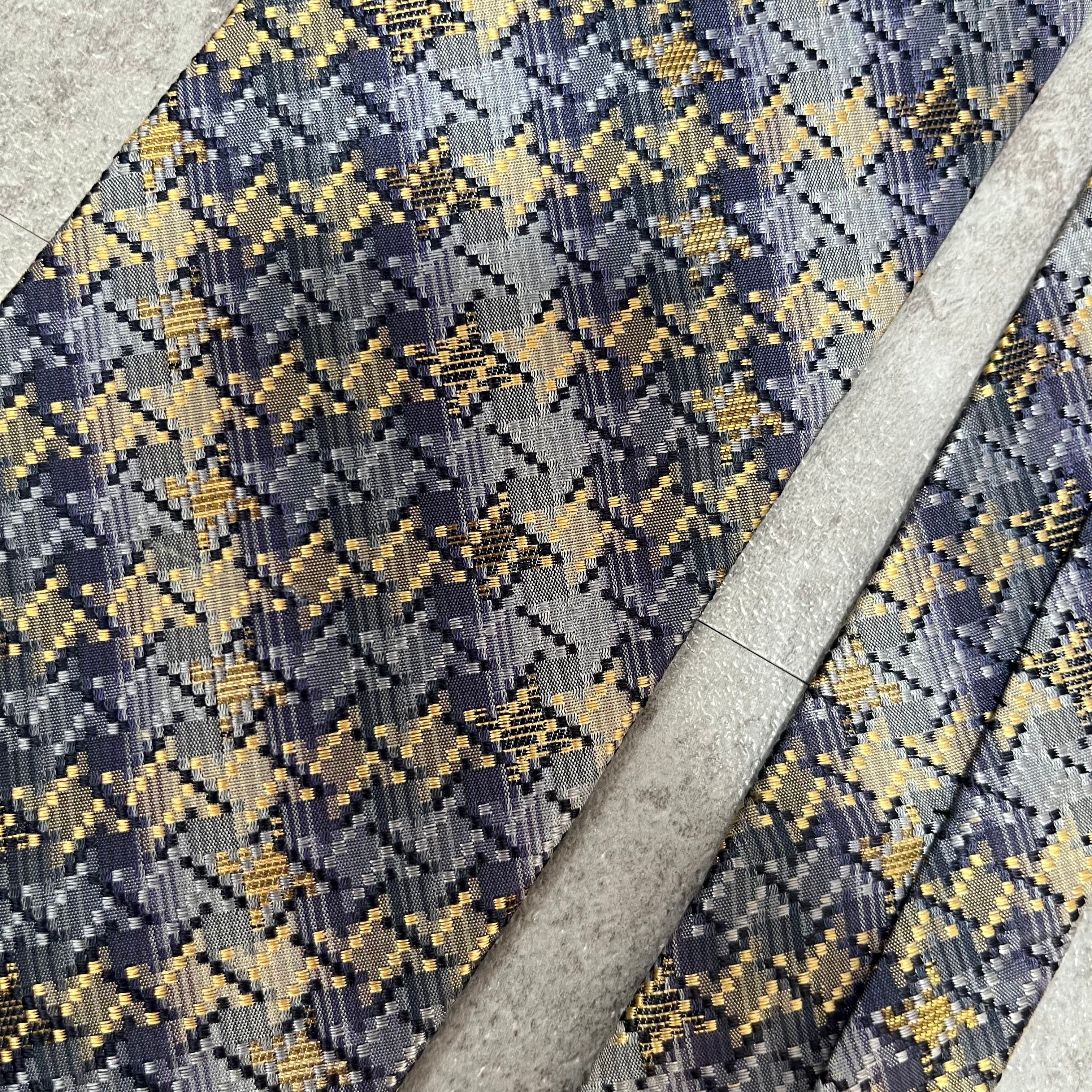 【ISSEY MIYAKE】チェック柄ネクタイ バイカラー 光沢 ブルー 特殊ストライプ 肉厚