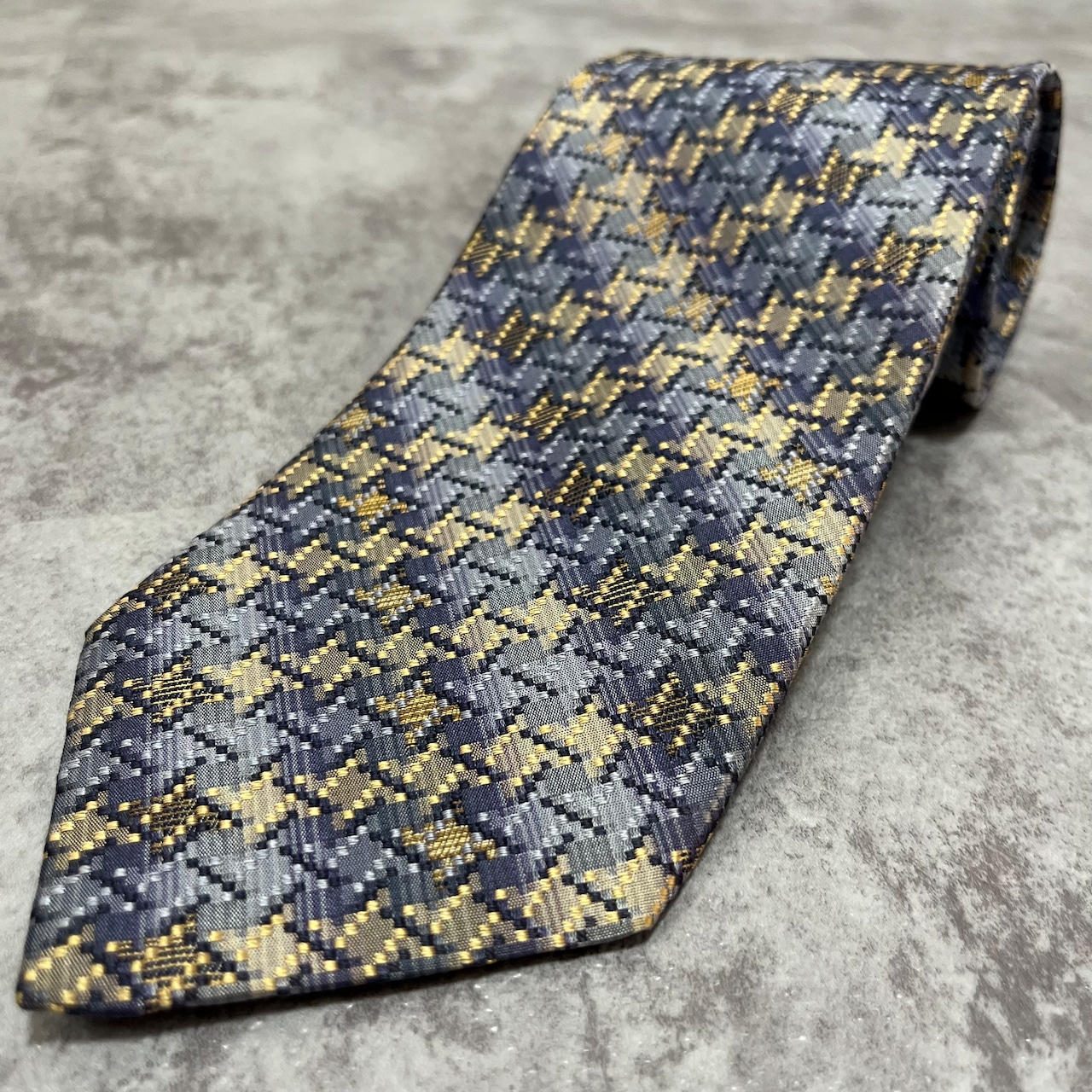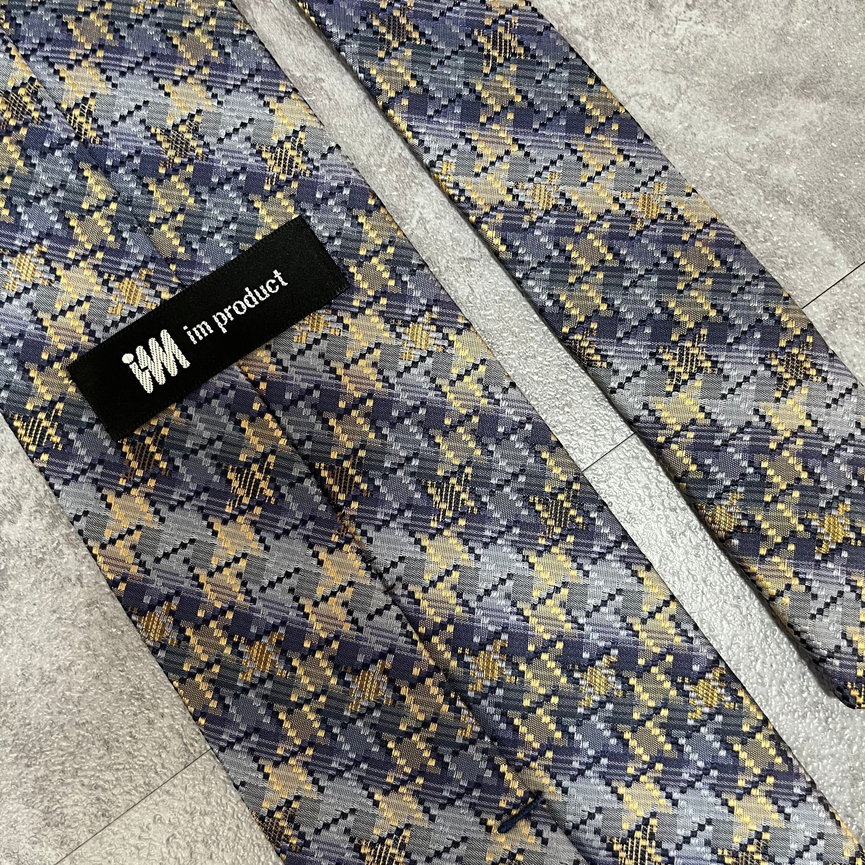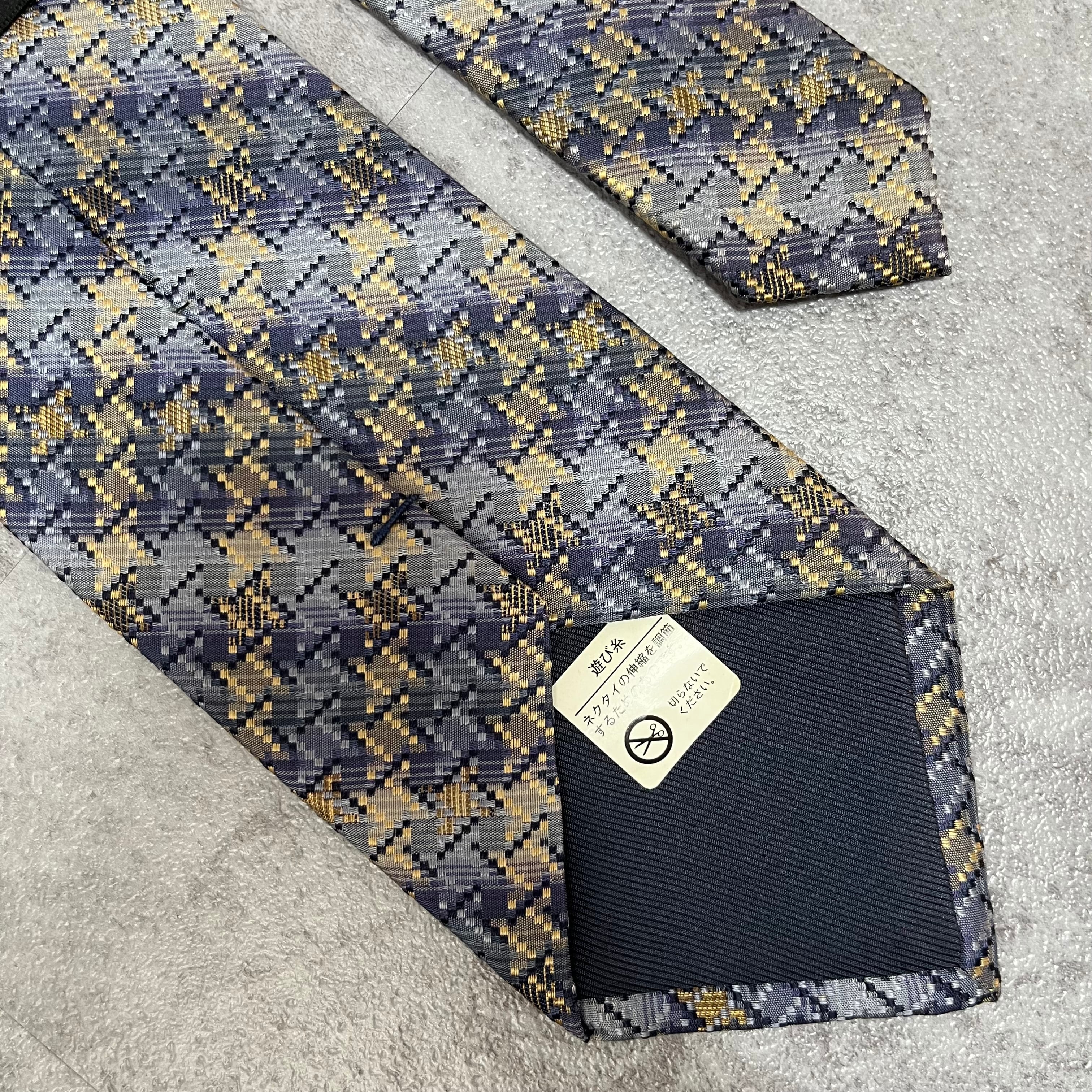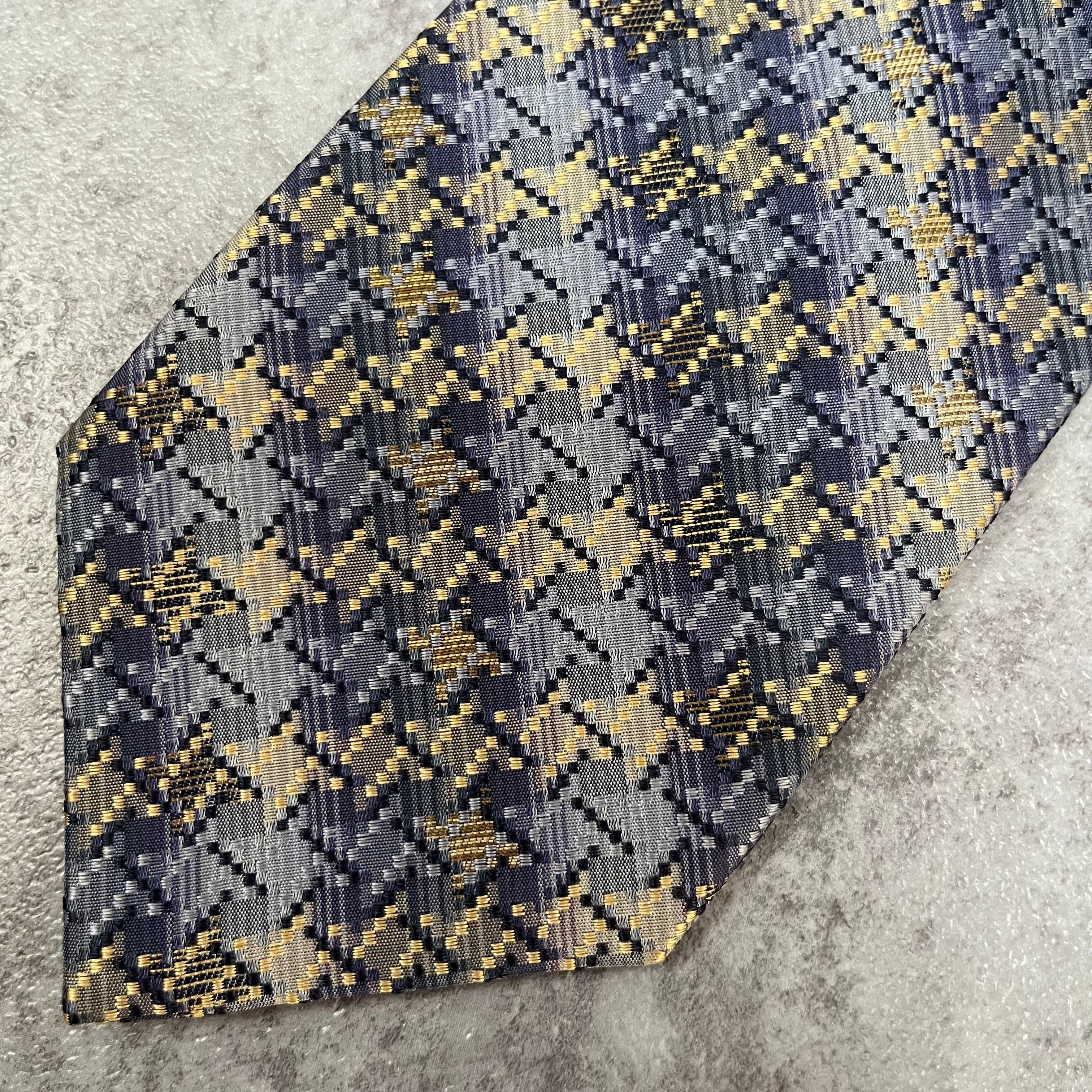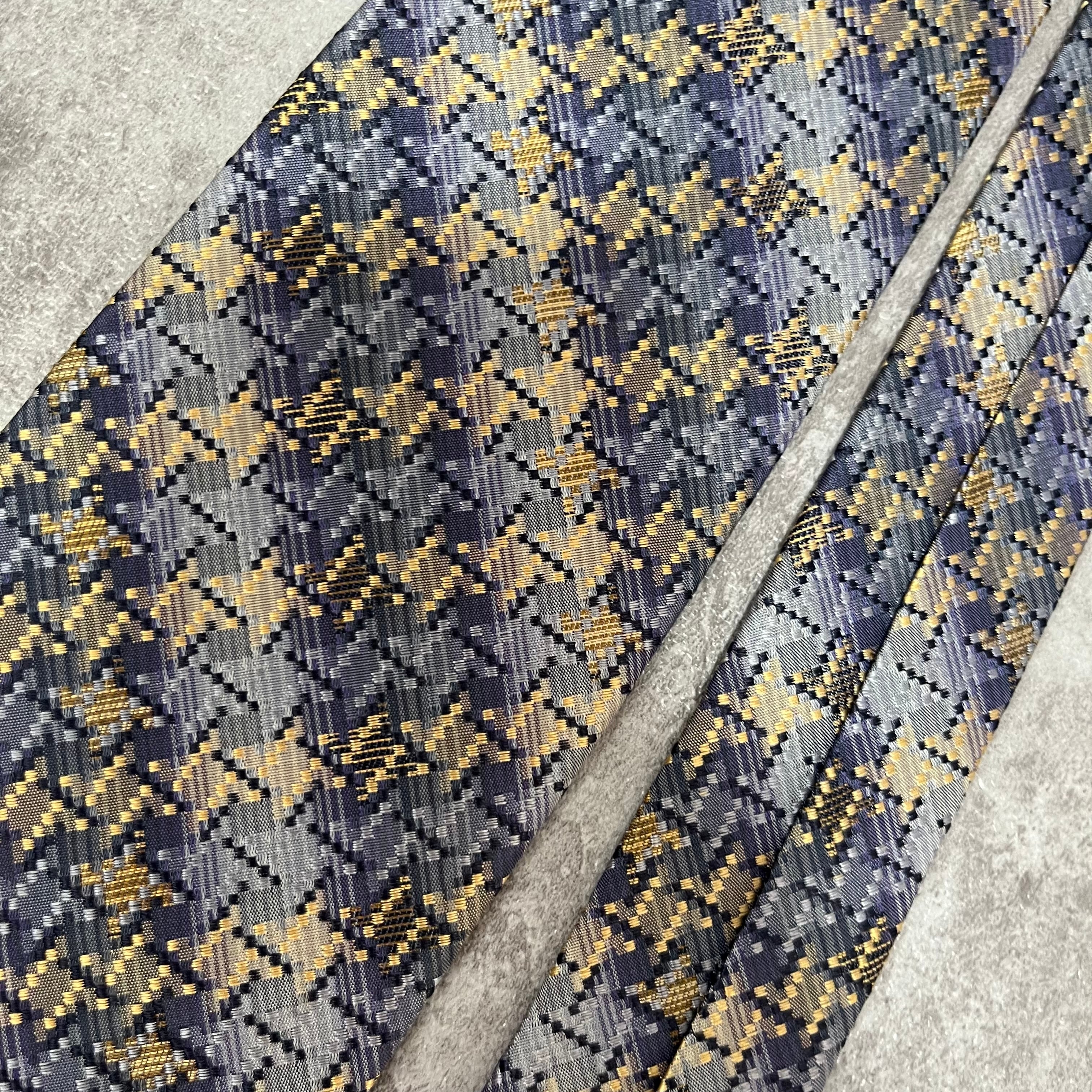 【ISSEY MIYAKE】チェック柄ネクタイ バイカラー 光沢 ブルー 特殊ストライプ 肉厚