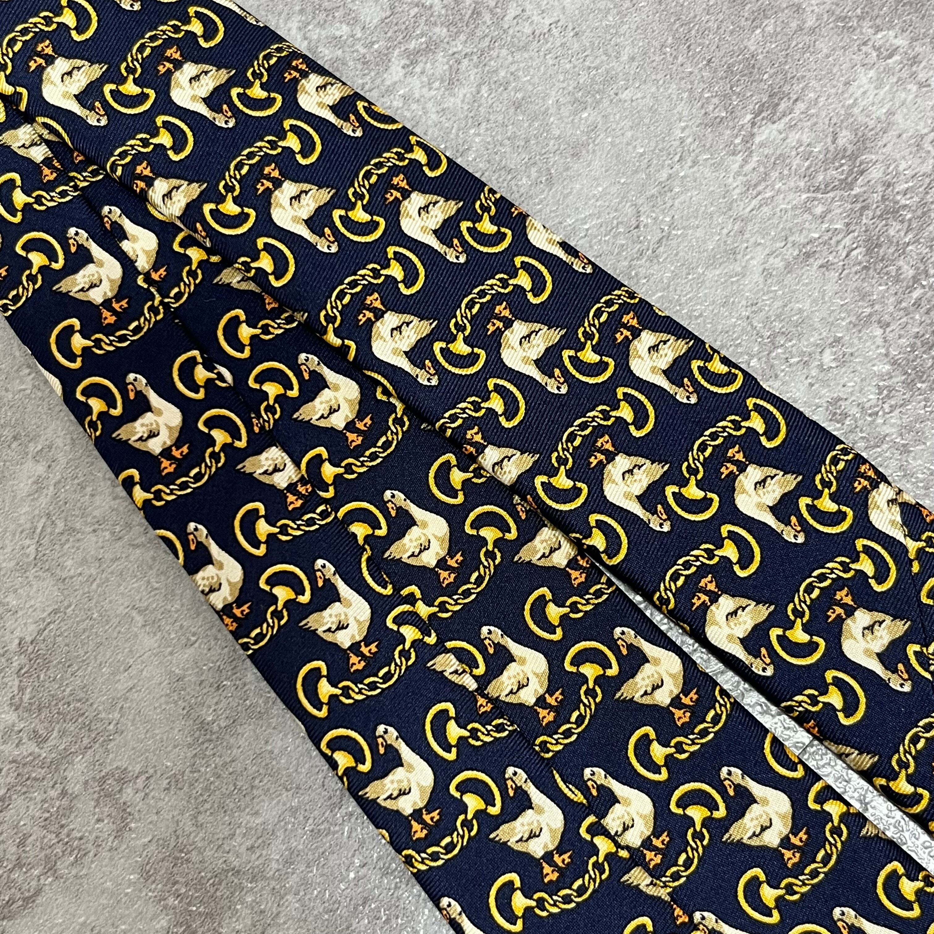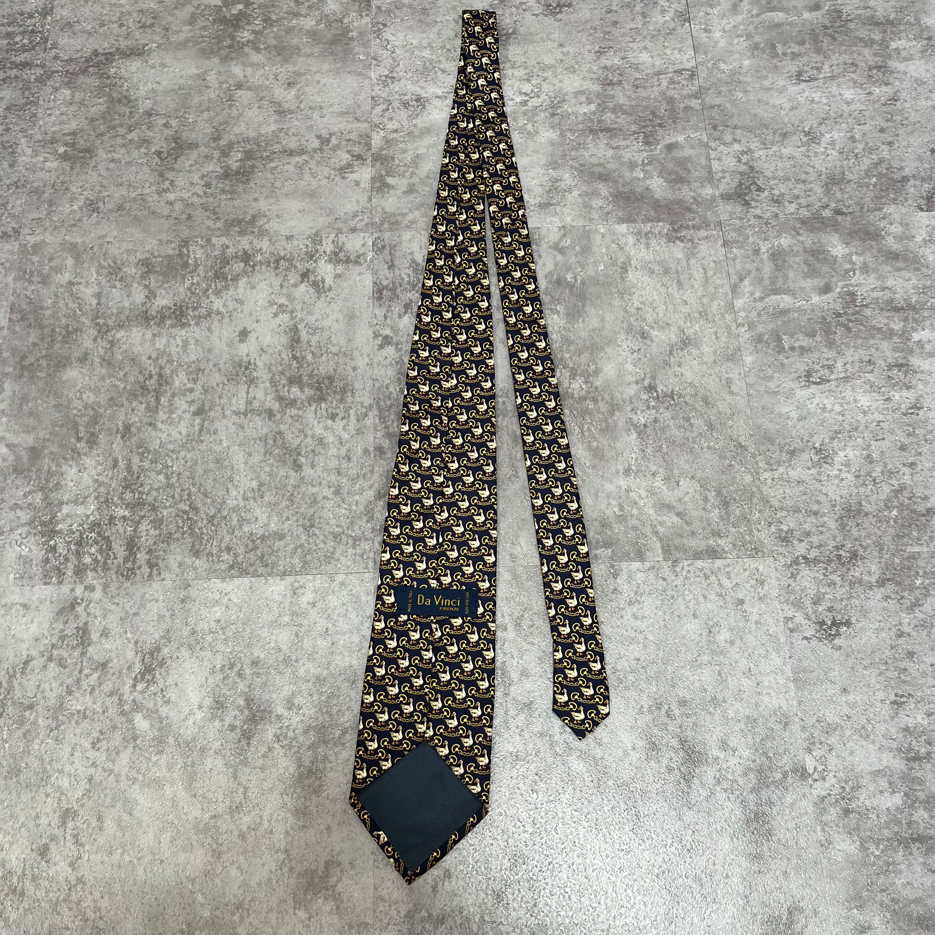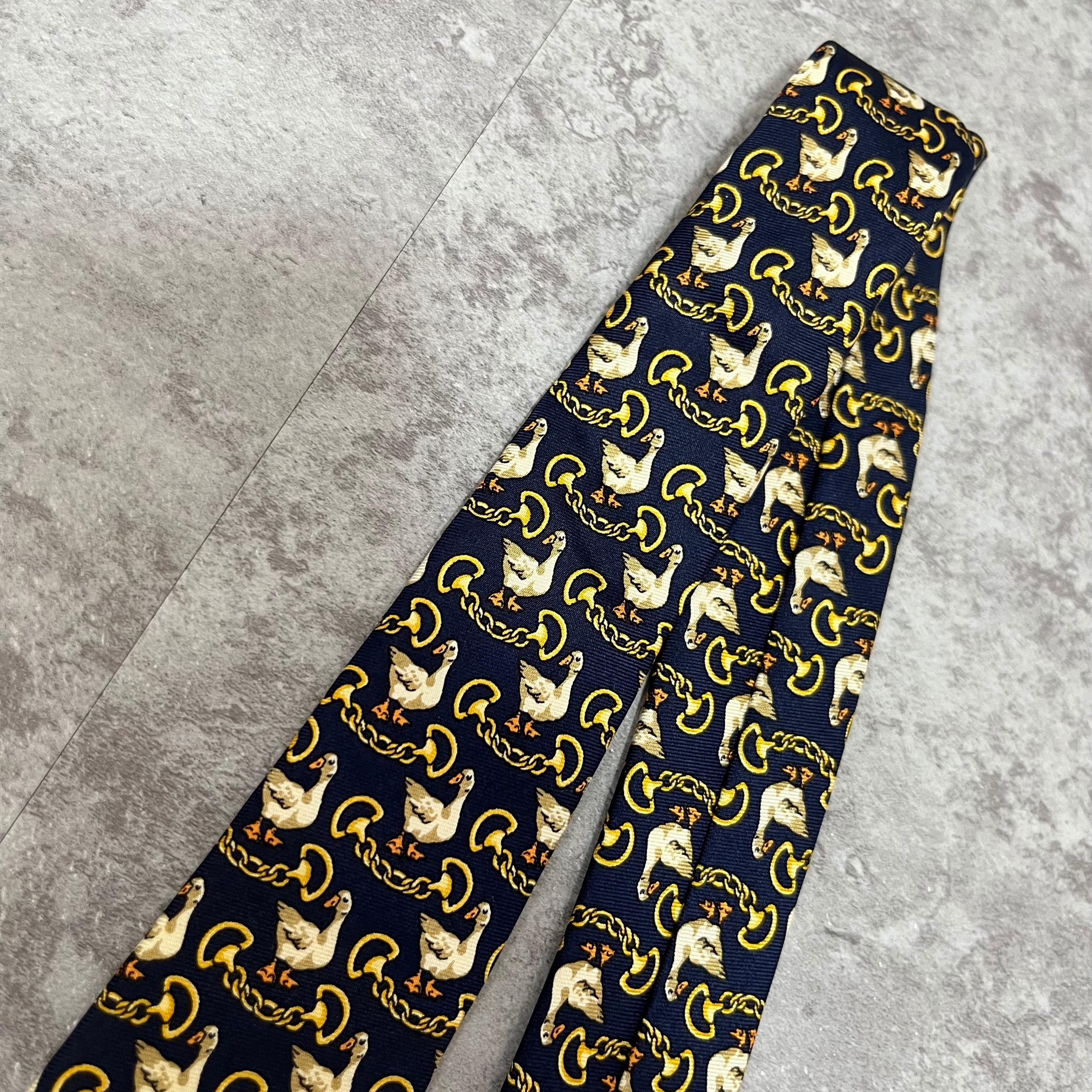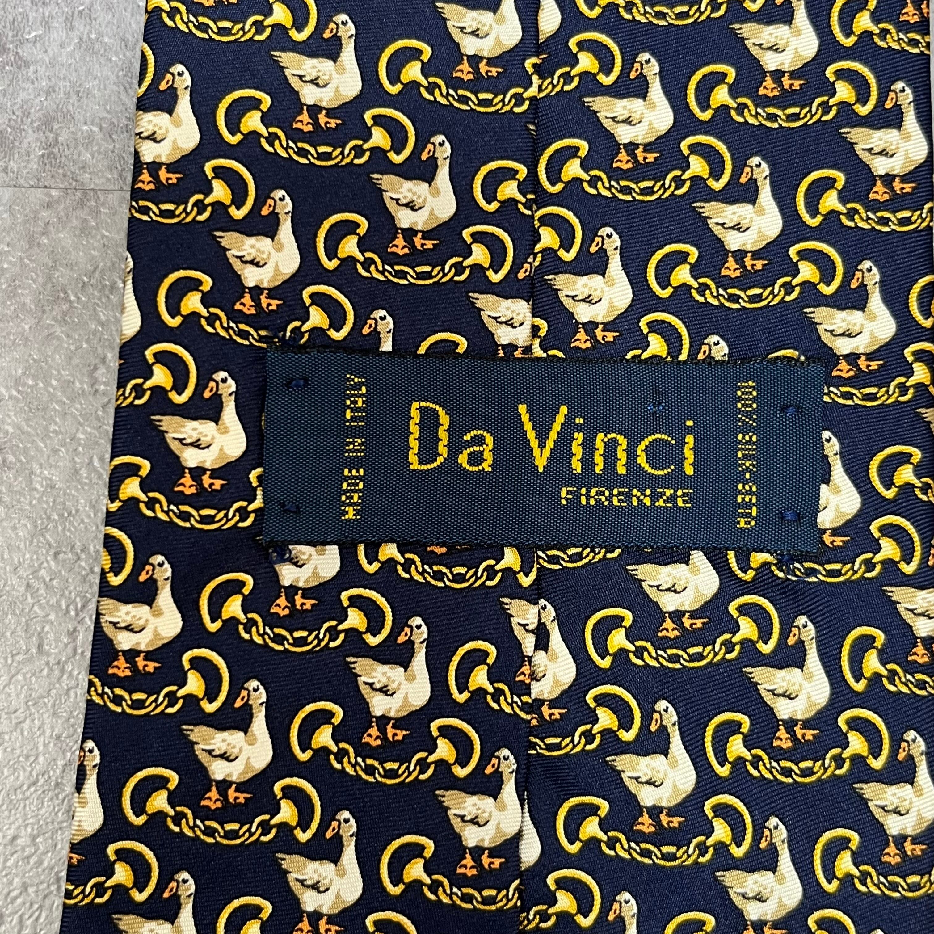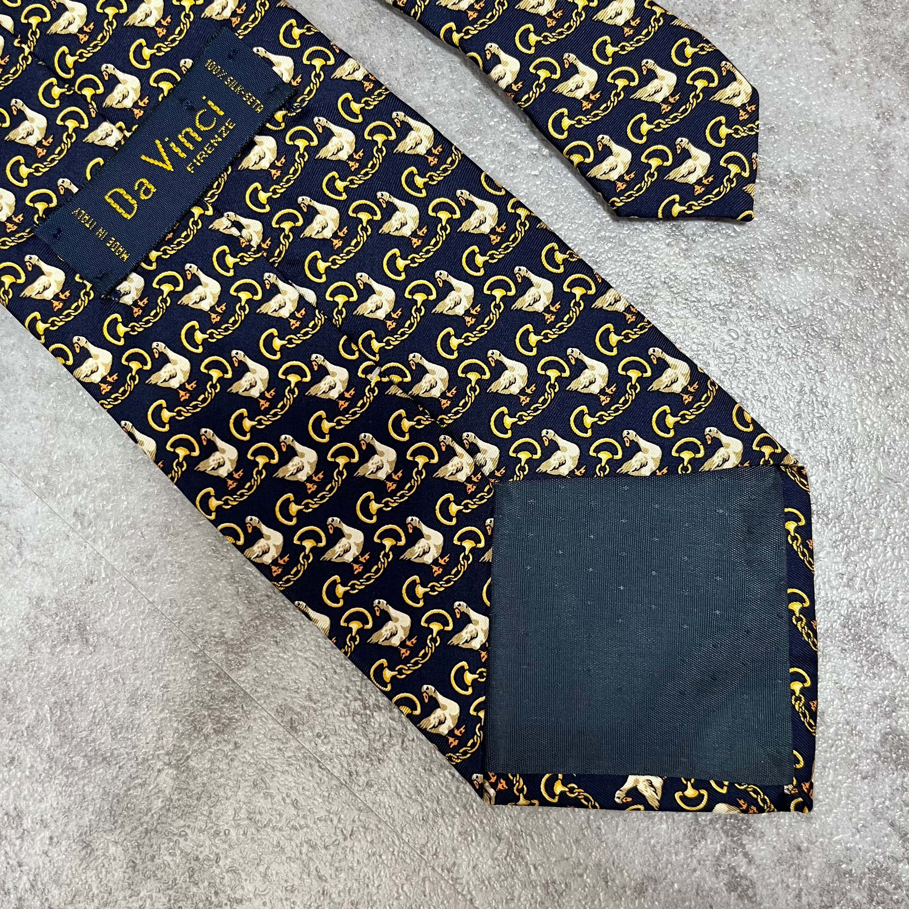 【アニマル柄】アヒル柄ネクタイ ネイビー チェーン柄 Da Vinci FIRENZE