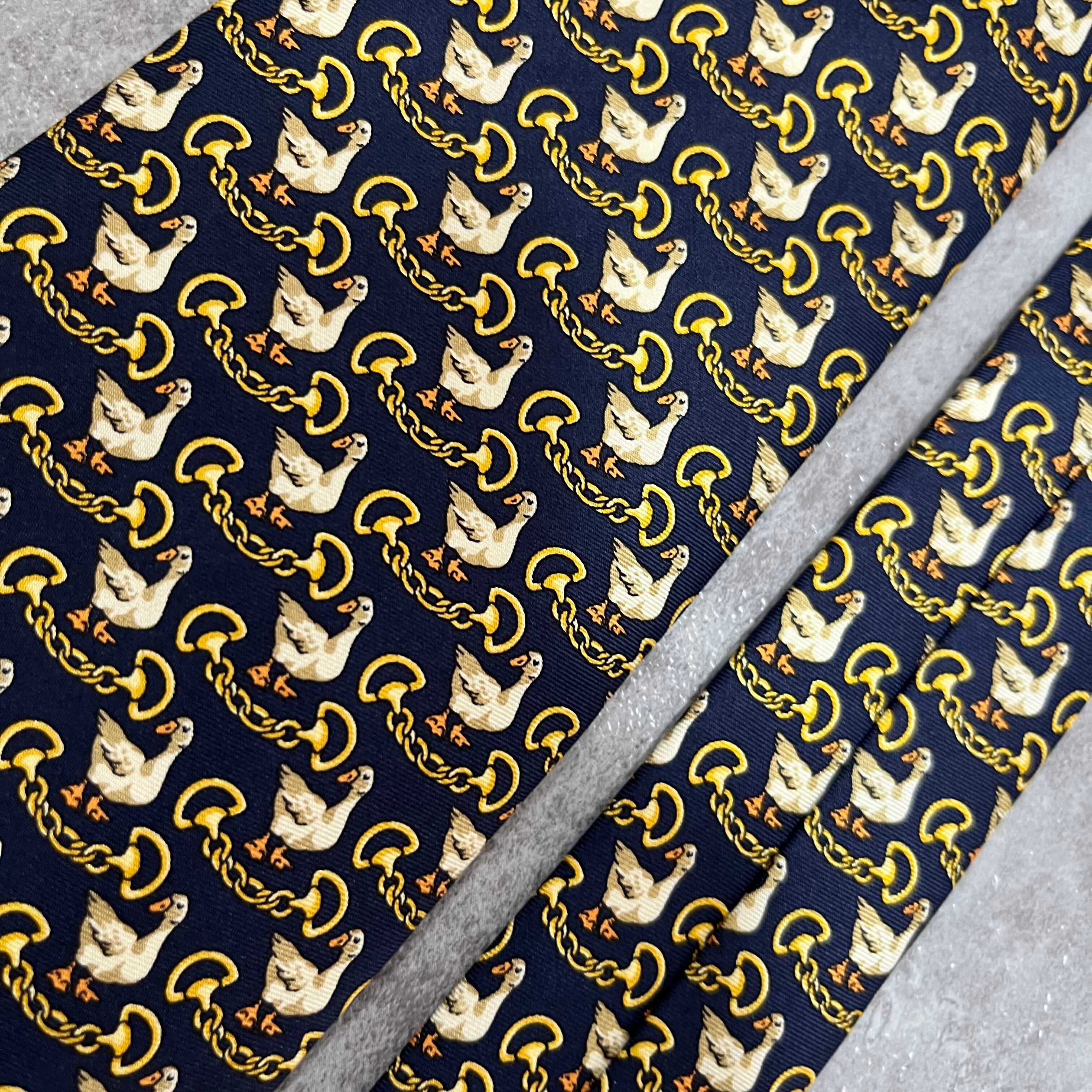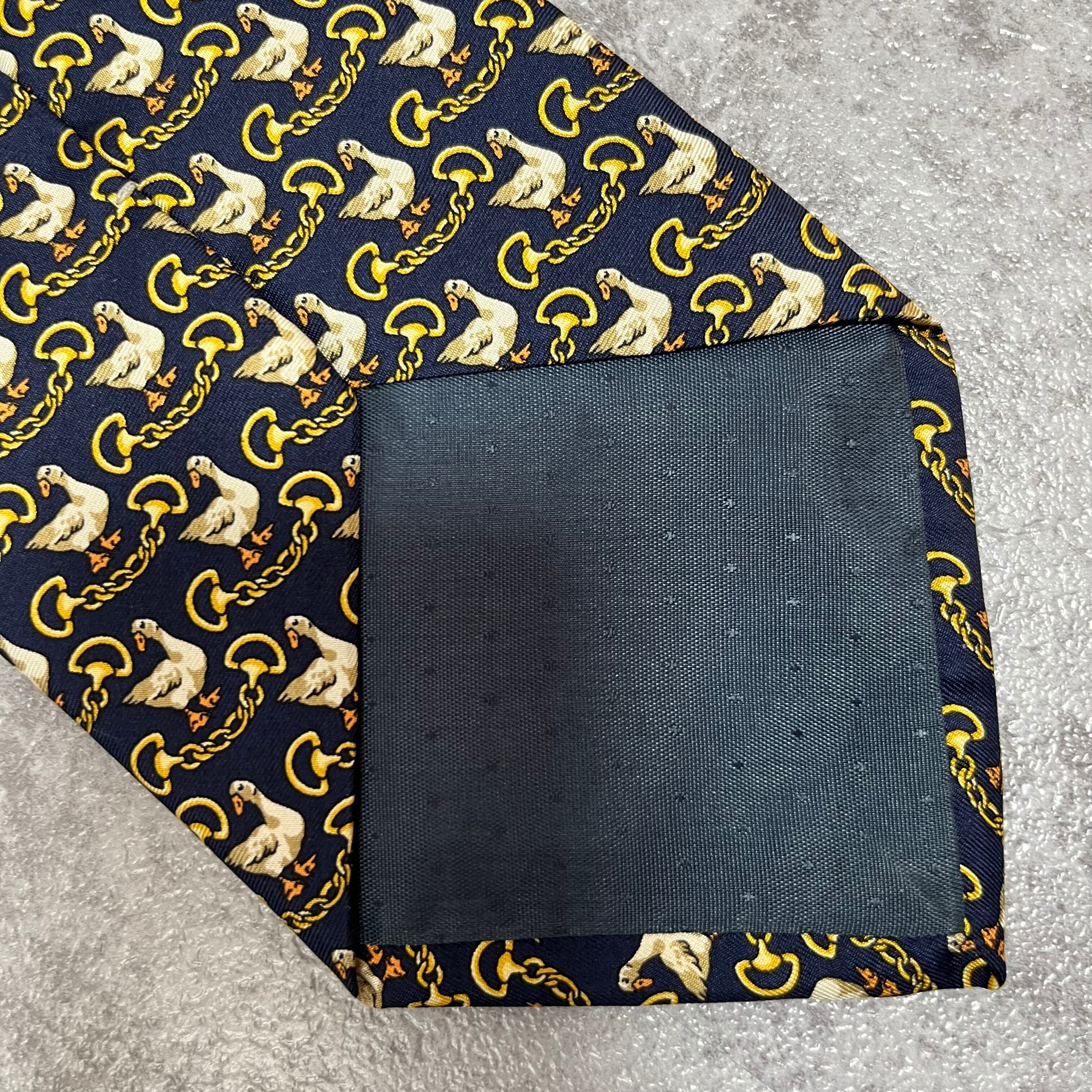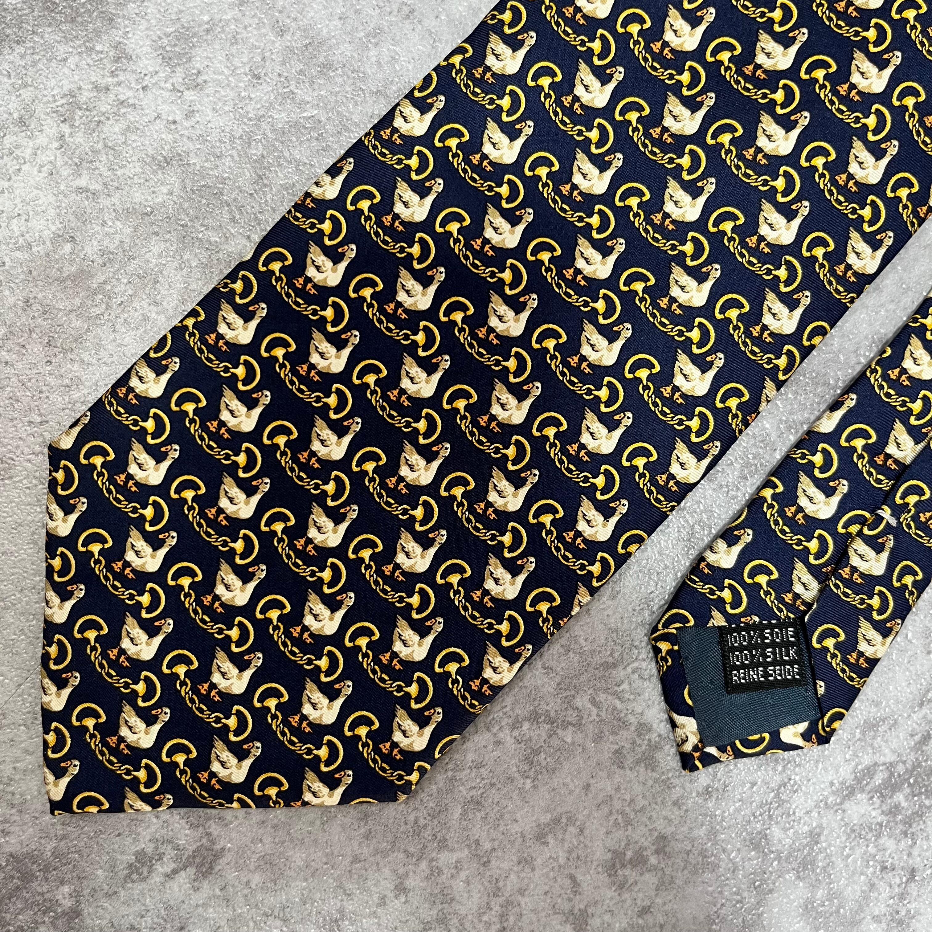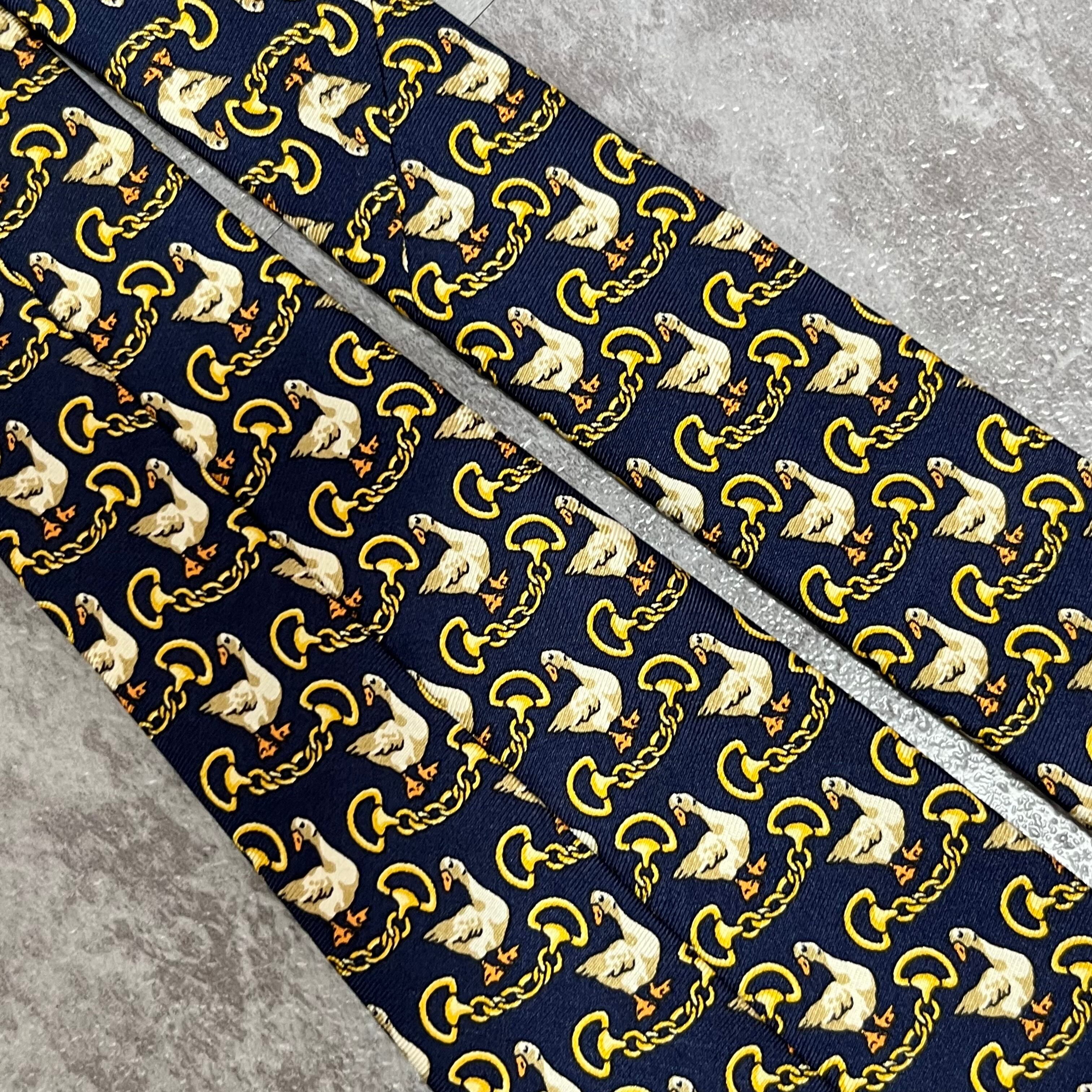 【アニマル柄】アヒル柄ネクタイ ネイビー チェーン柄 Da Vinci FIRENZE