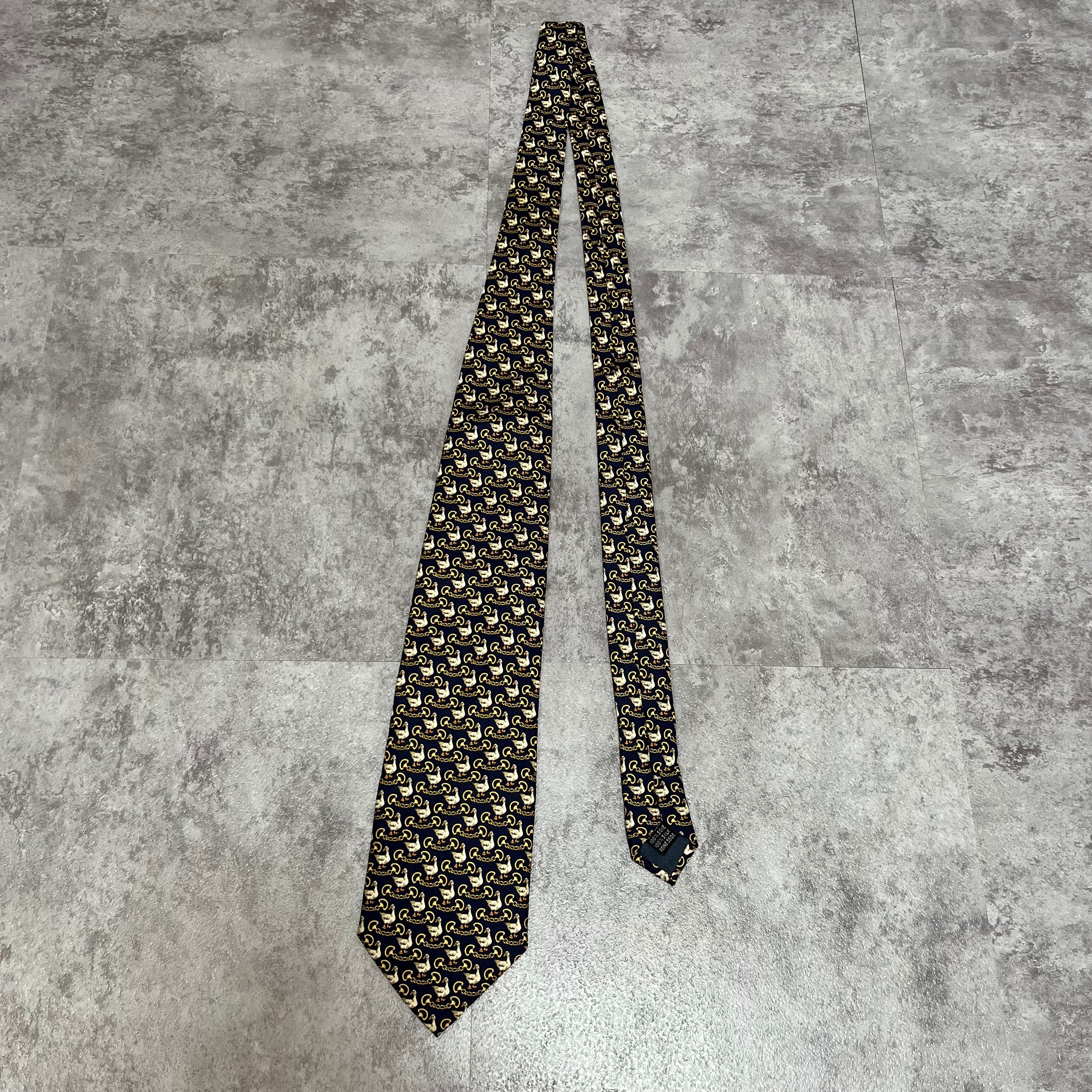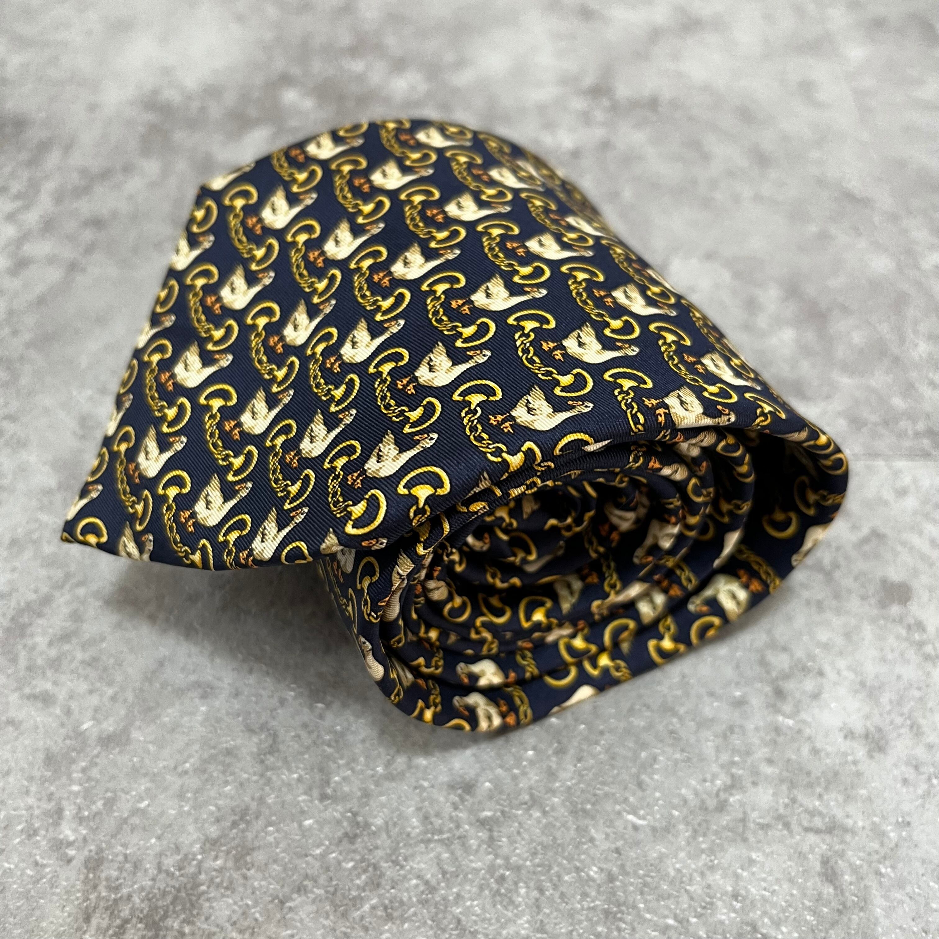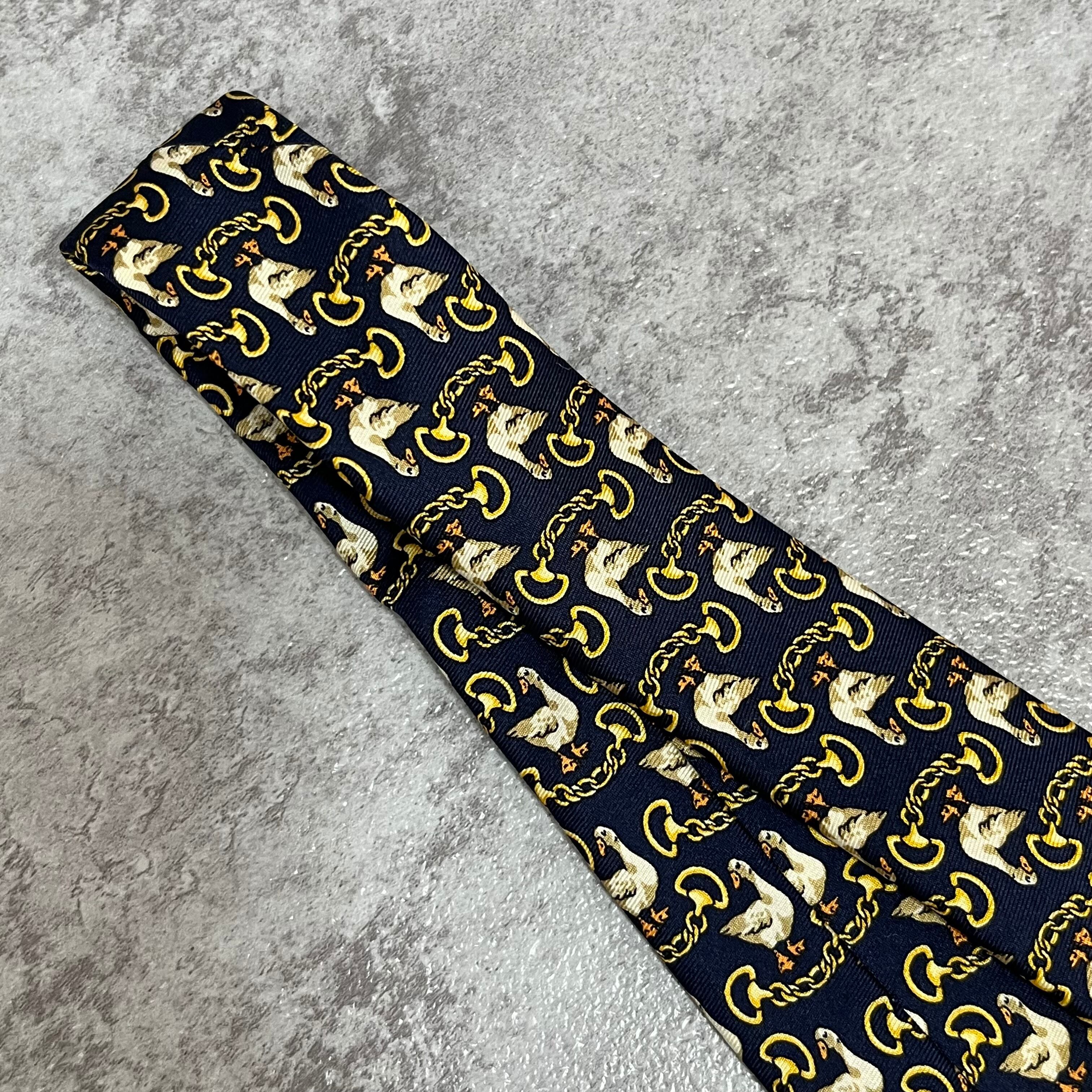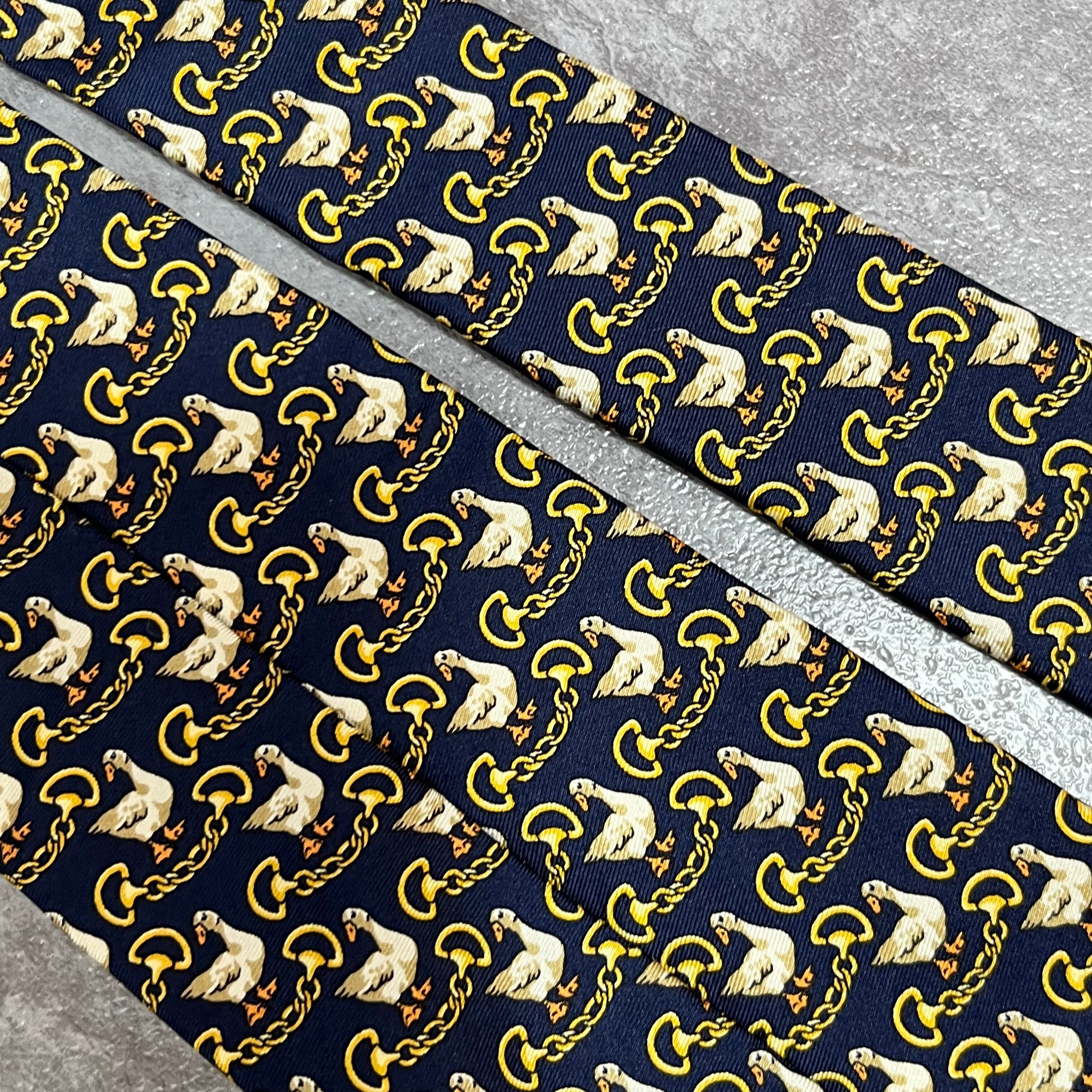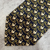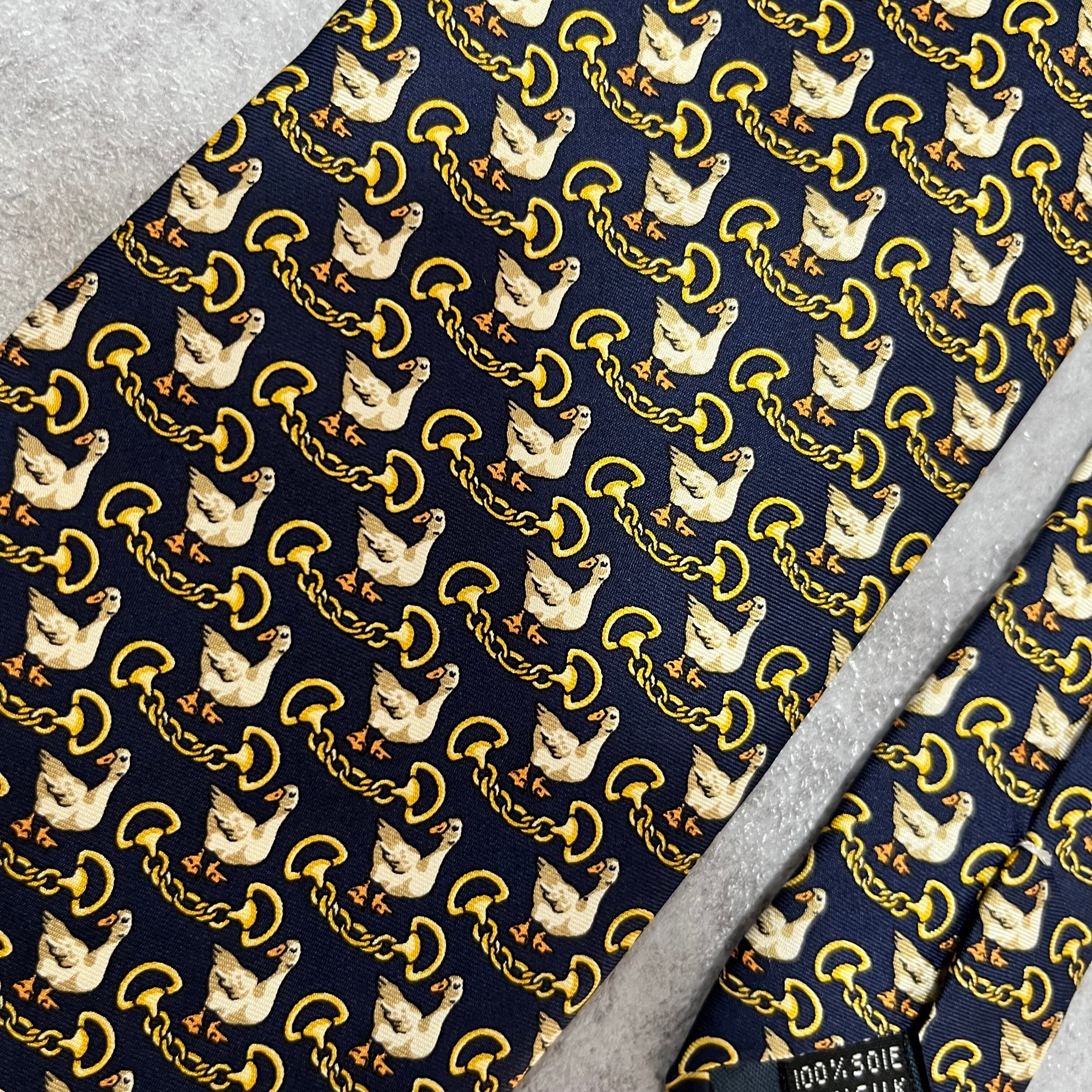 【アニマル柄】アヒル柄ネクタイ ネイビー チェーン柄 Da Vinci FIRENZE