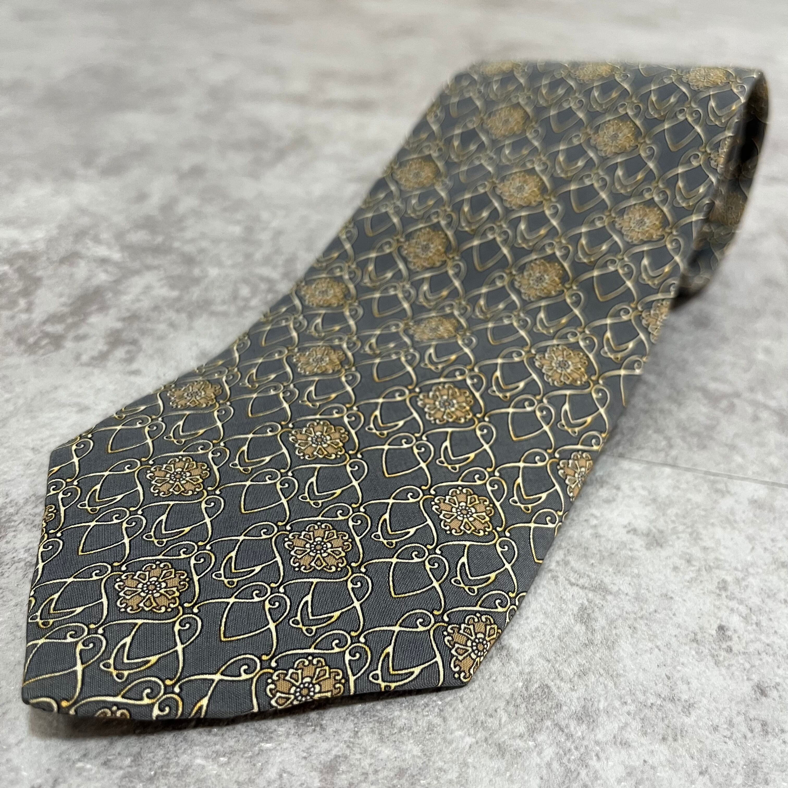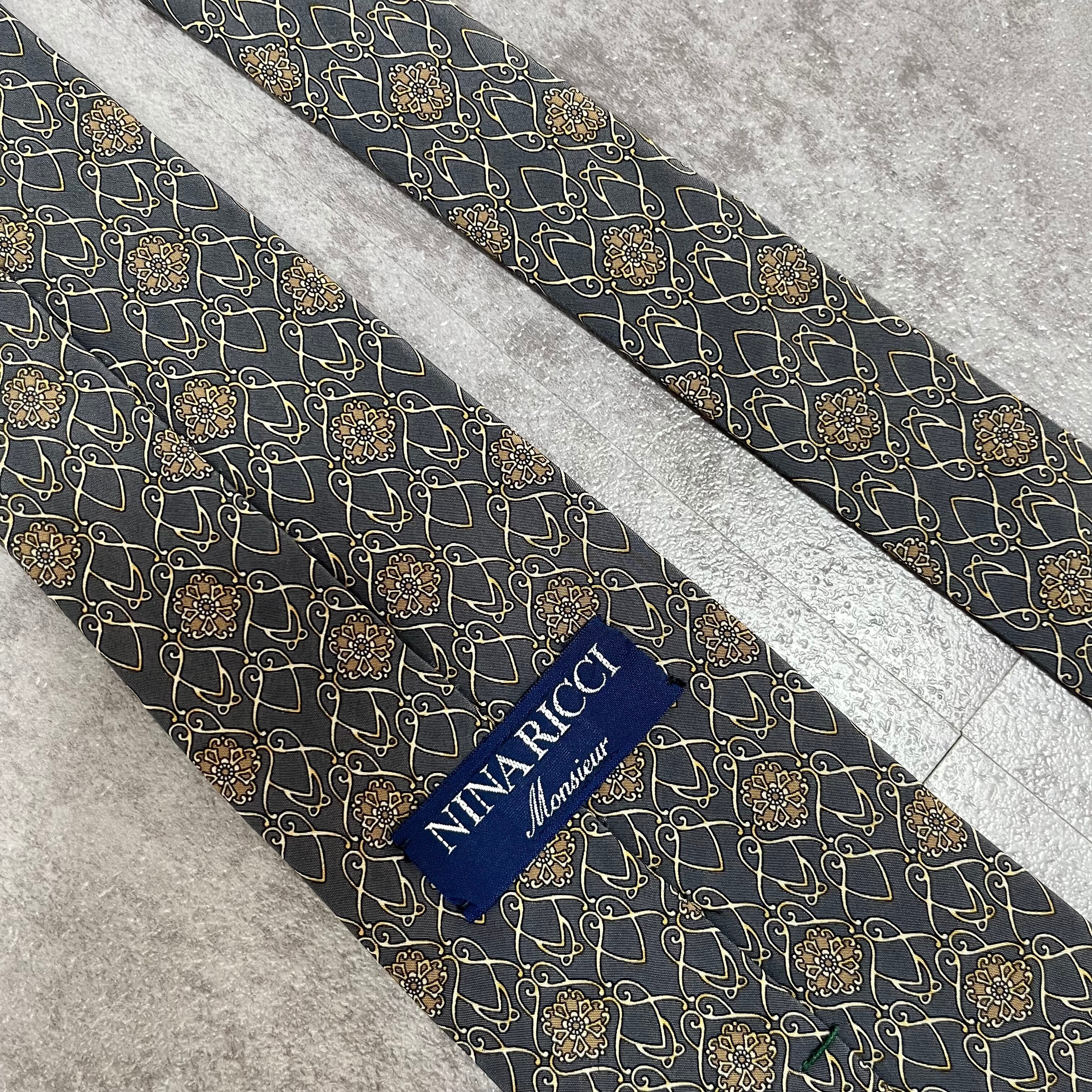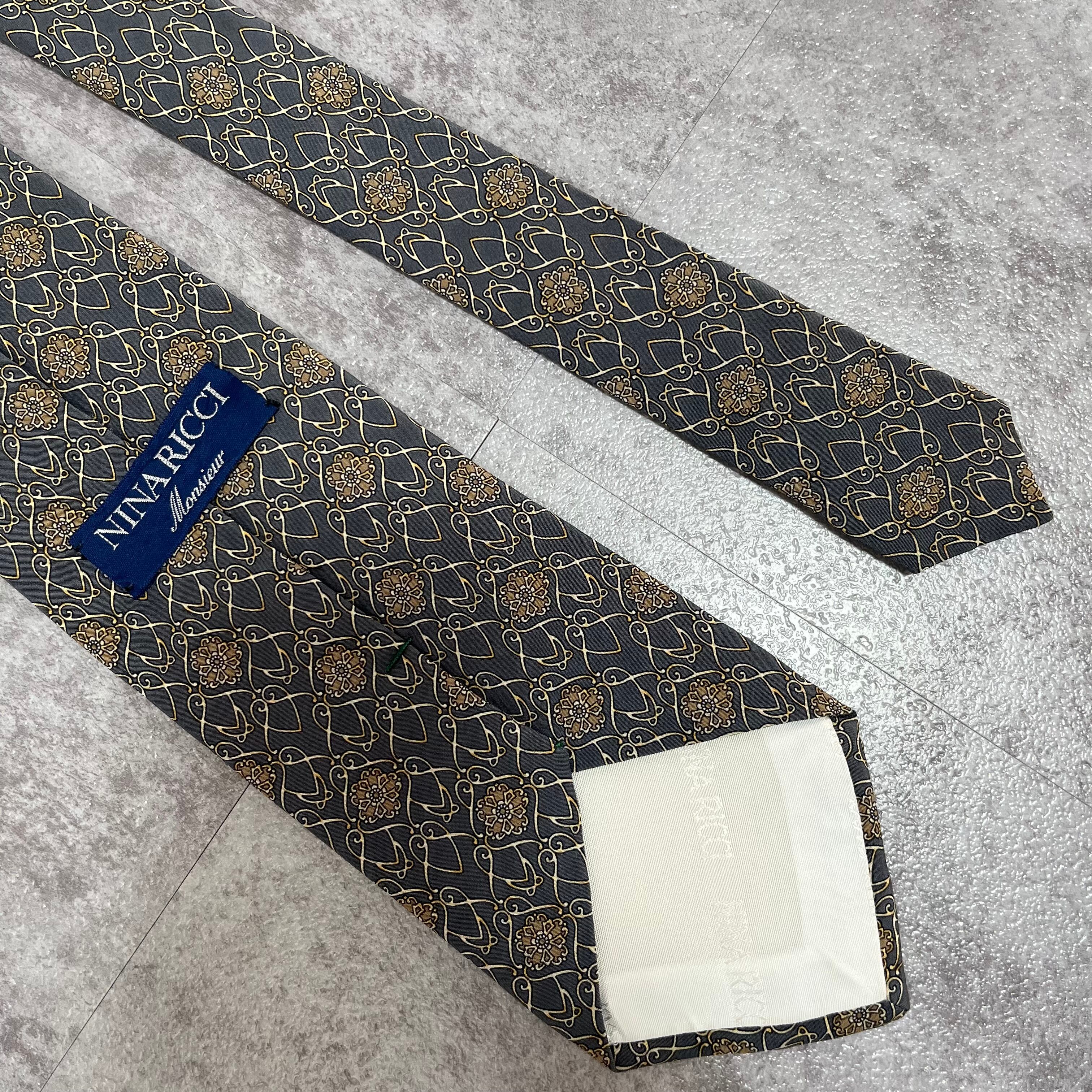 【NINA RICCI】花柄ネクタイ チェーン柄 グレー