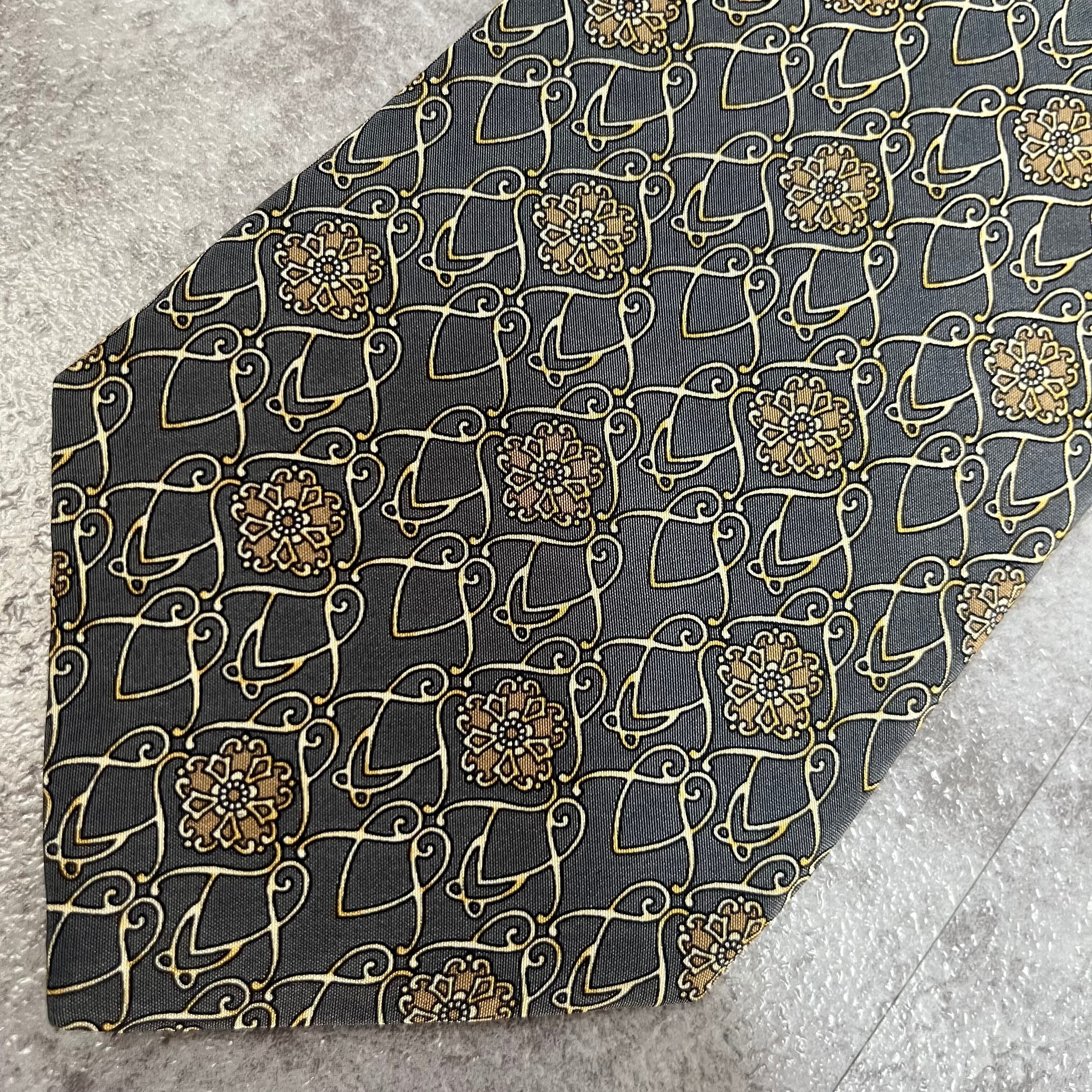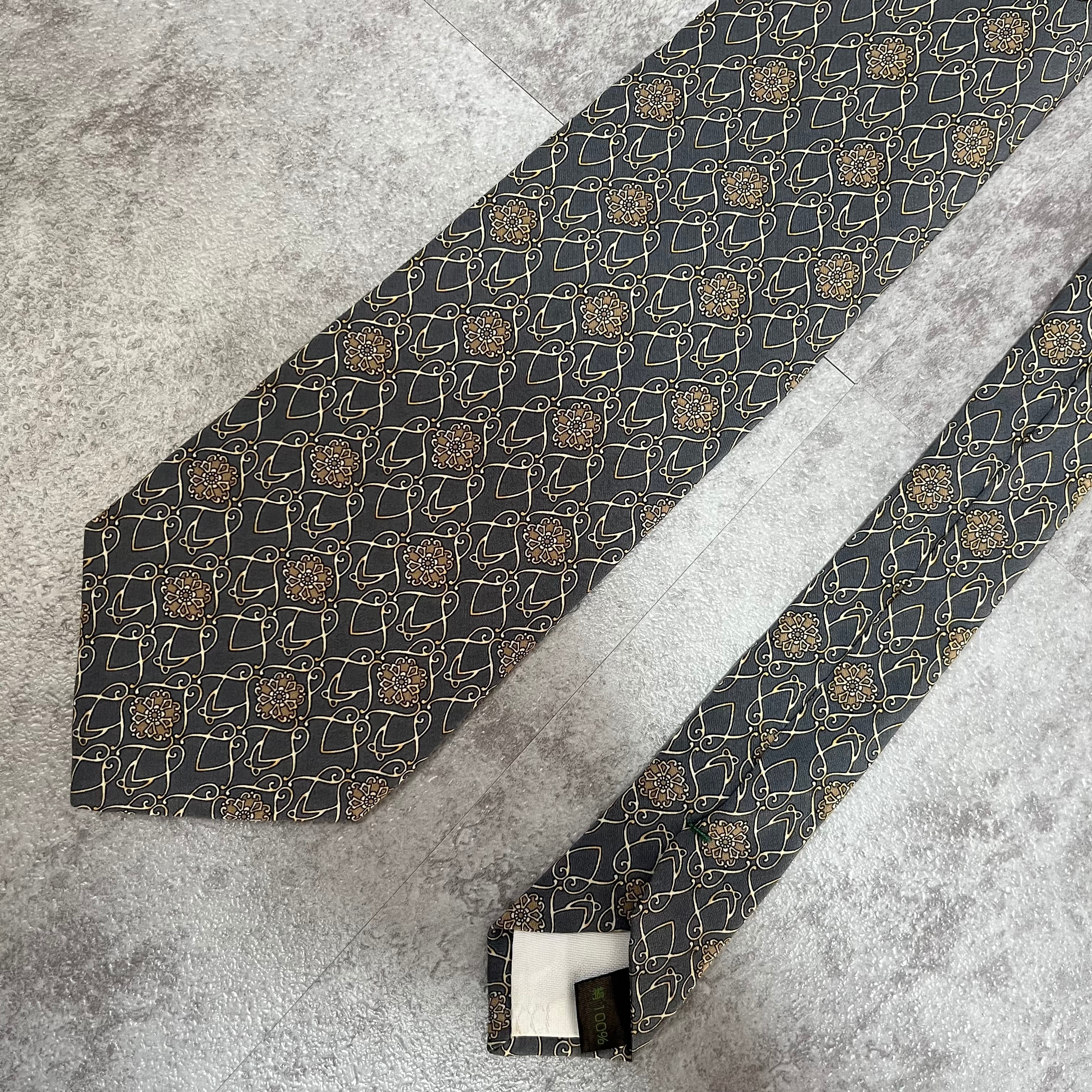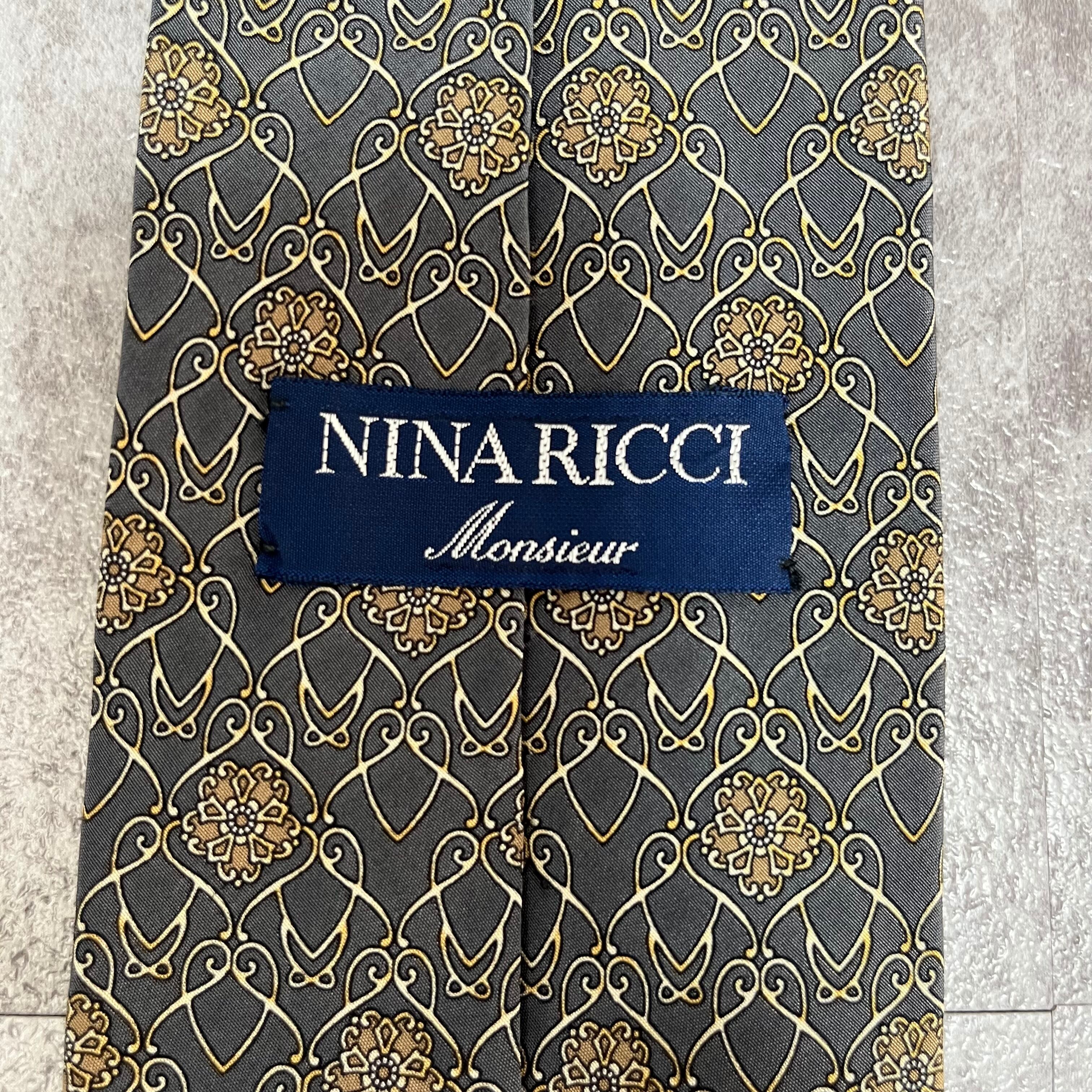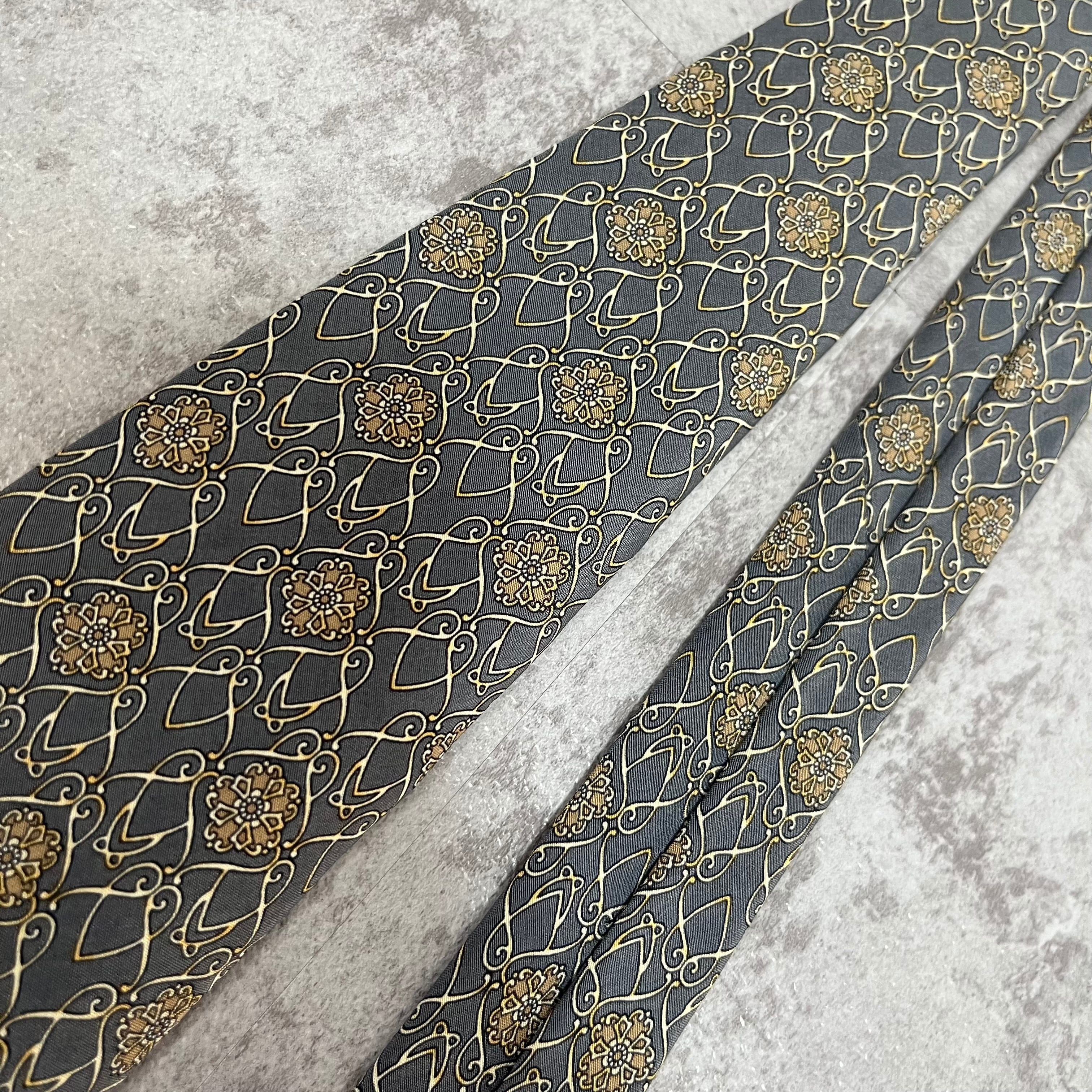 【NINA RICCI】花柄ネクタイ チェーン柄 グレー