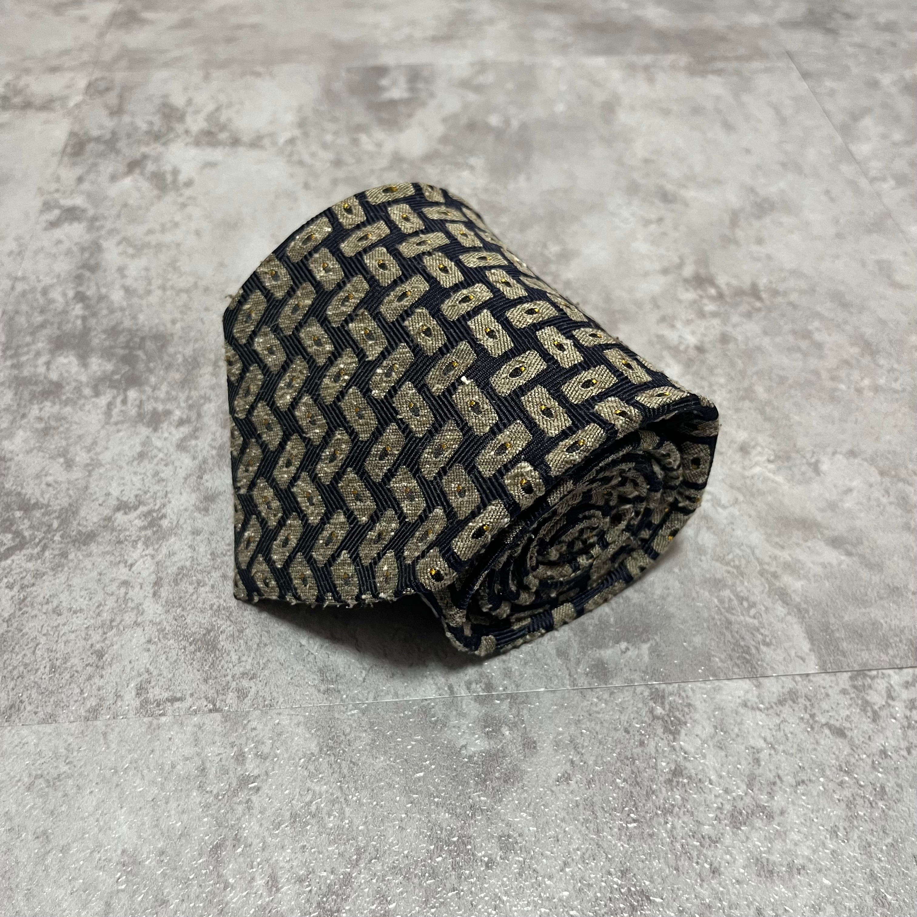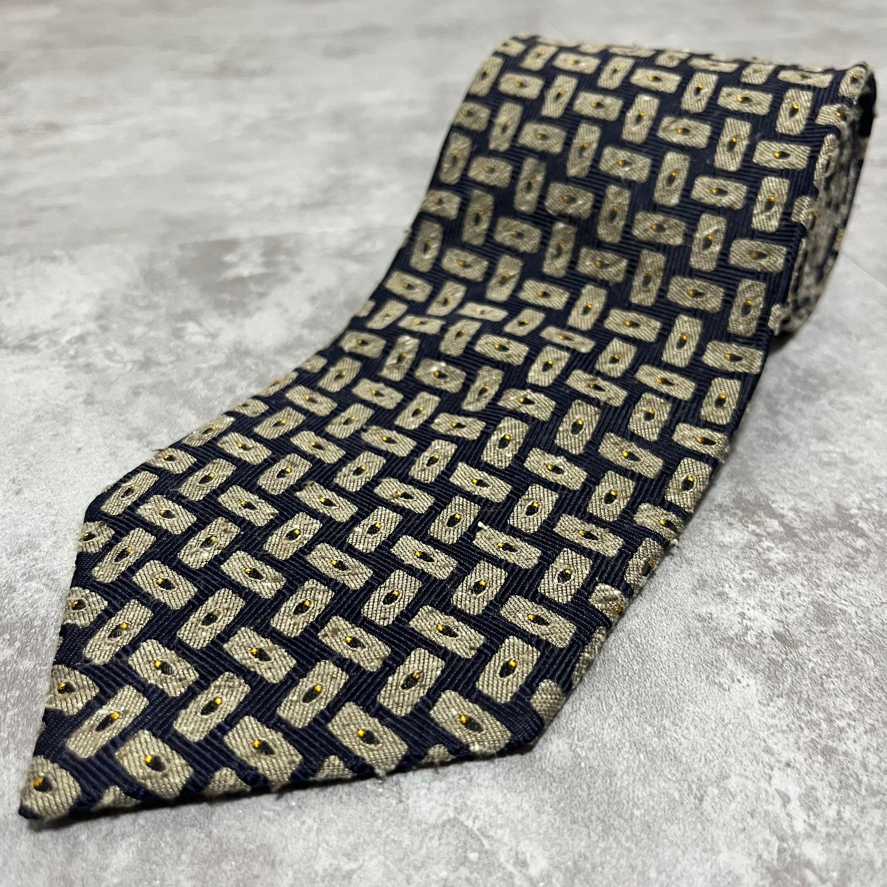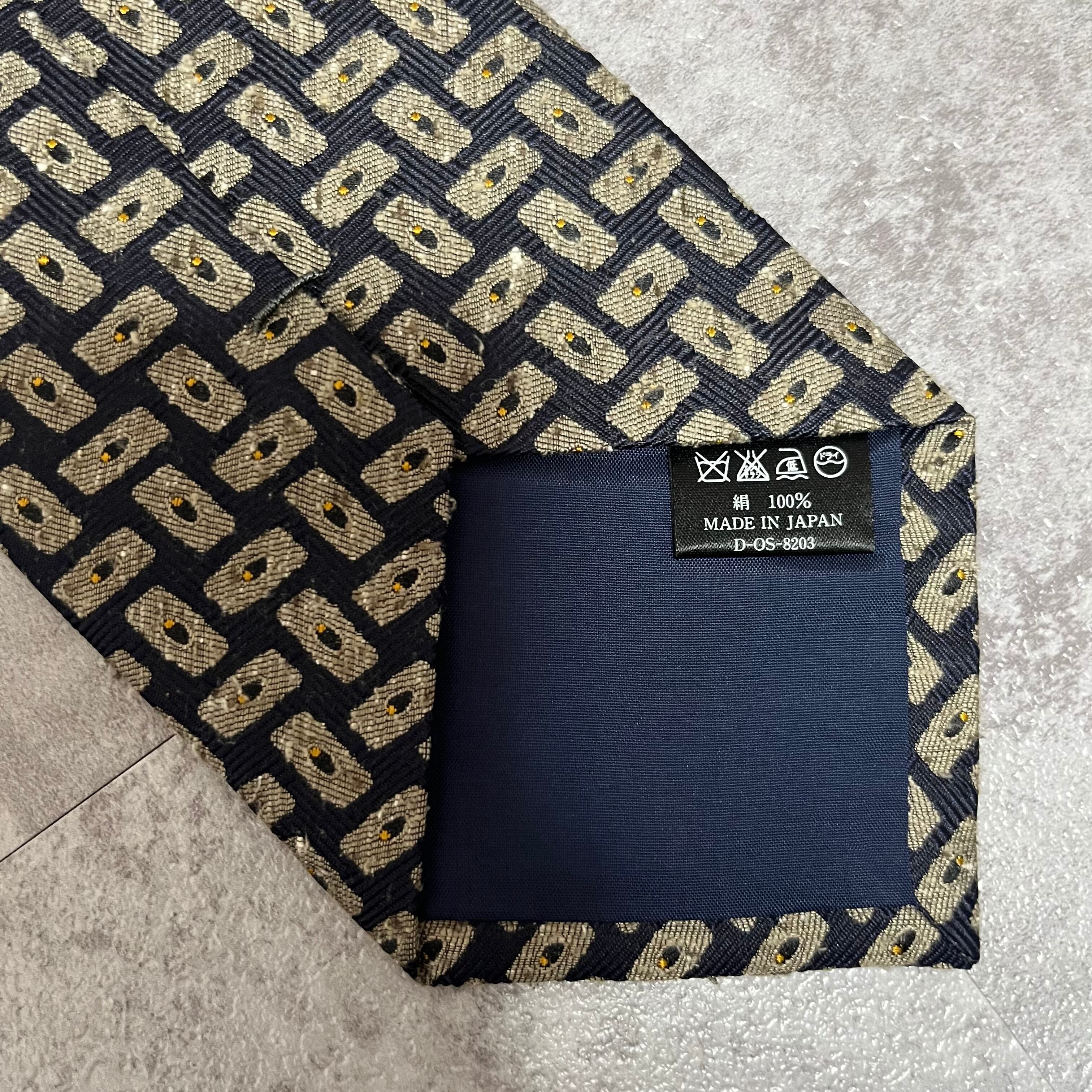 【モザイク柄】バイカラーネクタイ ネイビー ジャガード 日本製 ニットタイ風 肉厚 シルク100%