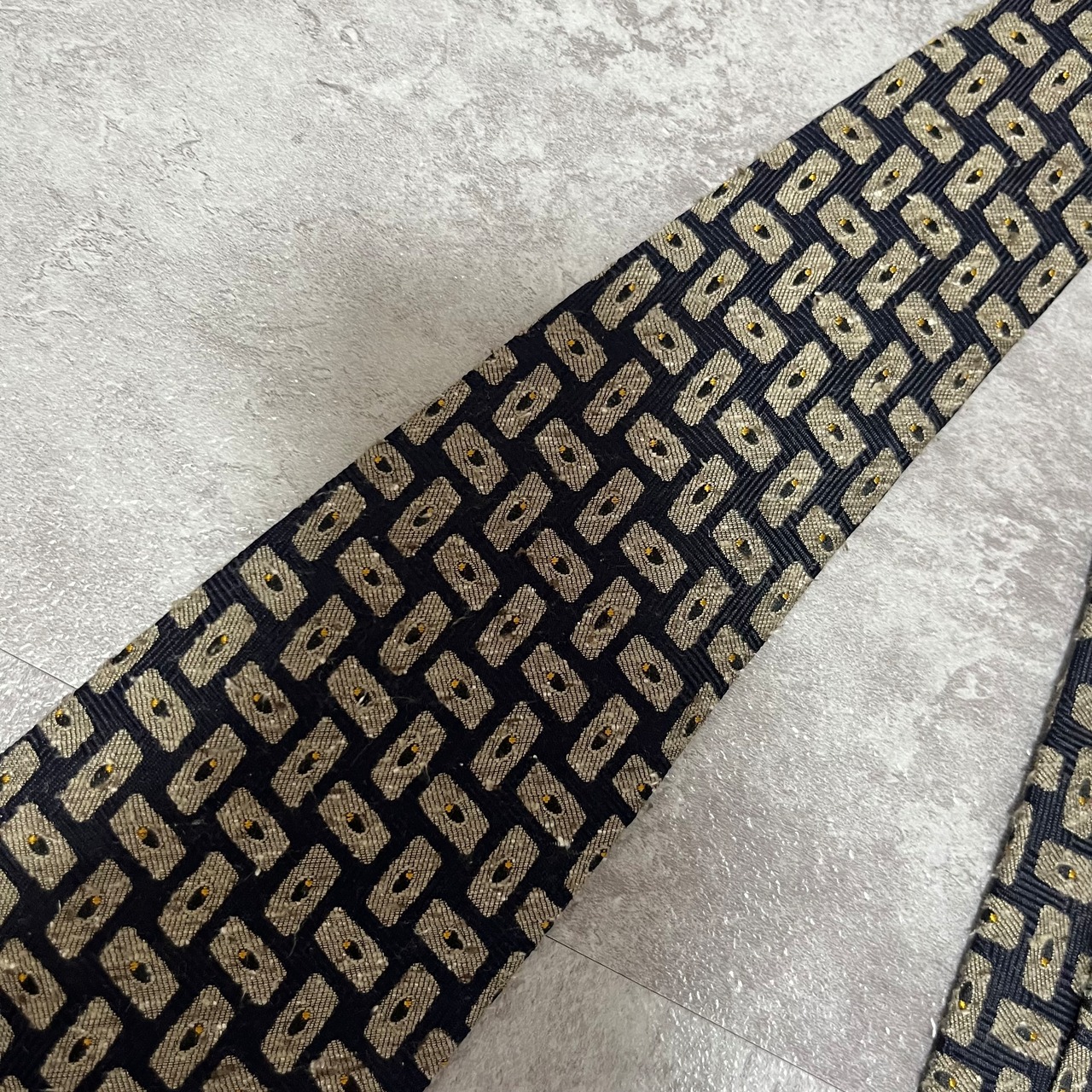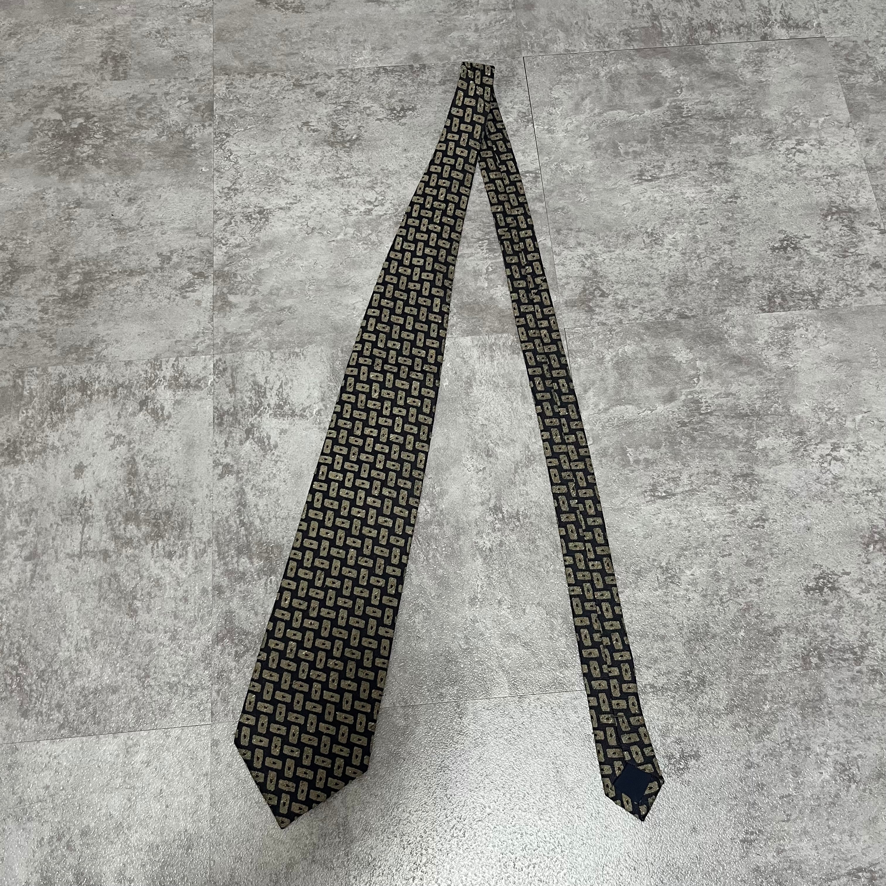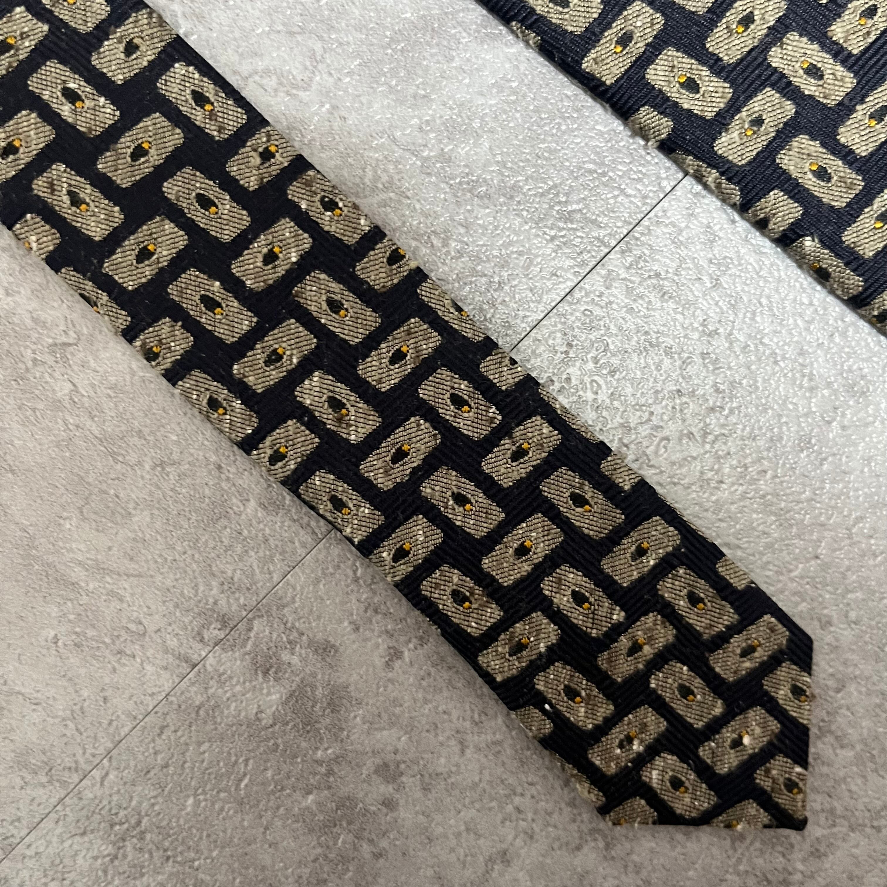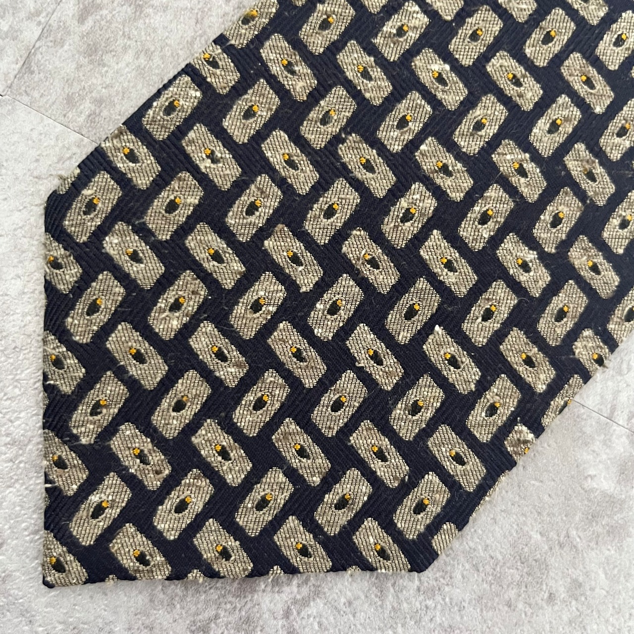 【モザイク柄】バイカラーネクタイ ネイビー ジャガード 日本製 ニットタイ風 肉厚 シルク100%