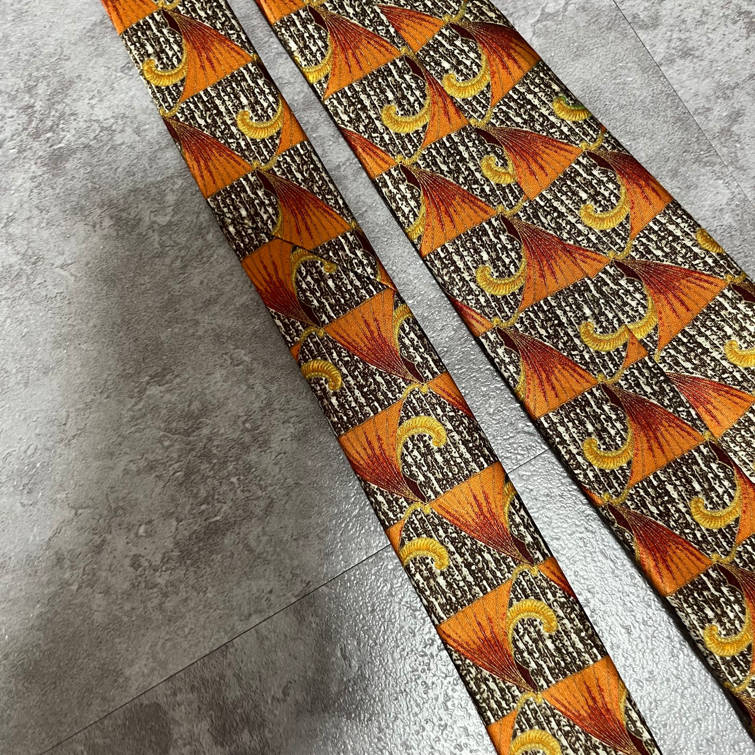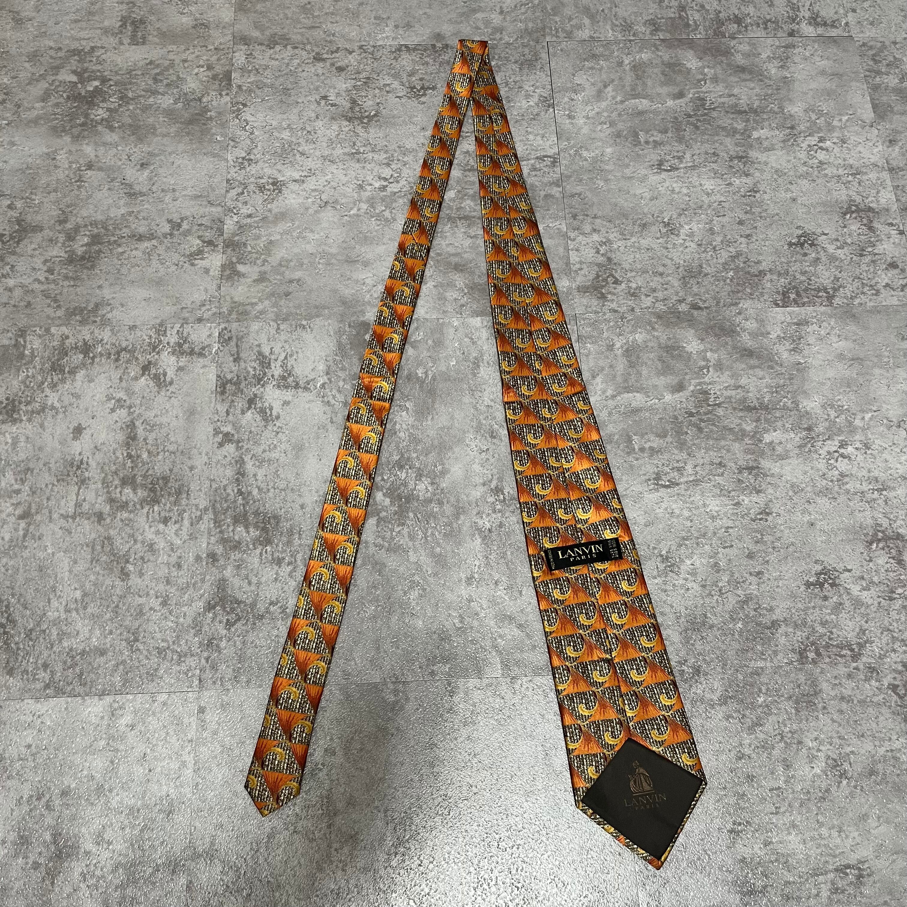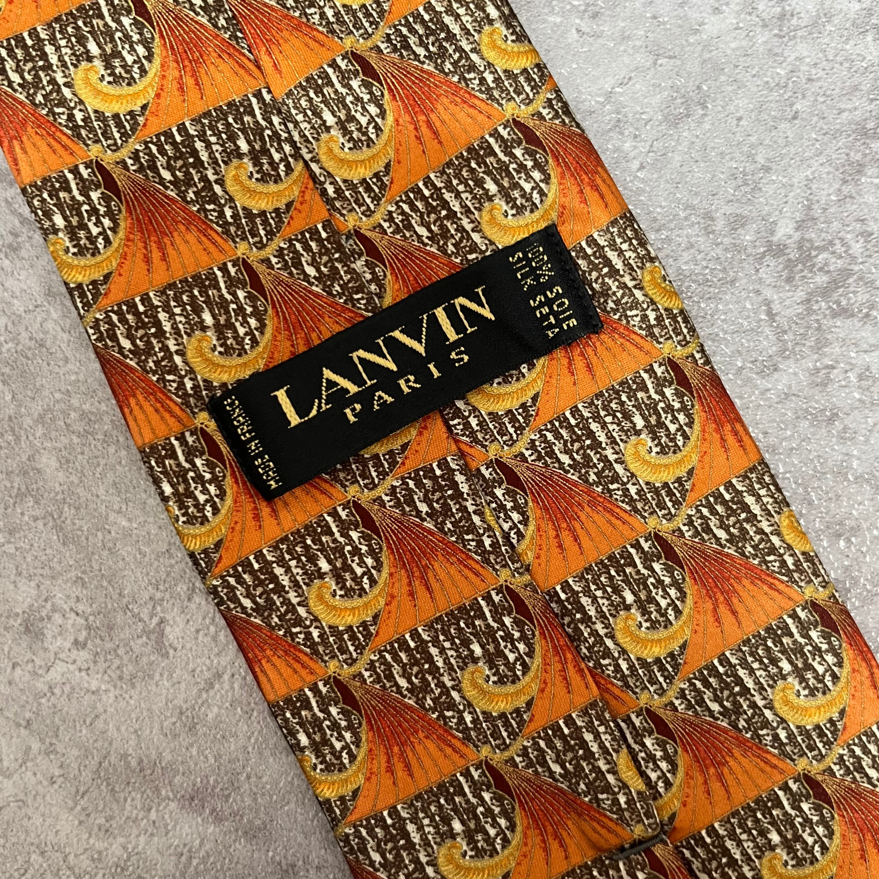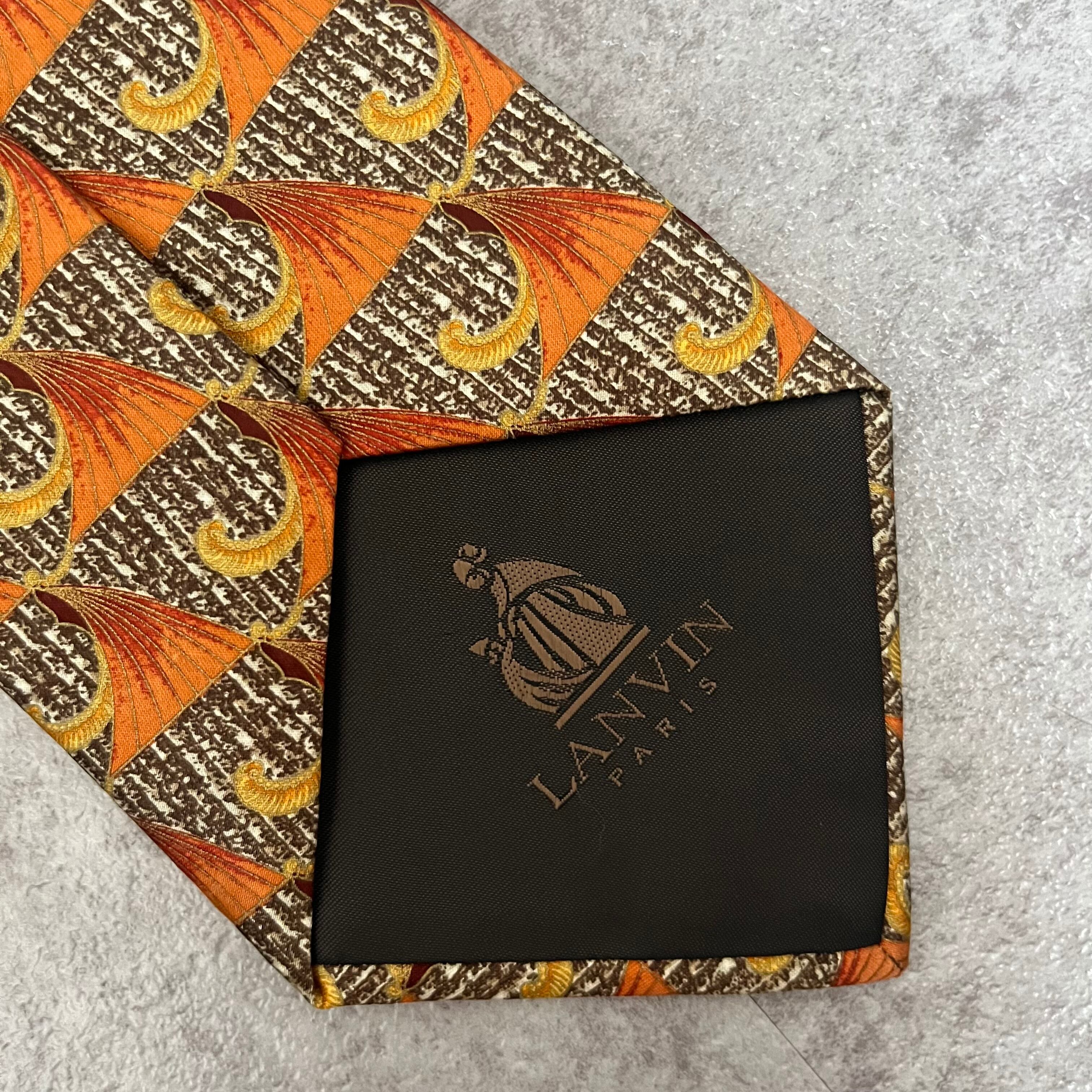 【LANVIN】特殊ストライプネクタイ オレンジ ブラウン 植物 ボタニカル 光沢肉厚 シルク100% 男女両用