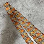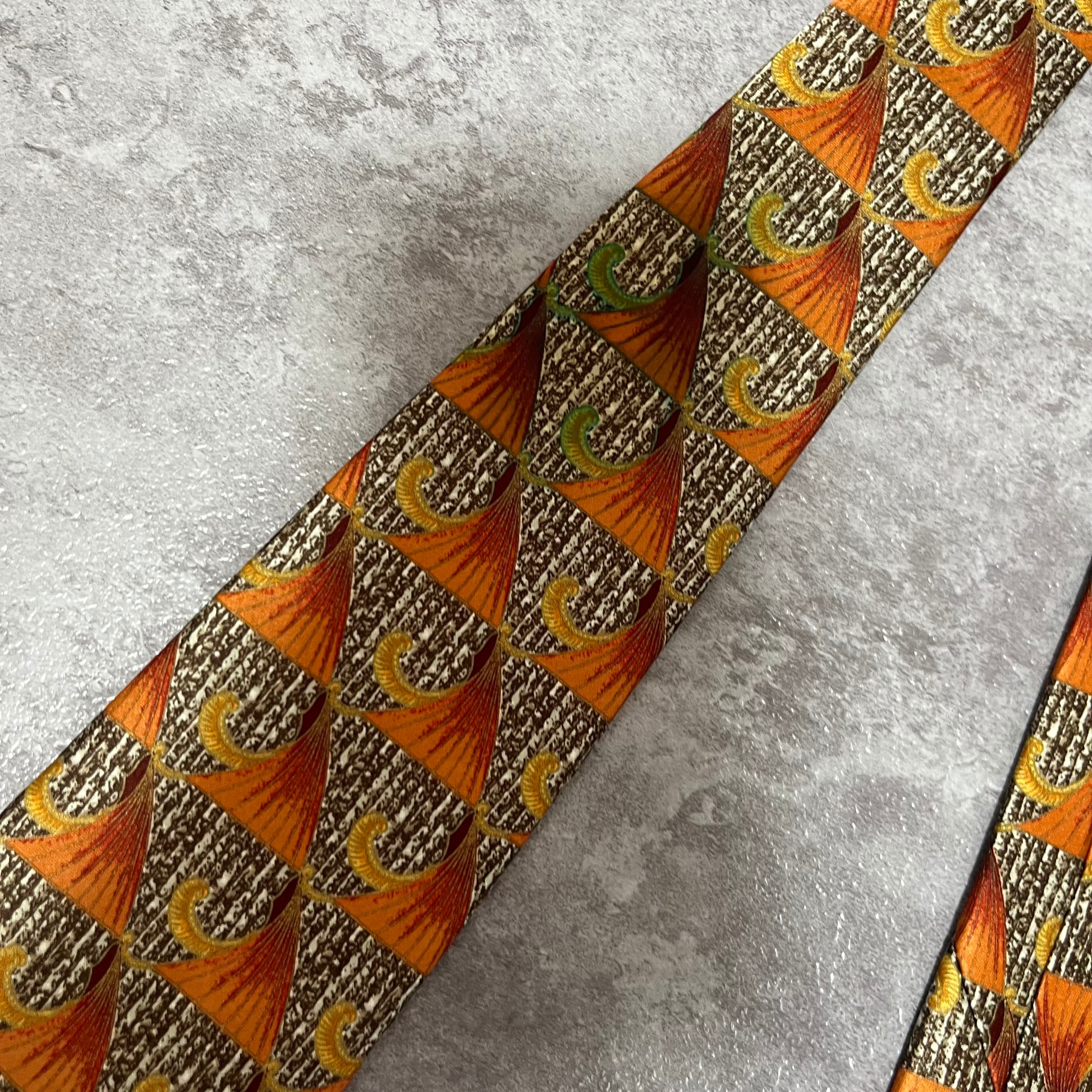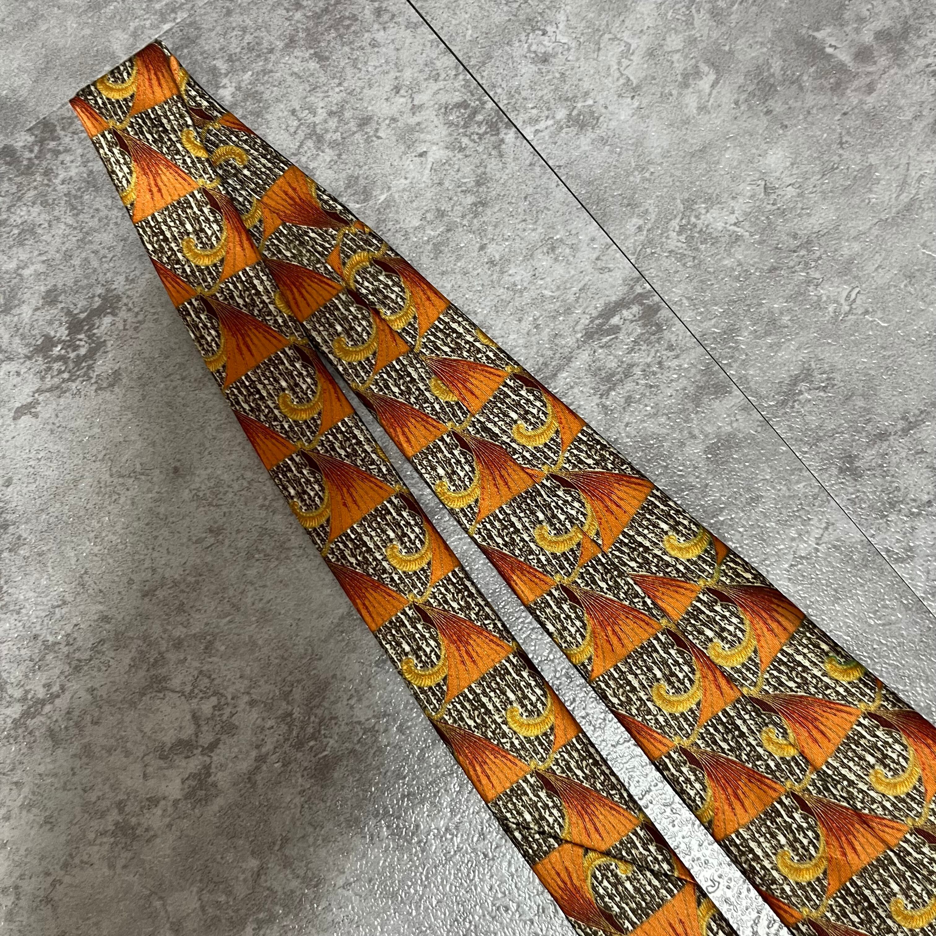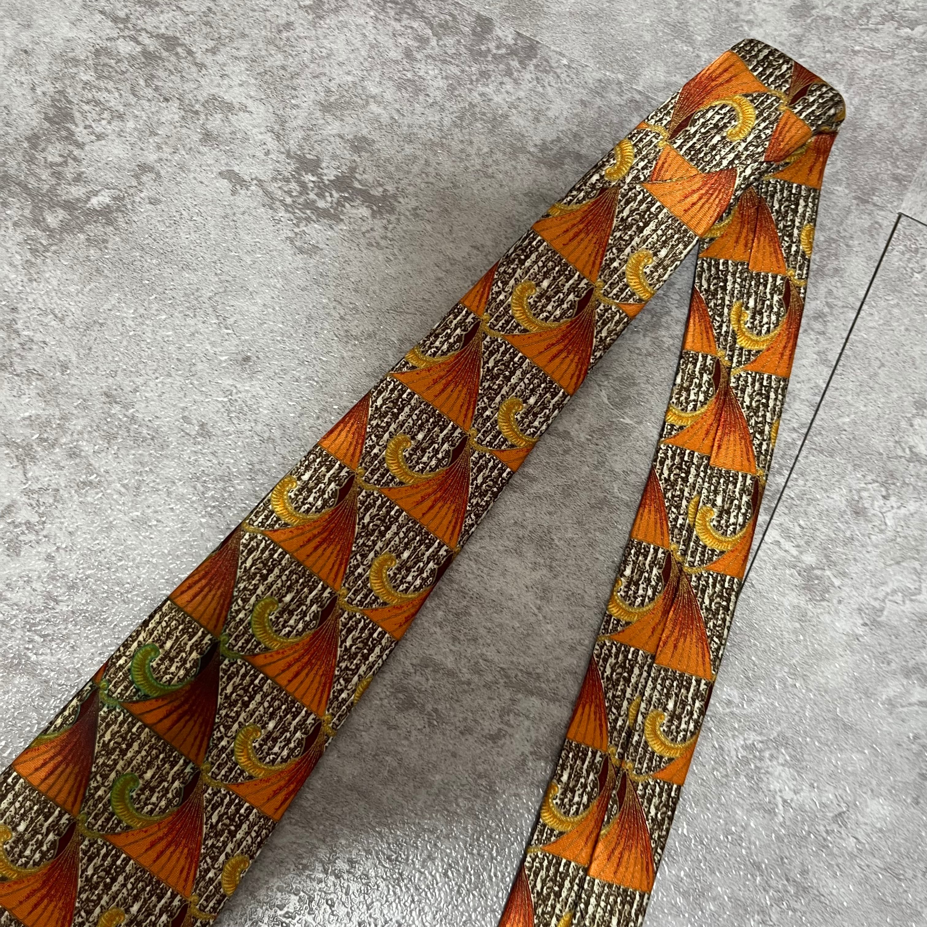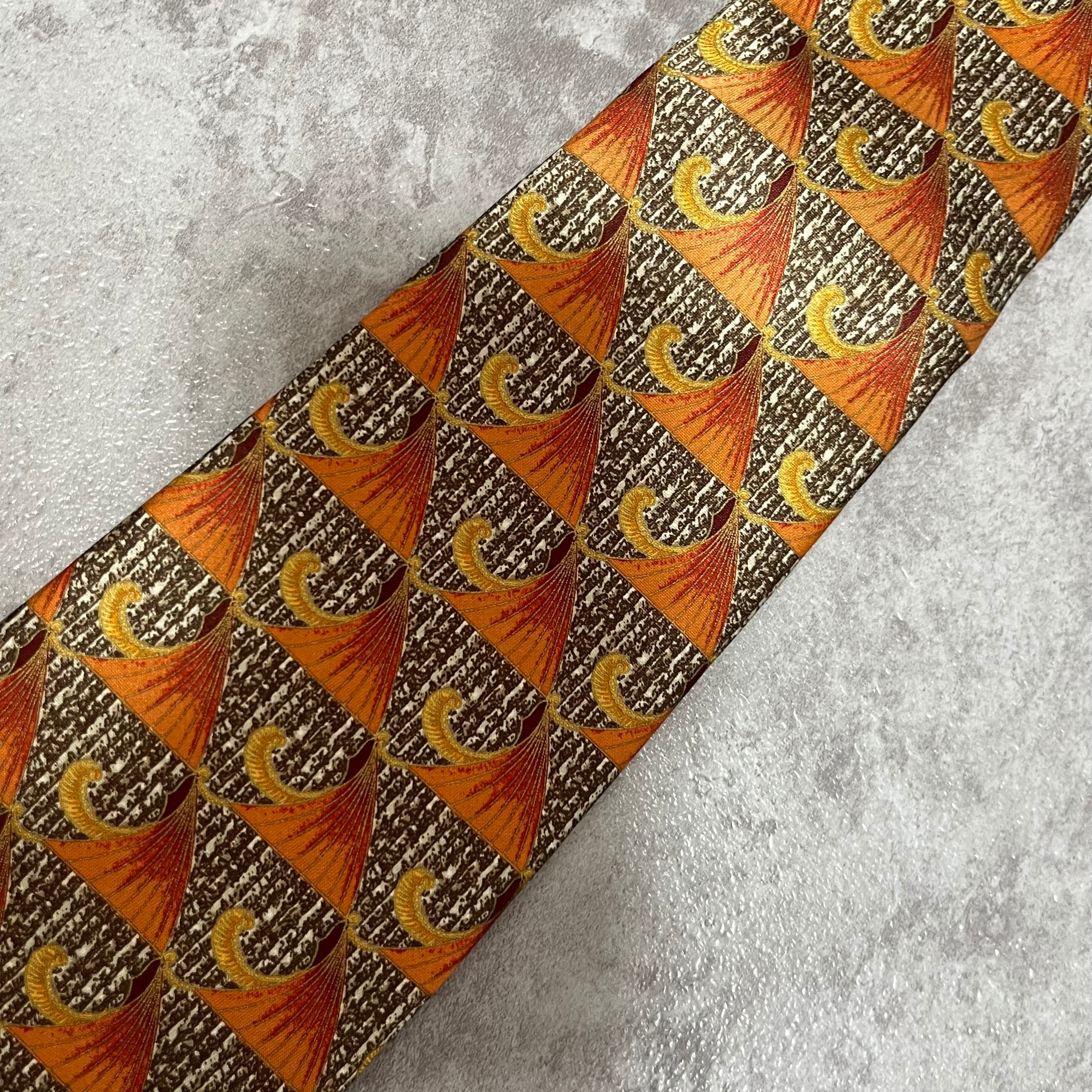 【LANVIN】特殊ストライプネクタイ オレンジ ブラウン 植物 ボタニカル 光沢肉厚 シルク100% 男女両用