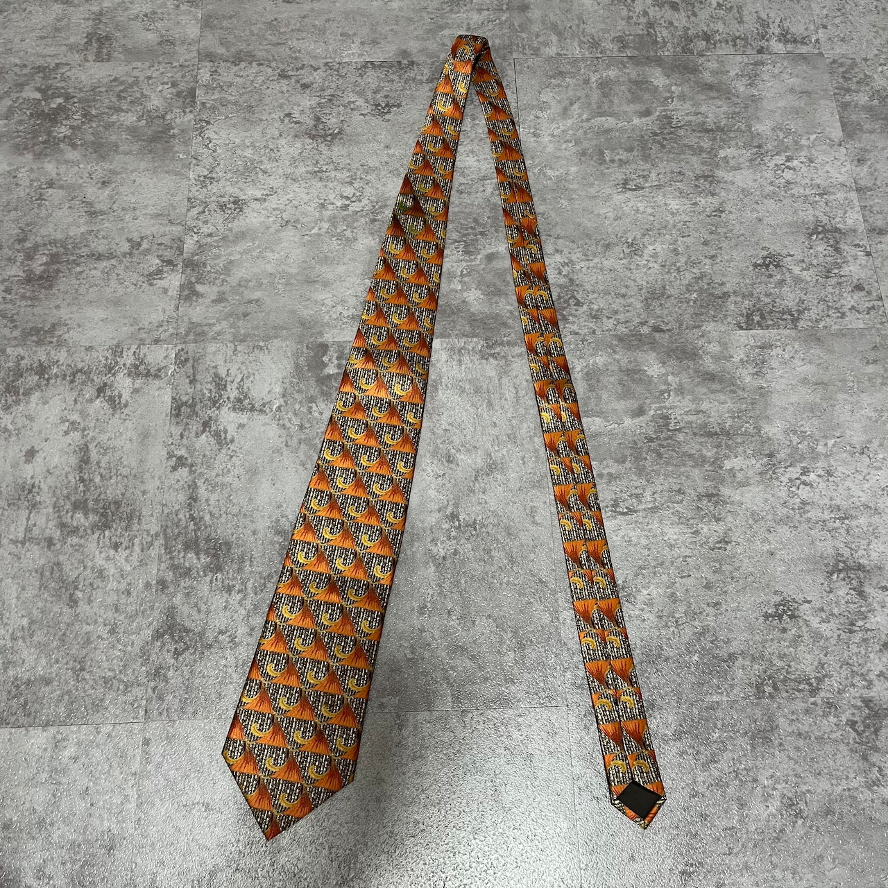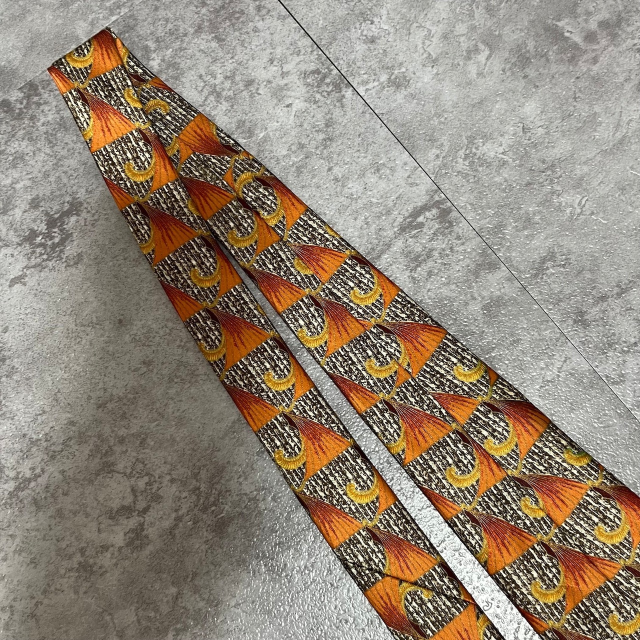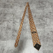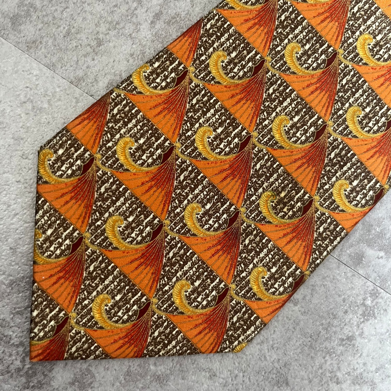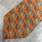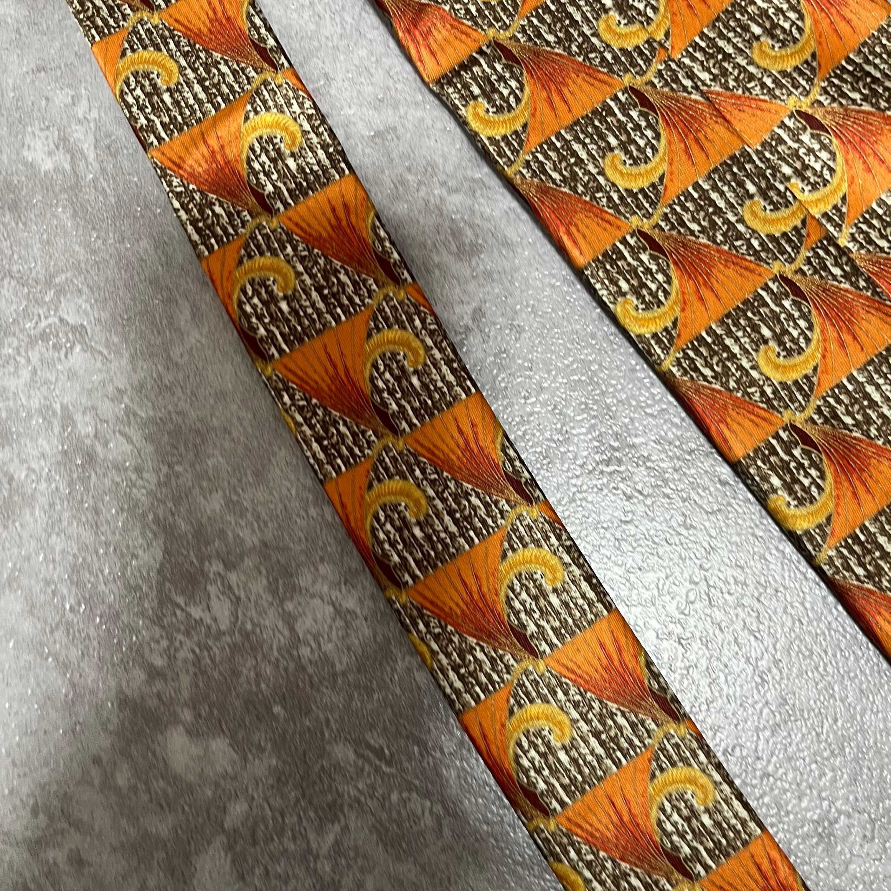 【LANVIN】特殊ストライプネクタイ オレンジ ブラウン 植物 ボタニカル 光沢肉厚 シルク100% 男女両用