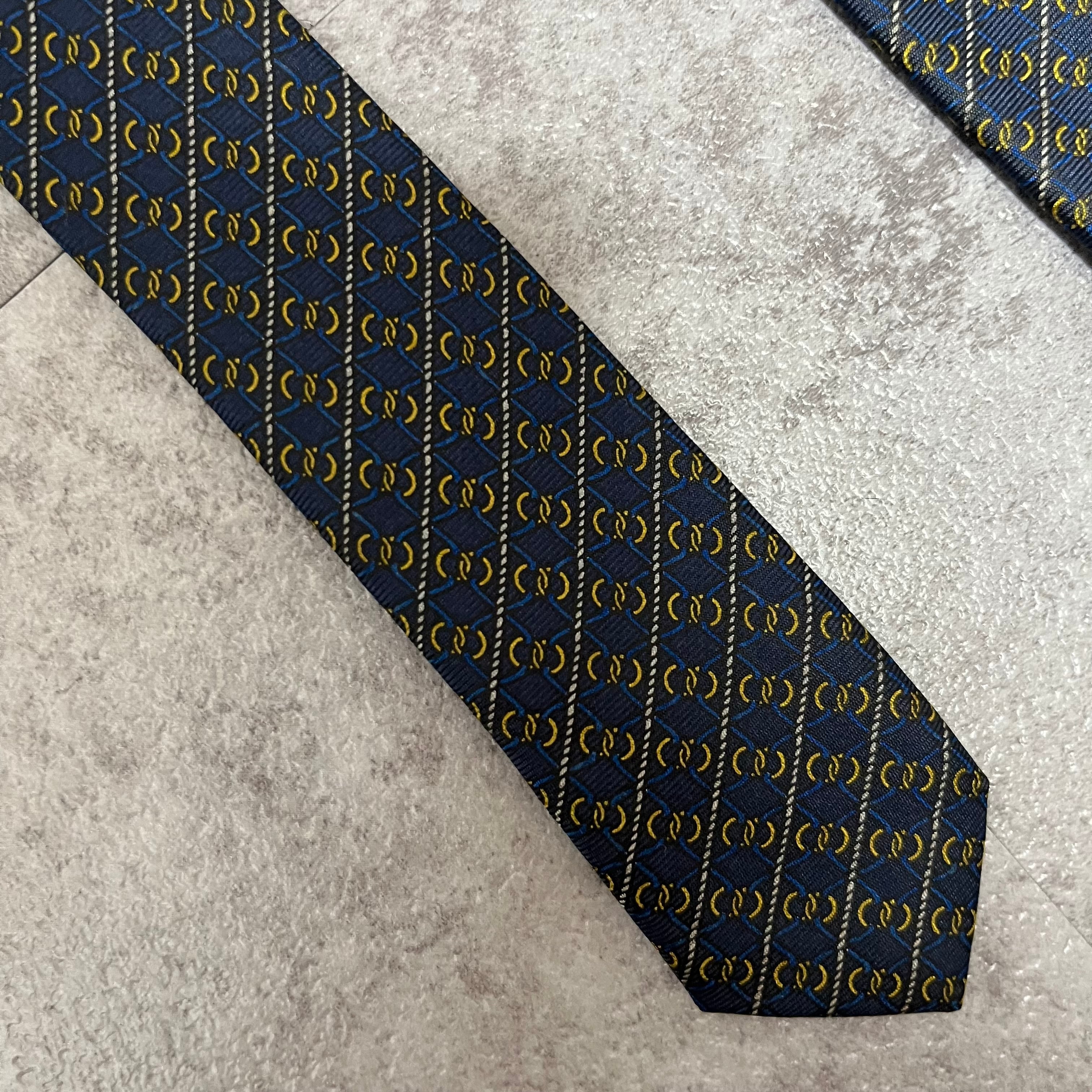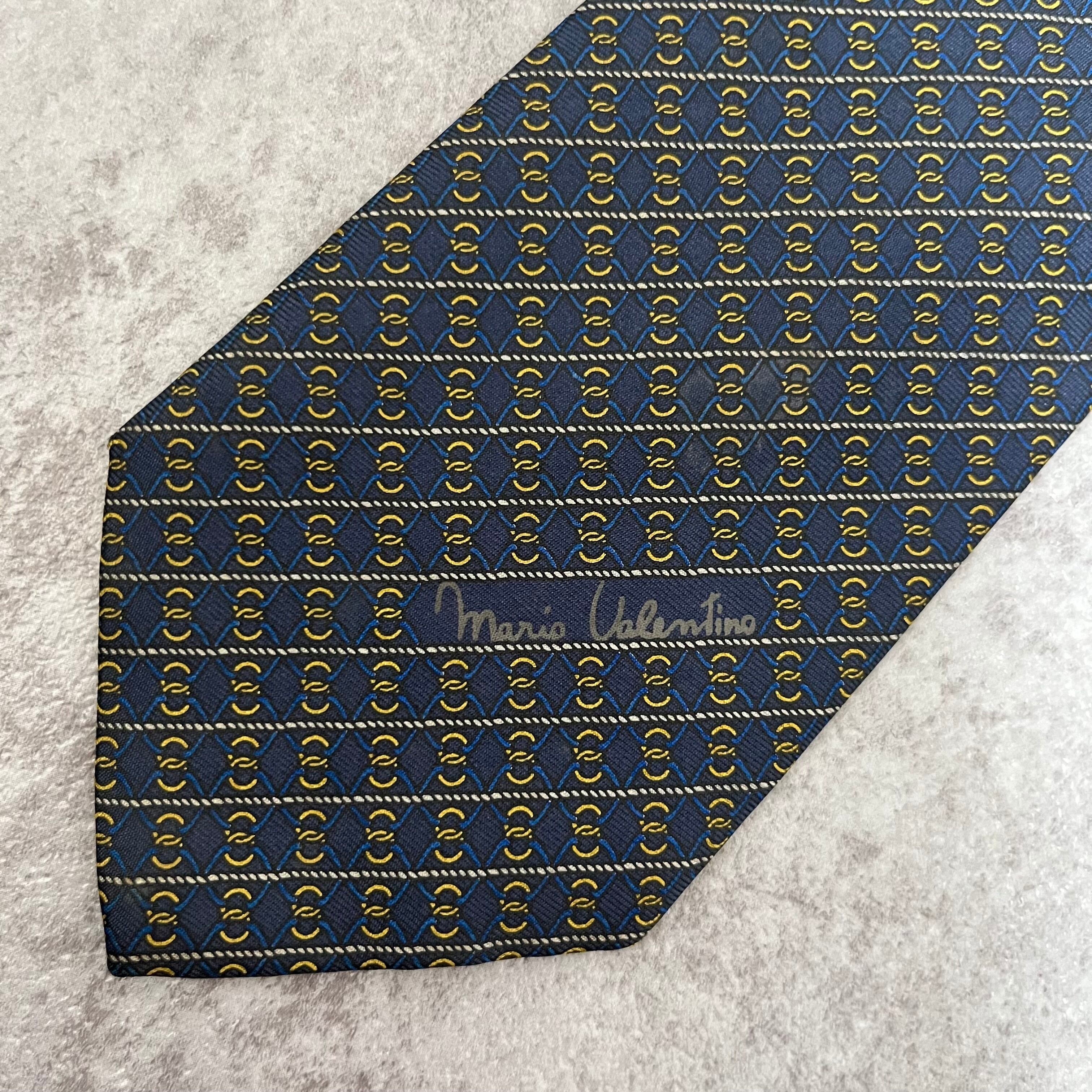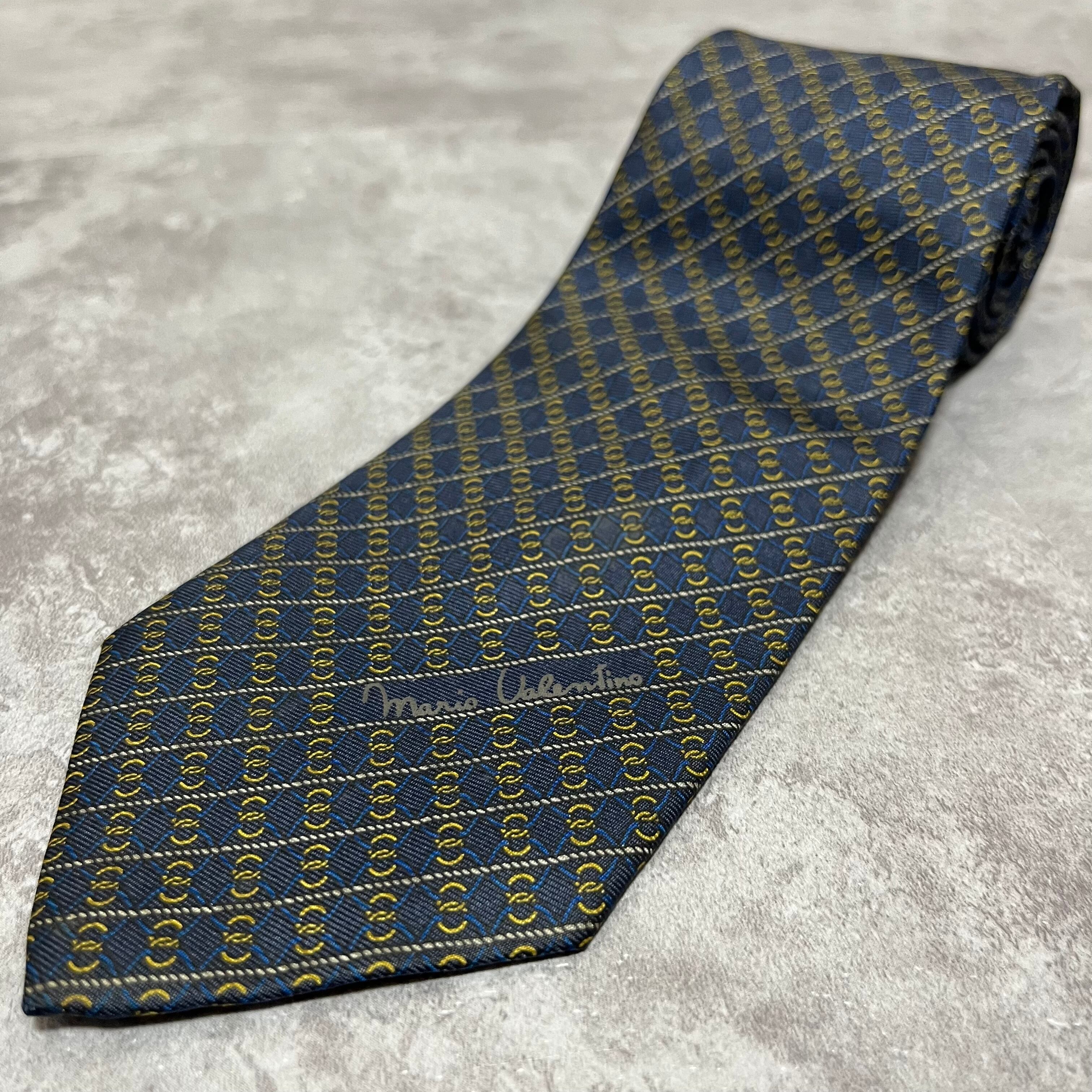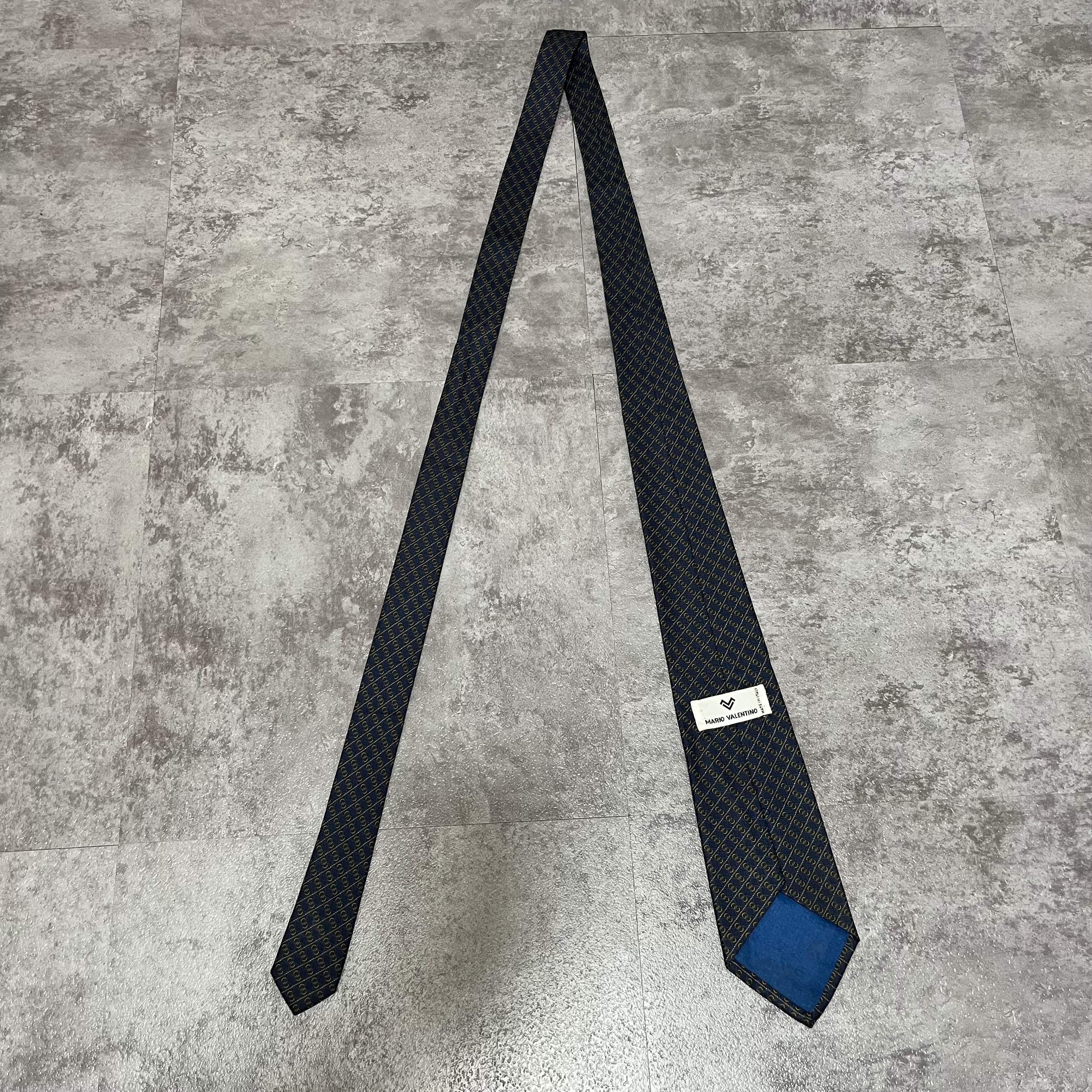 【VALENTINO】ロゴ入りストライプネクタイ チェーン柄 レジメンタルストライプ ネイビー シルク100%