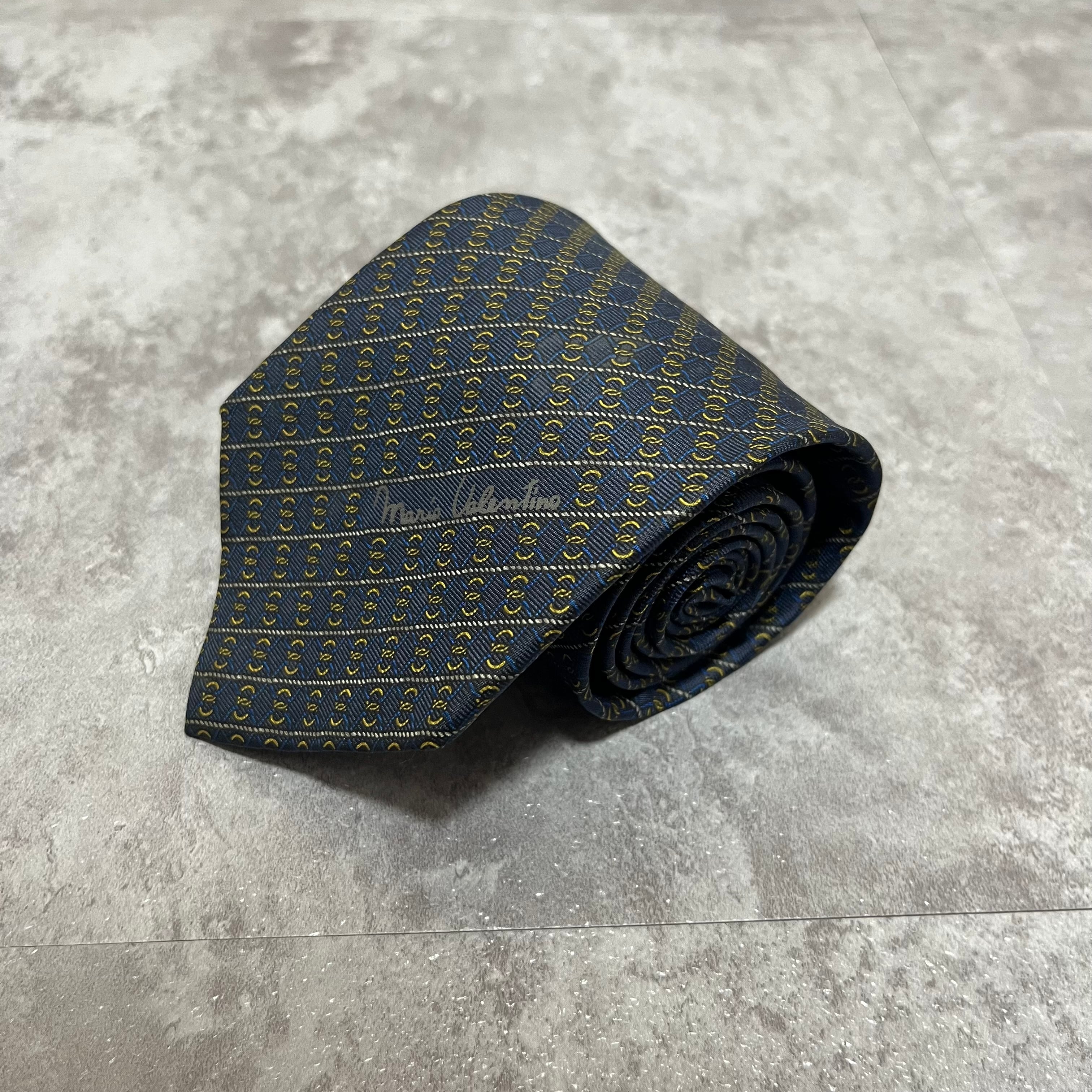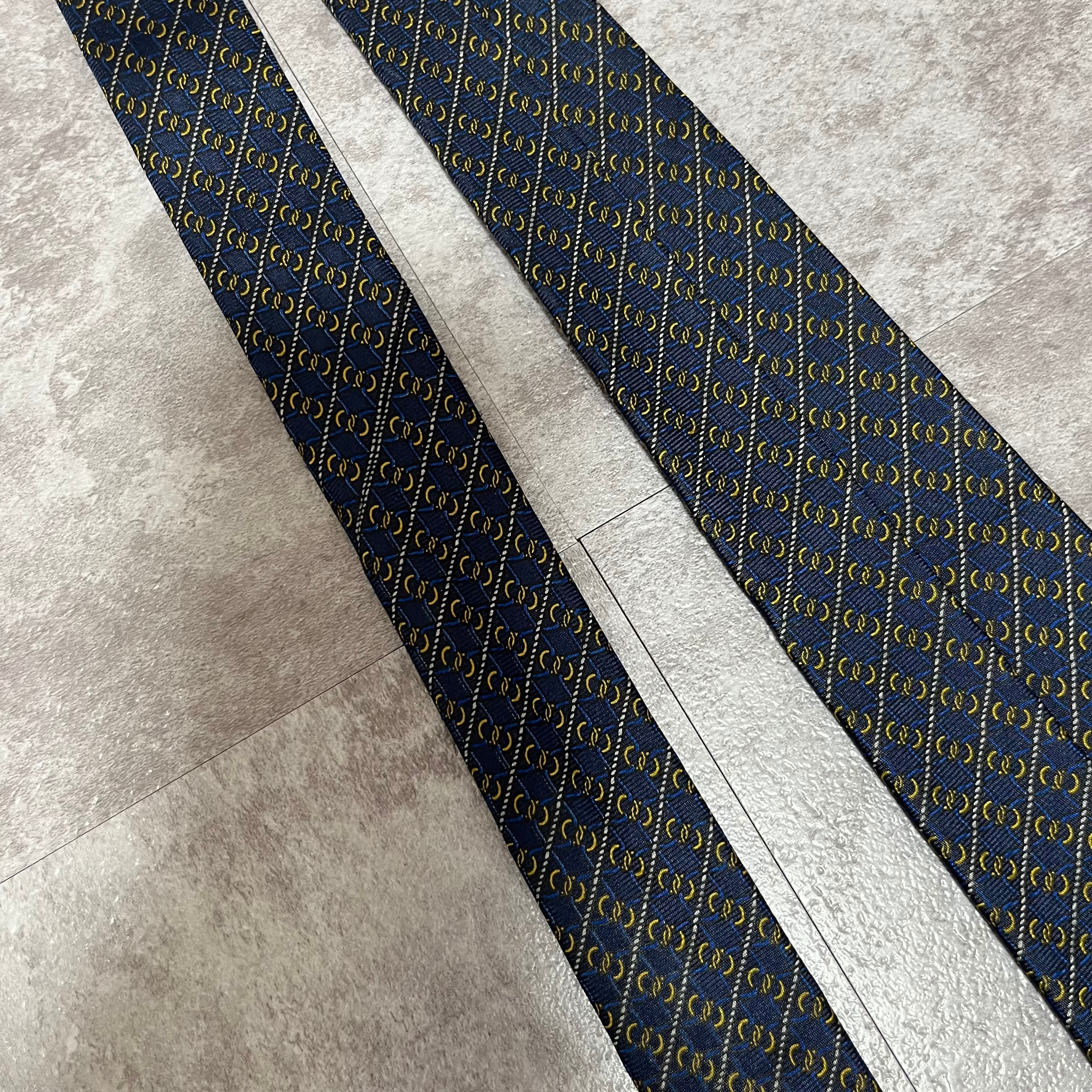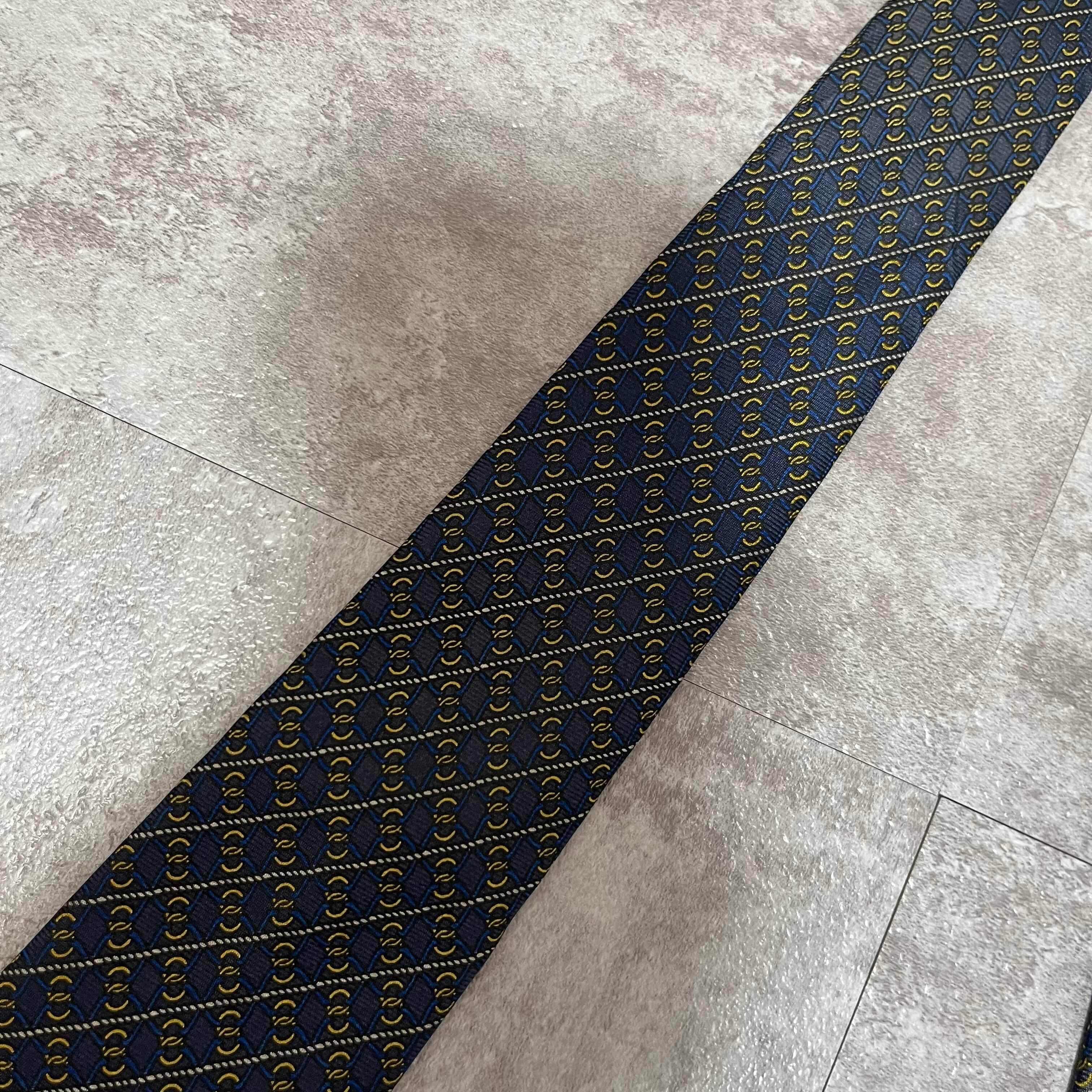 【VALENTINO】ロゴ入りストライプネクタイ チェーン柄 レジメンタルストライプ ネイビー シルク100%
