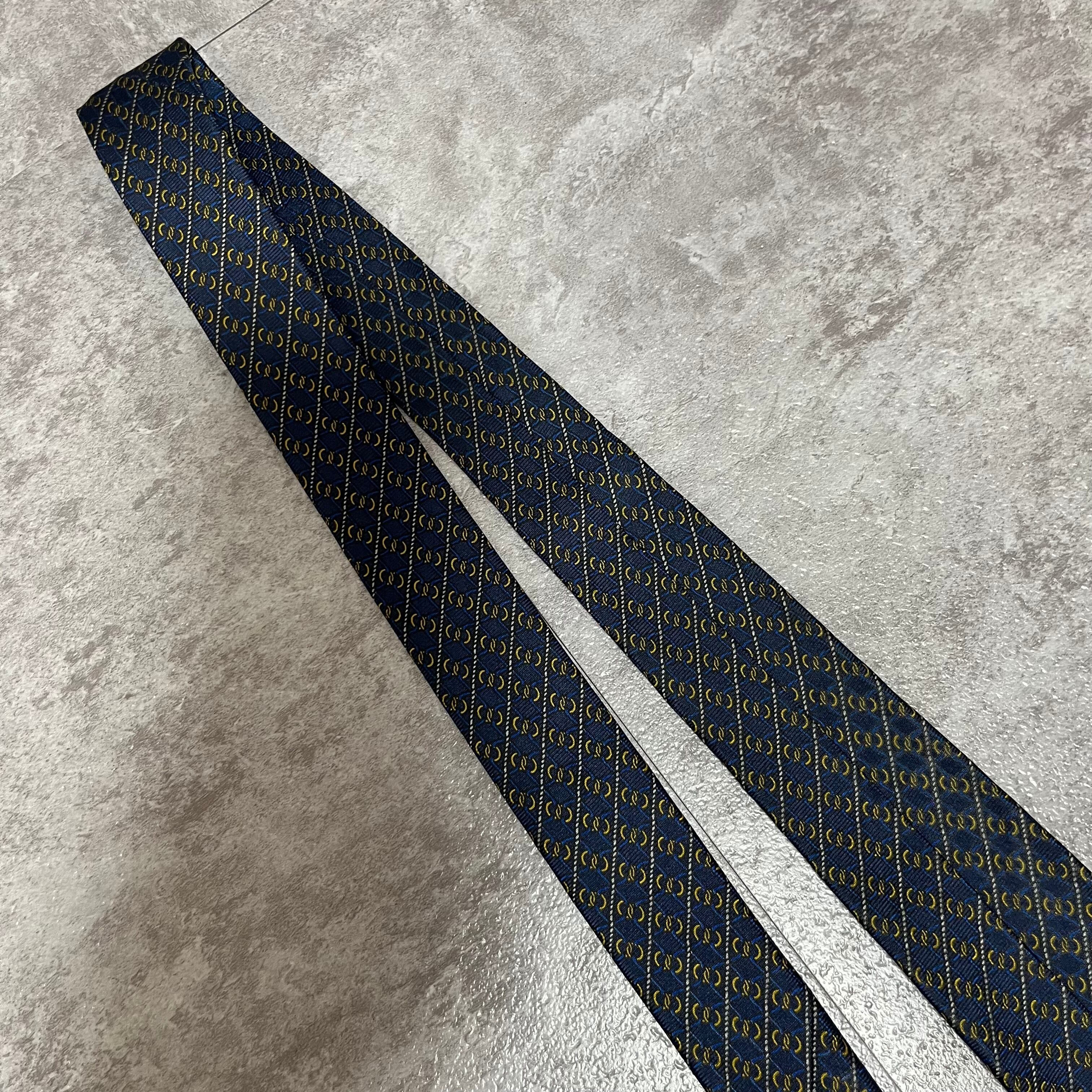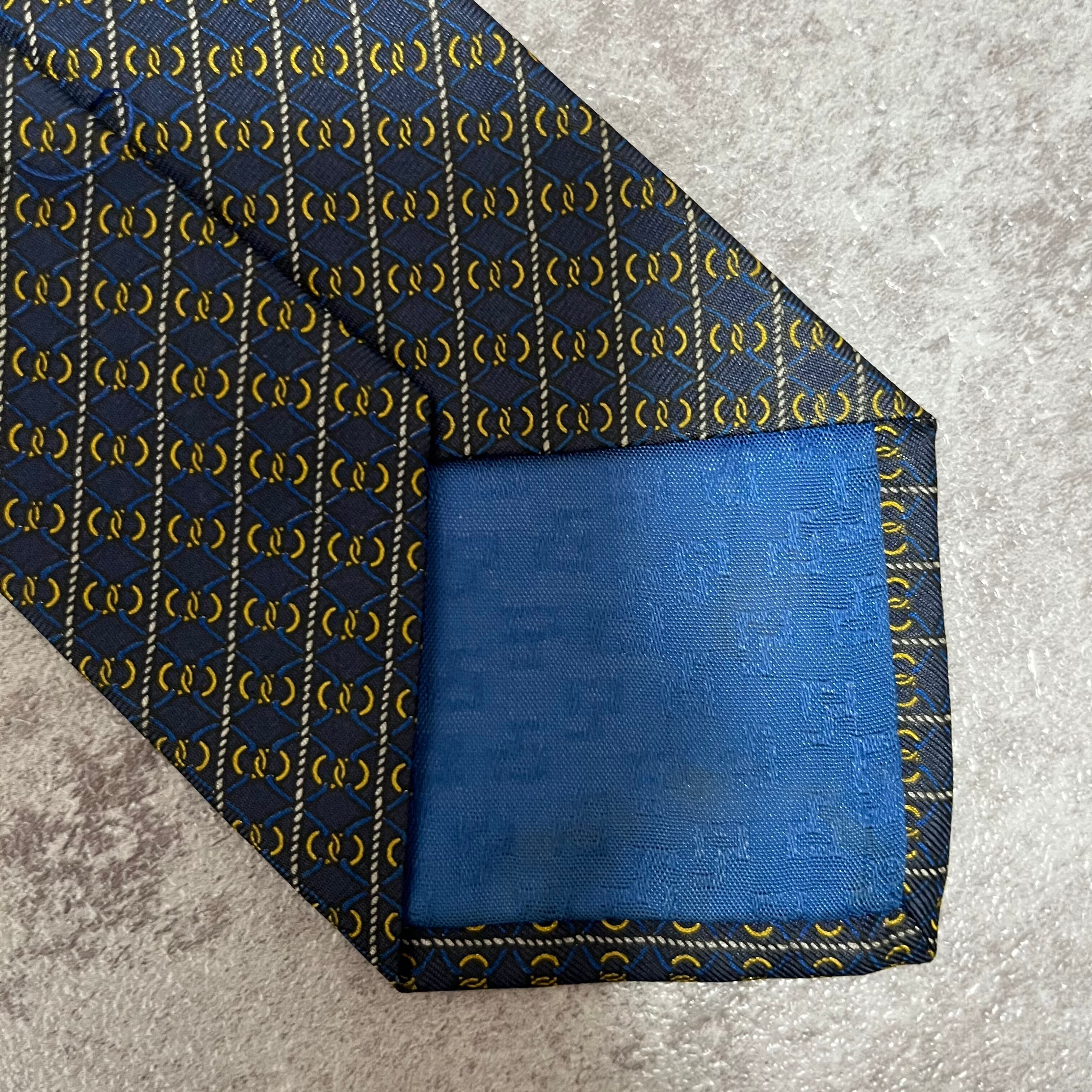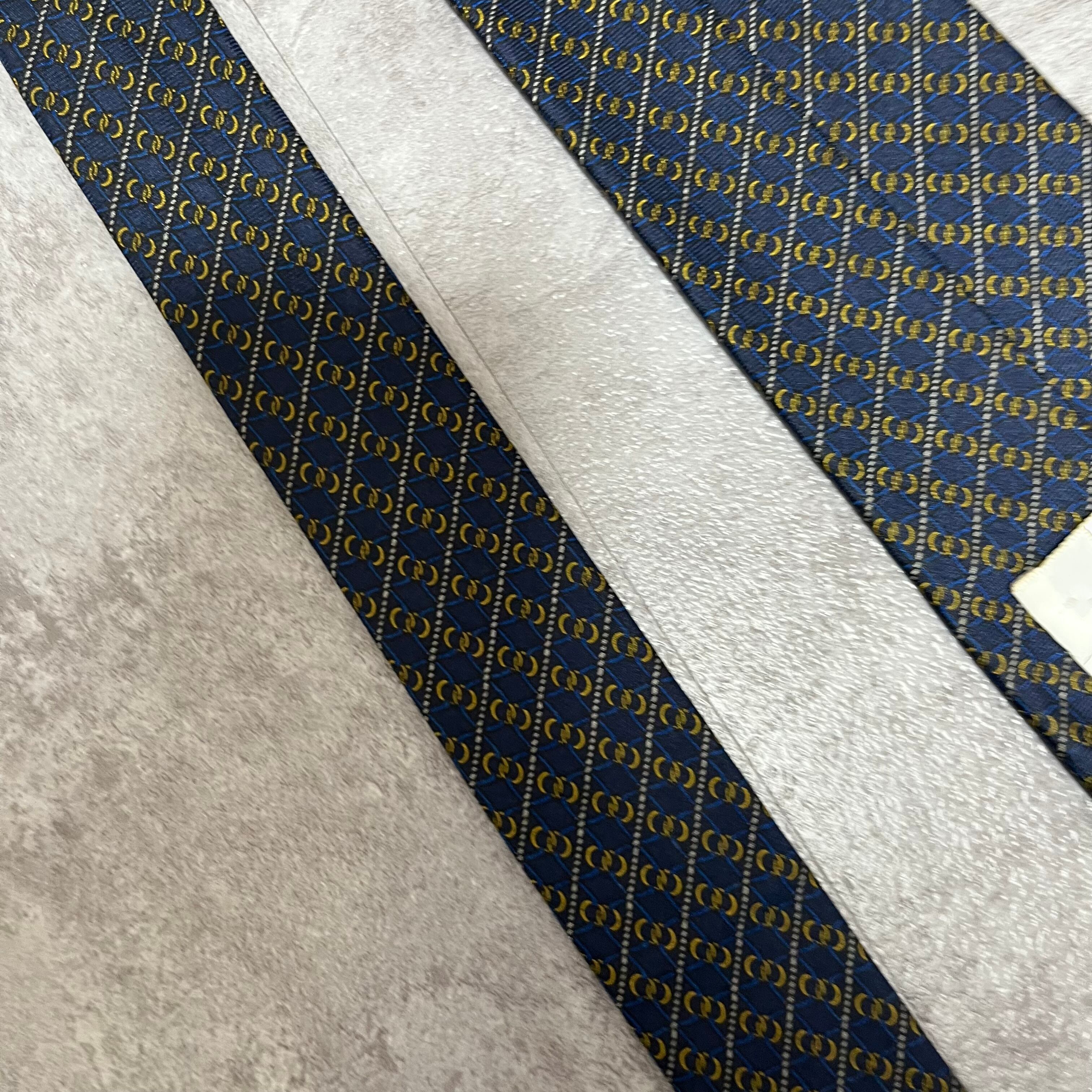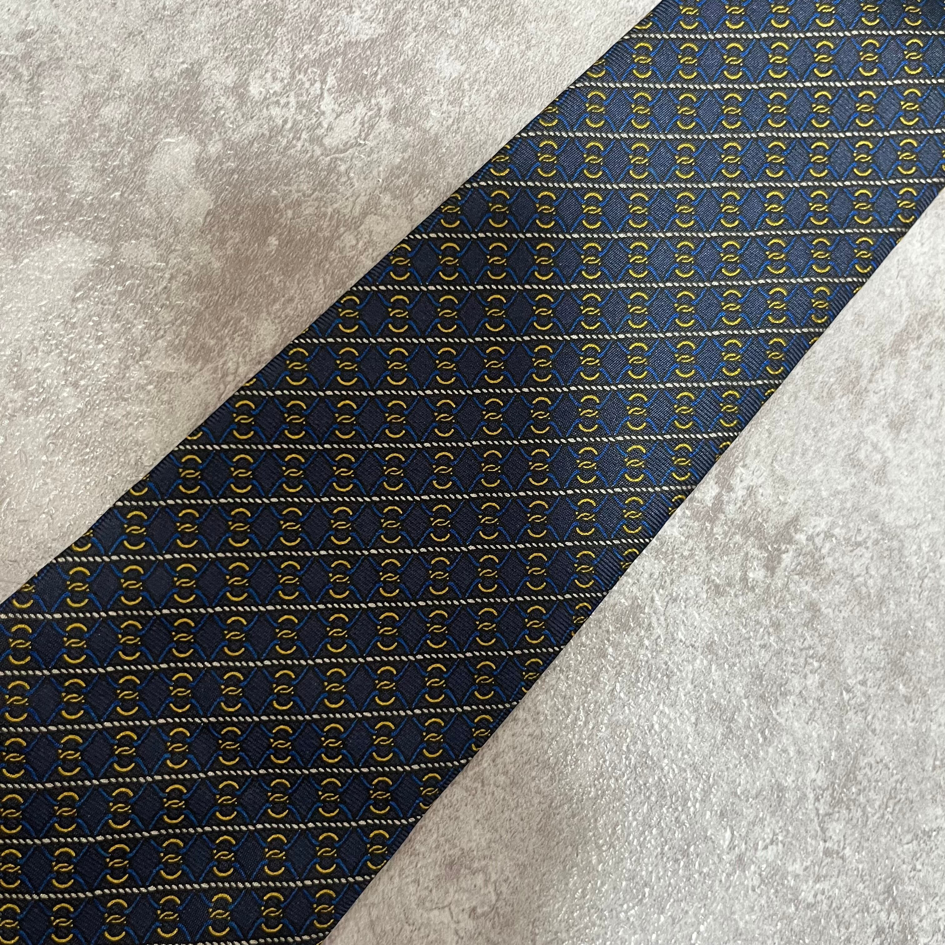 【VALENTINO】ロゴ入りストライプネクタイ チェーン柄 レジメンタルストライプ ネイビー シルク100%
