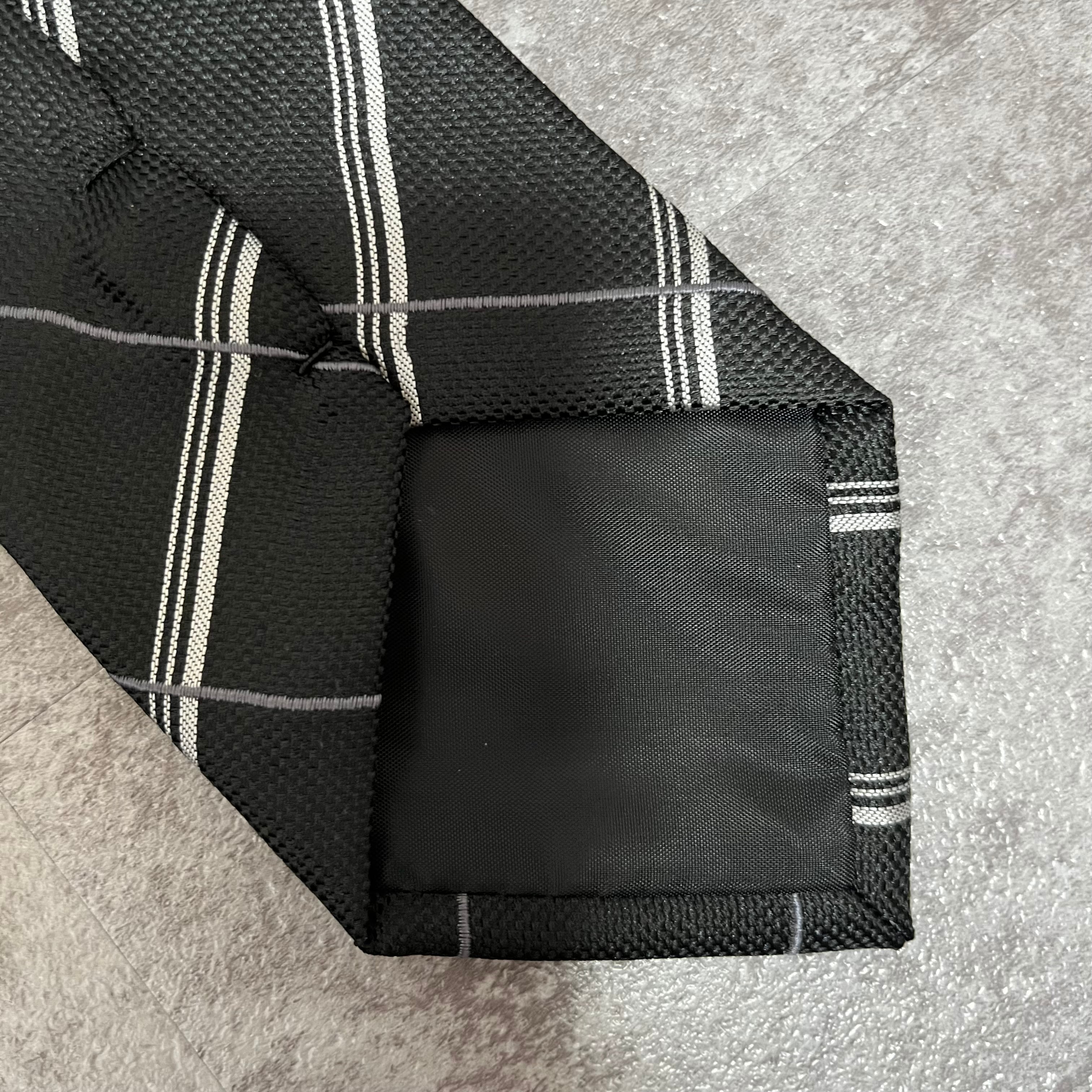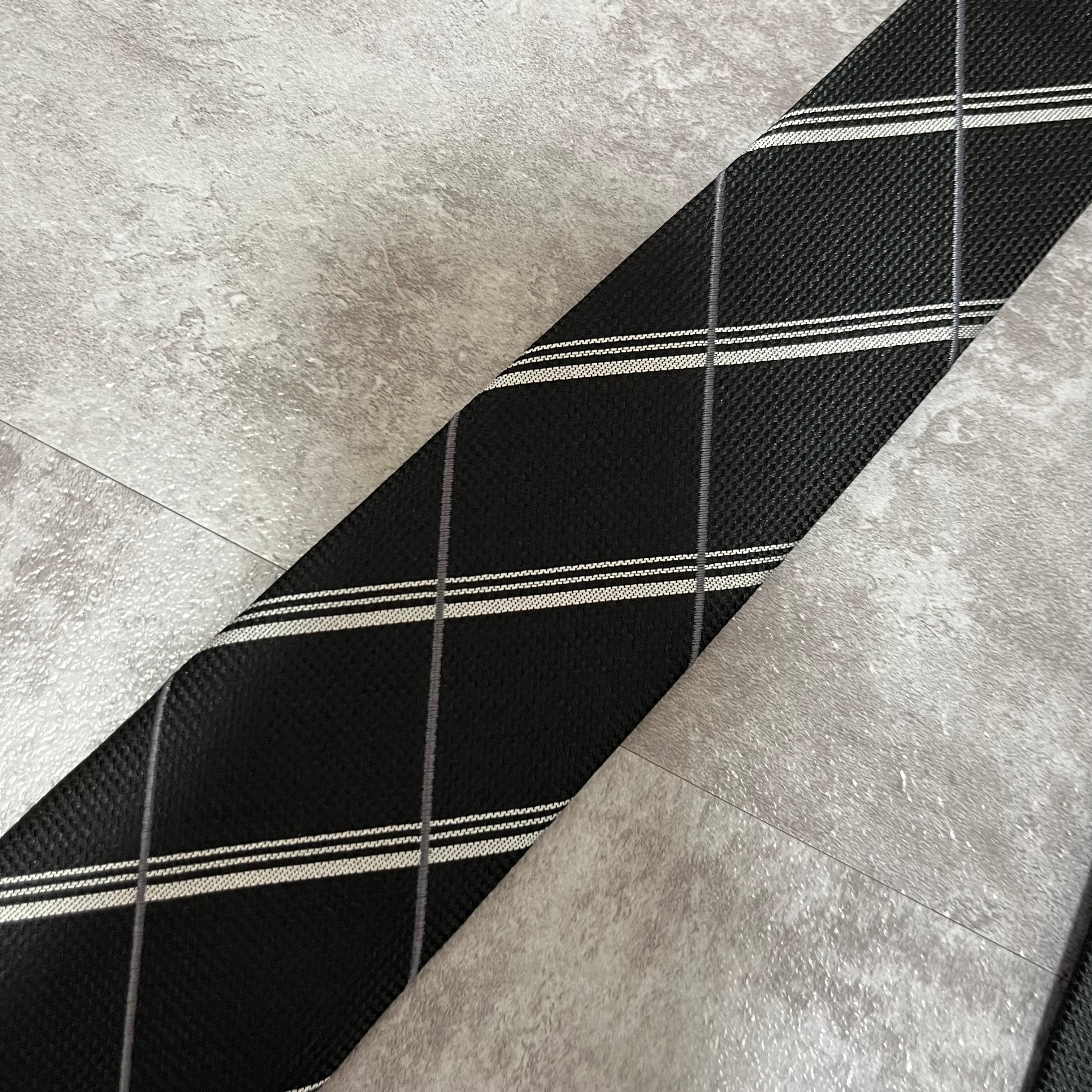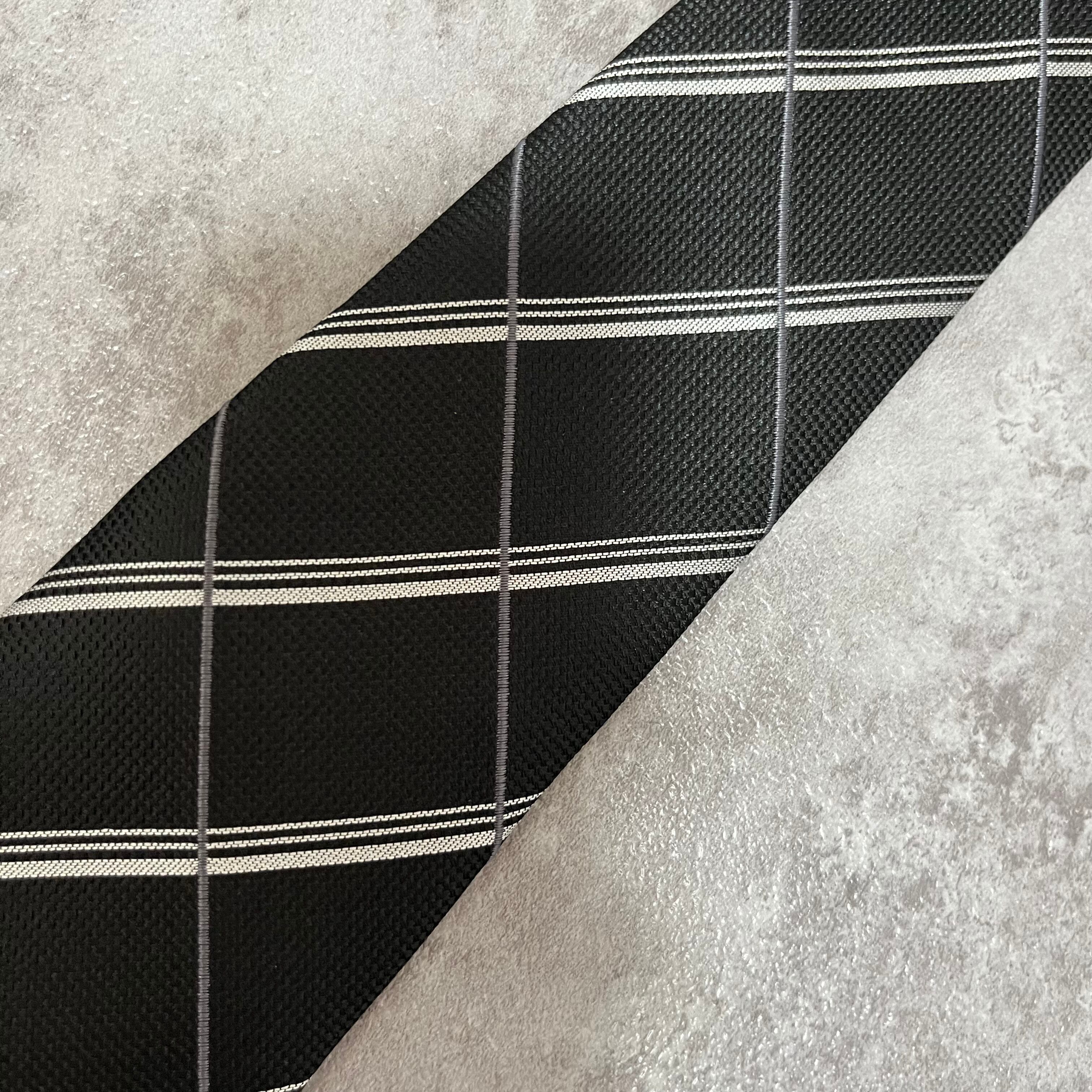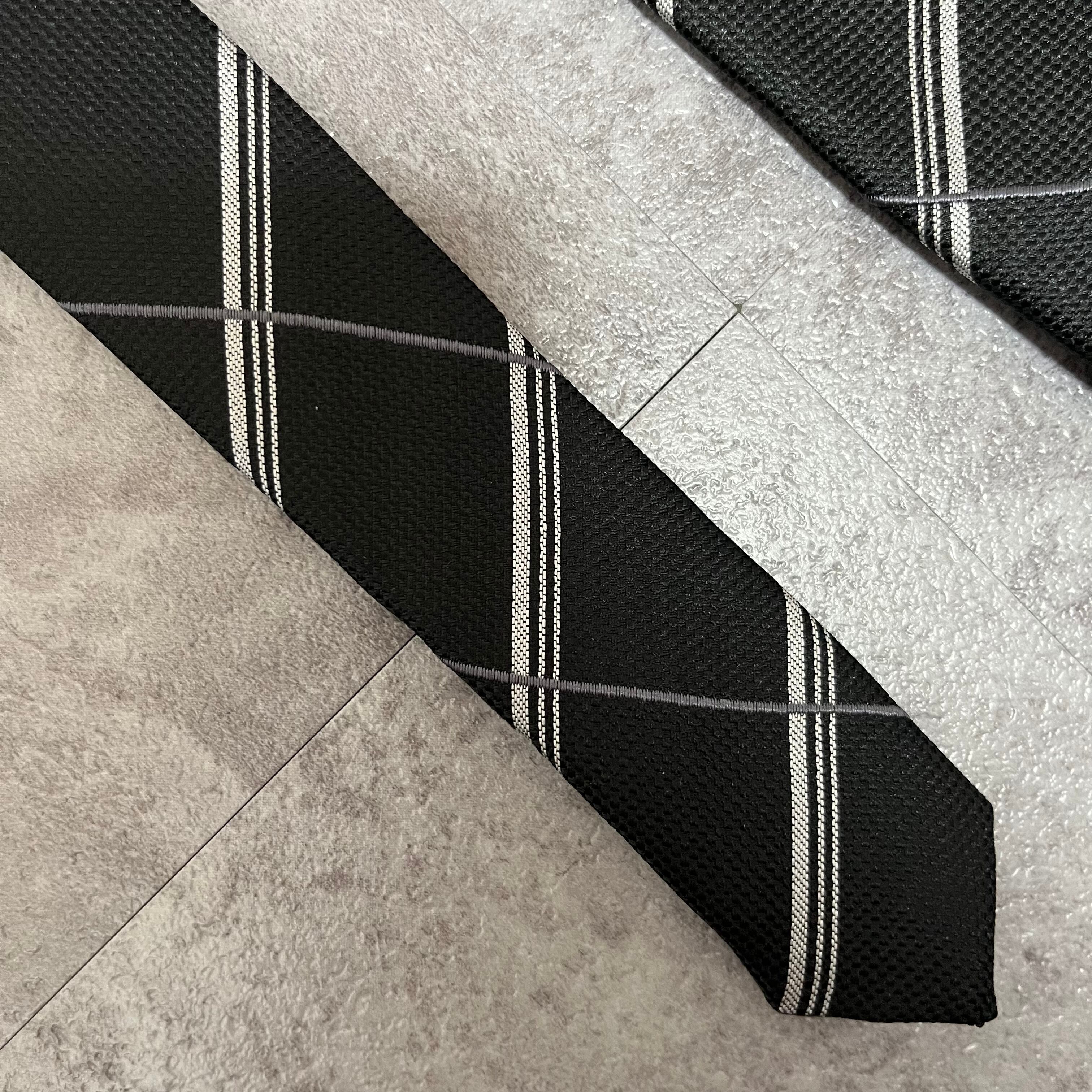 【チェック柄】シンプルネクタイ ブラック シルバー バイカラー ビジネス用