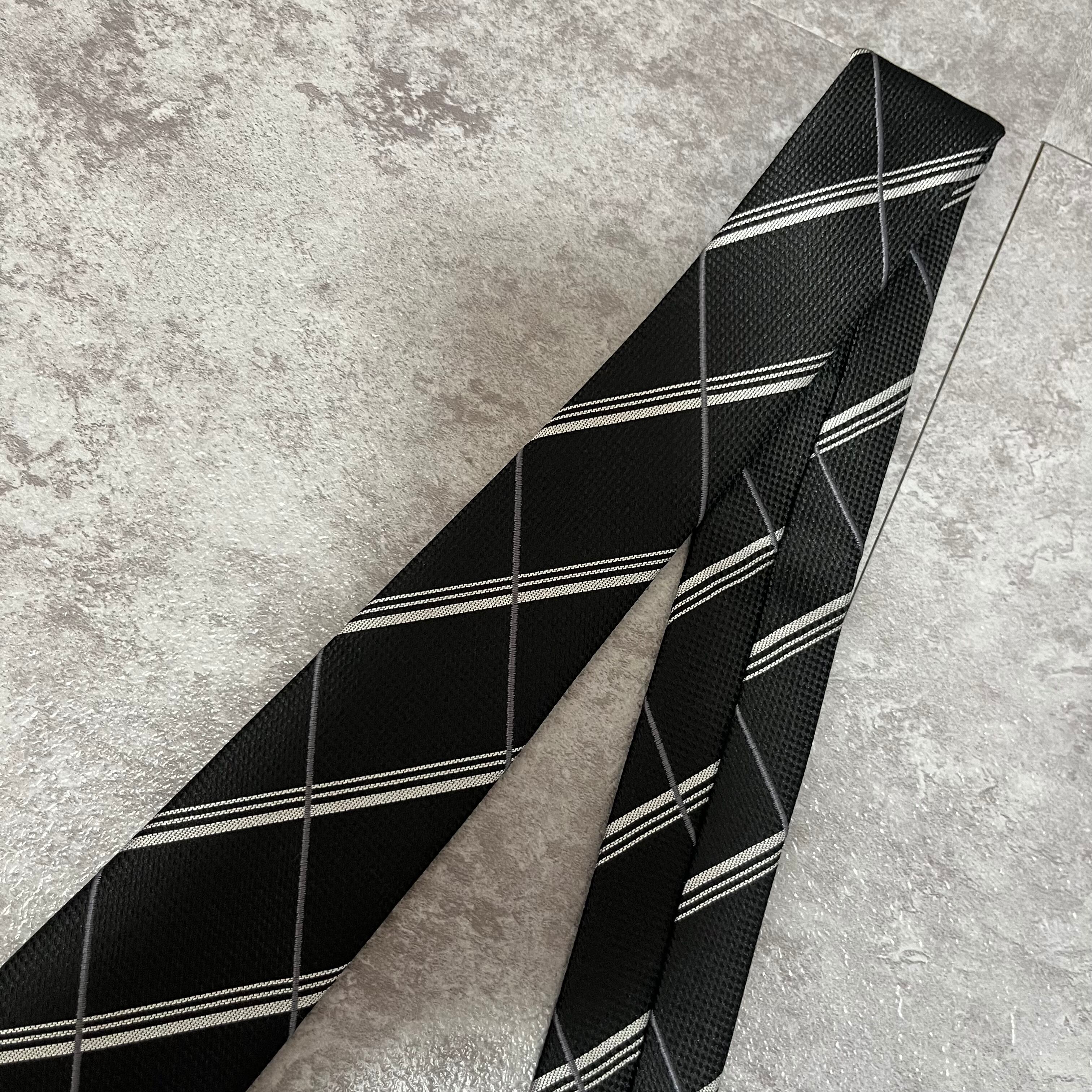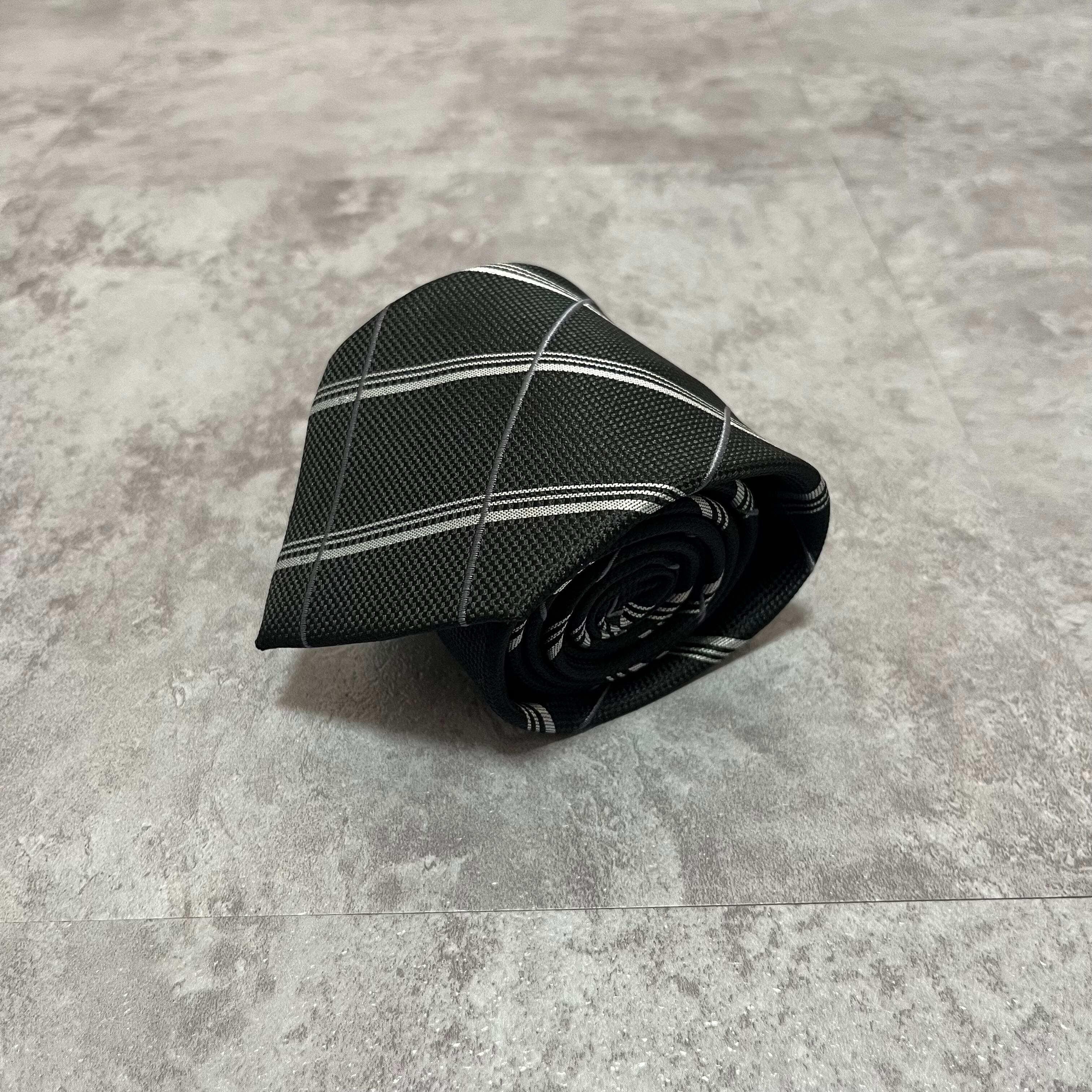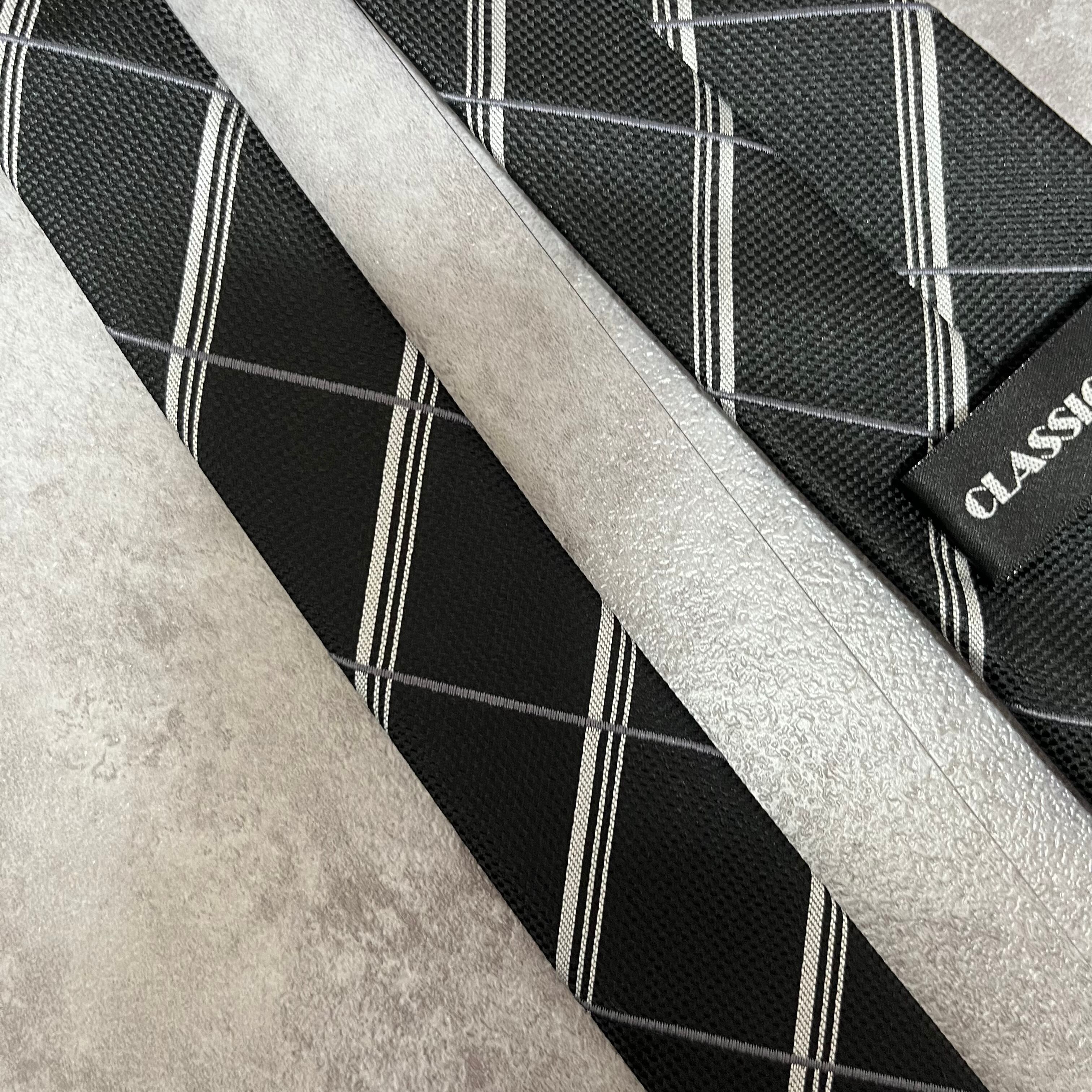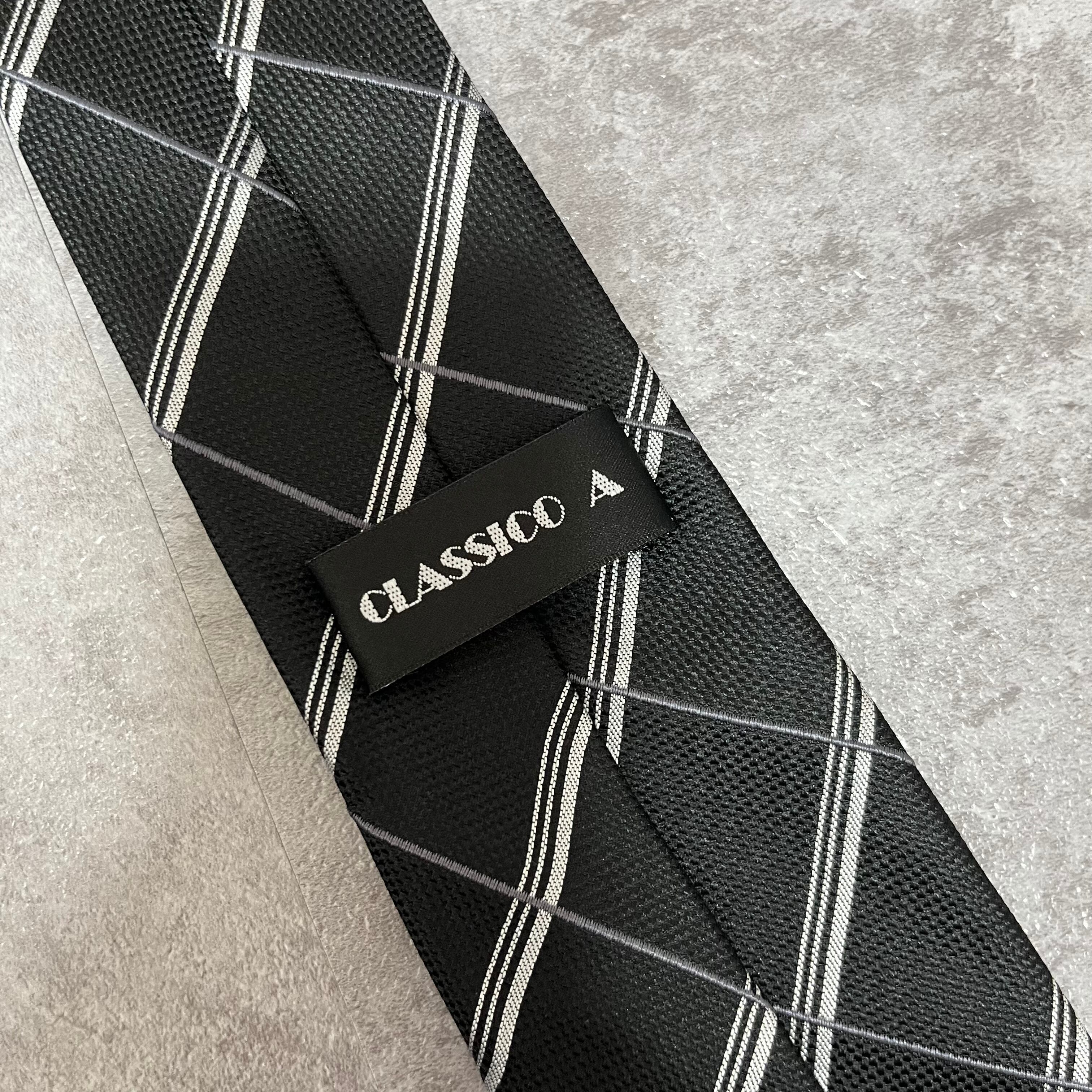 【チェック柄】シンプルネクタイ ブラック シルバー バイカラー ビジネス用