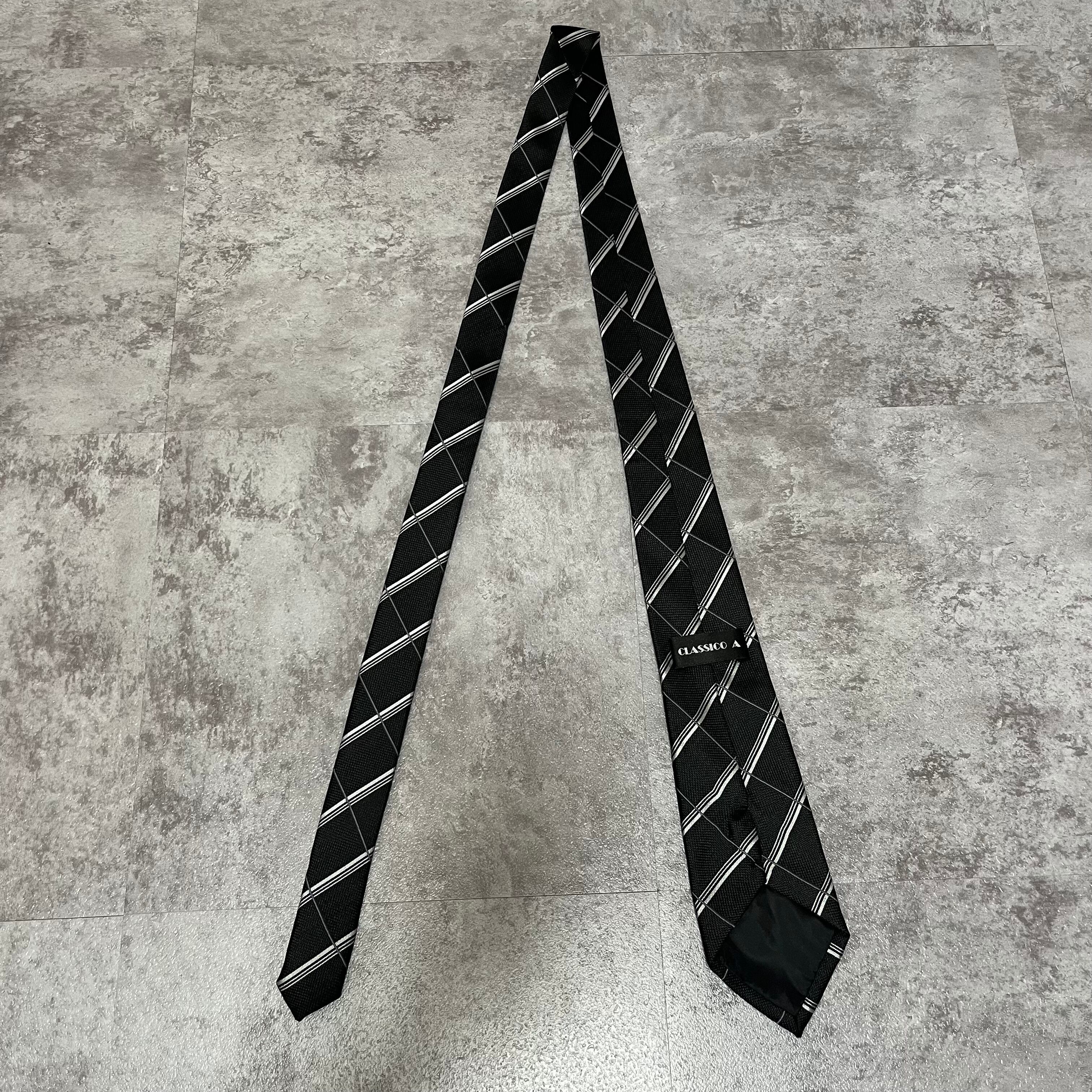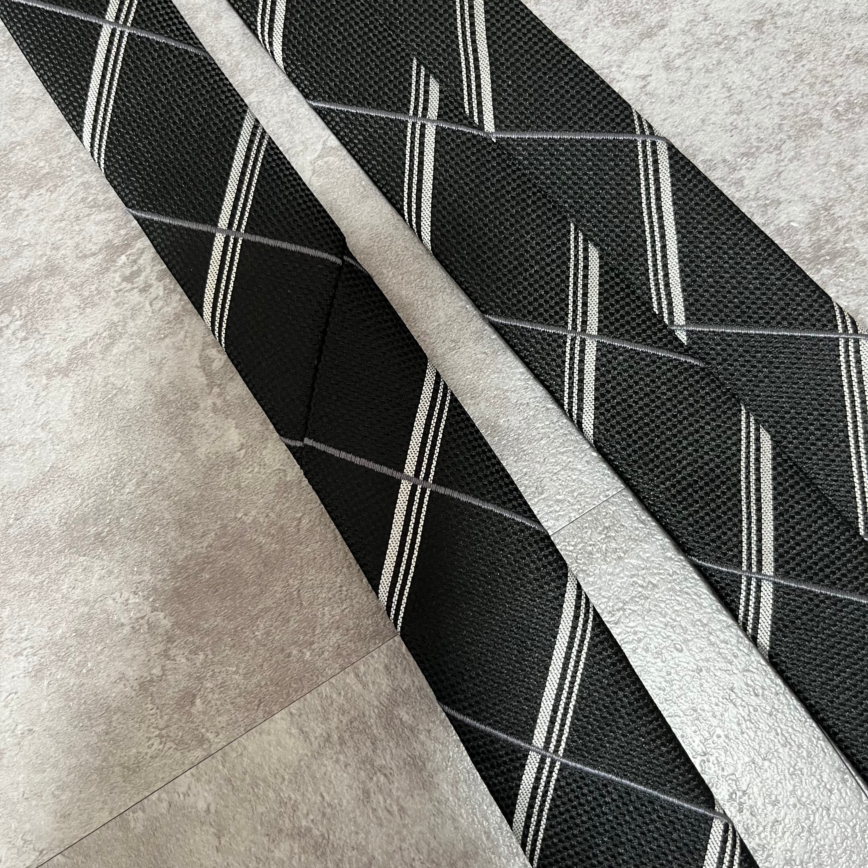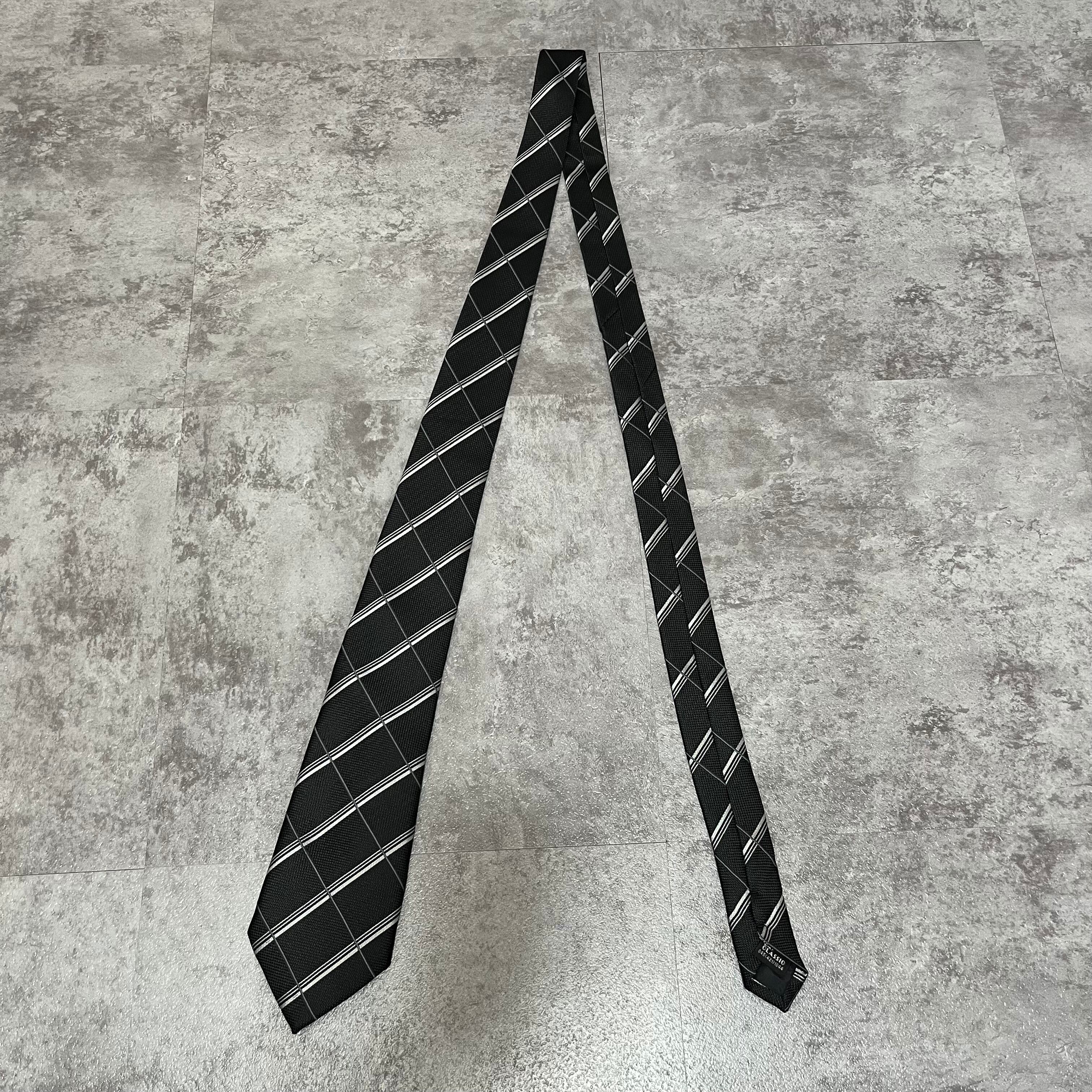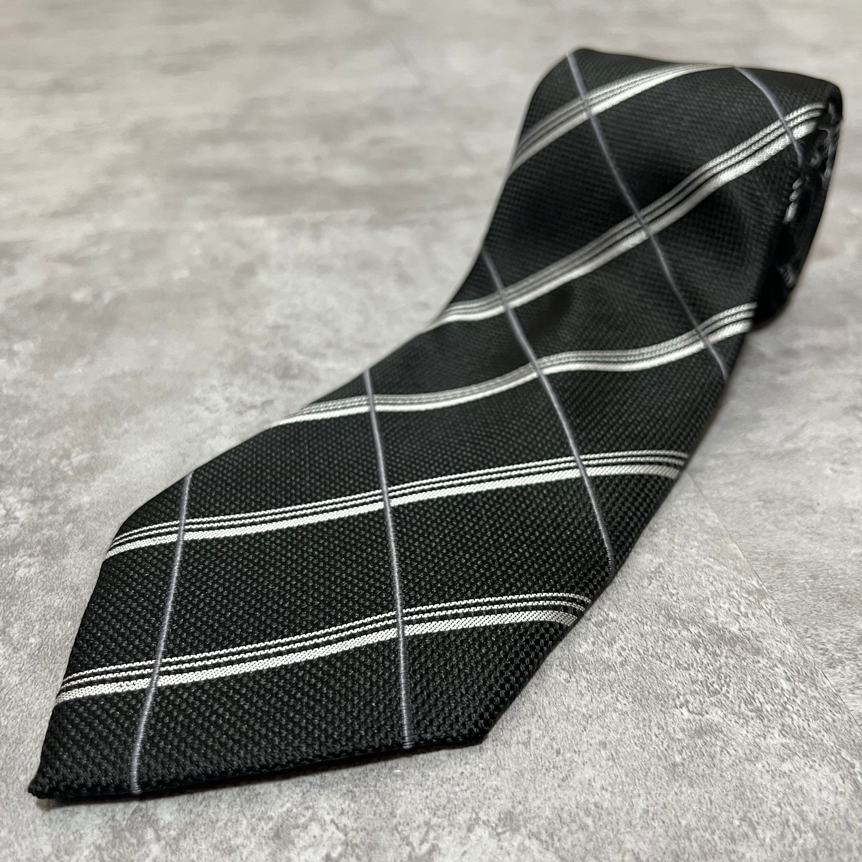 【チェック柄】シンプルネクタイ ブラック シルバー バイカラー ビジネス用