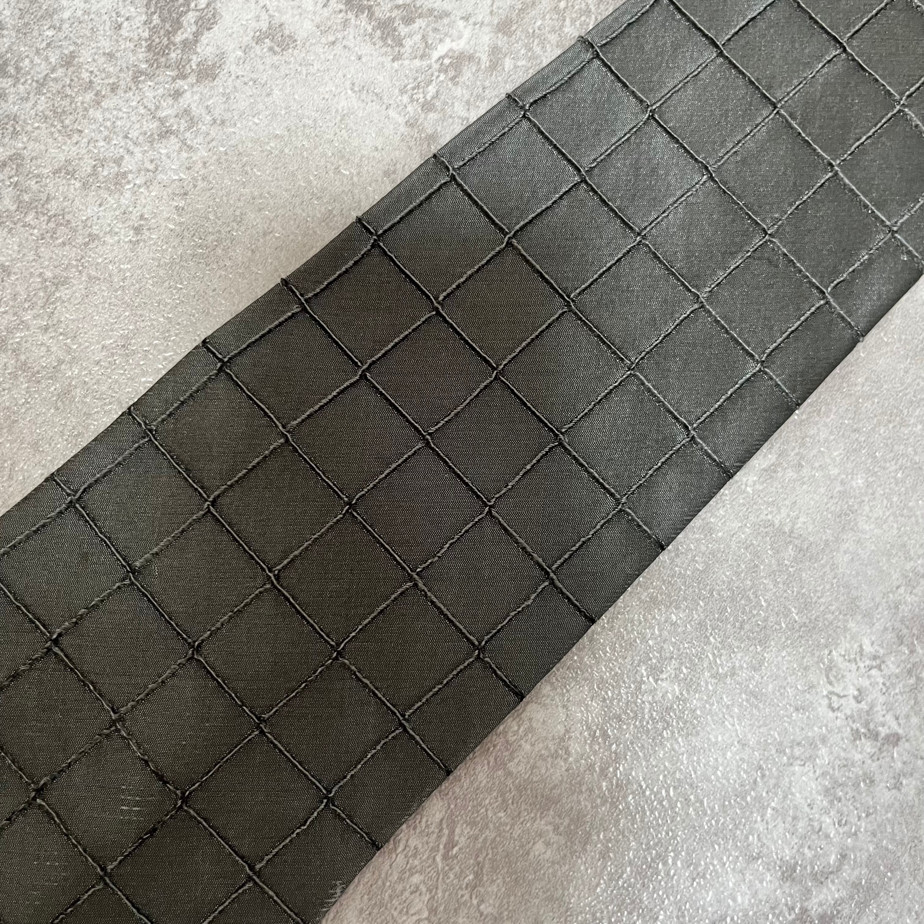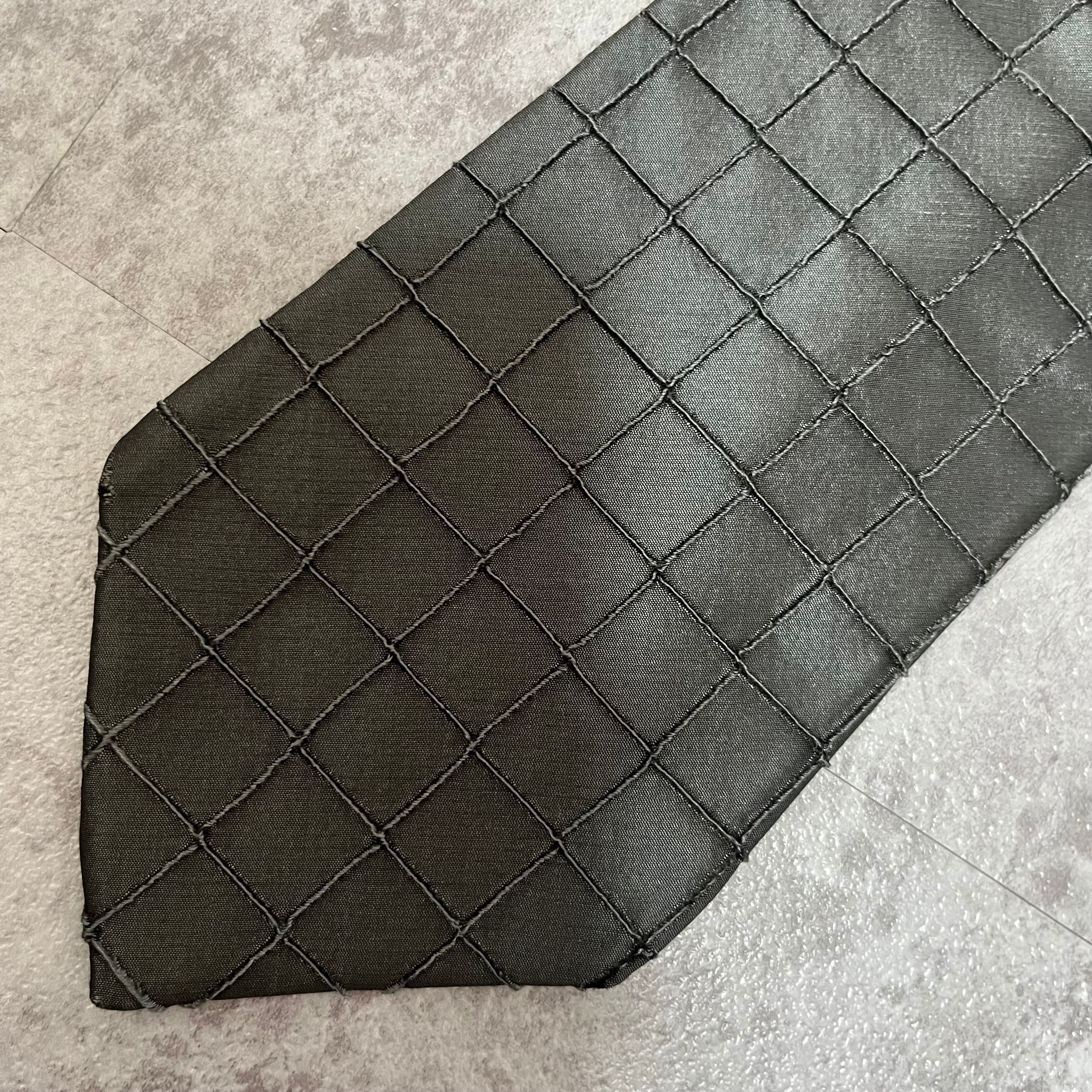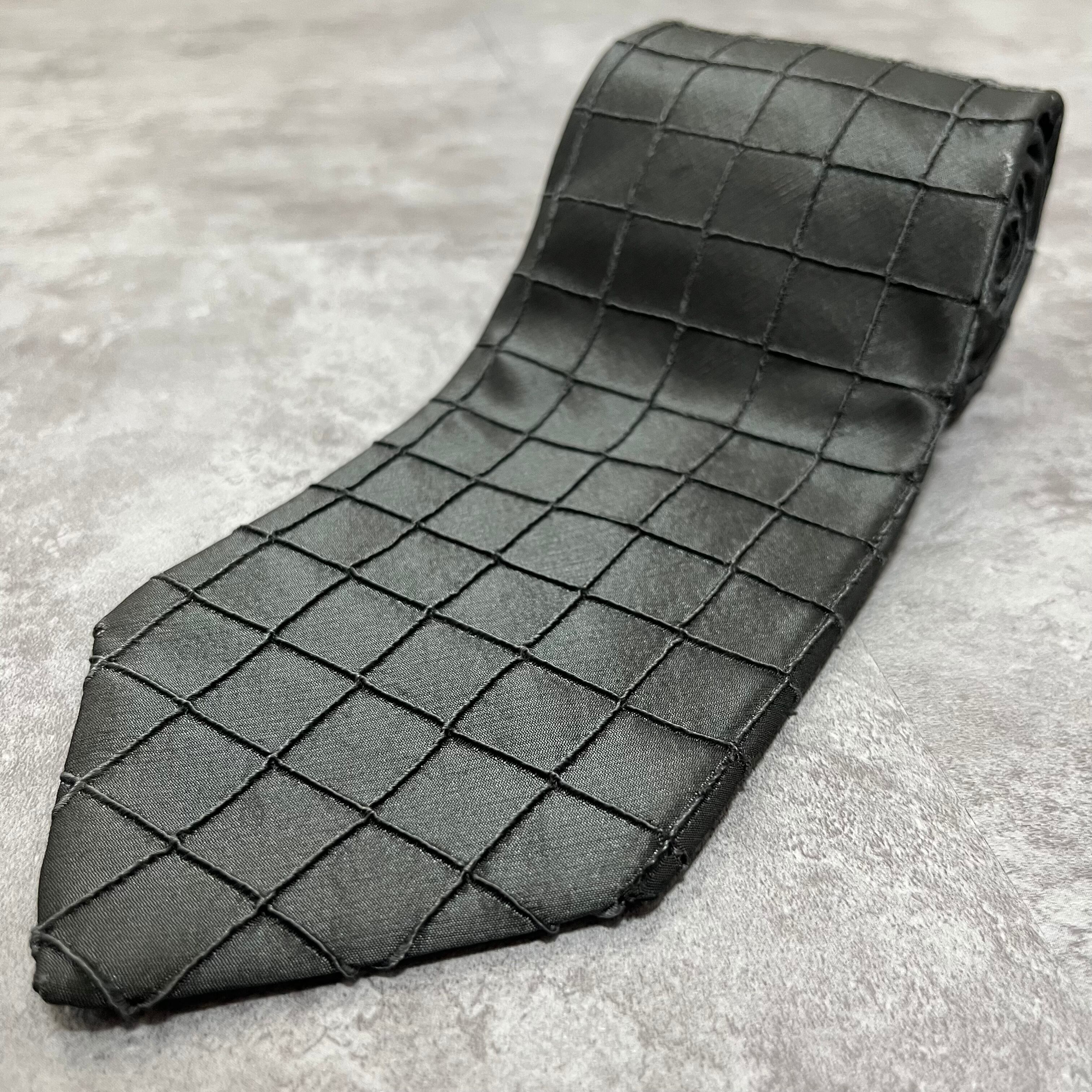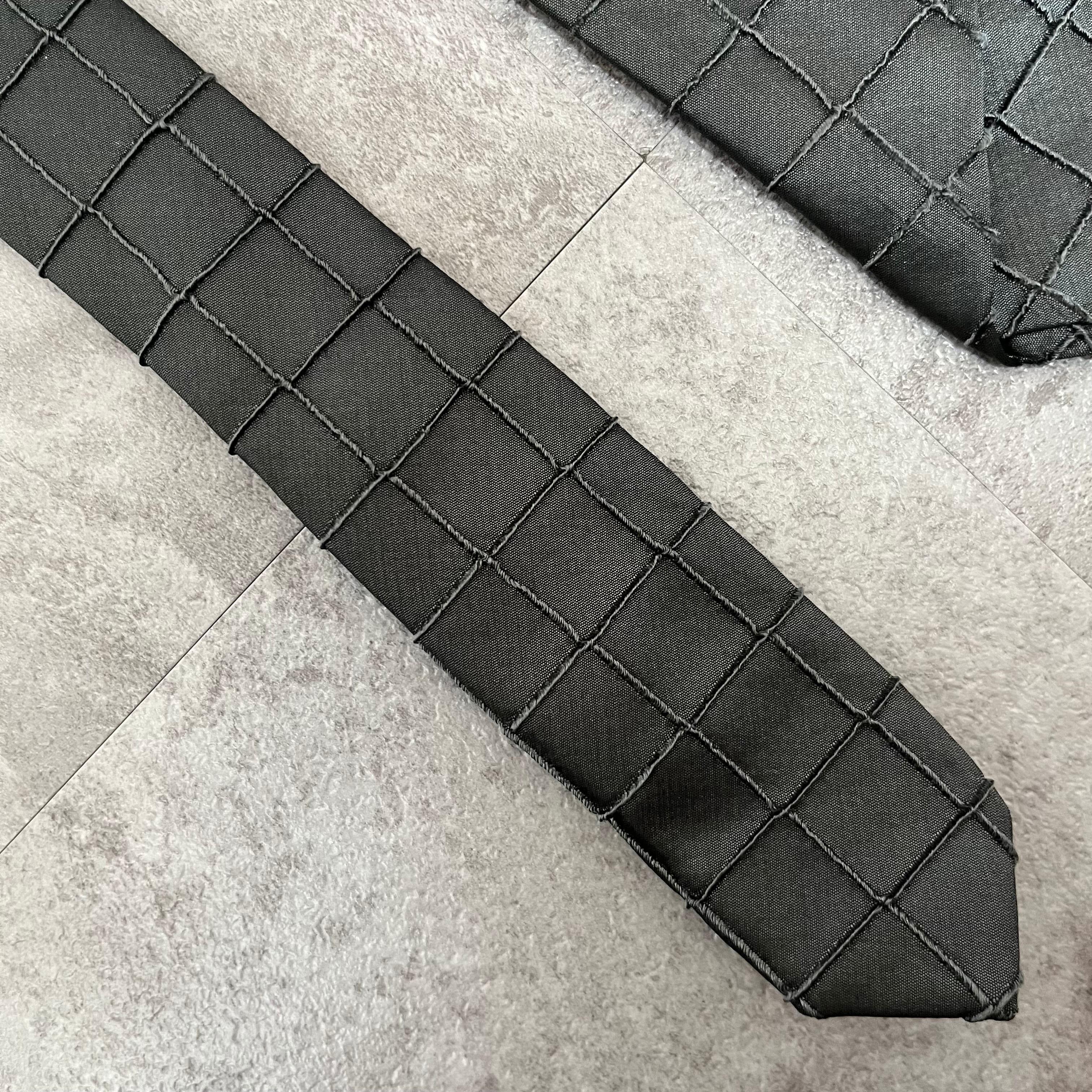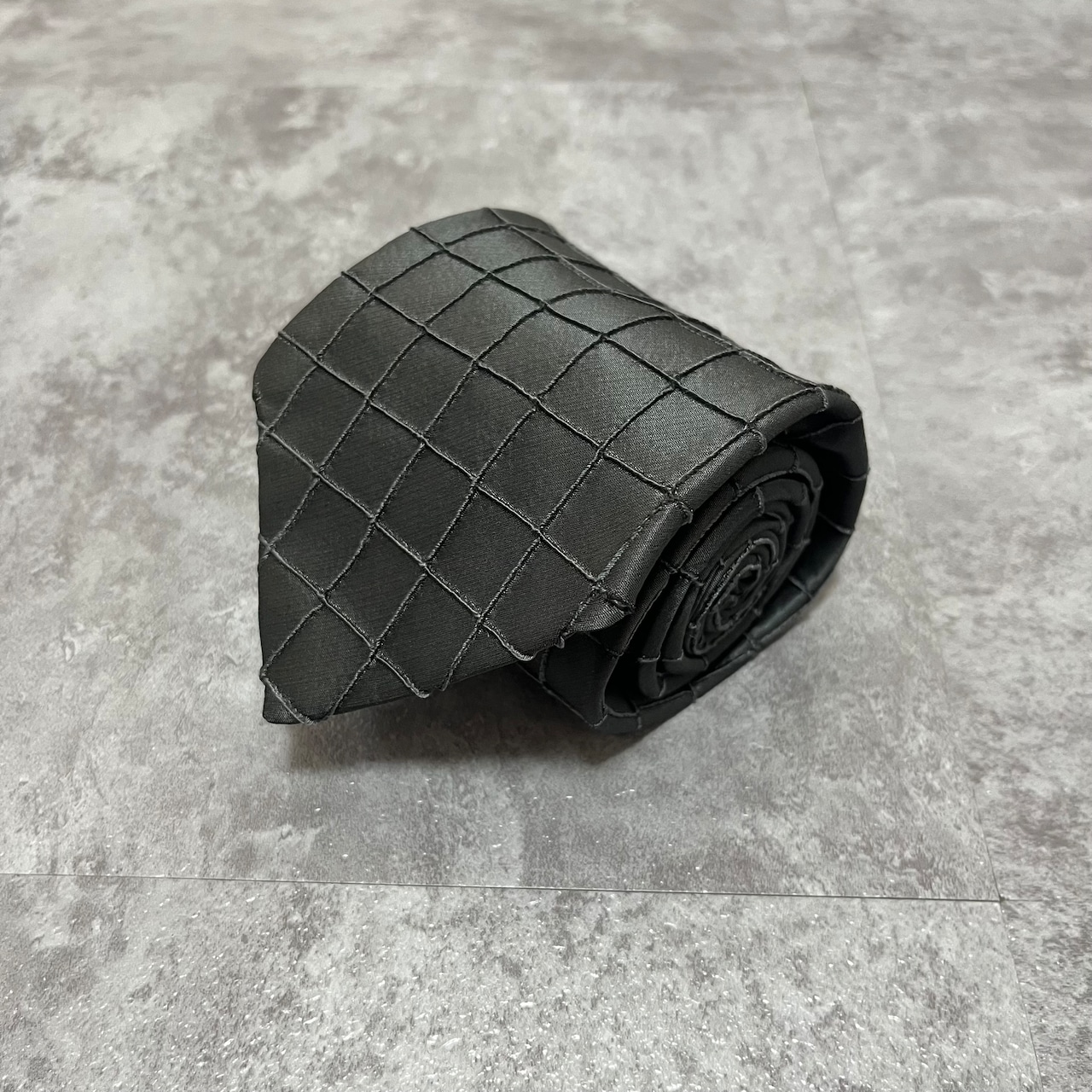 【チェック柄】立体ブロックチェック柄ネクタイ グレー 光沢肉厚 ジャガード 刺繍