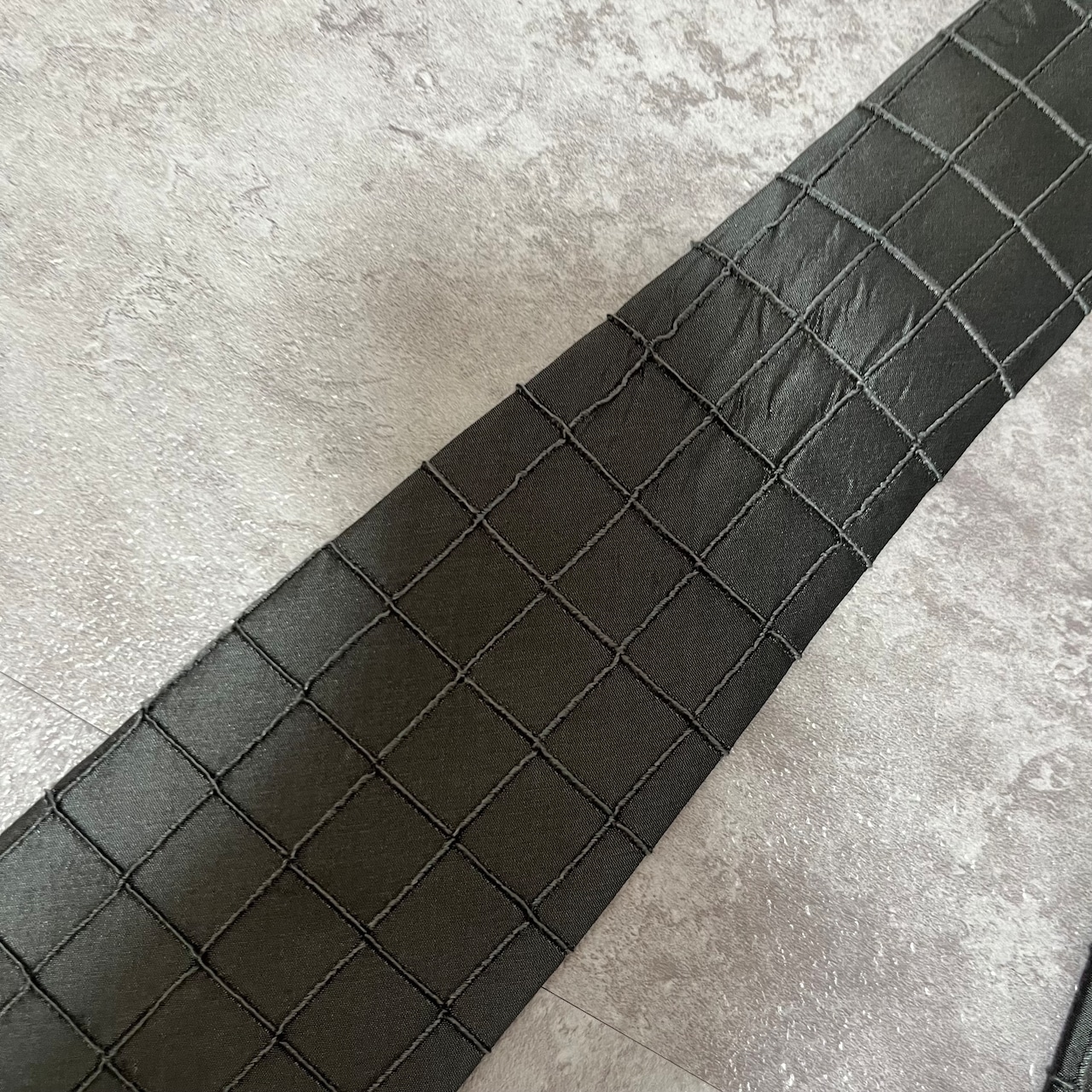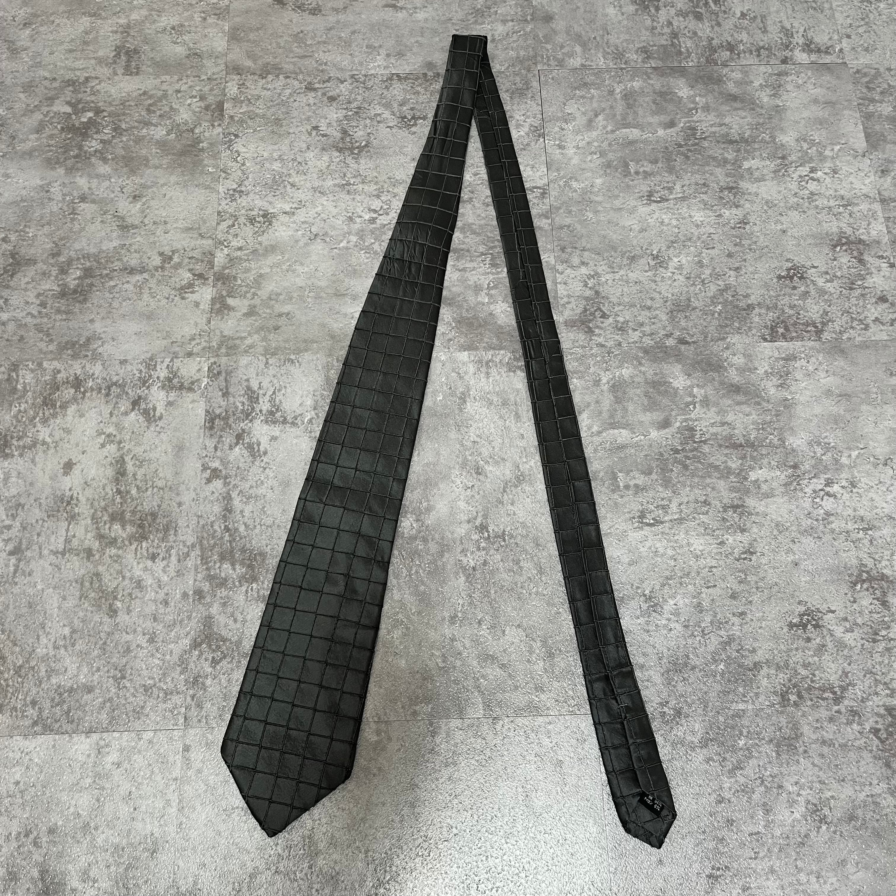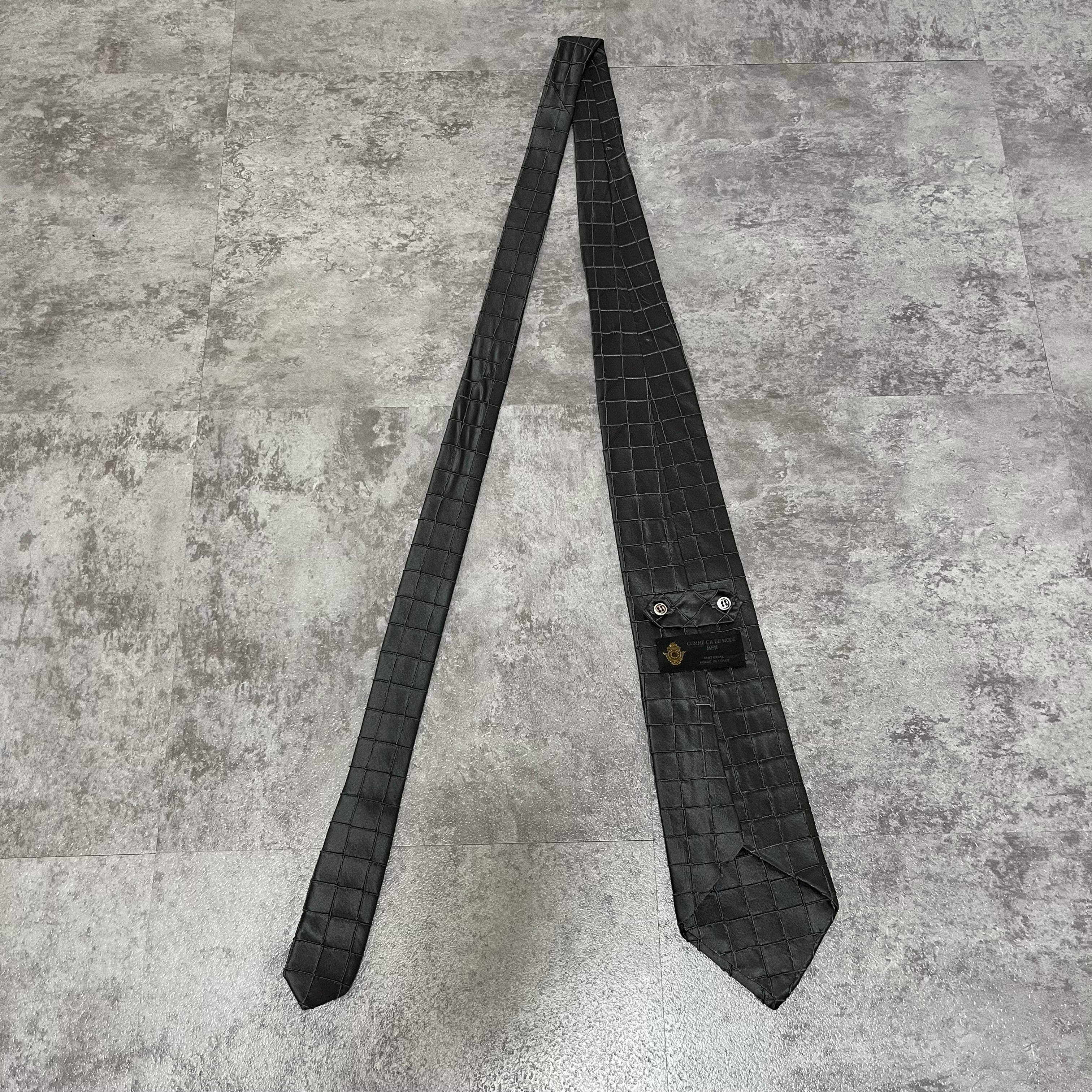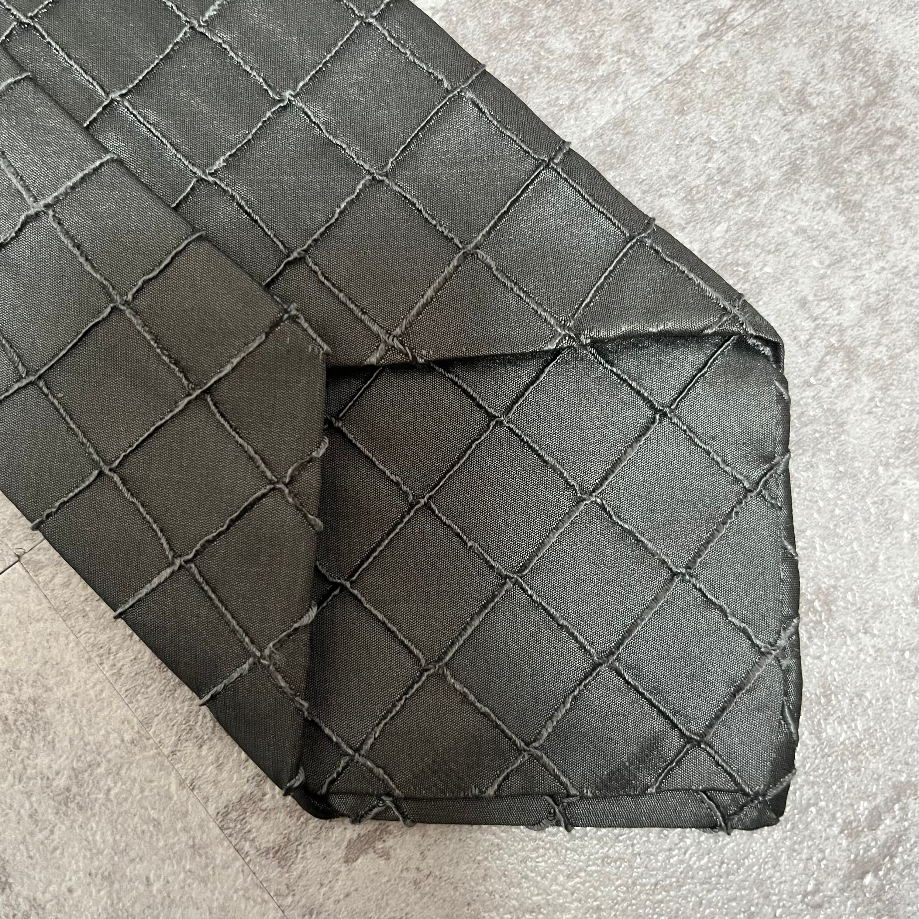【チェック柄】立体ブロックチェック柄ネクタイ グレー 光沢肉厚 ジャガード 刺繍
