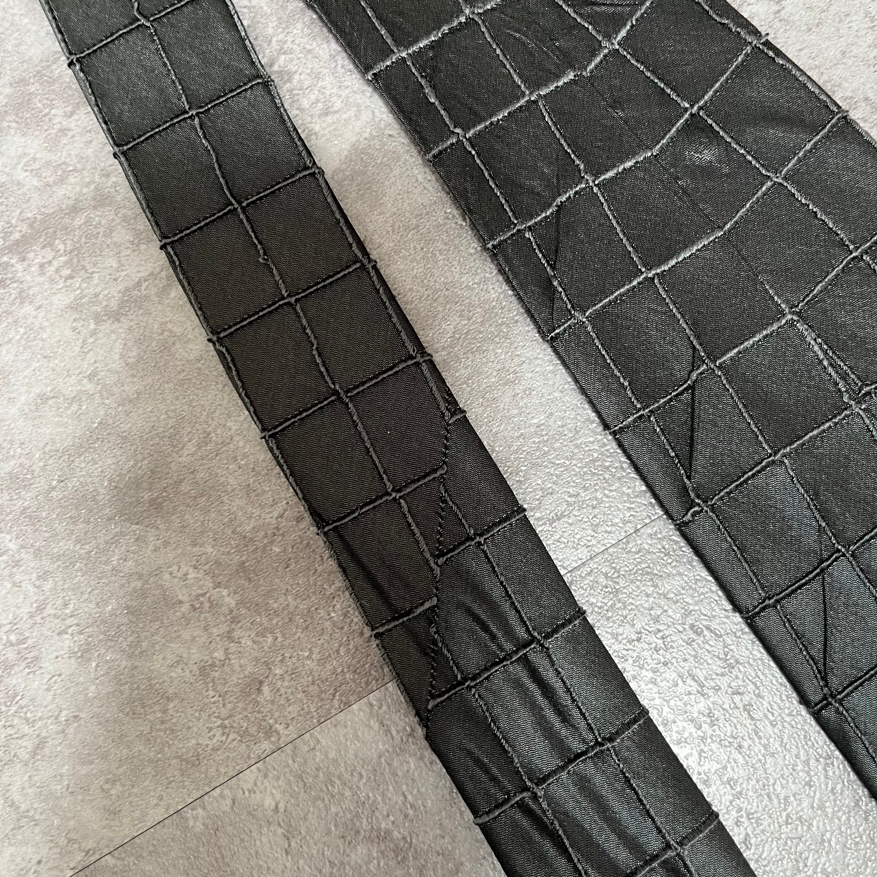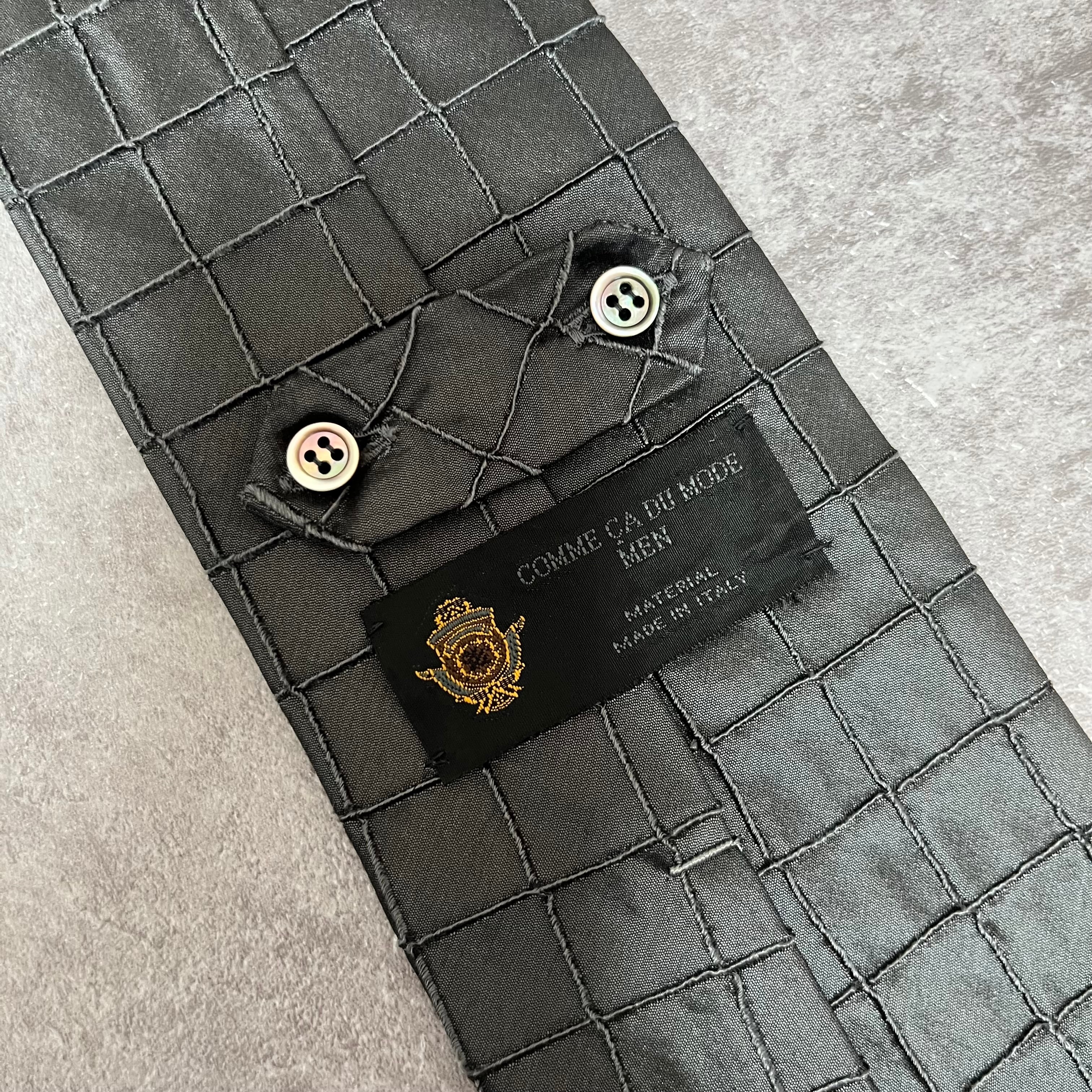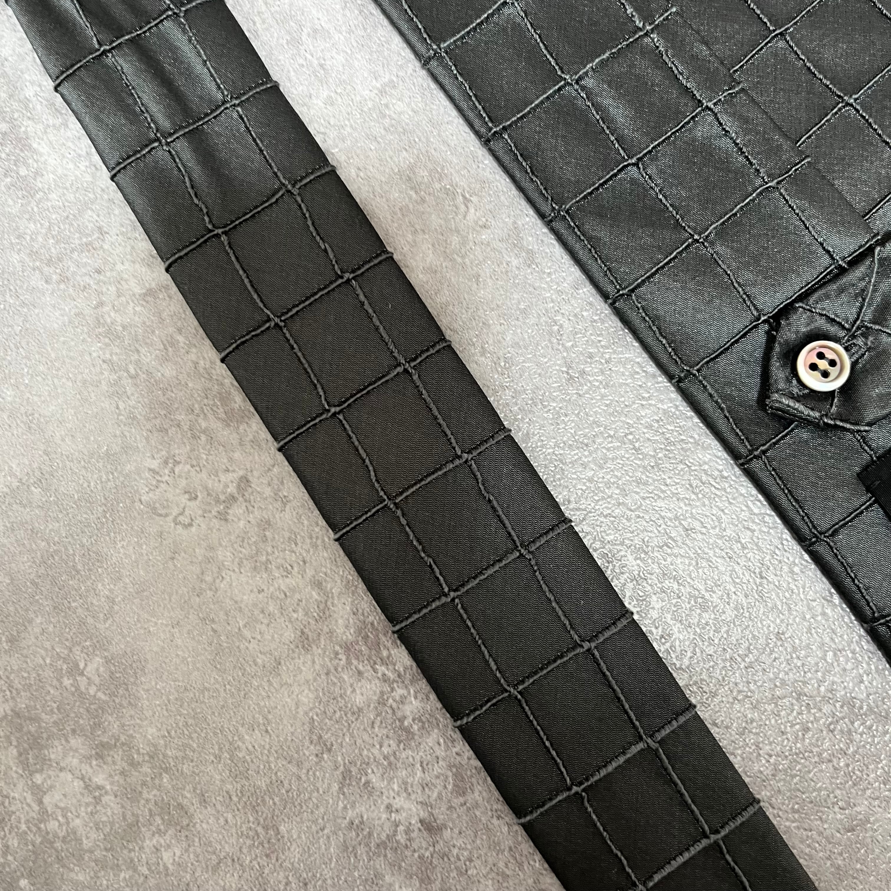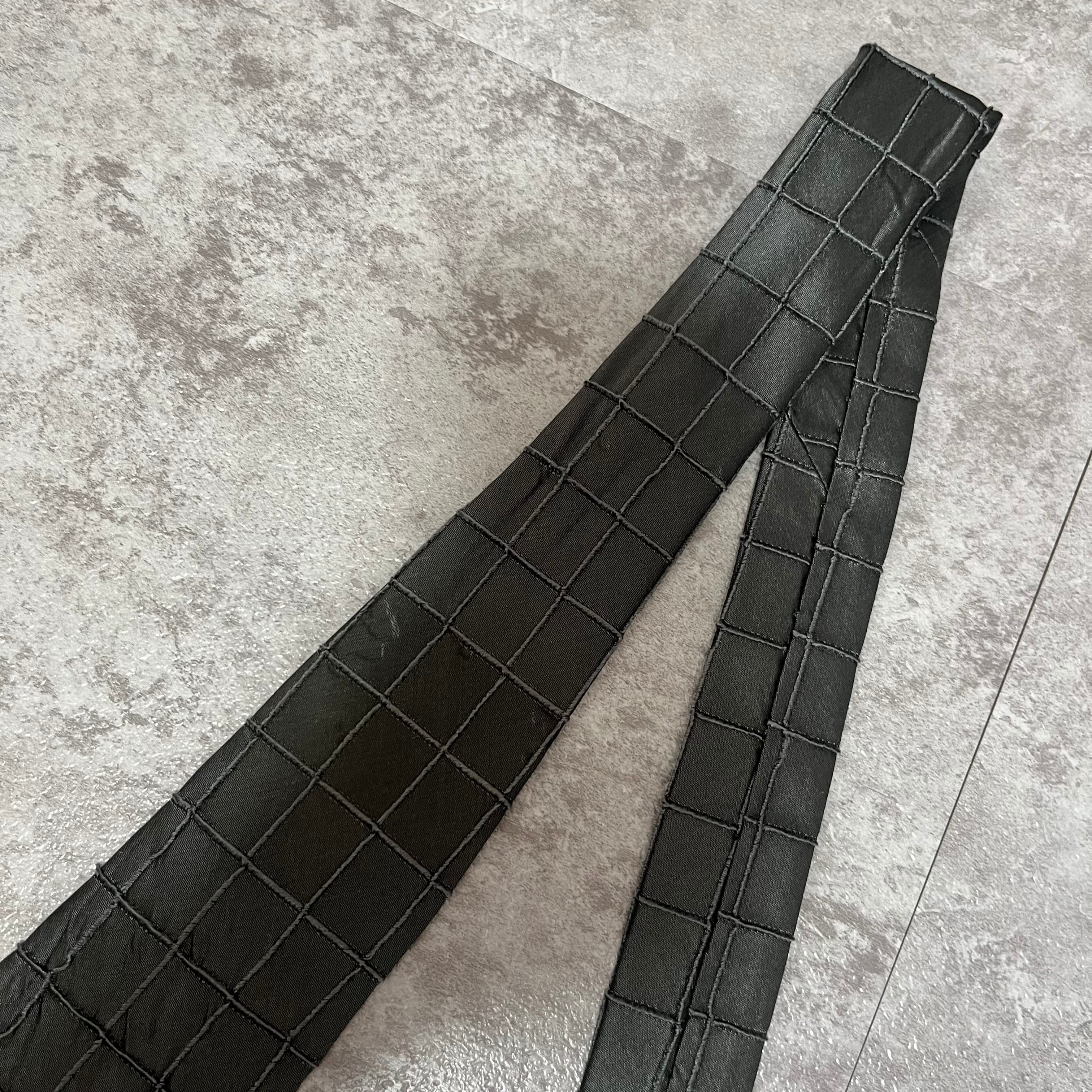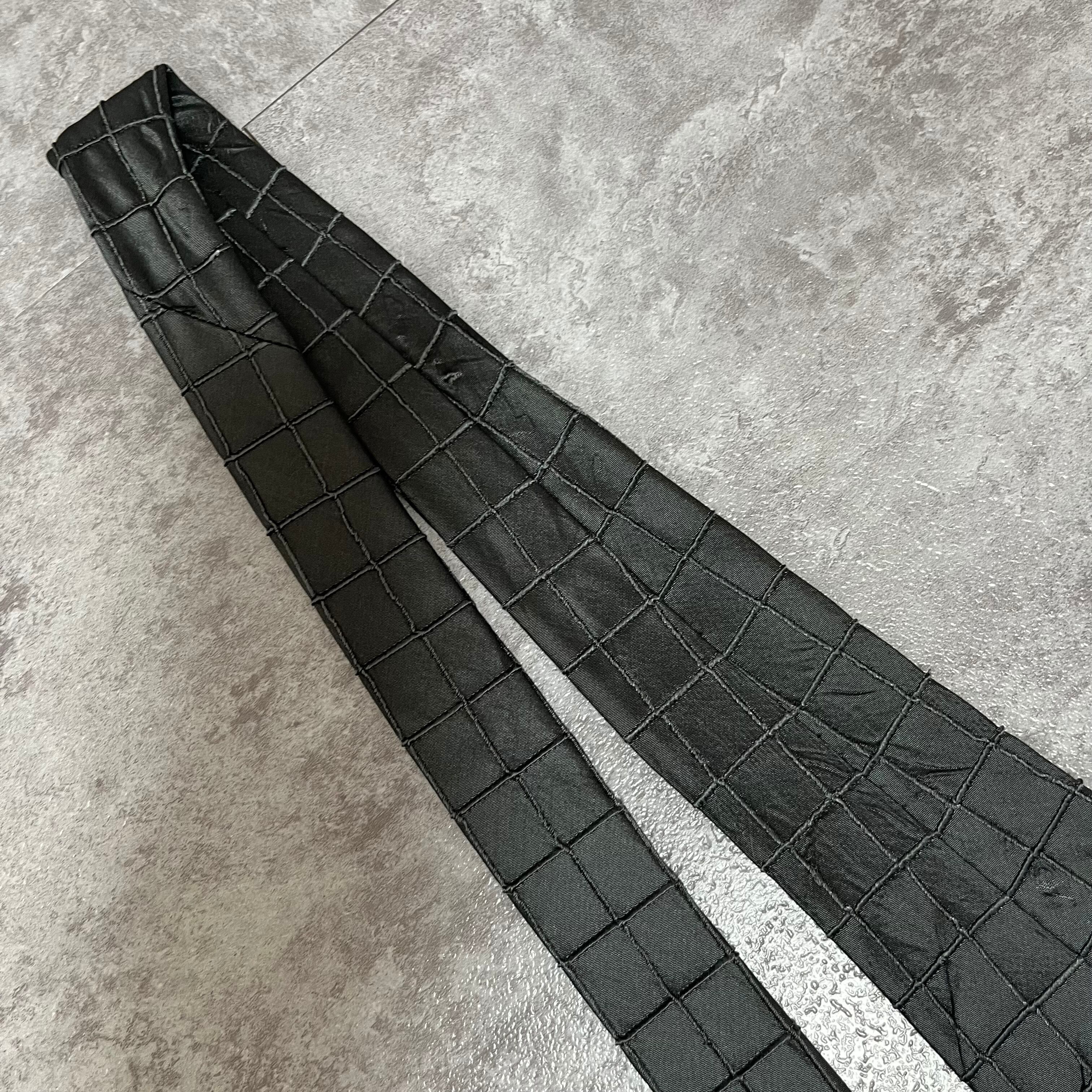 【チェック柄】立体ブロックチェック柄ネクタイ グレー 光沢肉厚 ジャガード 刺繍