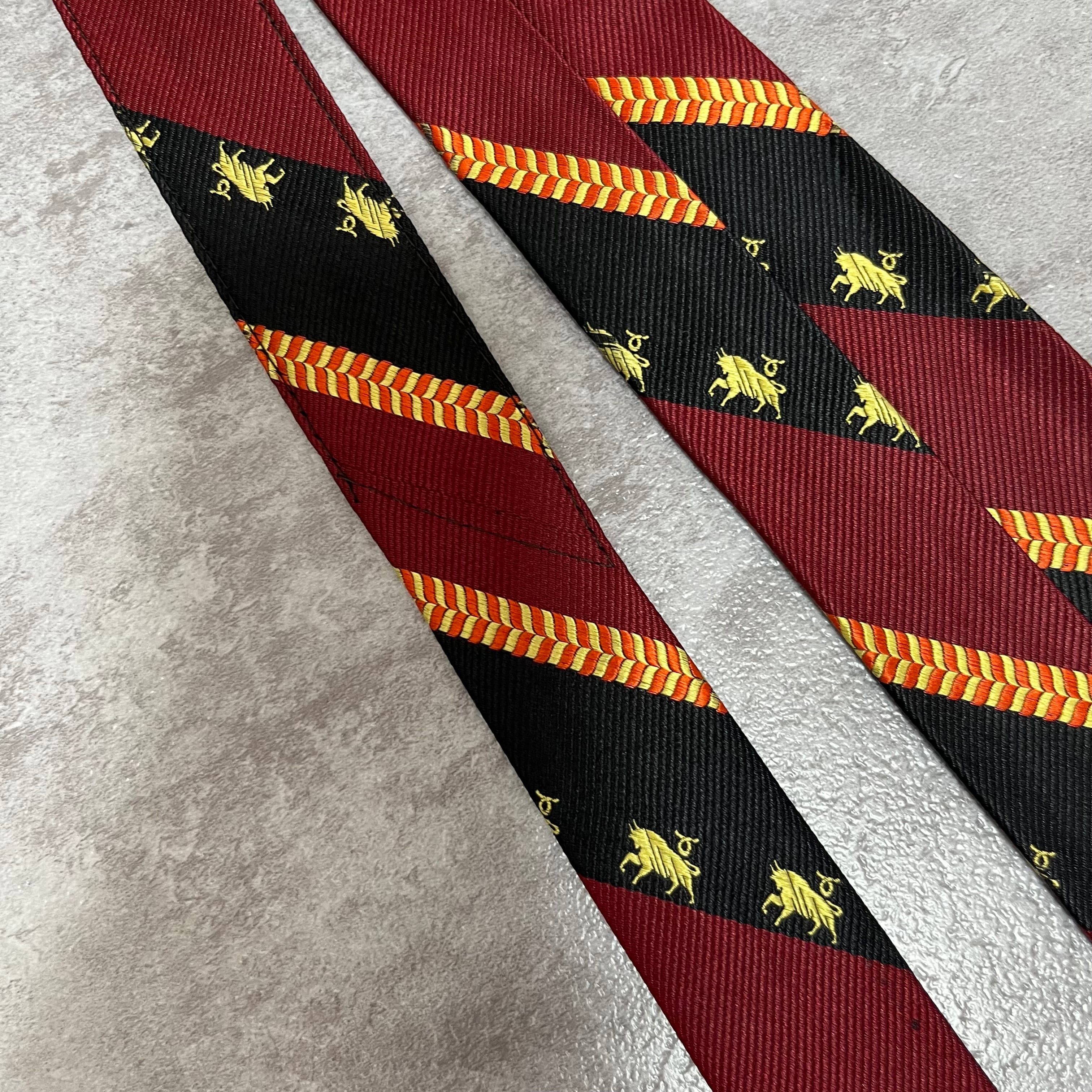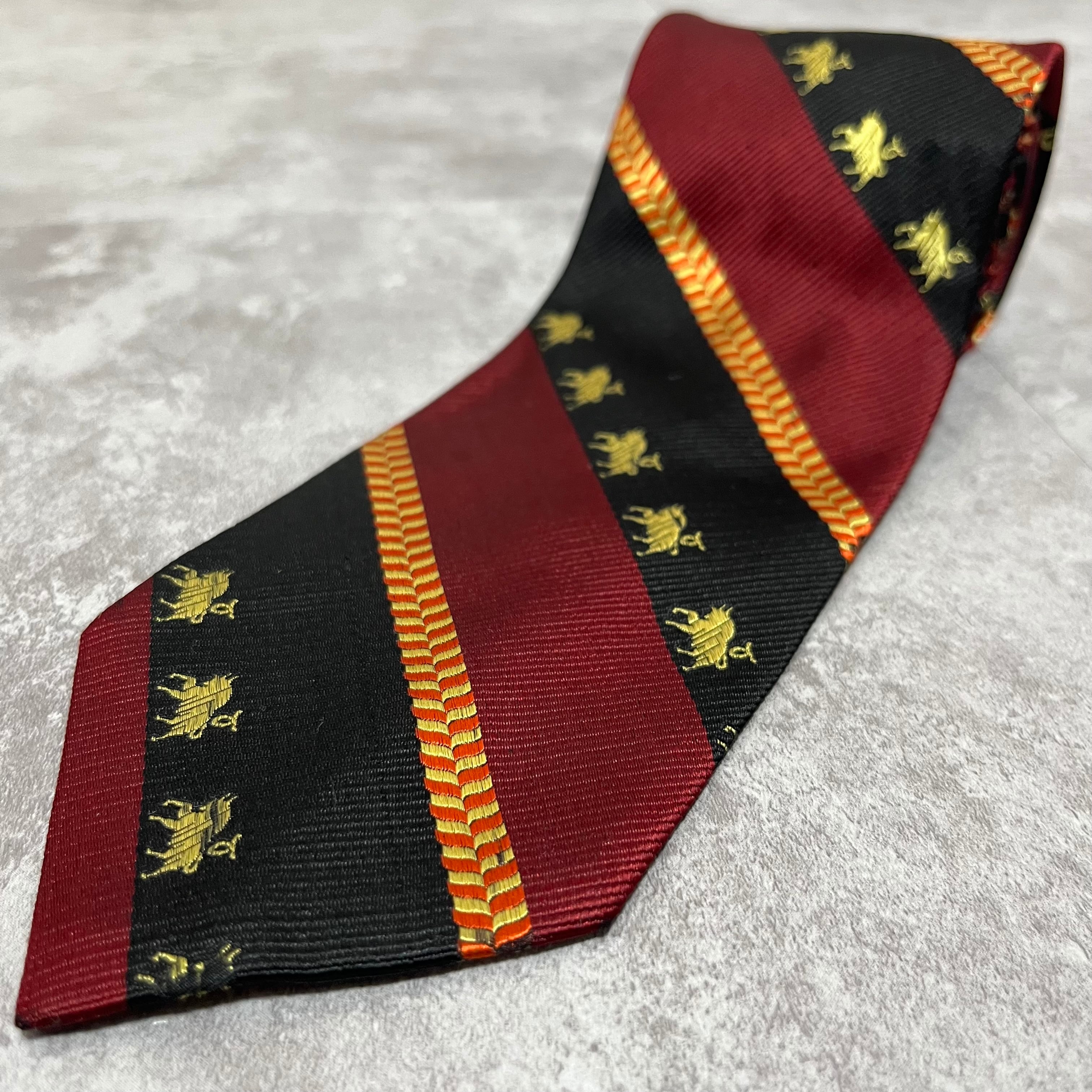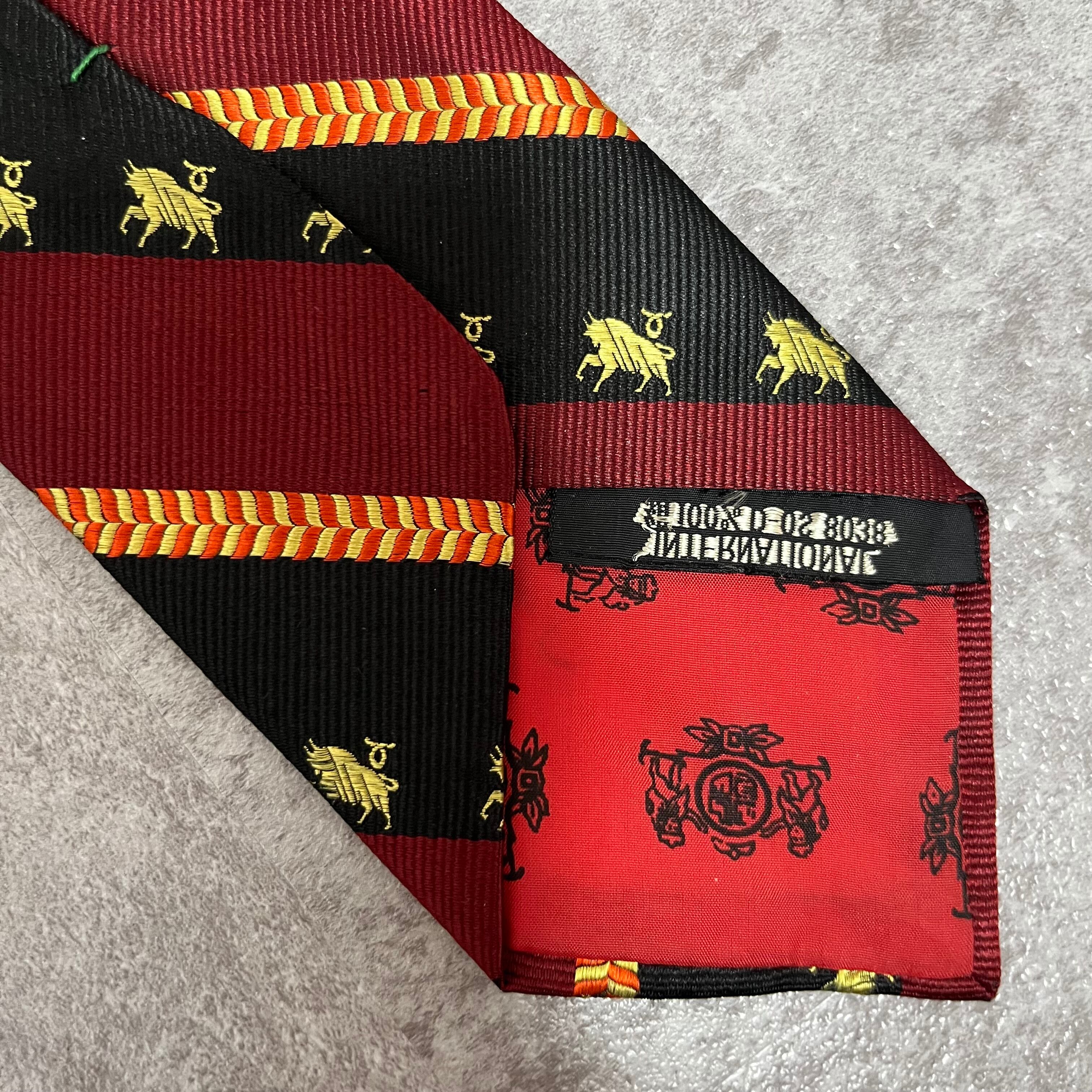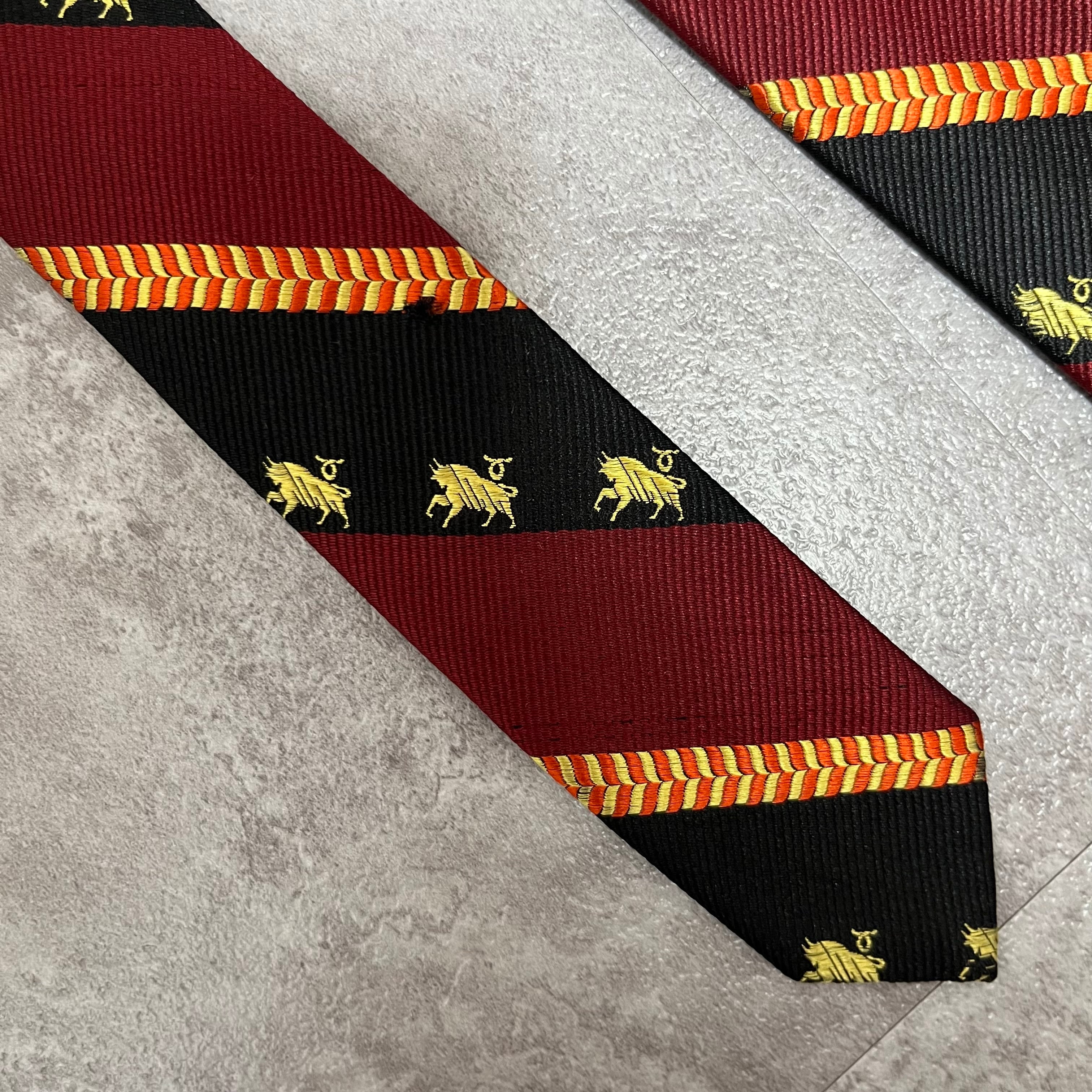 【アニマル柄×ストライプ】レジメンタルストライプネクタイ バイカラー レッド ブラック 闘牛柄 金刺繍 シルク100%