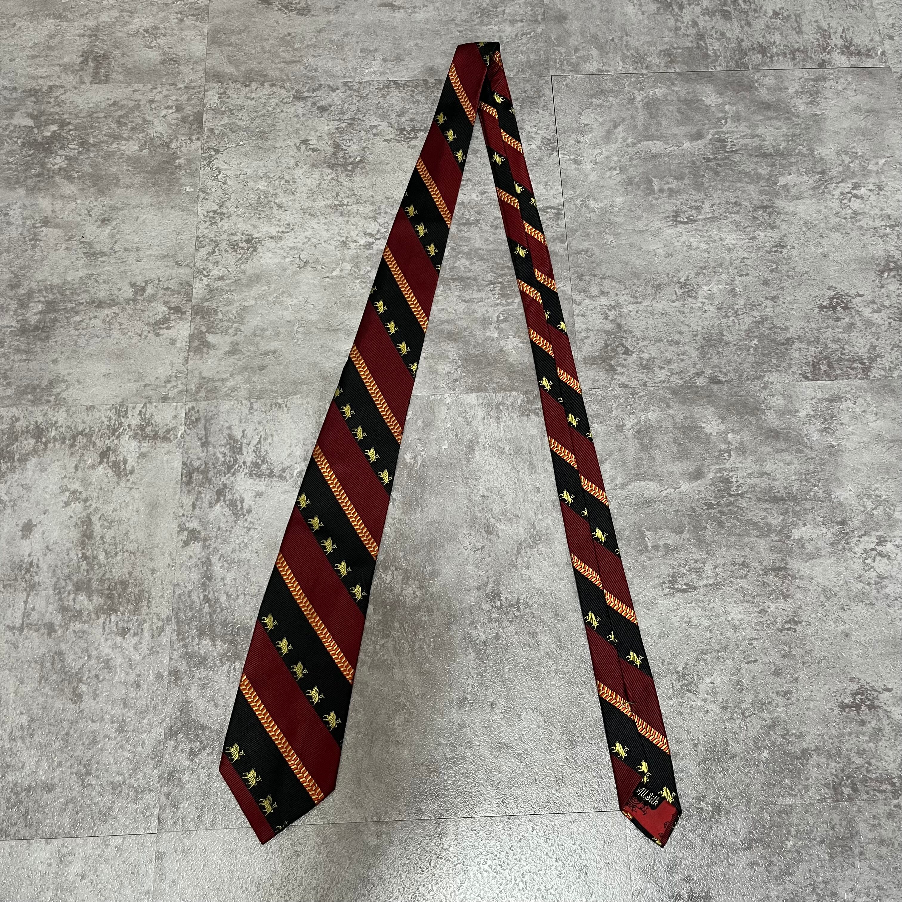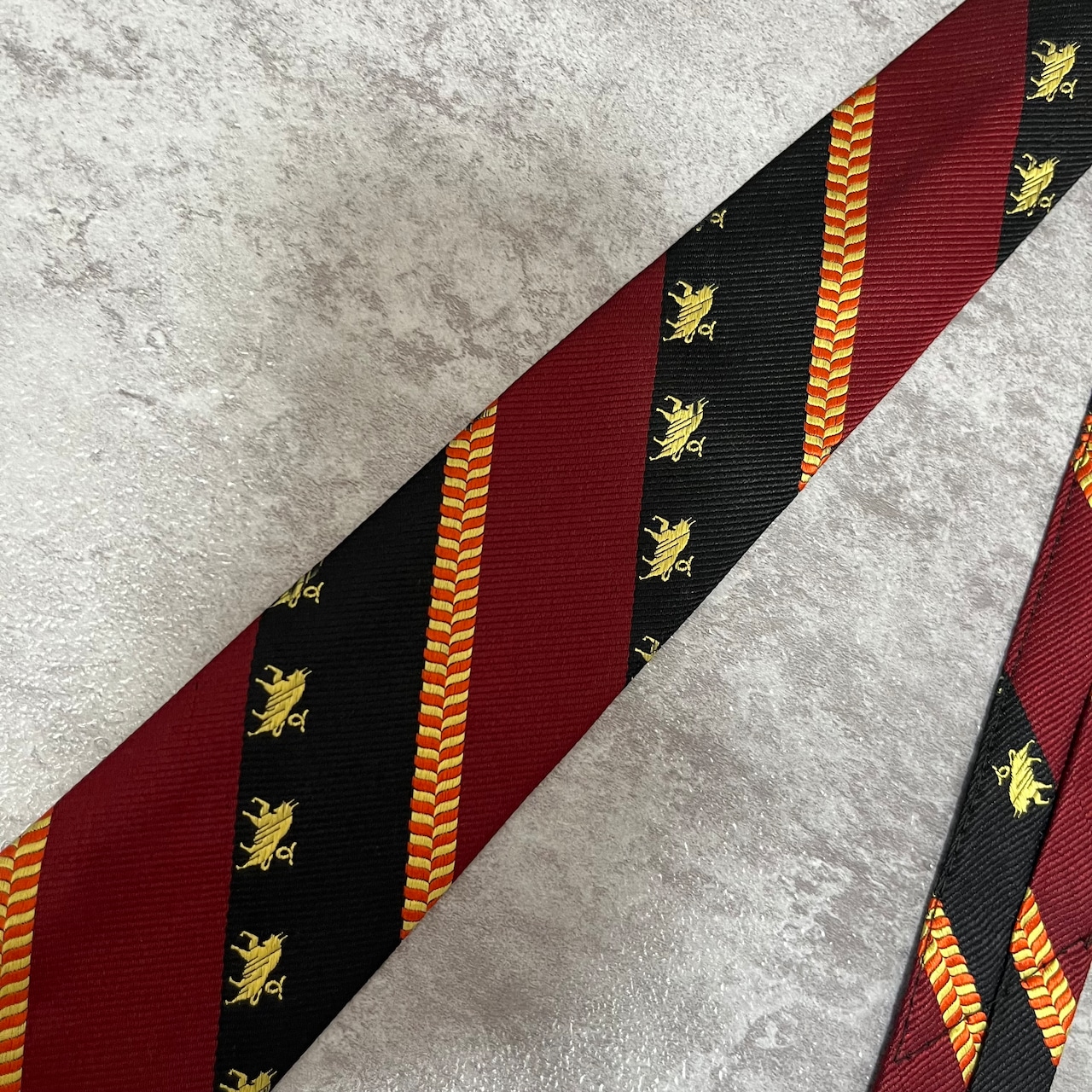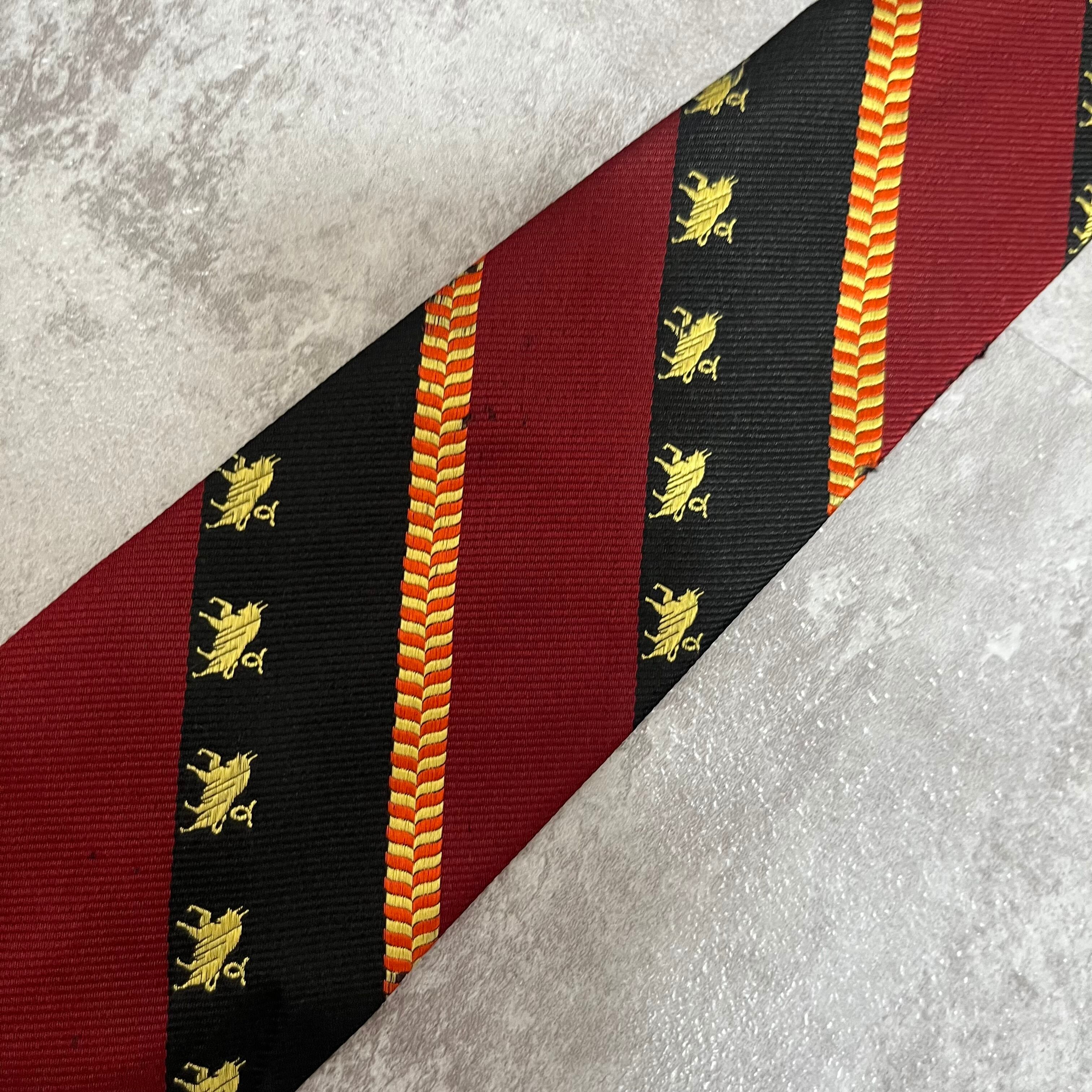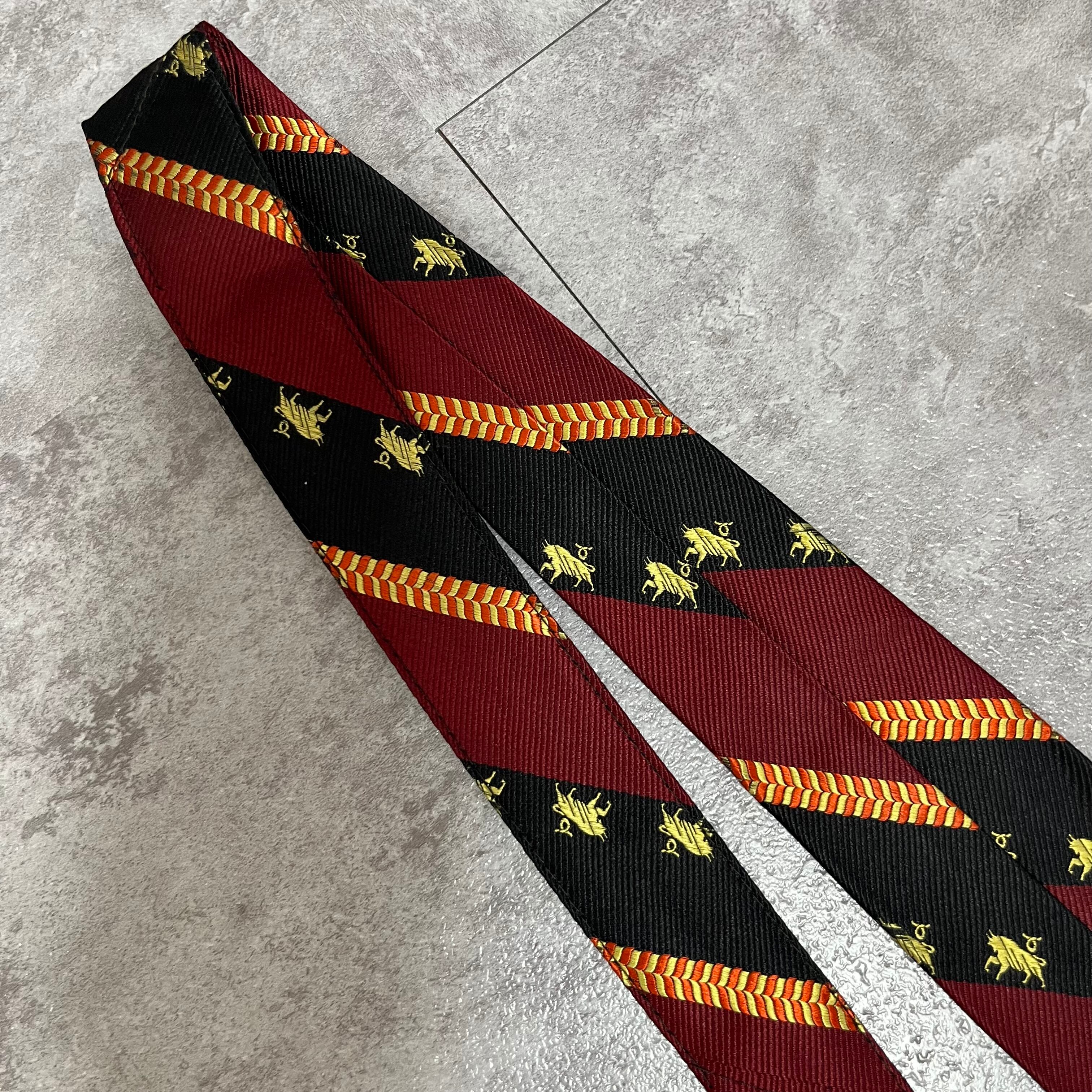 【アニマル柄×ストライプ】レジメンタルストライプネクタイ バイカラー レッド ブラック 闘牛柄 金刺繍 シルク100%