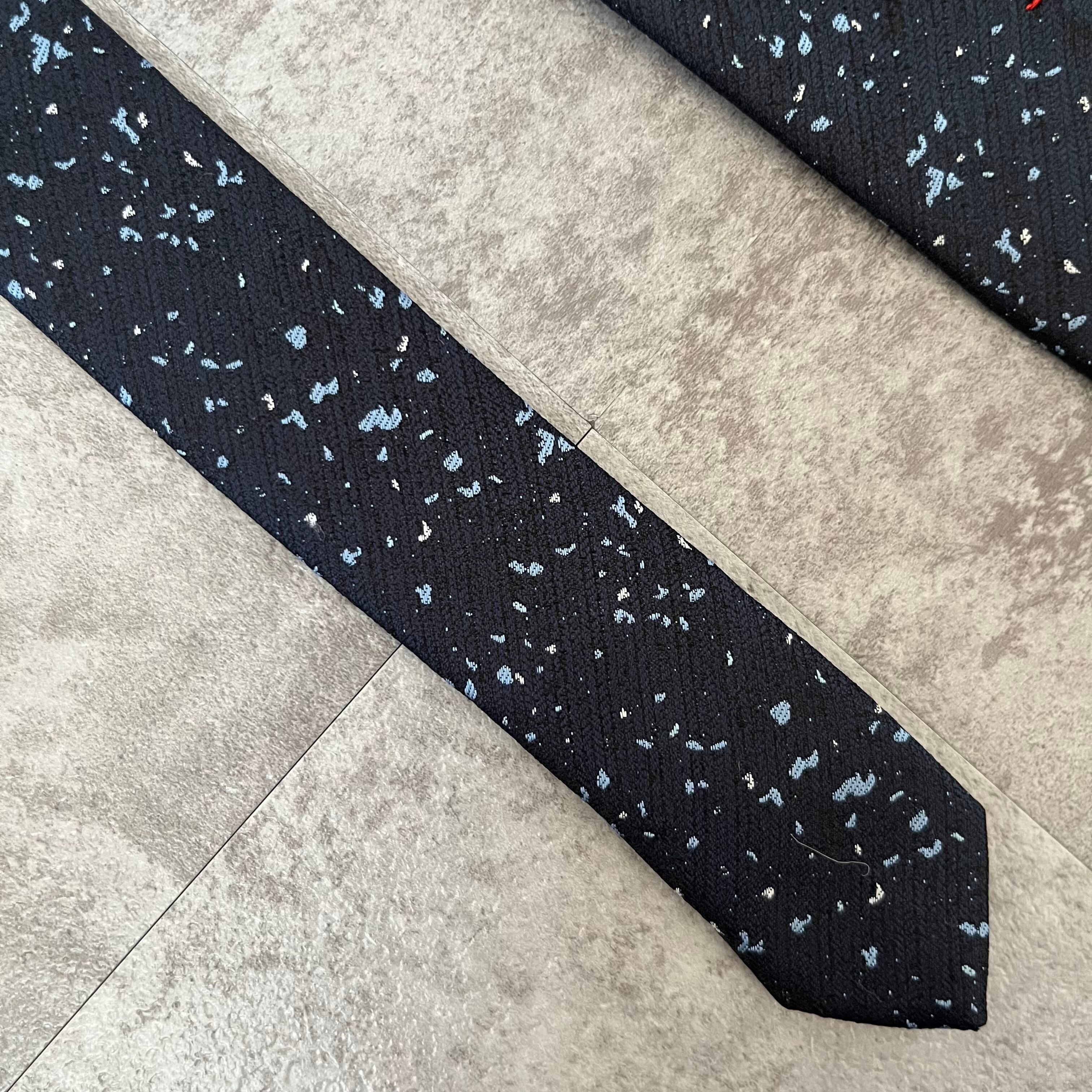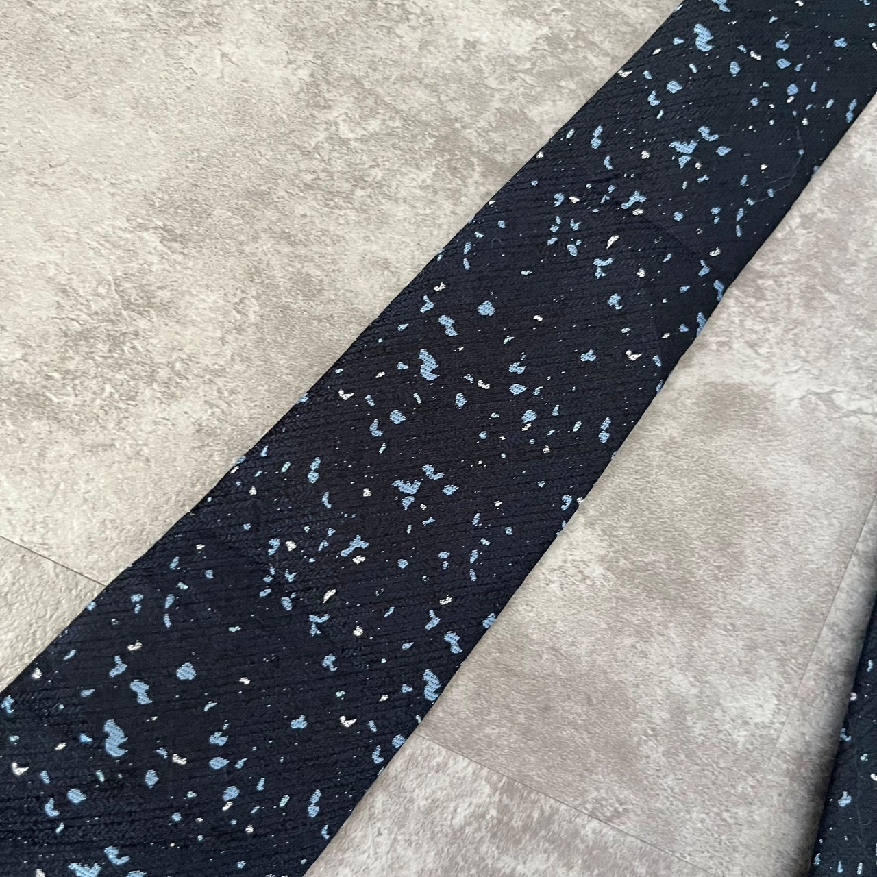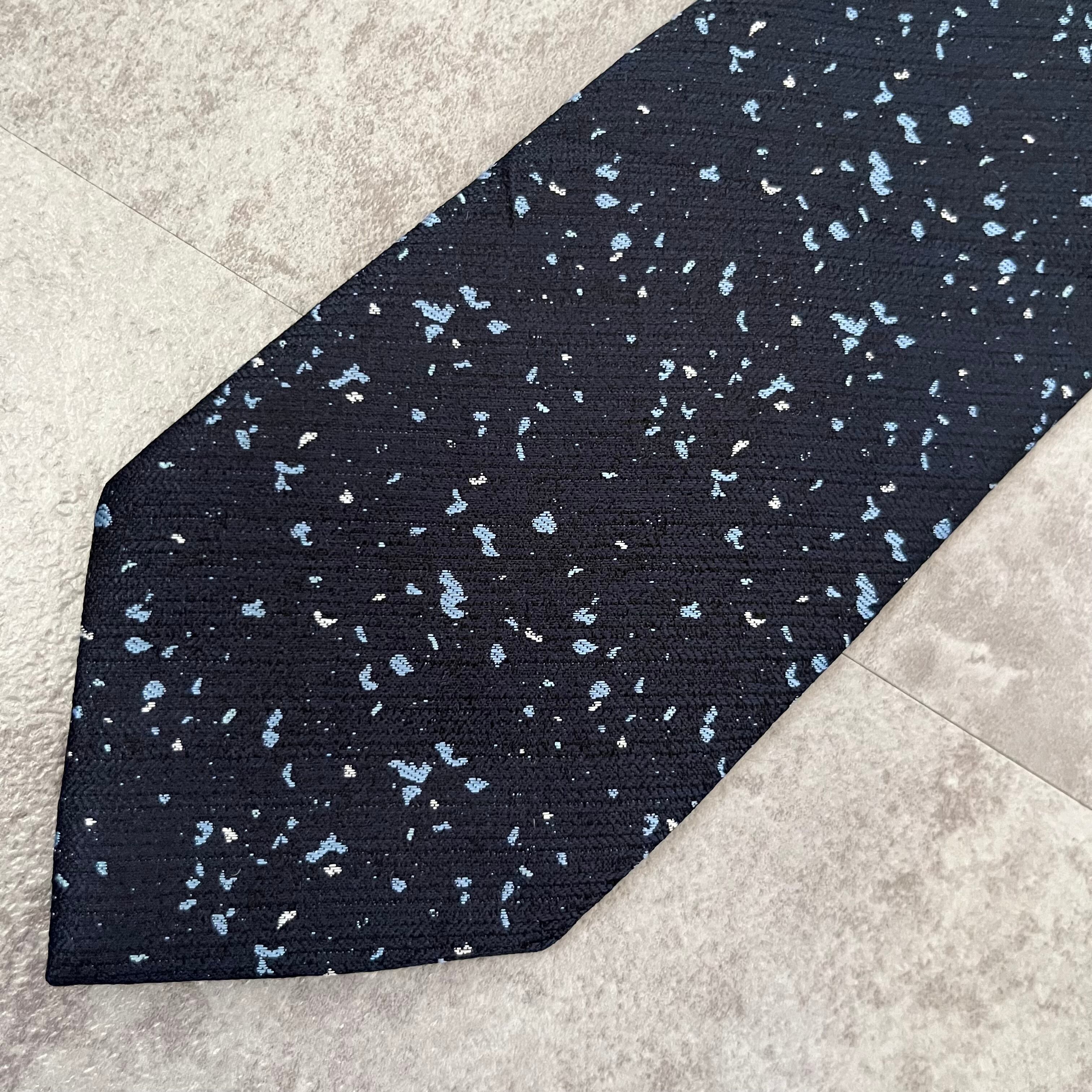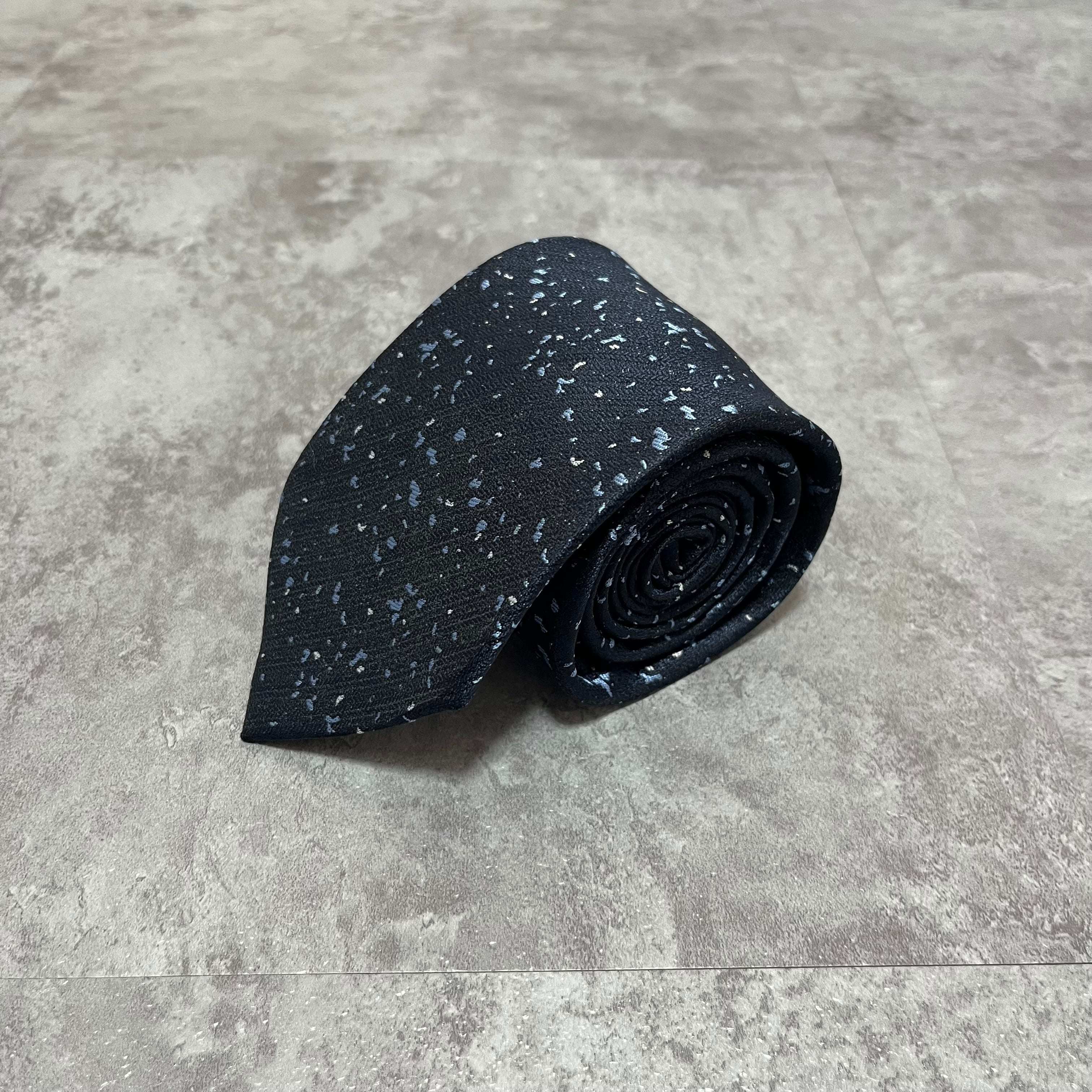 【ペイントジャガード】モザイク柄ネクタイ ネイビー ブルー イエロー 光沢 ビジネス向け