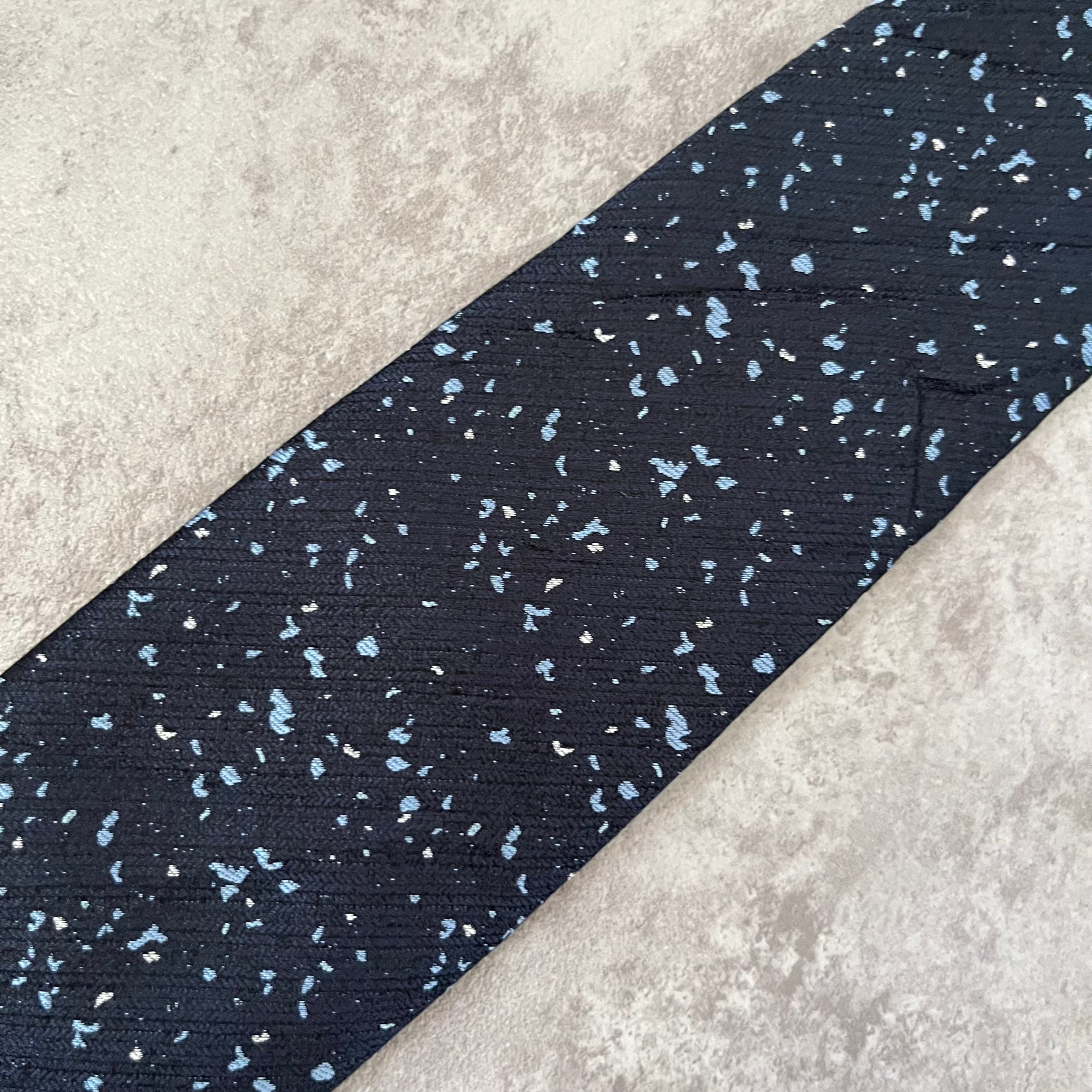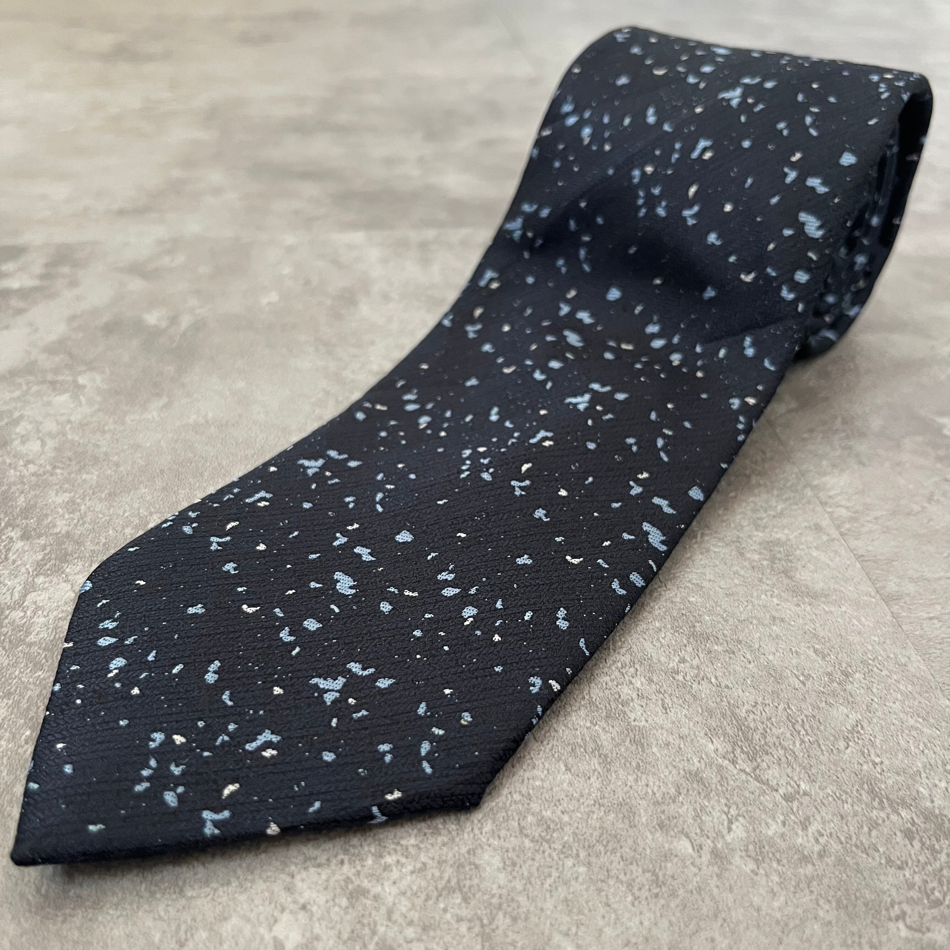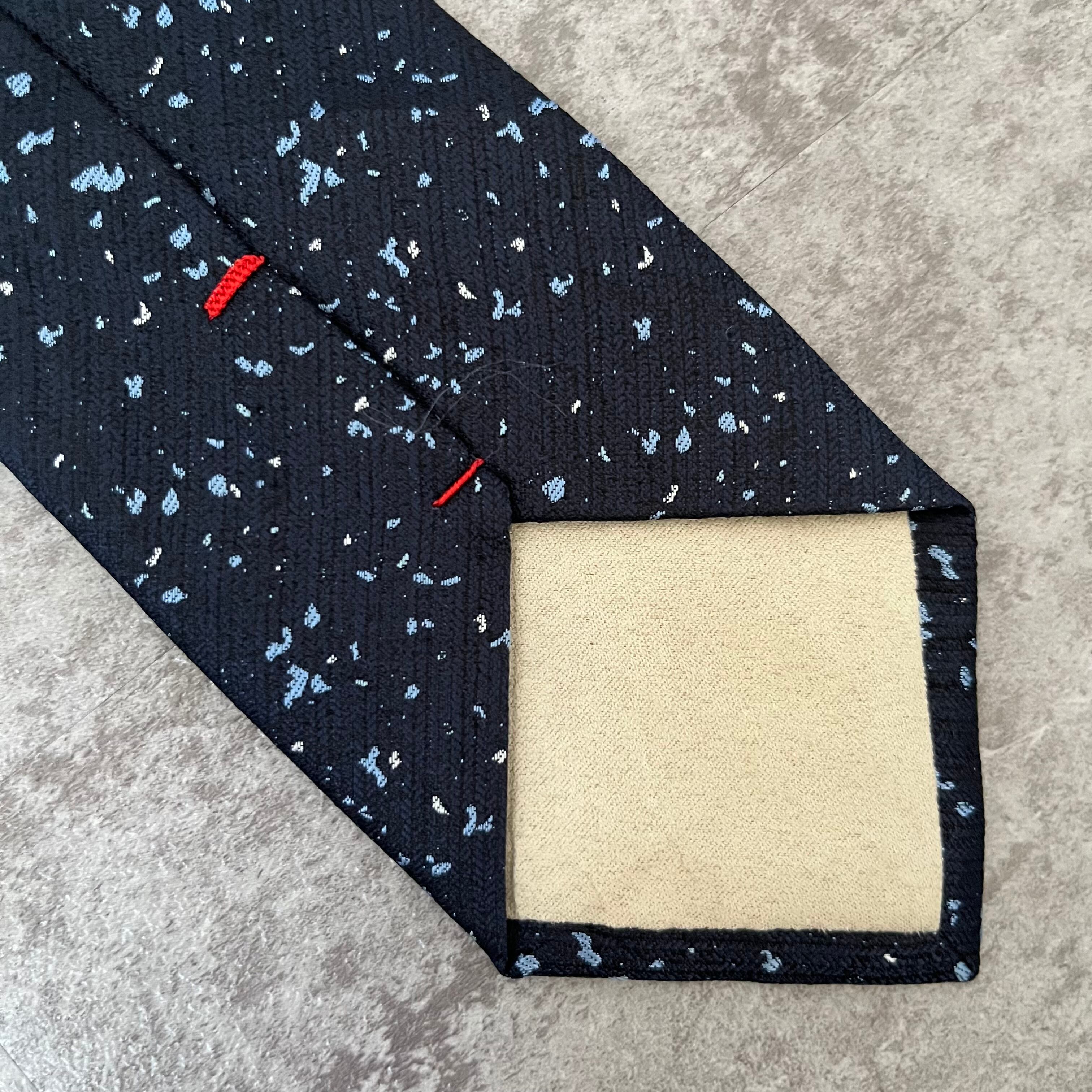 【ペイントジャガード】モザイク柄ネクタイ ネイビー ブルー イエロー 光沢 ビジネス向け