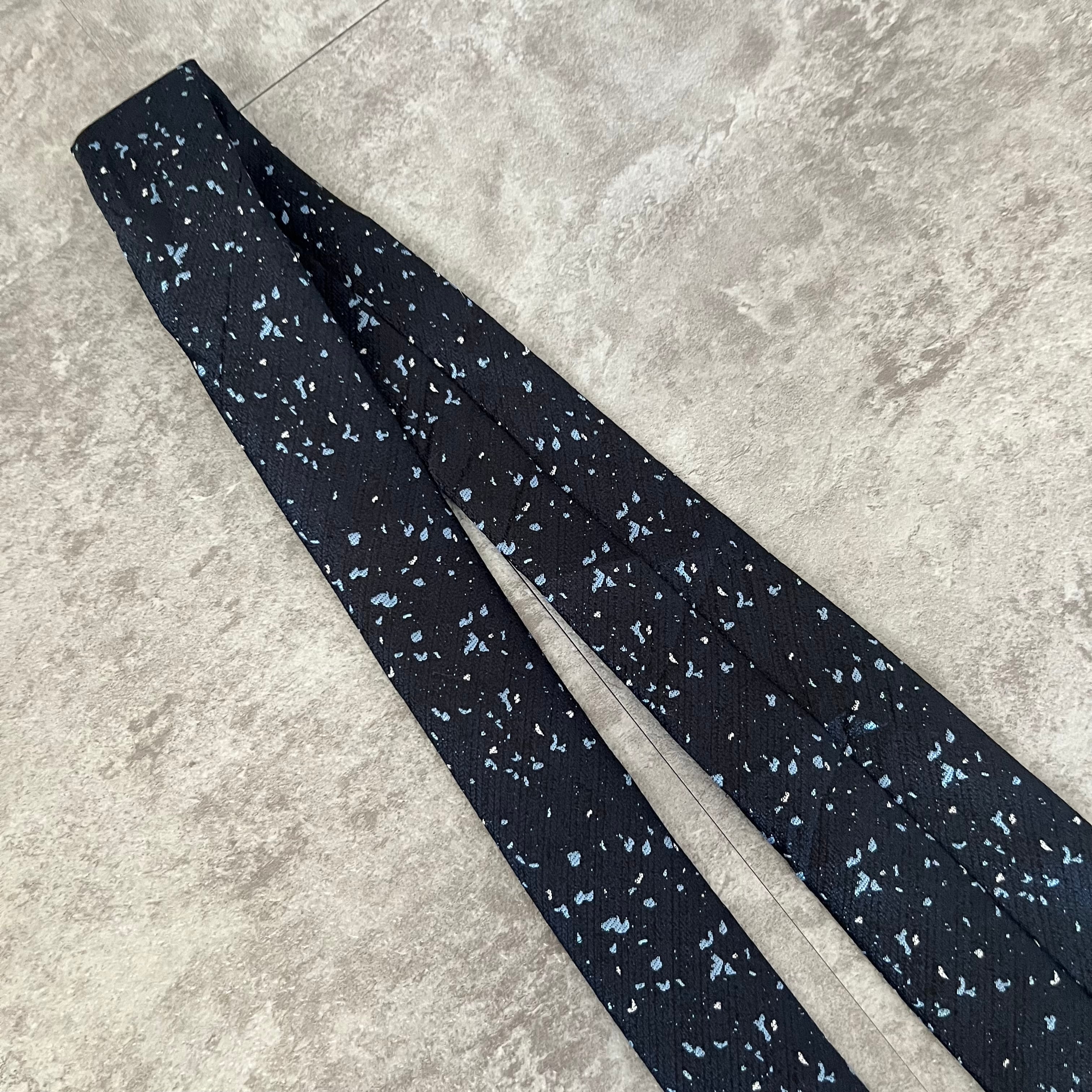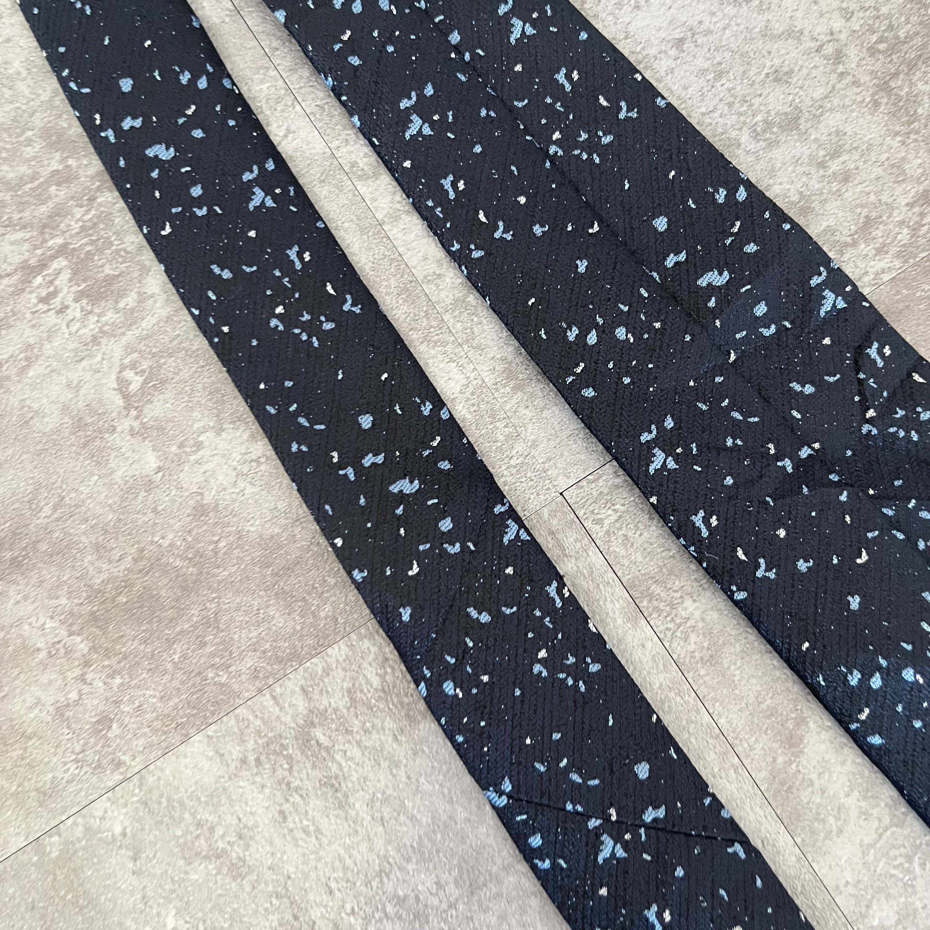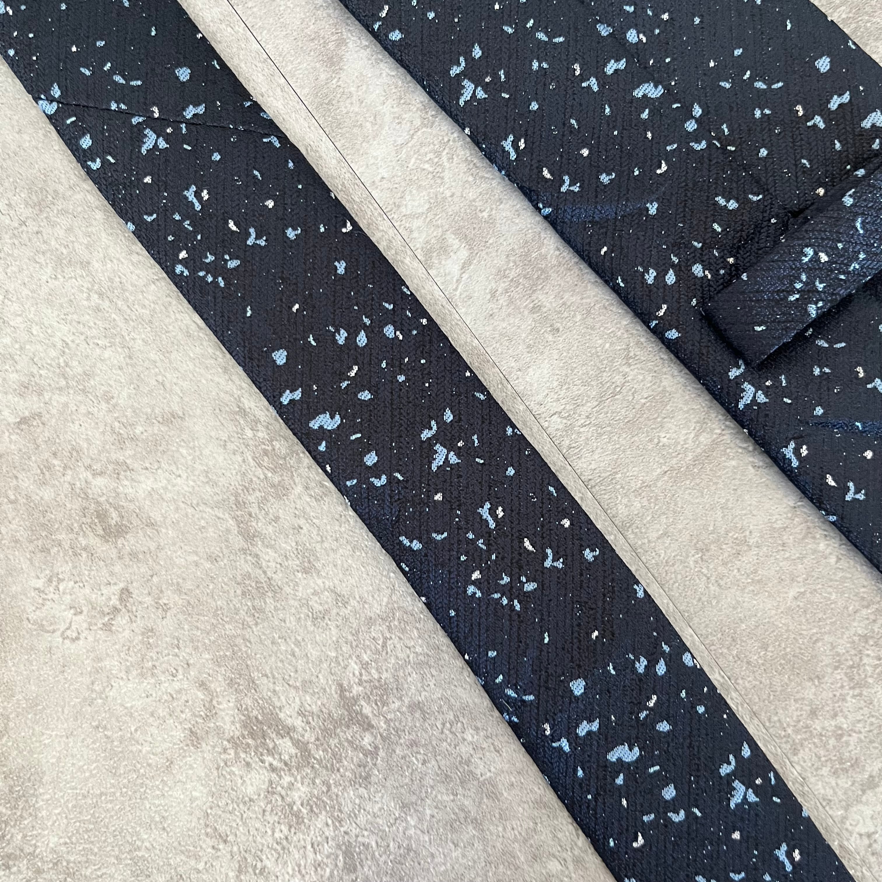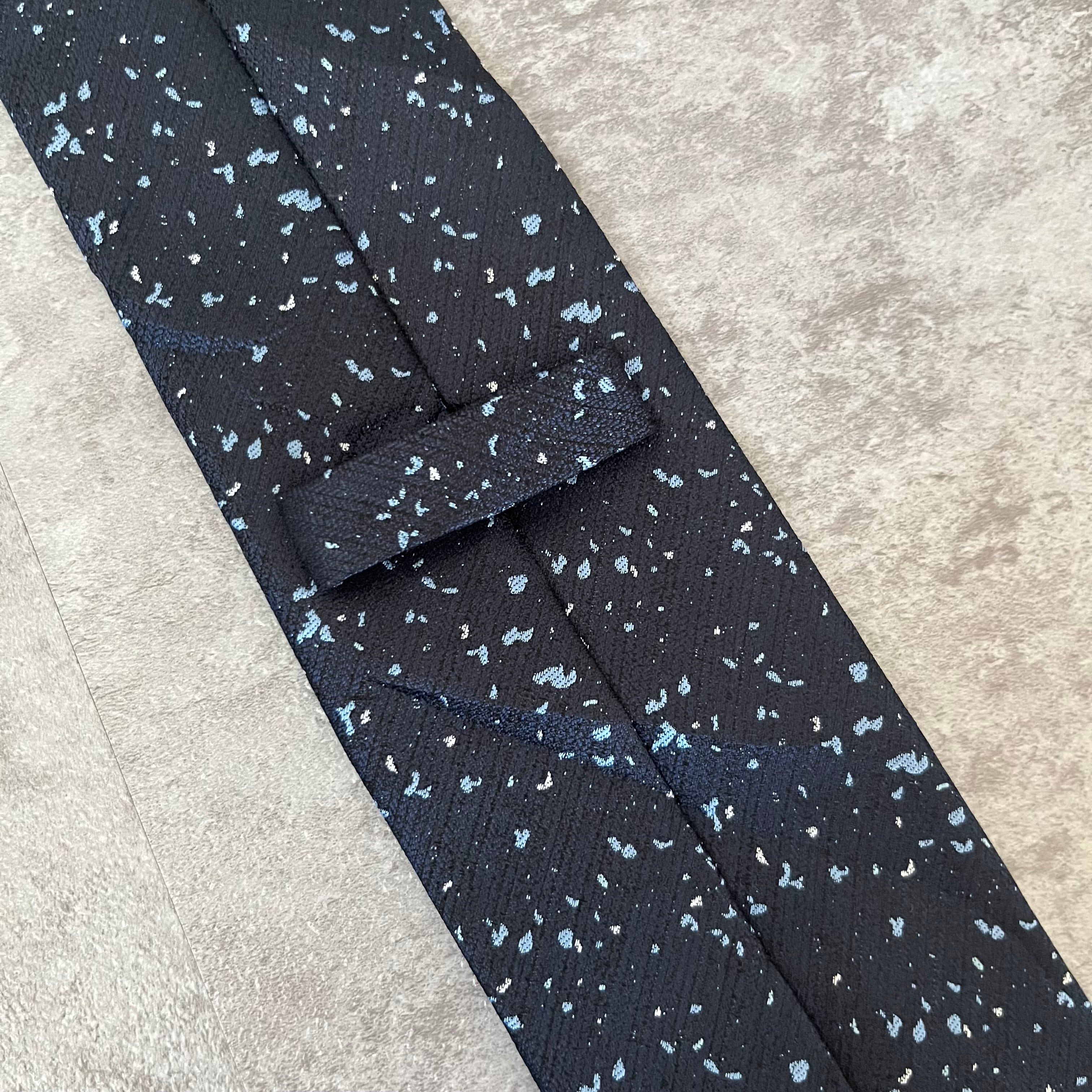 【ペイントジャガード】モザイク柄ネクタイ ネイビー ブルー イエロー 光沢 ビジネス向け