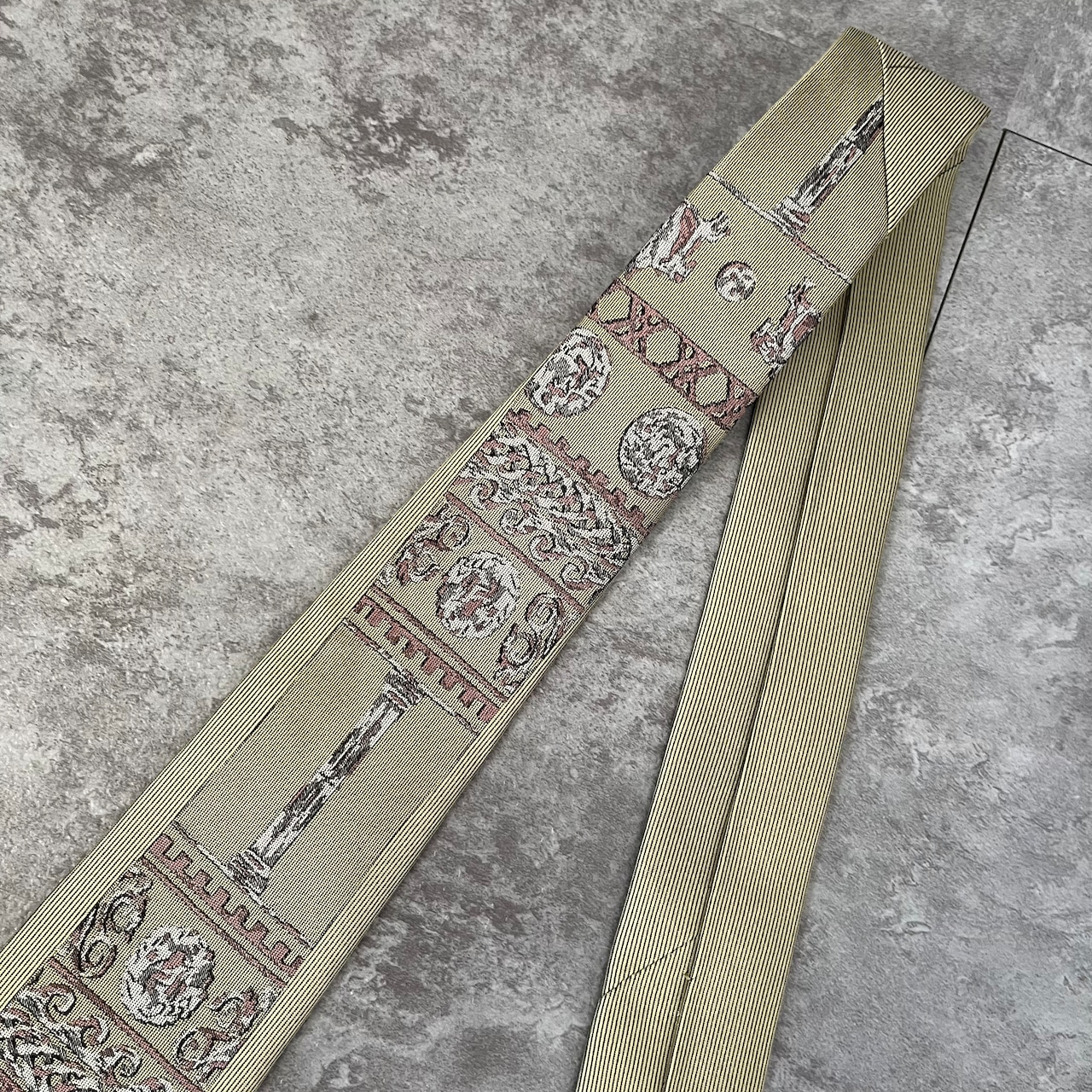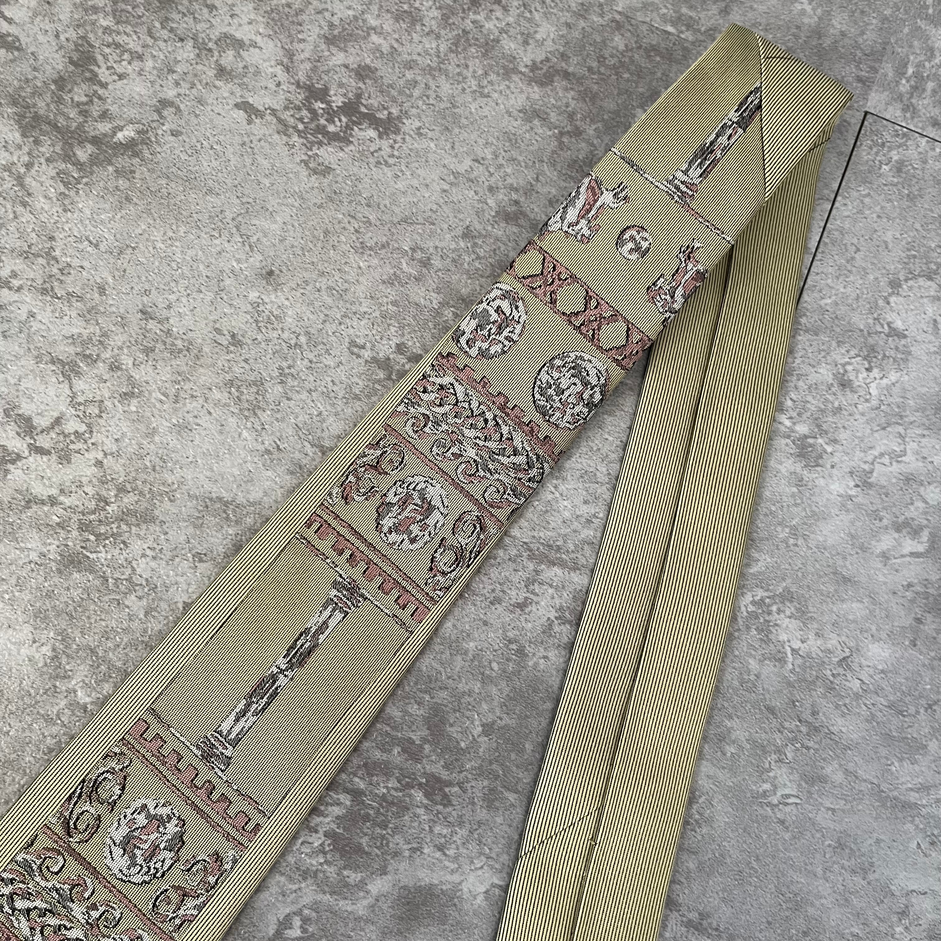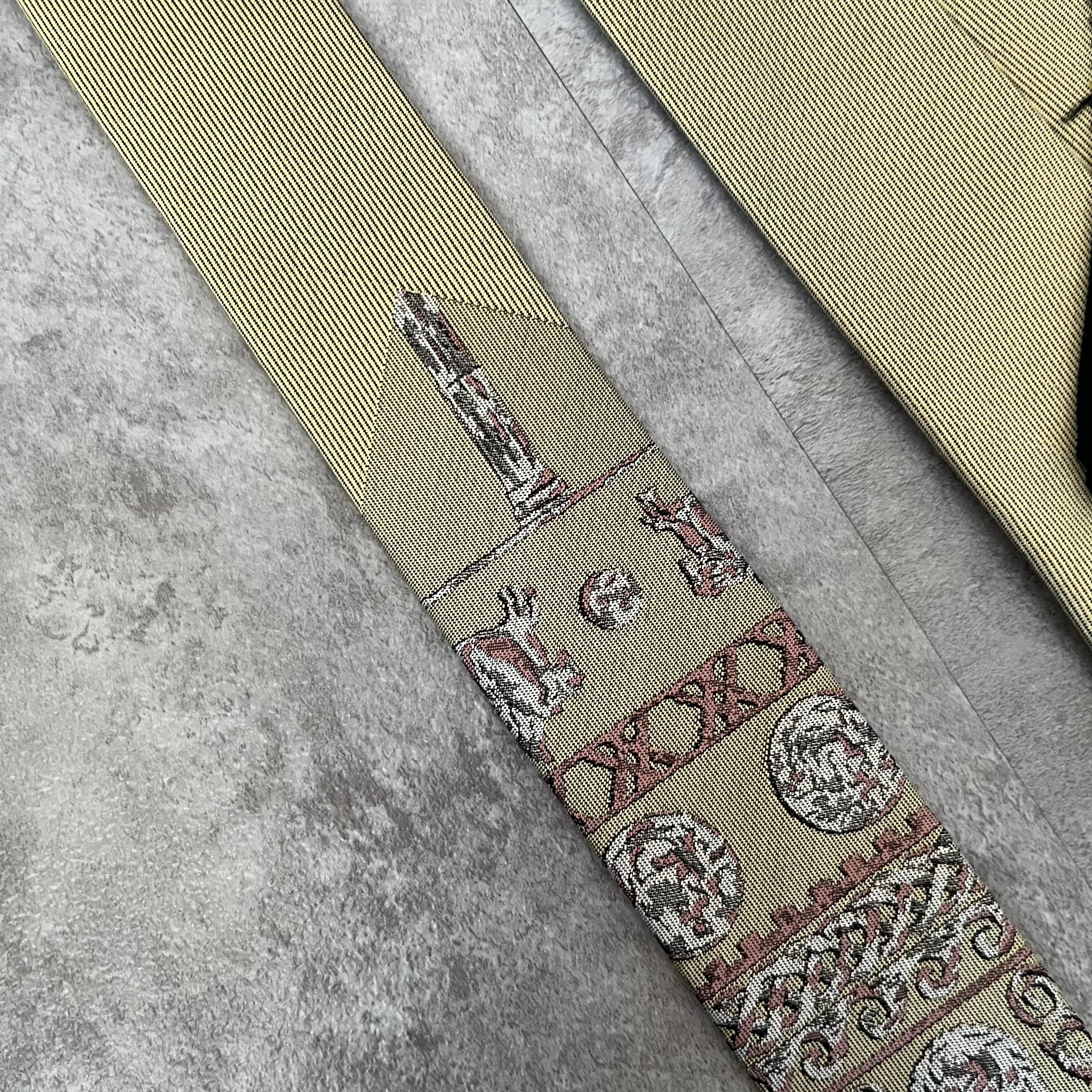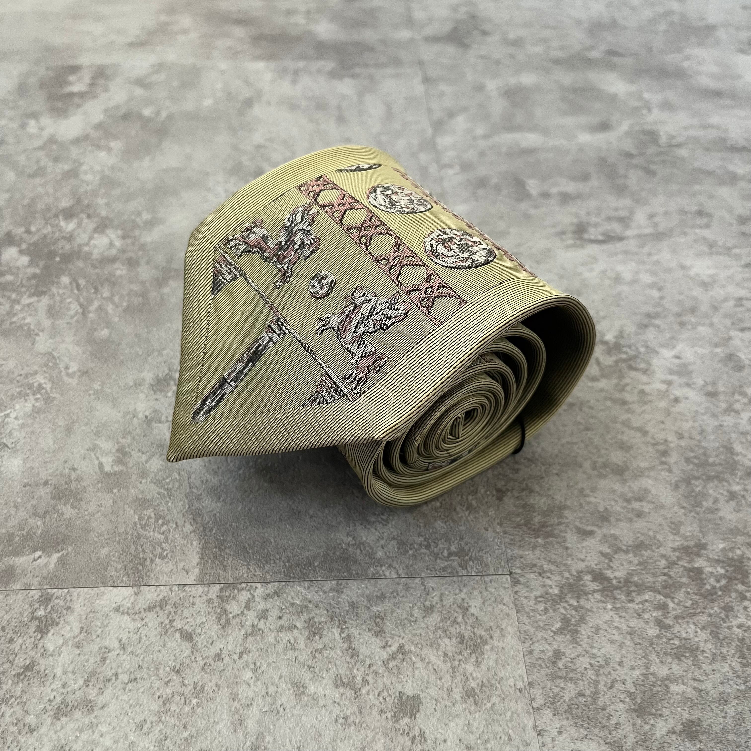 【タグ付き】壁画風アートネクタイ ゴールド 馬 アニマル柄 ホース ジャガード 刺繍 シルク100% 日本製 光沢肉厚