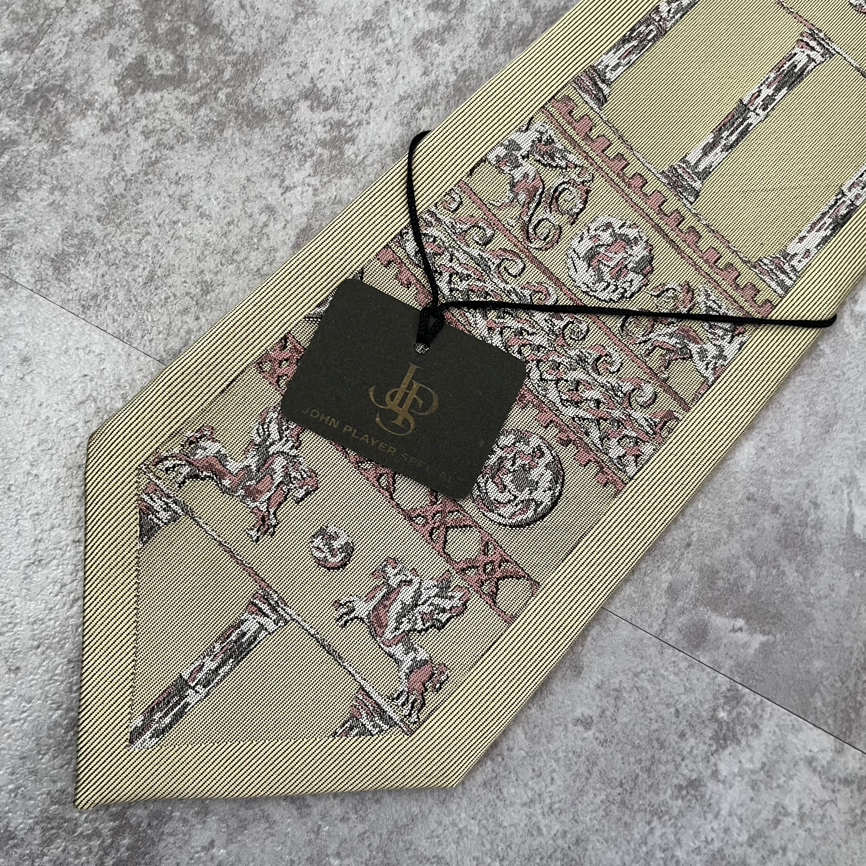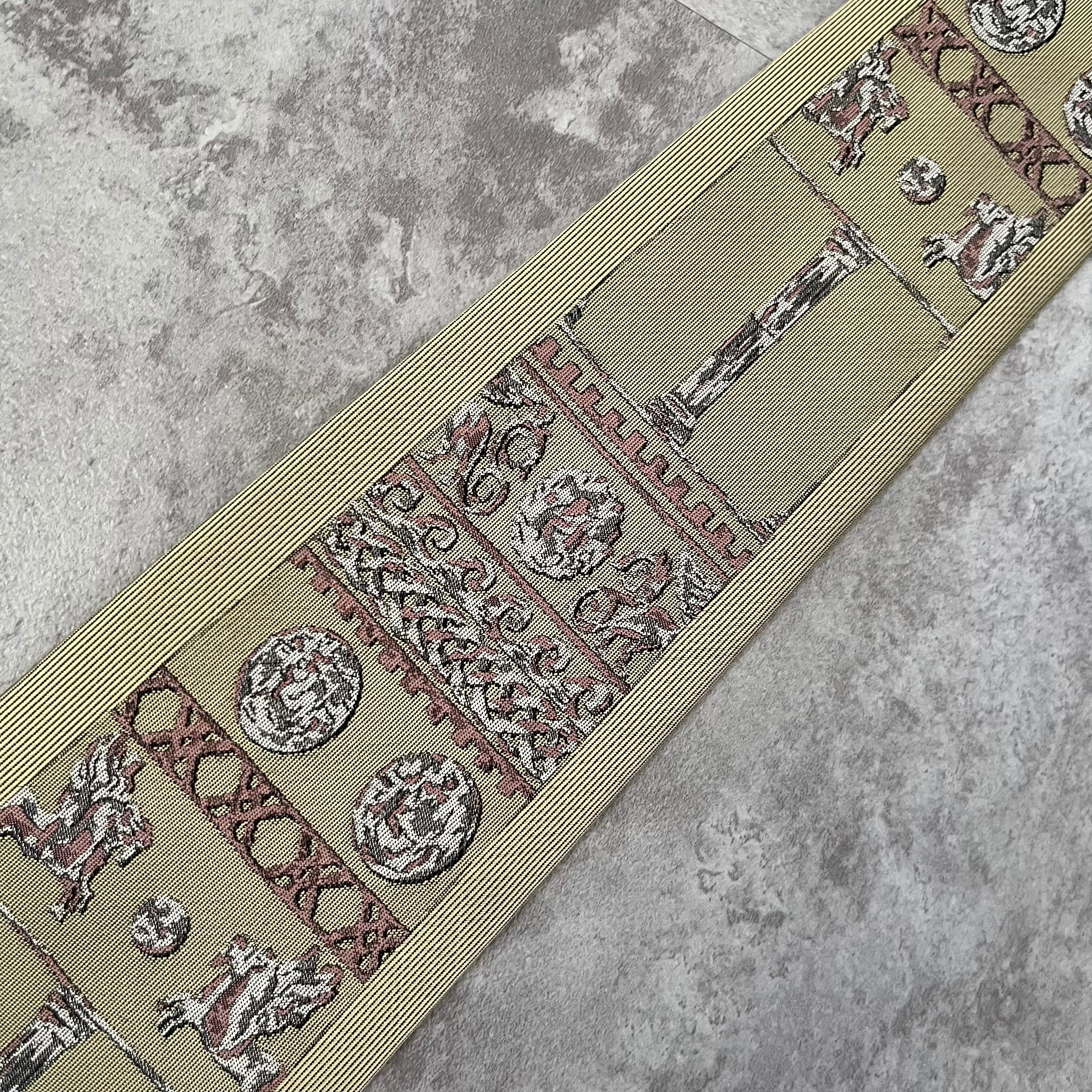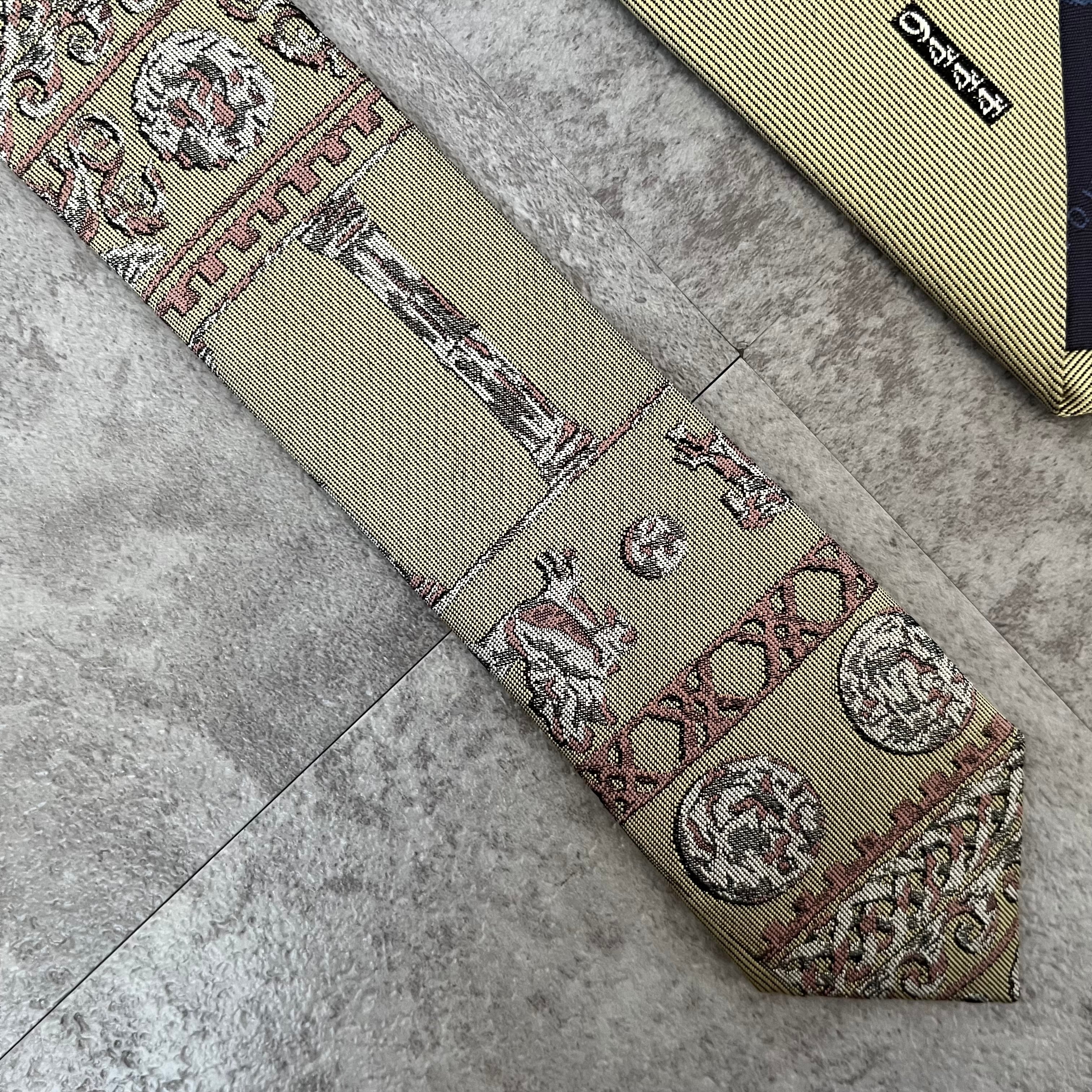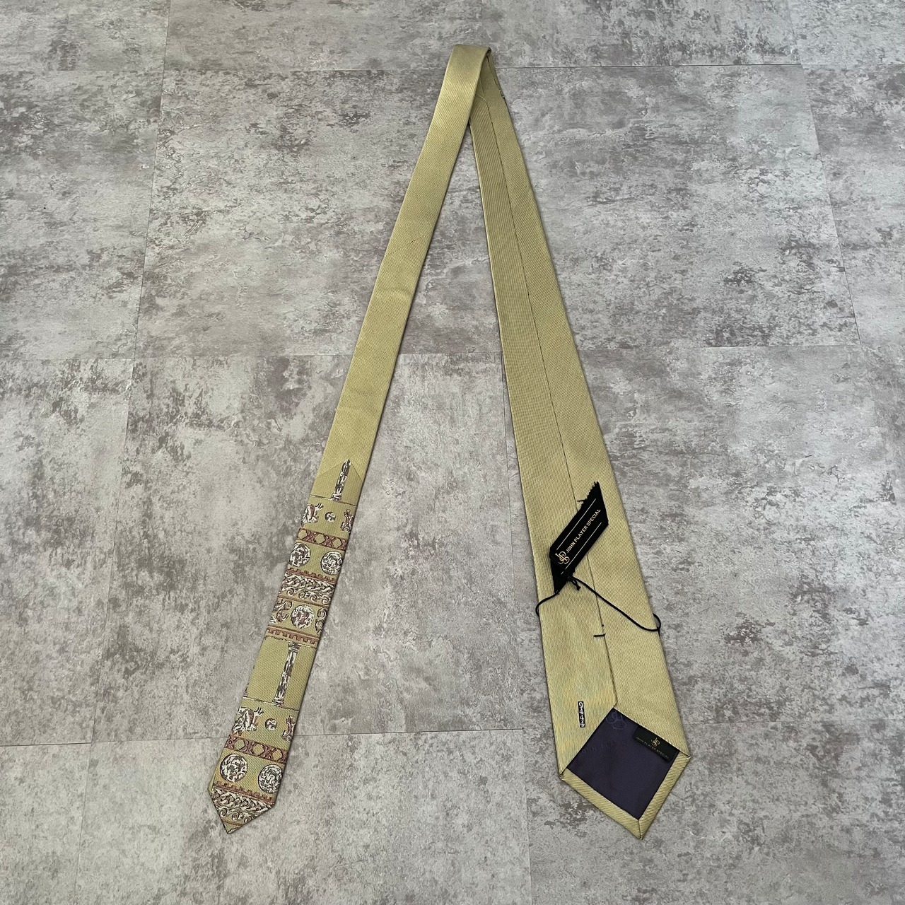 【タグ付き】壁画風アートネクタイ ゴールド 馬 アニマル柄 ホース ジャガード 刺繍 シルク100% 日本製 光沢肉厚