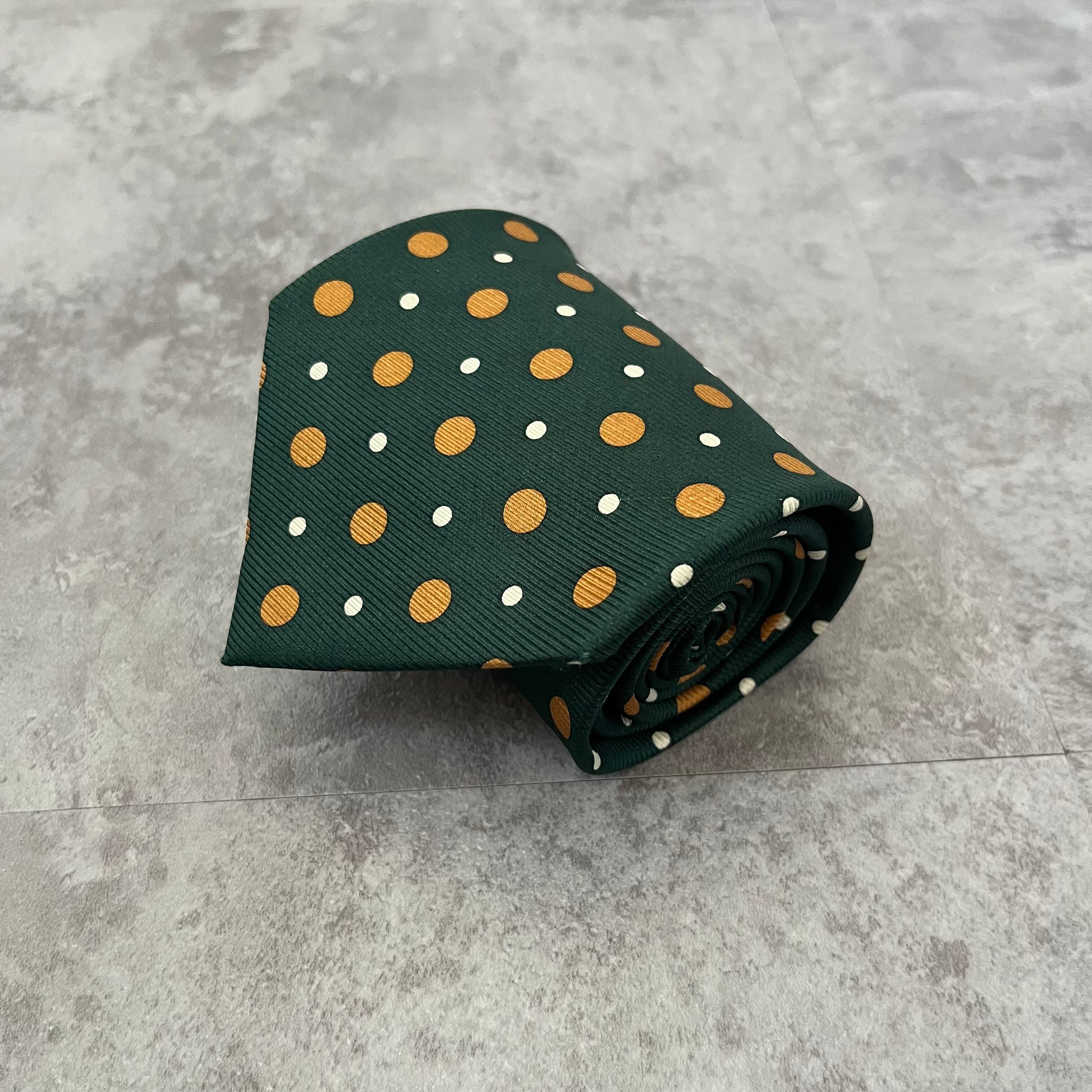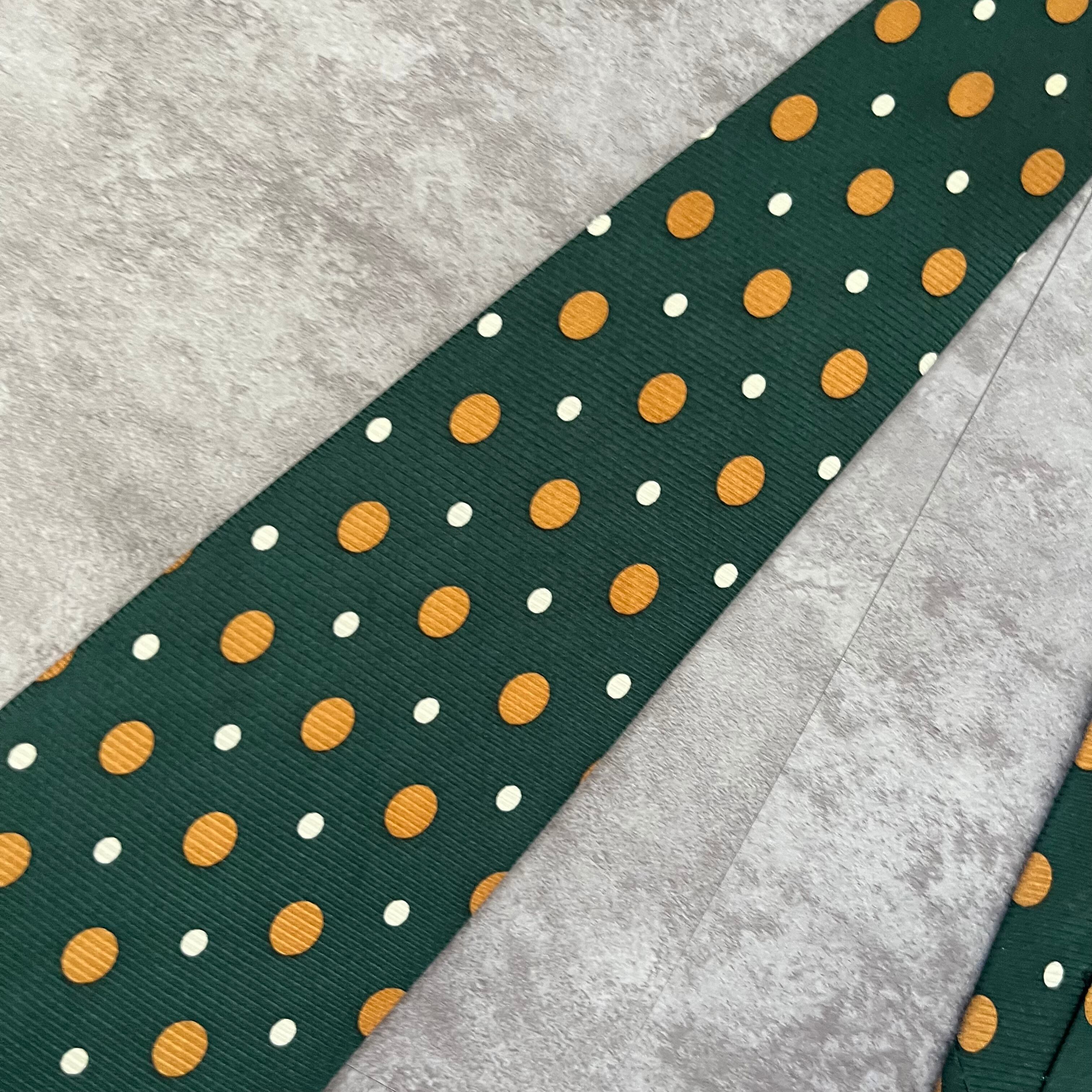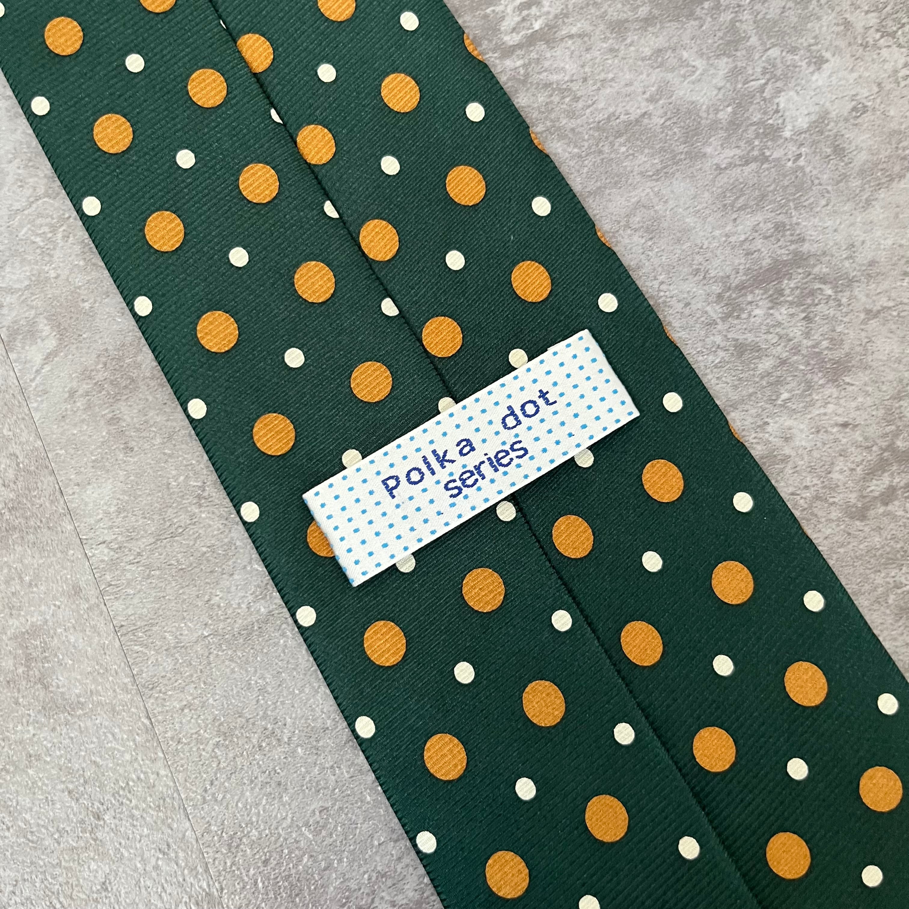 【水玉模様】ポルカドット柄ネクタイ グリーン オレンジ 可愛い ビジネス シルク100%