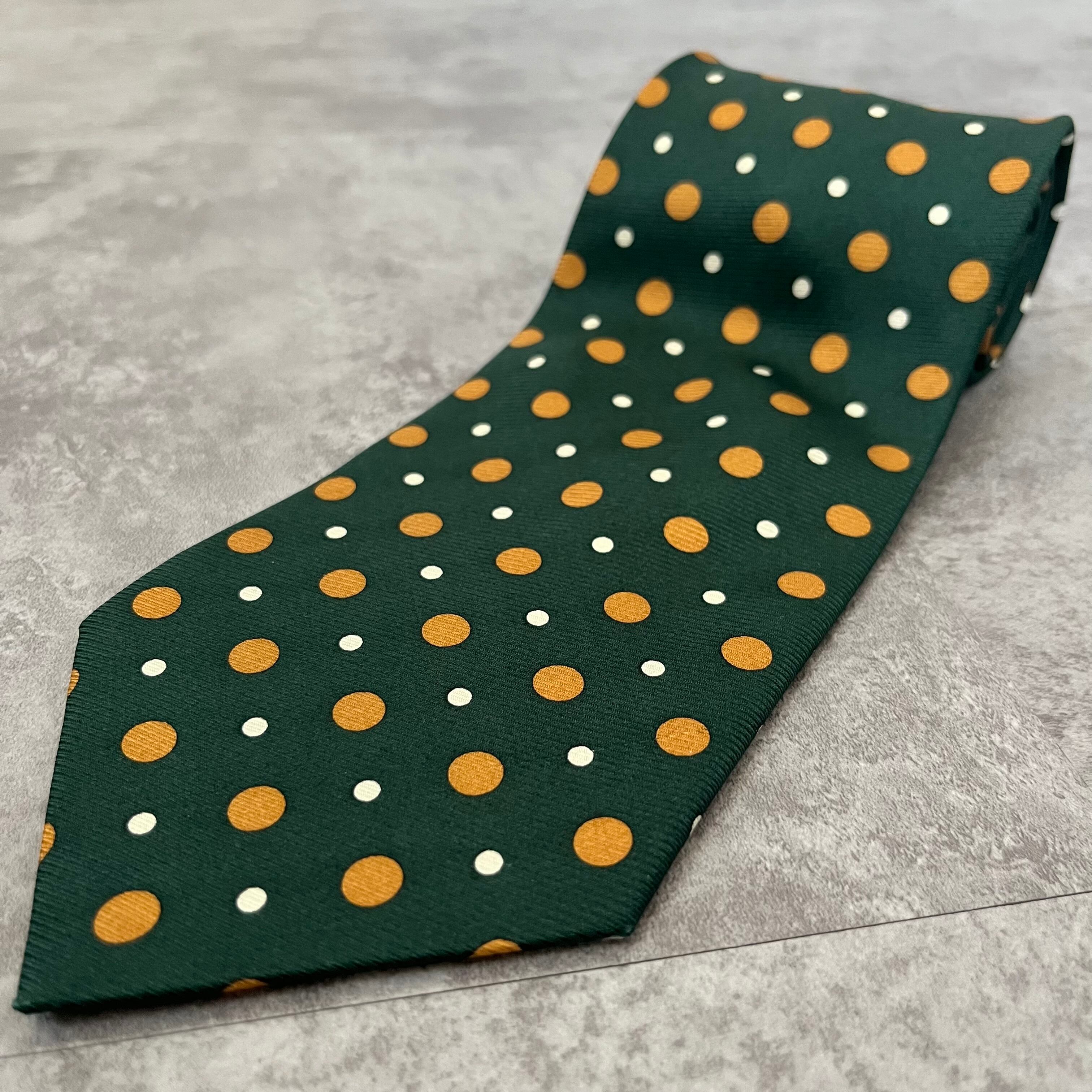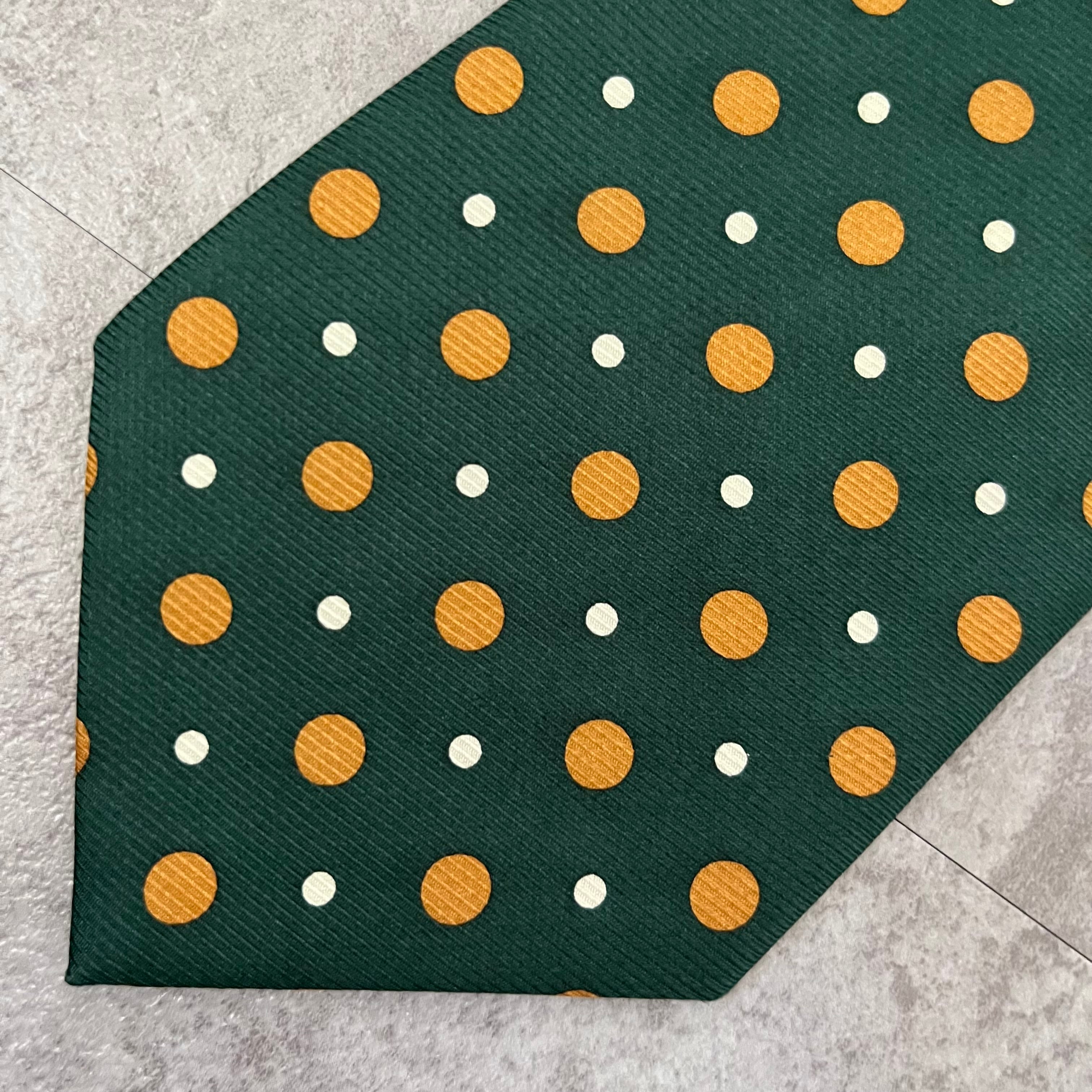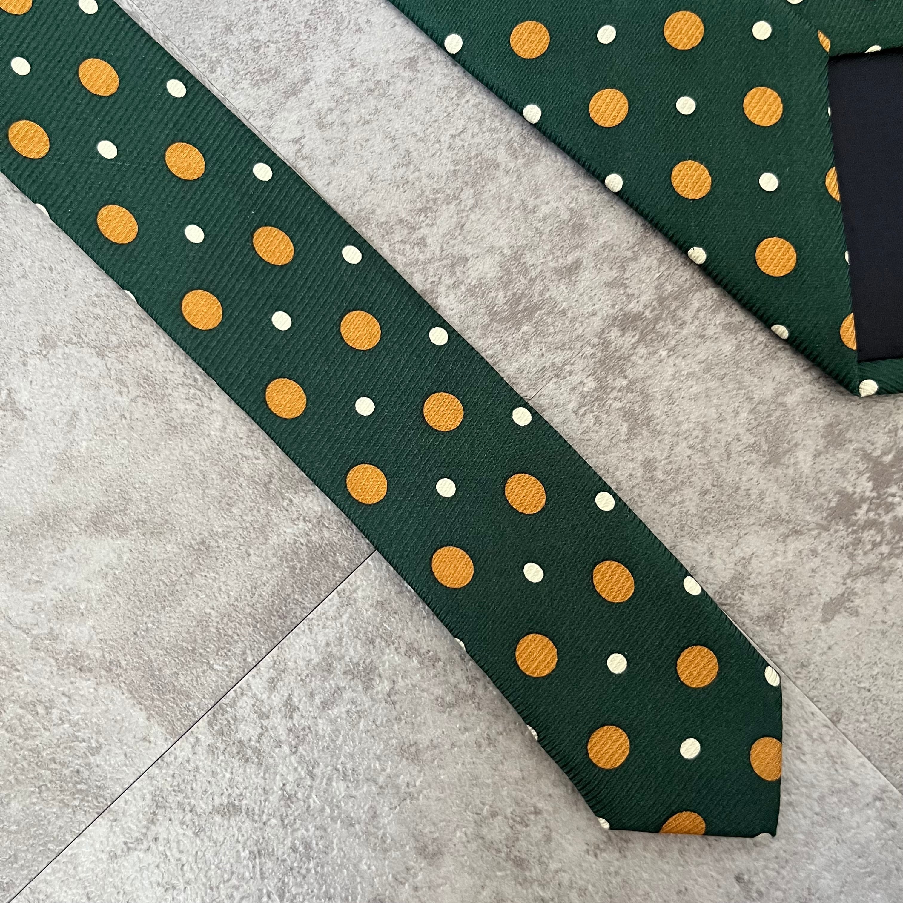 【水玉模様】ポルカドット柄ネクタイ グリーン オレンジ 可愛い ビジネス シルク100%