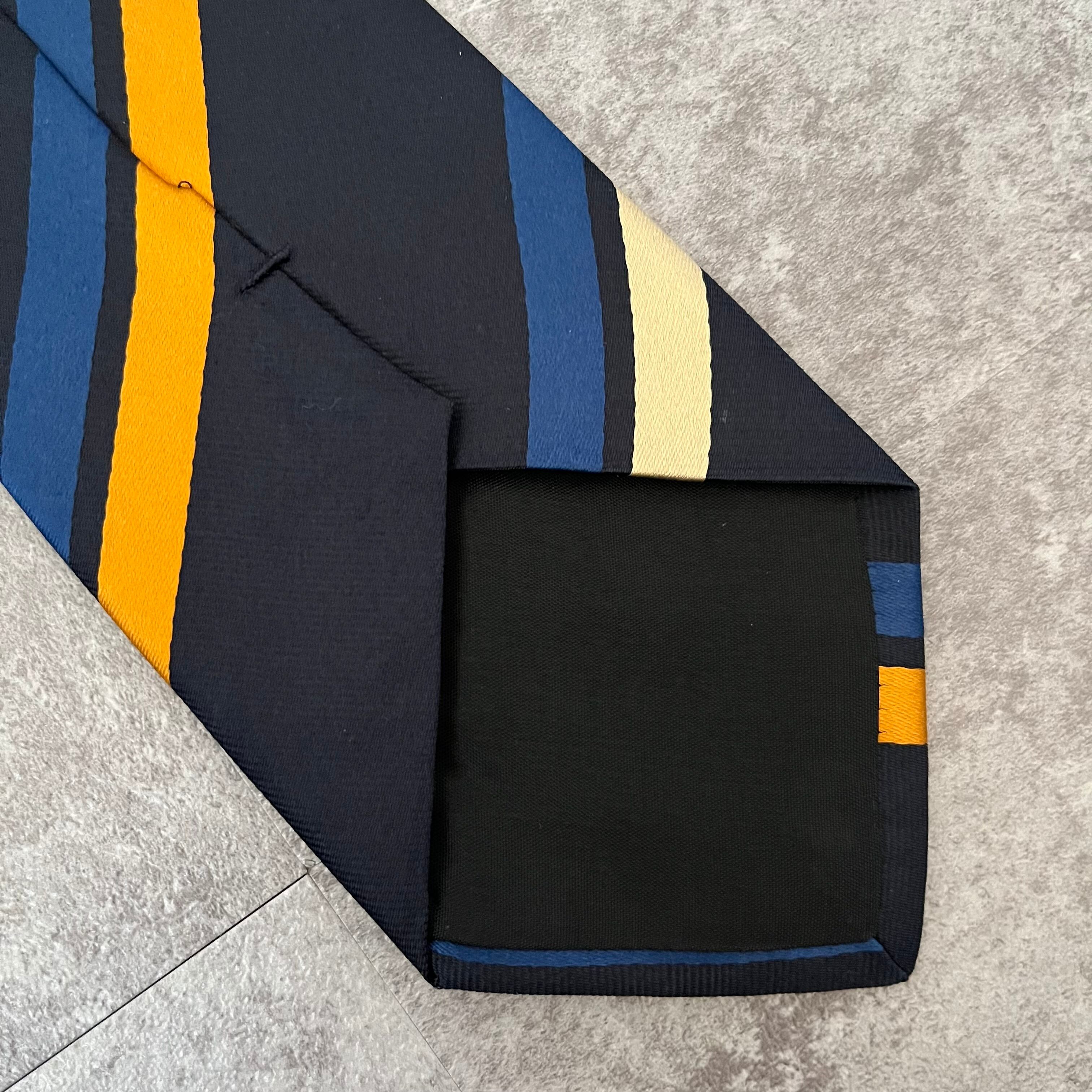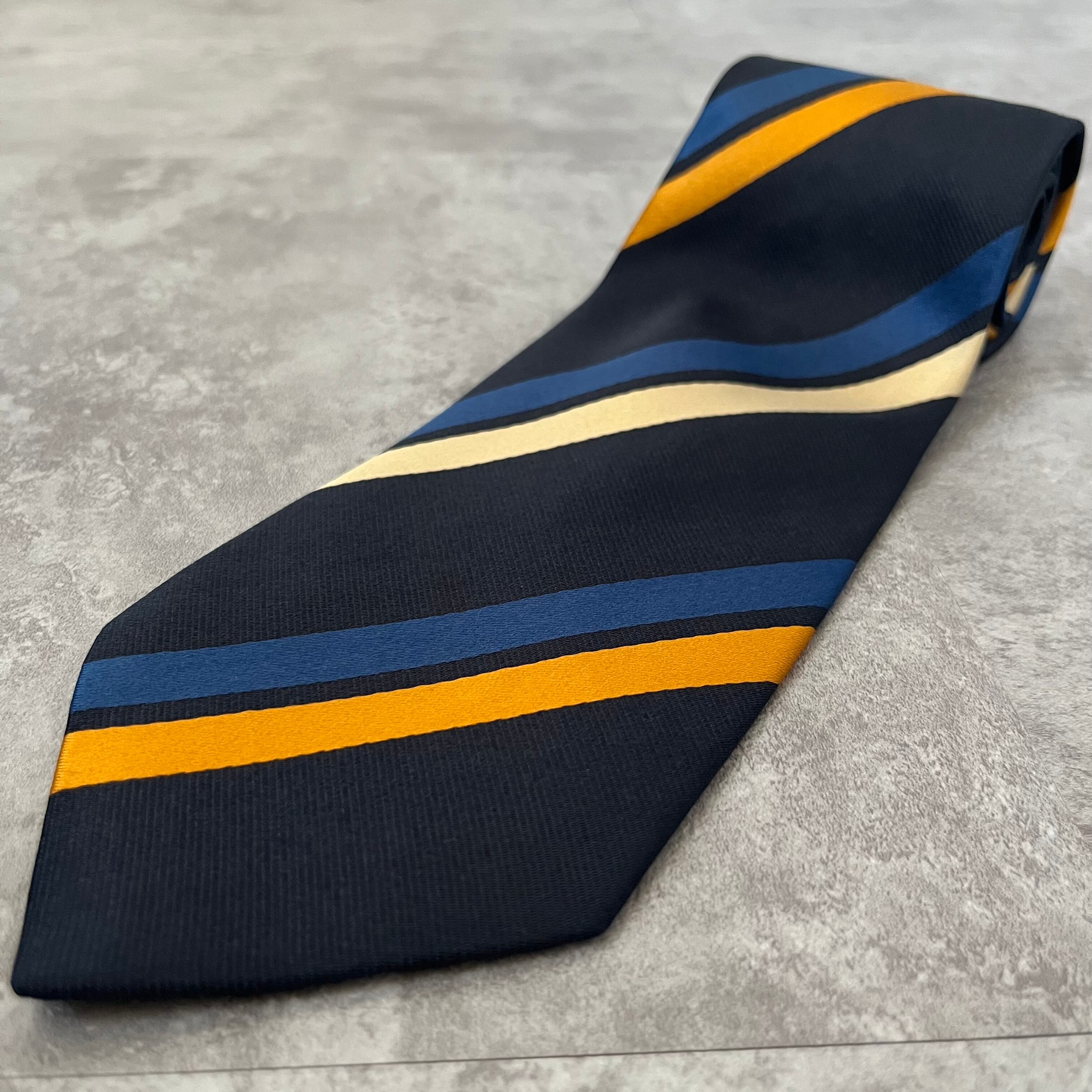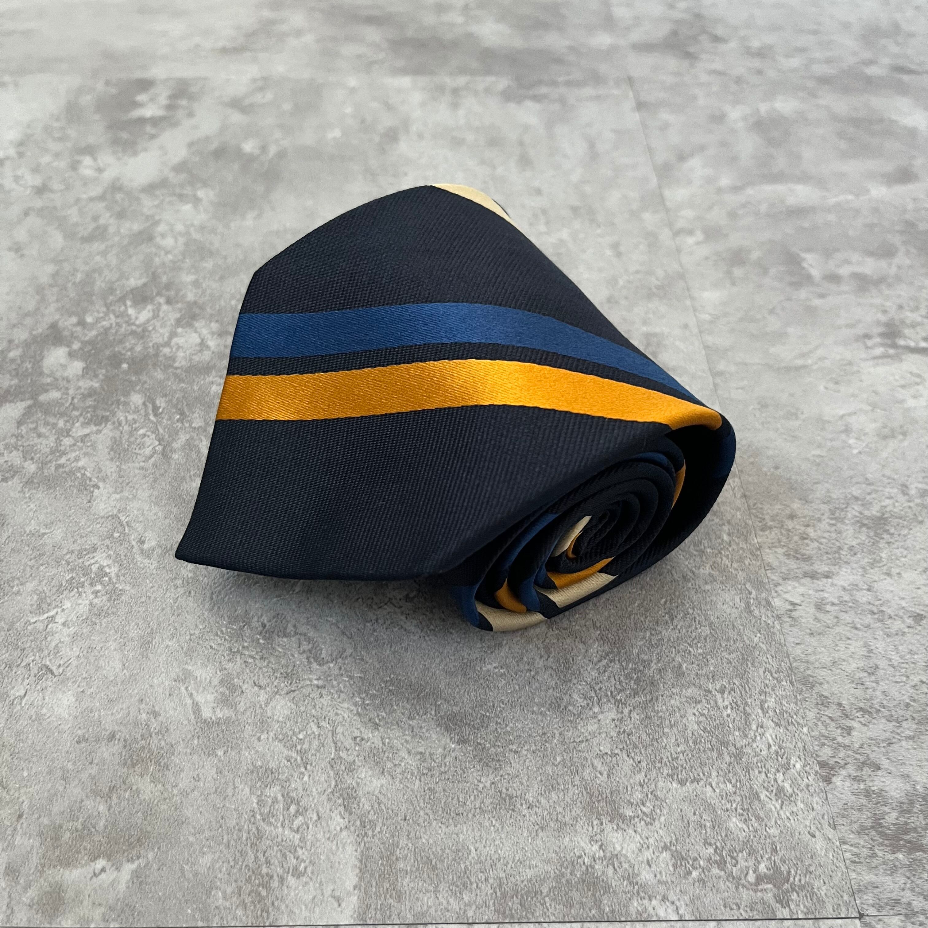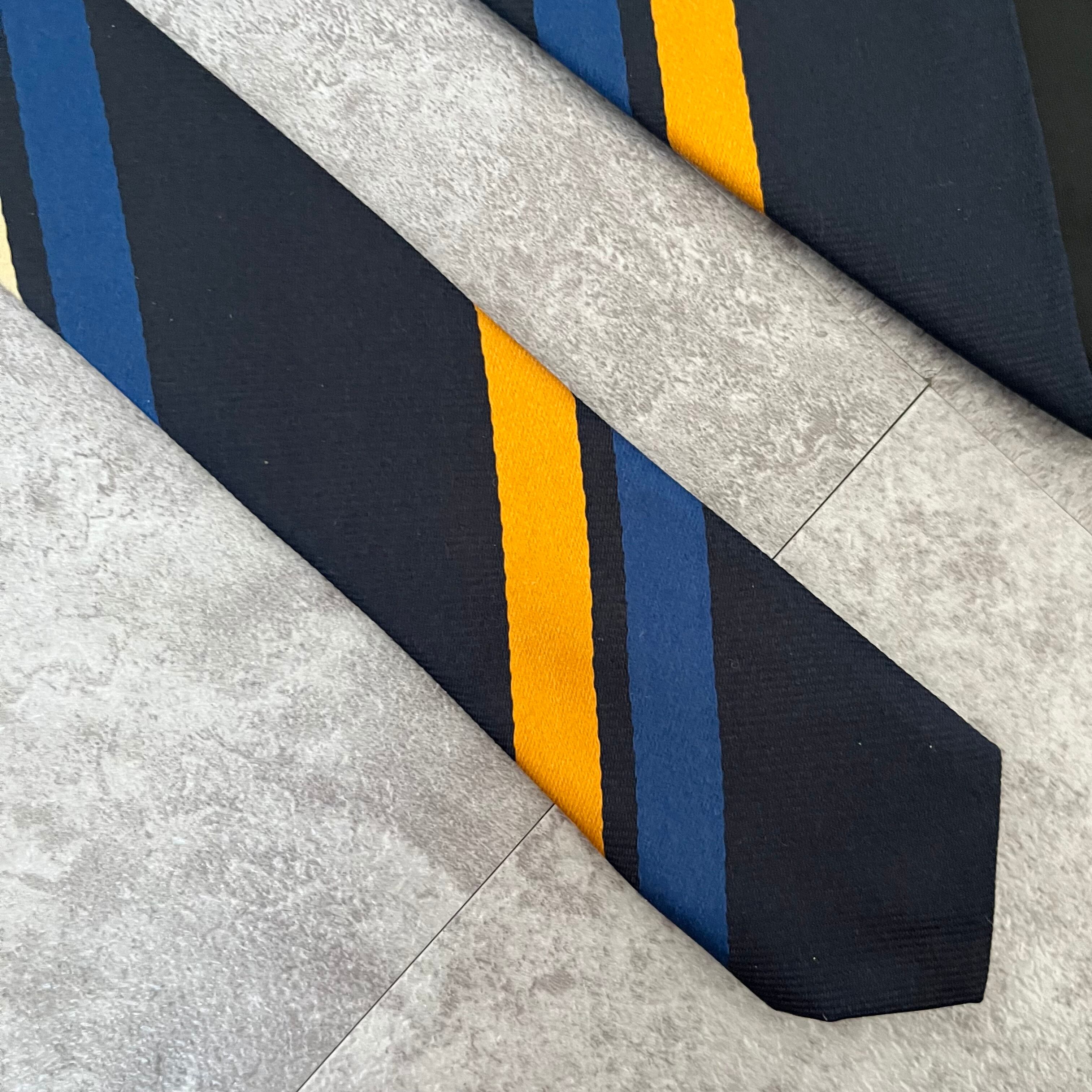 【THE POPPY横浜元町】レジメンタルストライプネクタイ ネイビー シンプル マルチカラー オレンジ シルバー 最高配色 シルク100% ビジネス向け