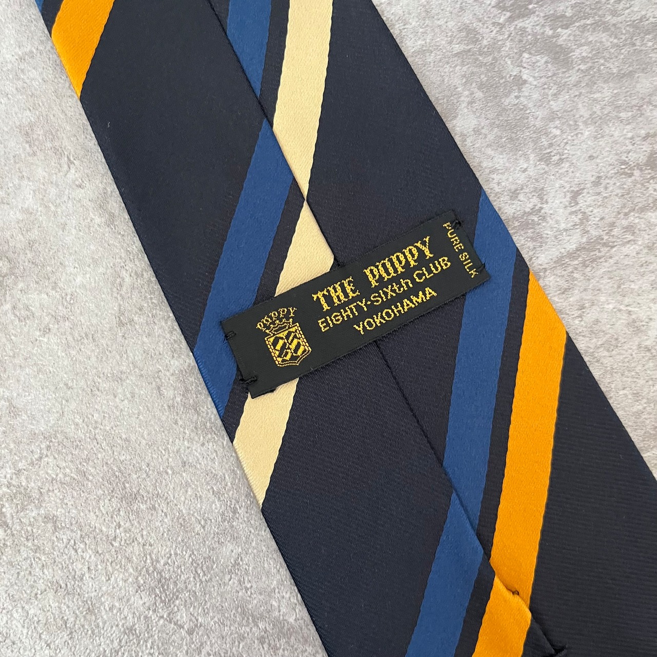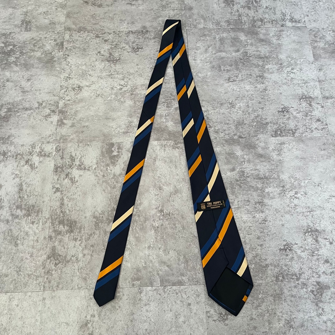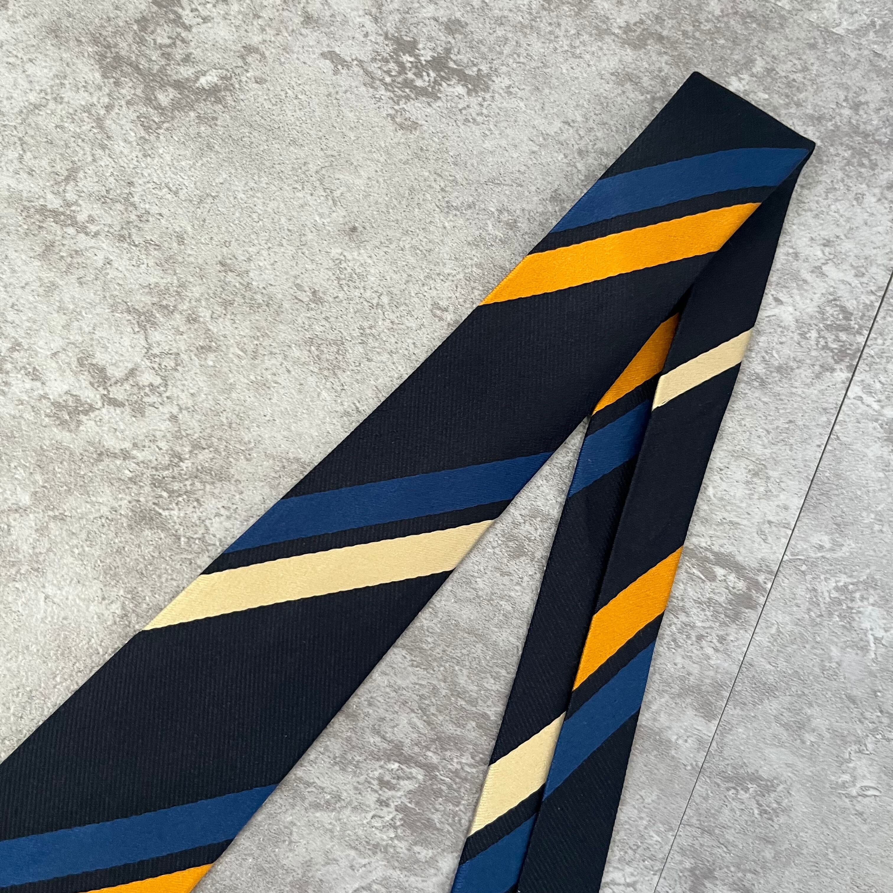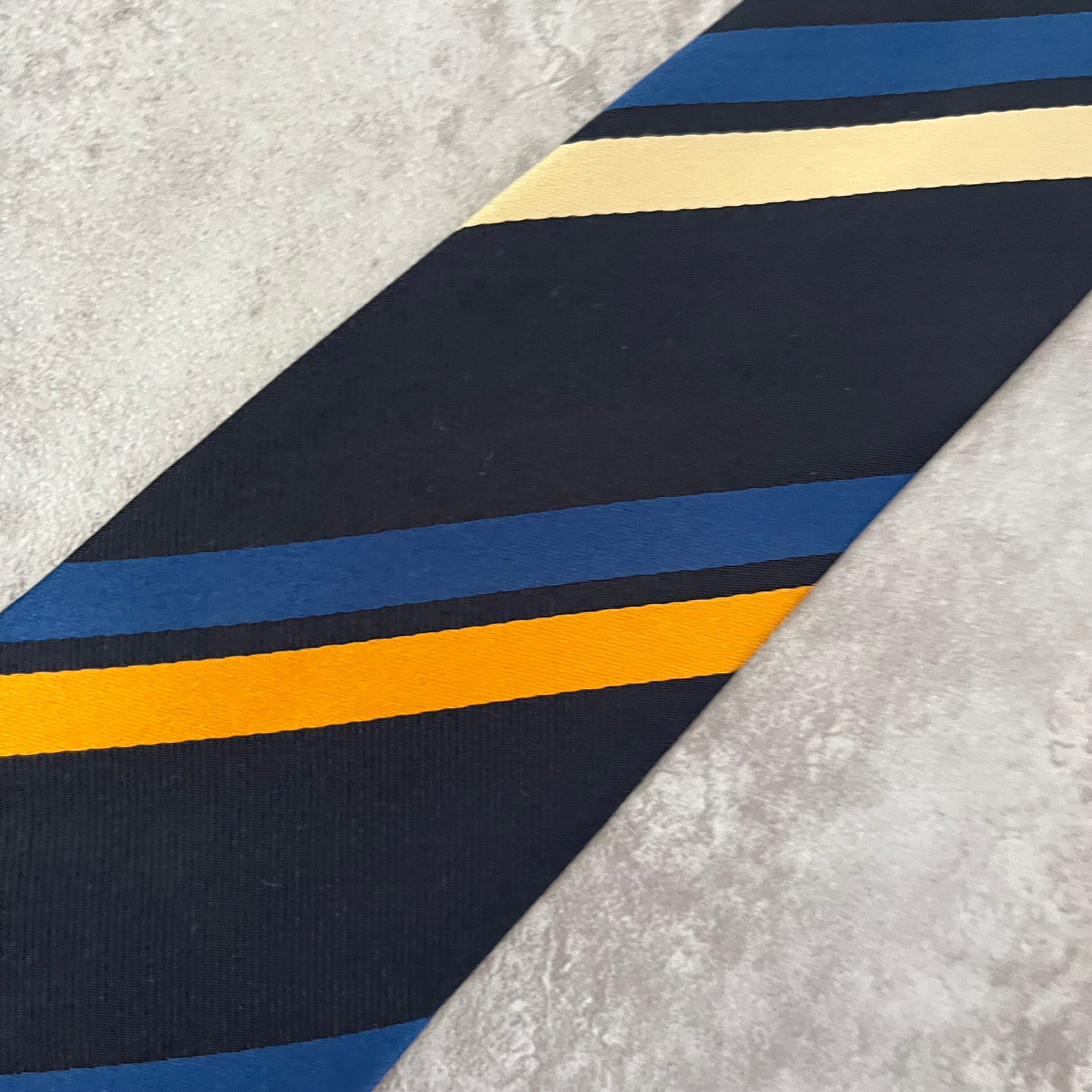 【THE POPPY横浜元町】レジメンタルストライプネクタイ ネイビー シンプル マルチカラー オレンジ シルバー 最高配色 シルク100% ビジネス向け
