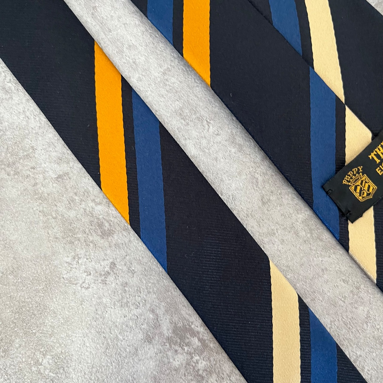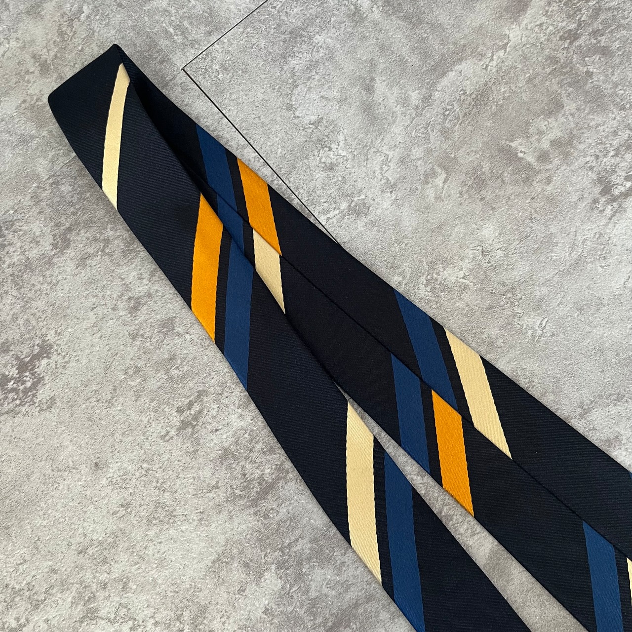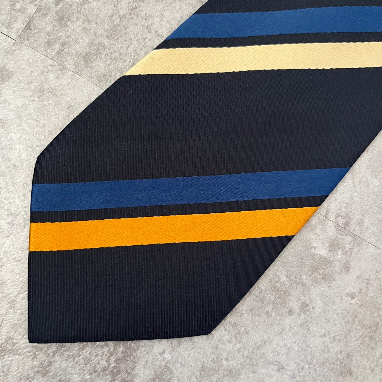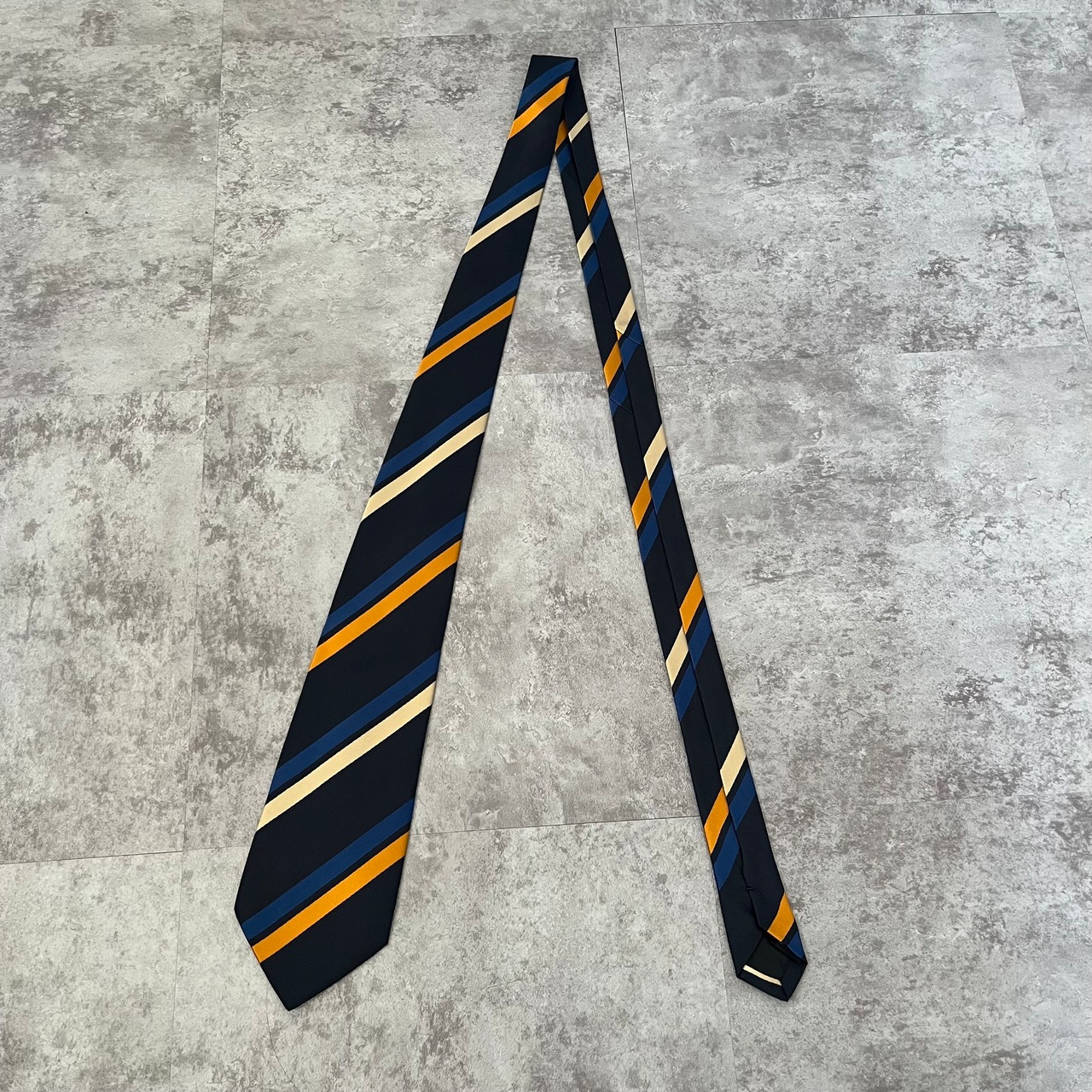【THE POPPY横浜元町】レジメンタルストライプネクタイ ネイビー シンプル マルチカラー オレンジ シルバー 最高配色 シルク100% ビジネス向け