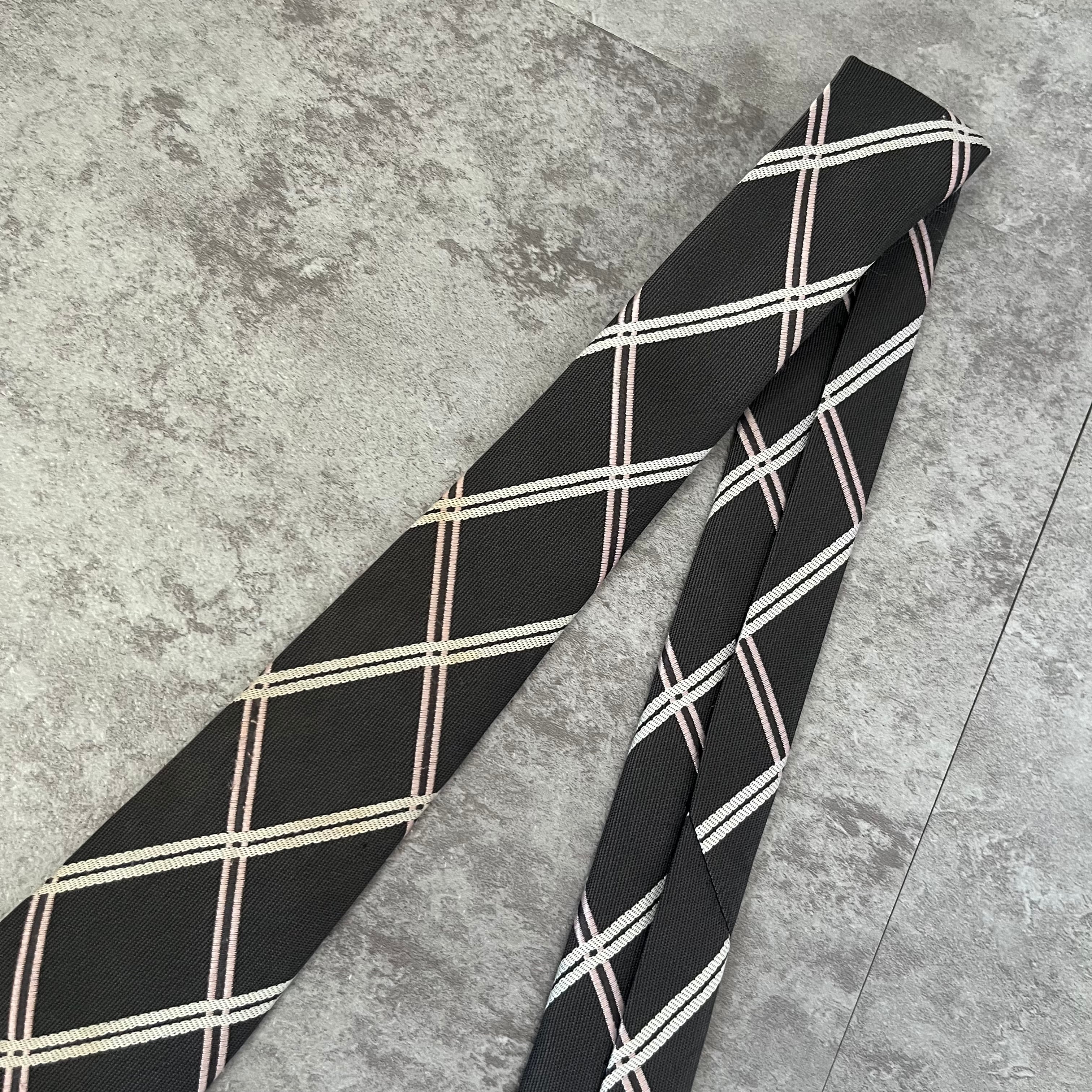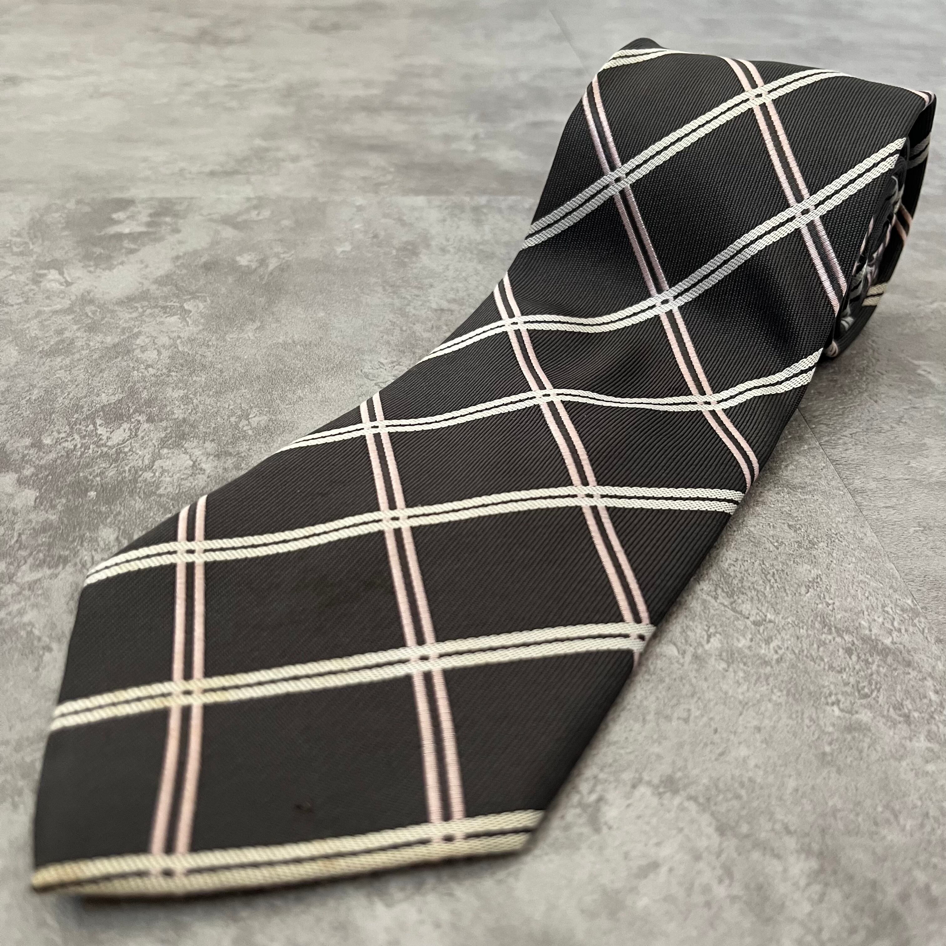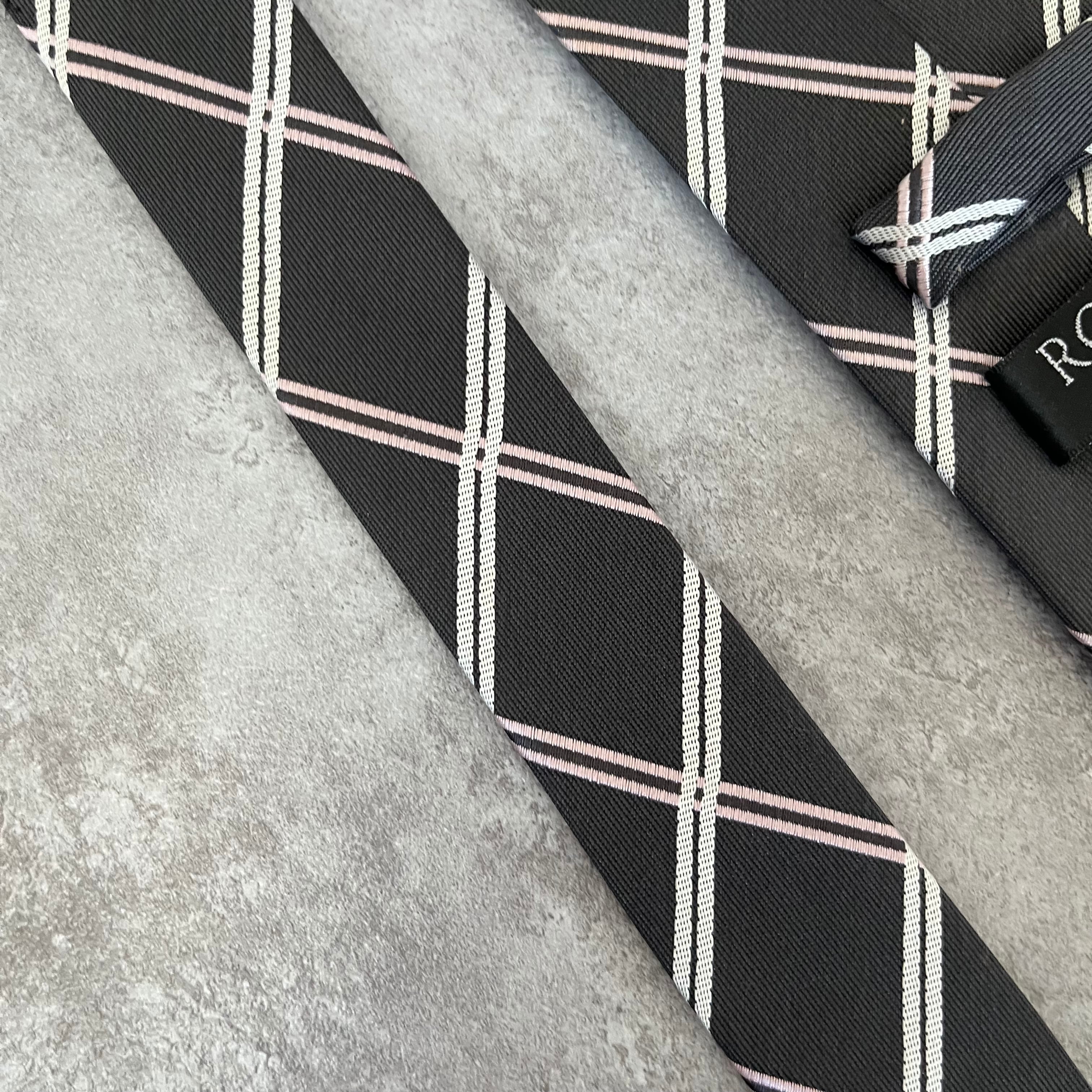 【チェック柄】シンプルネクタイ ネイビー ビジネス向け ラインチェック
