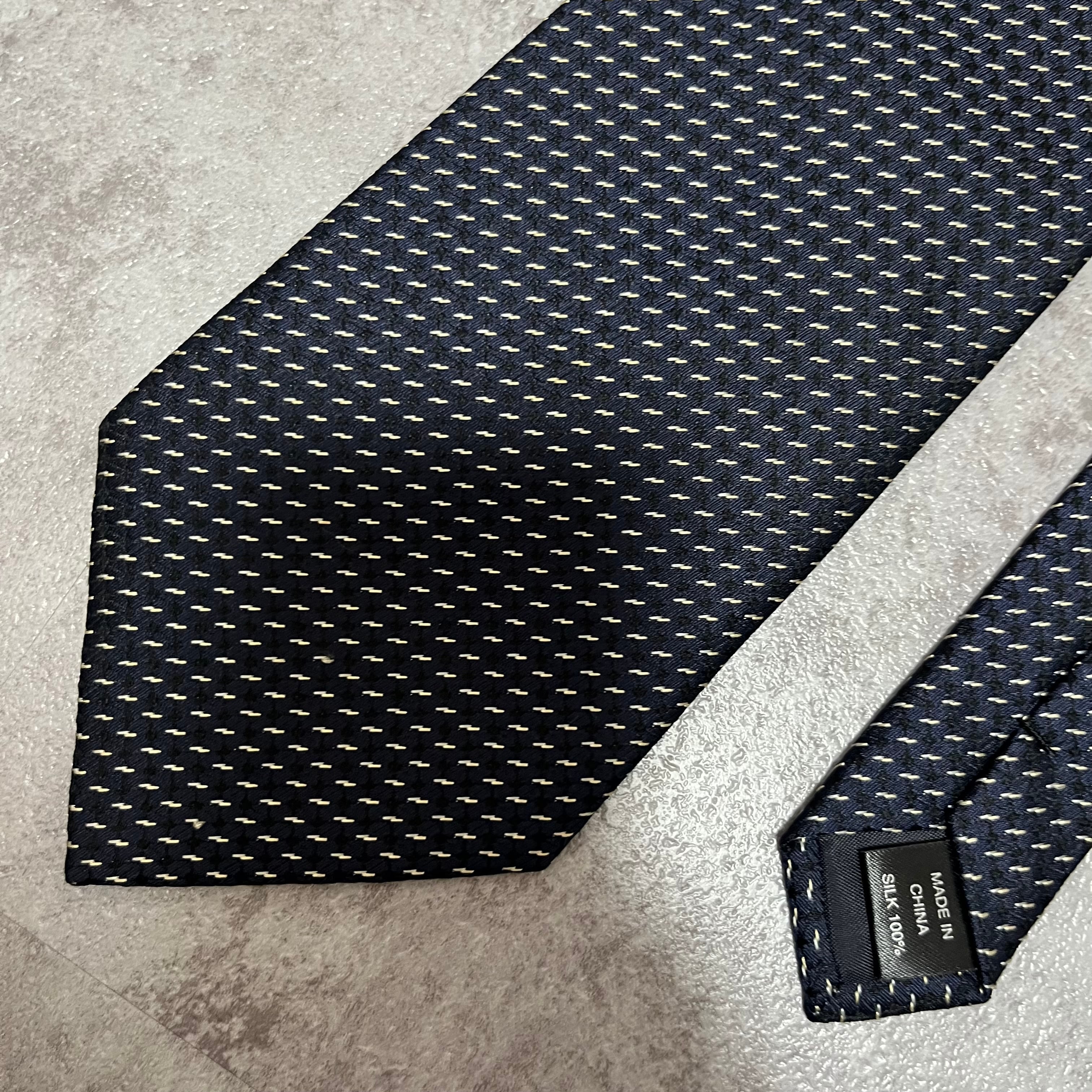 【モザイク柄】モザイク柄ネクタイ ネイビー ビジネス用 シルク100%