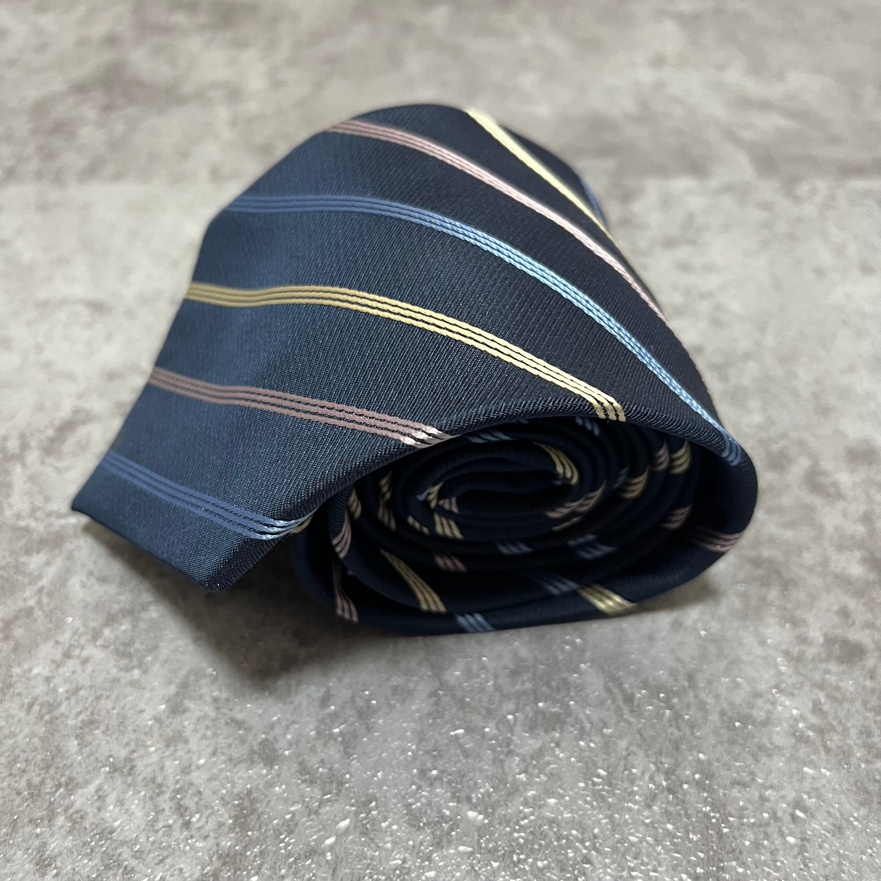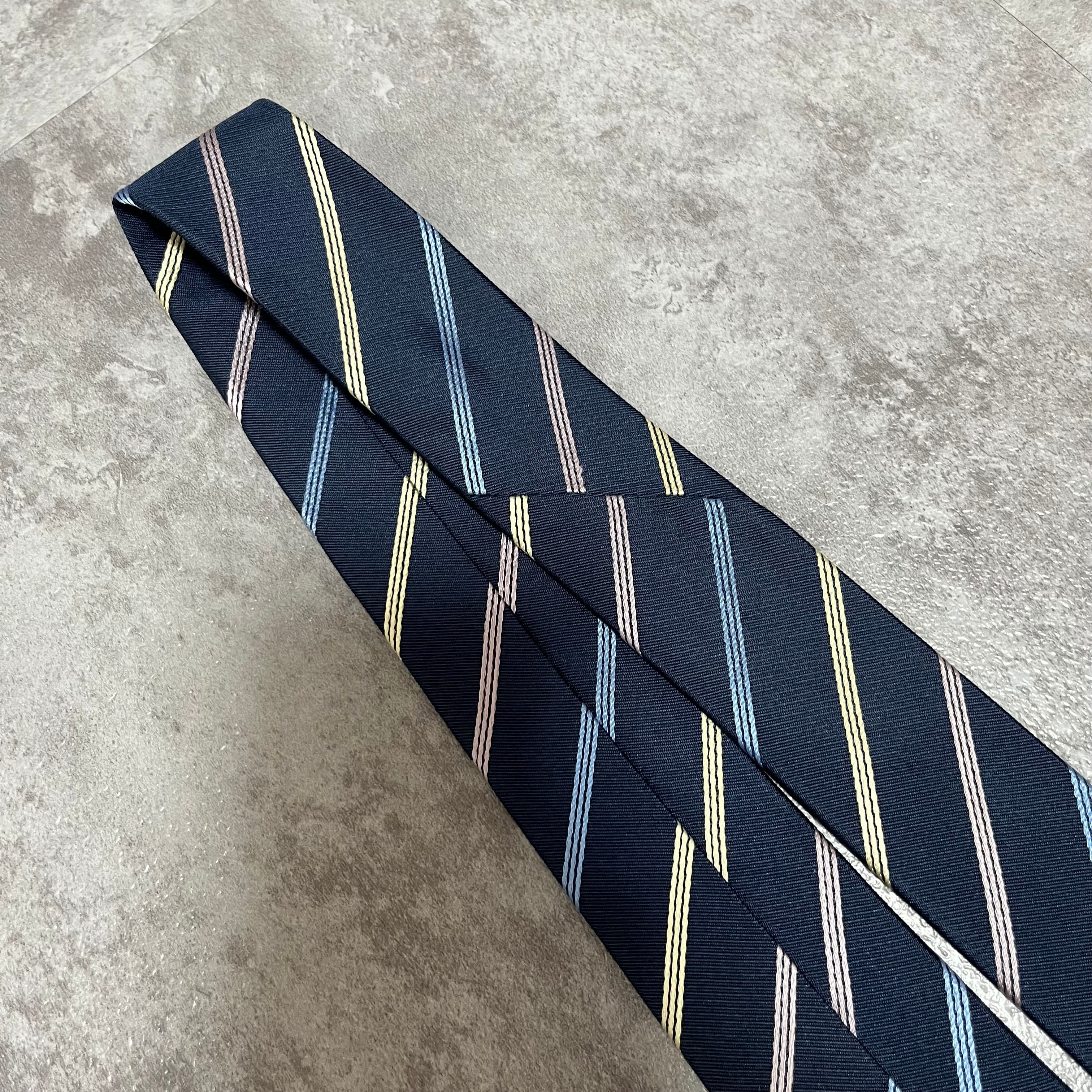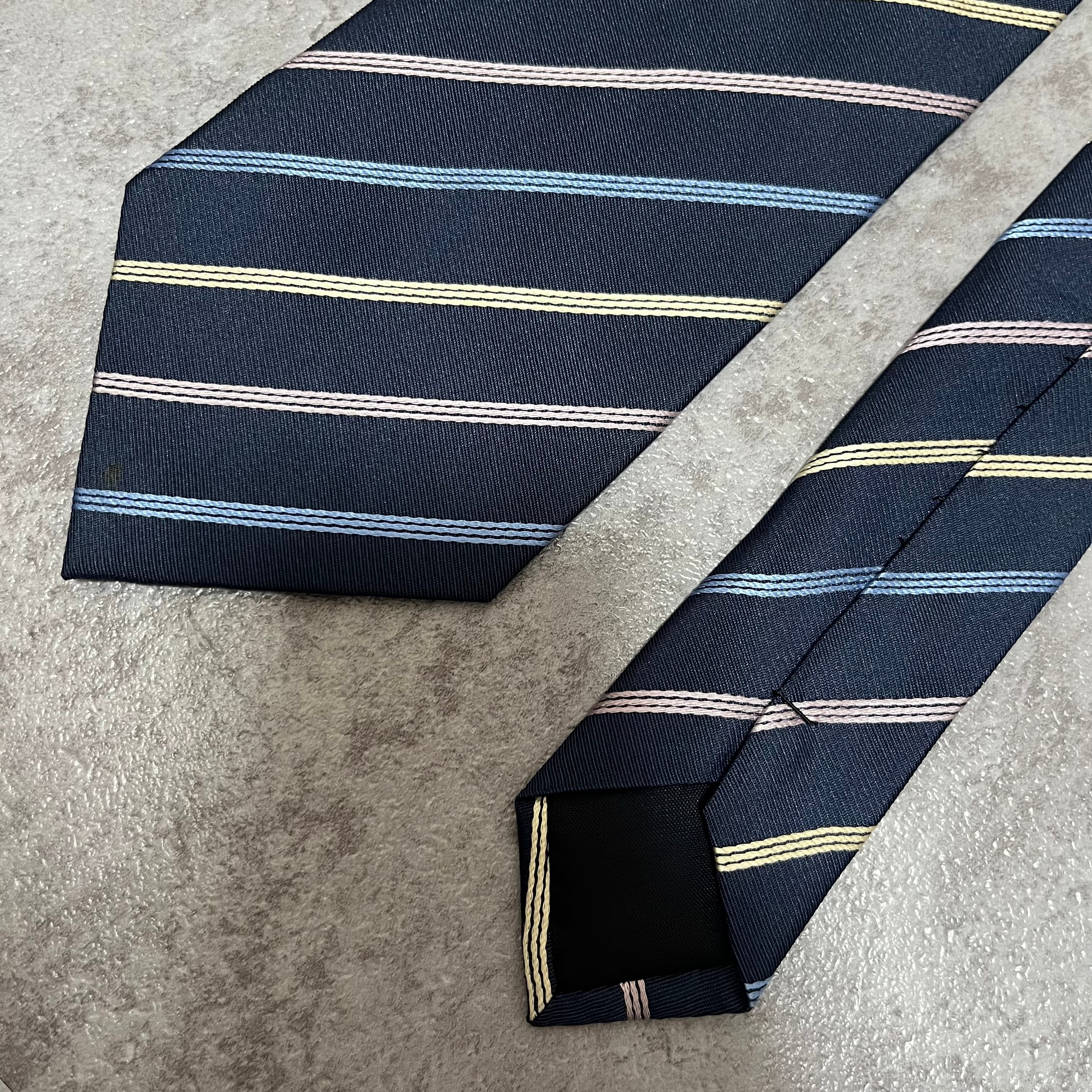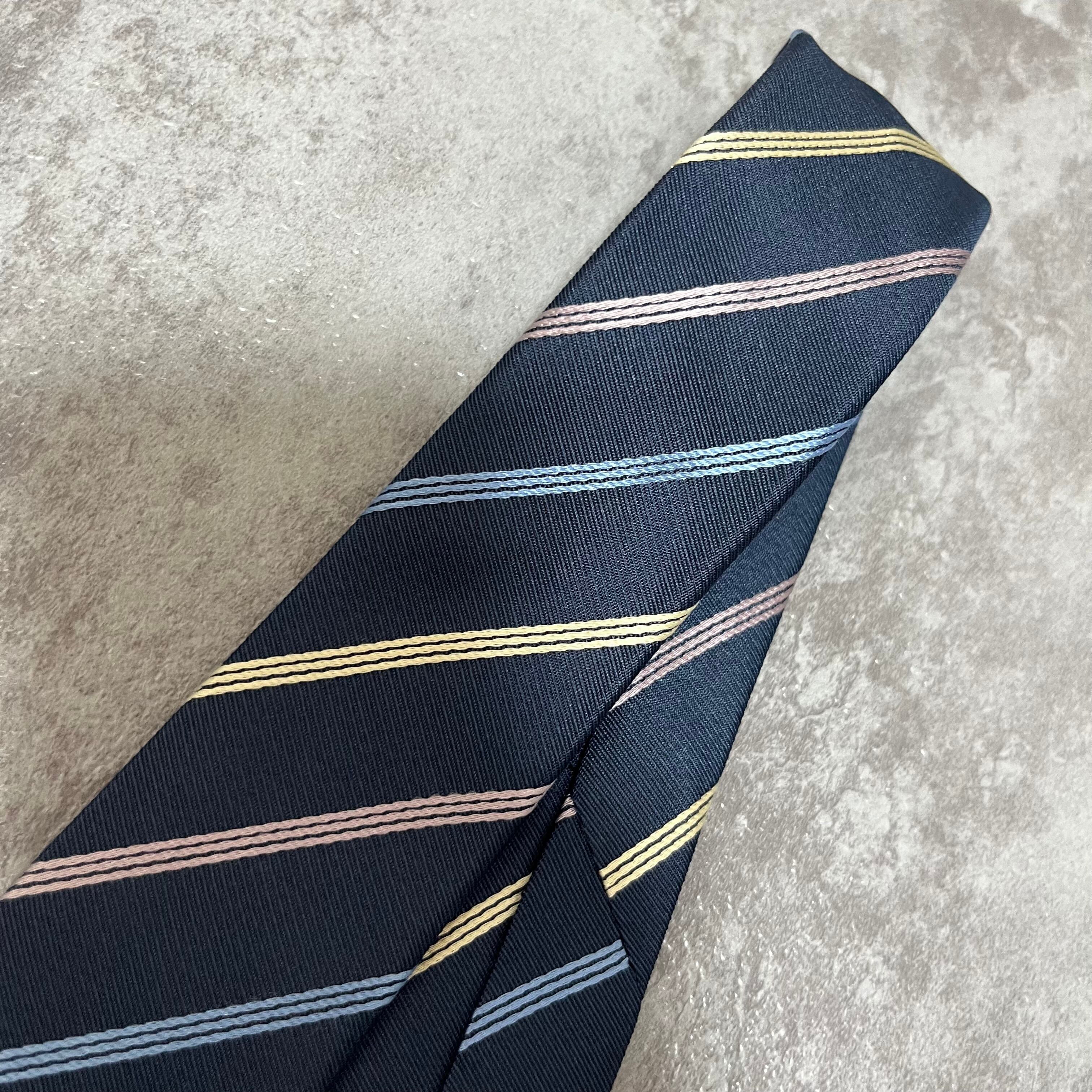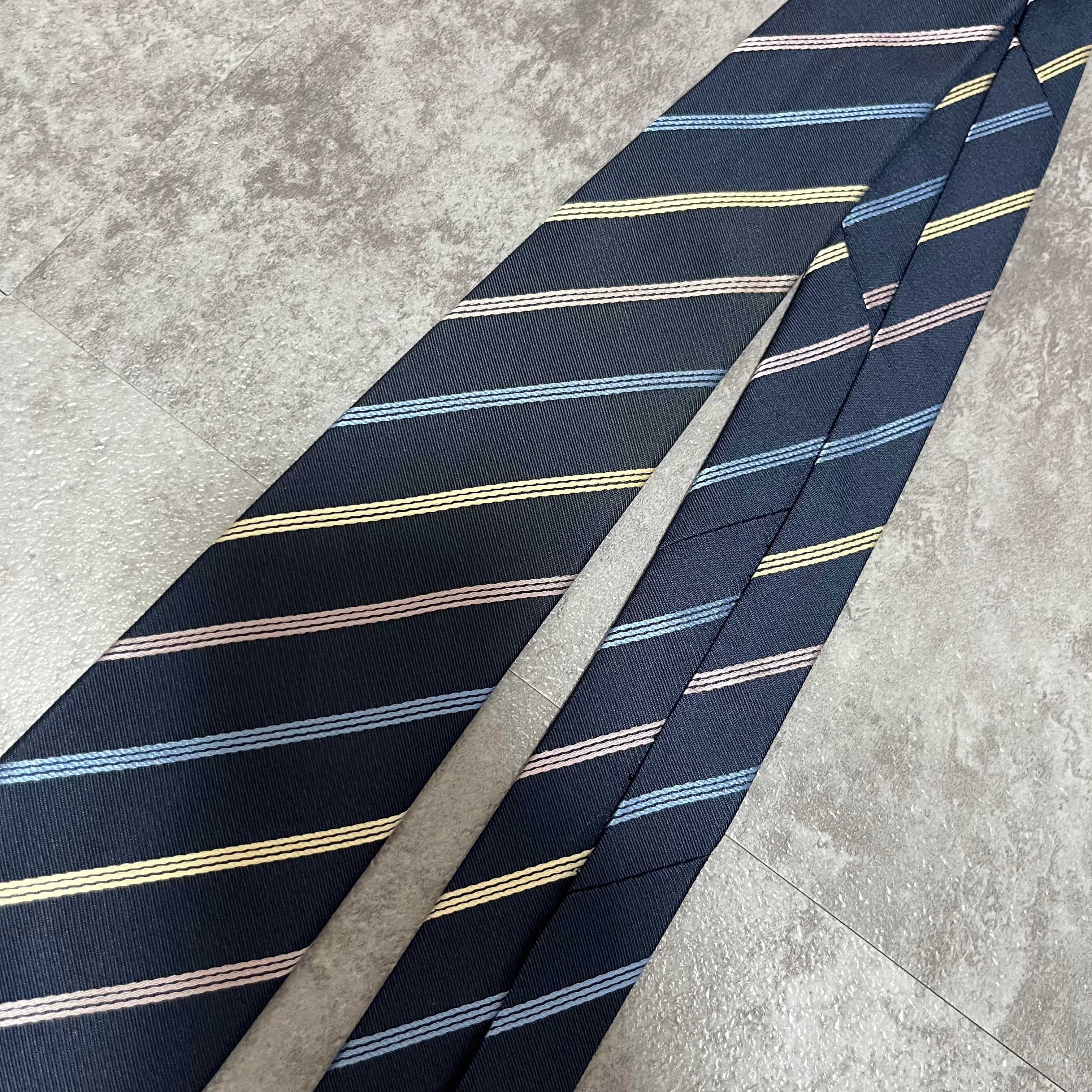 【ストライプ】バイカラーレジメンタルストライプネクタイ ネイビー ブルー シルバー ビジネス用 シルク100%