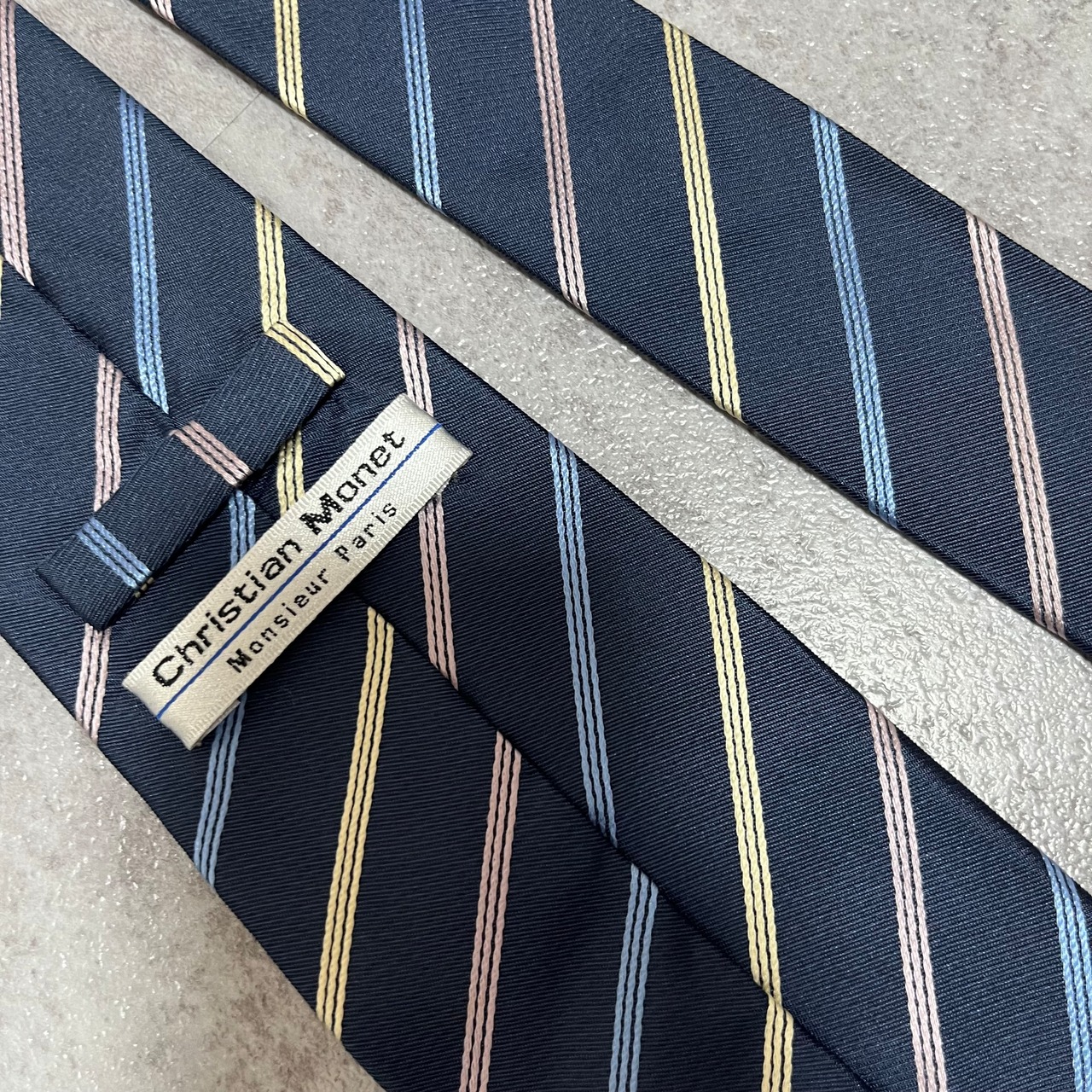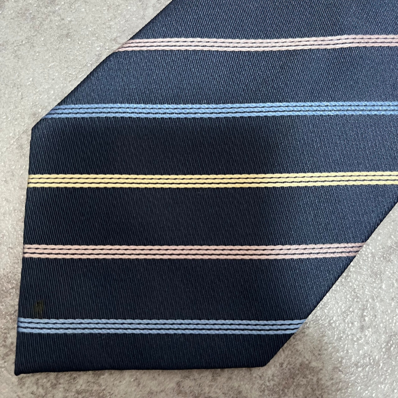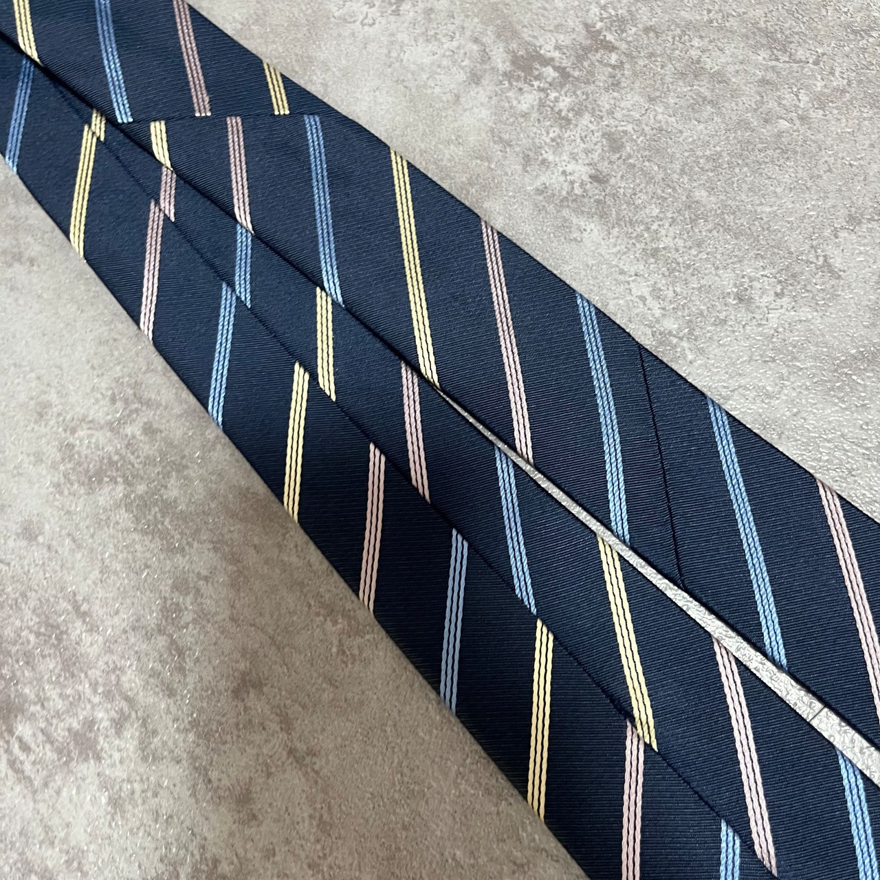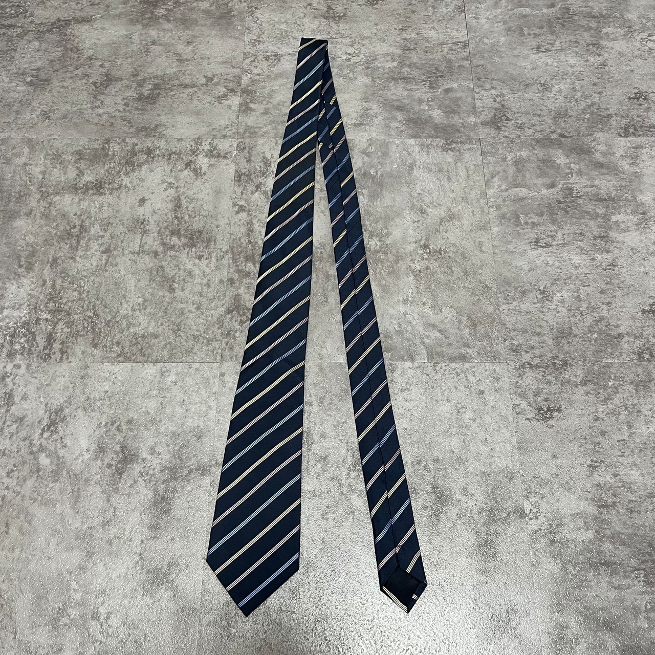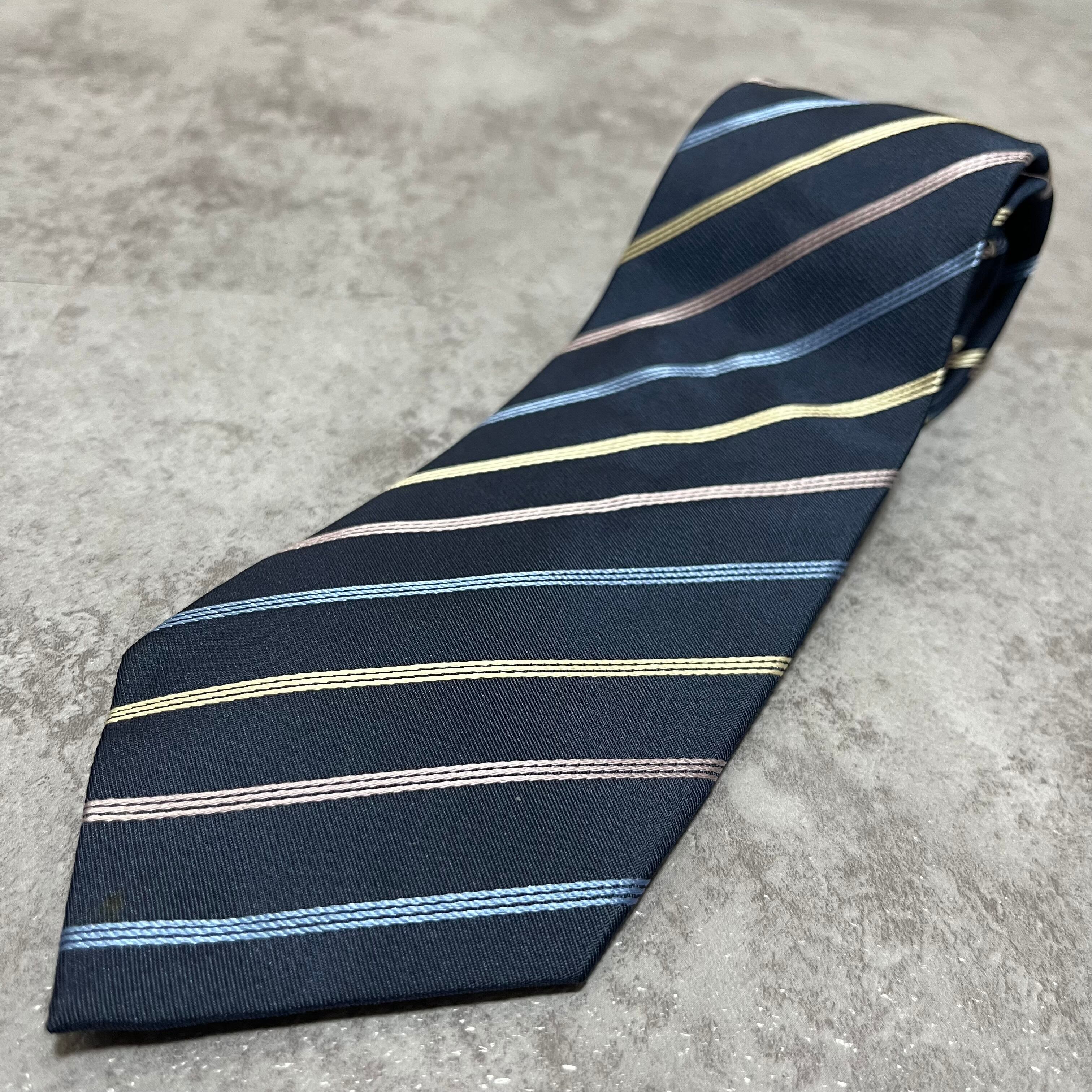 【ストライプ】バイカラーレジメンタルストライプネクタイ ネイビー ブルー シルバー ビジネス用 シルク100%