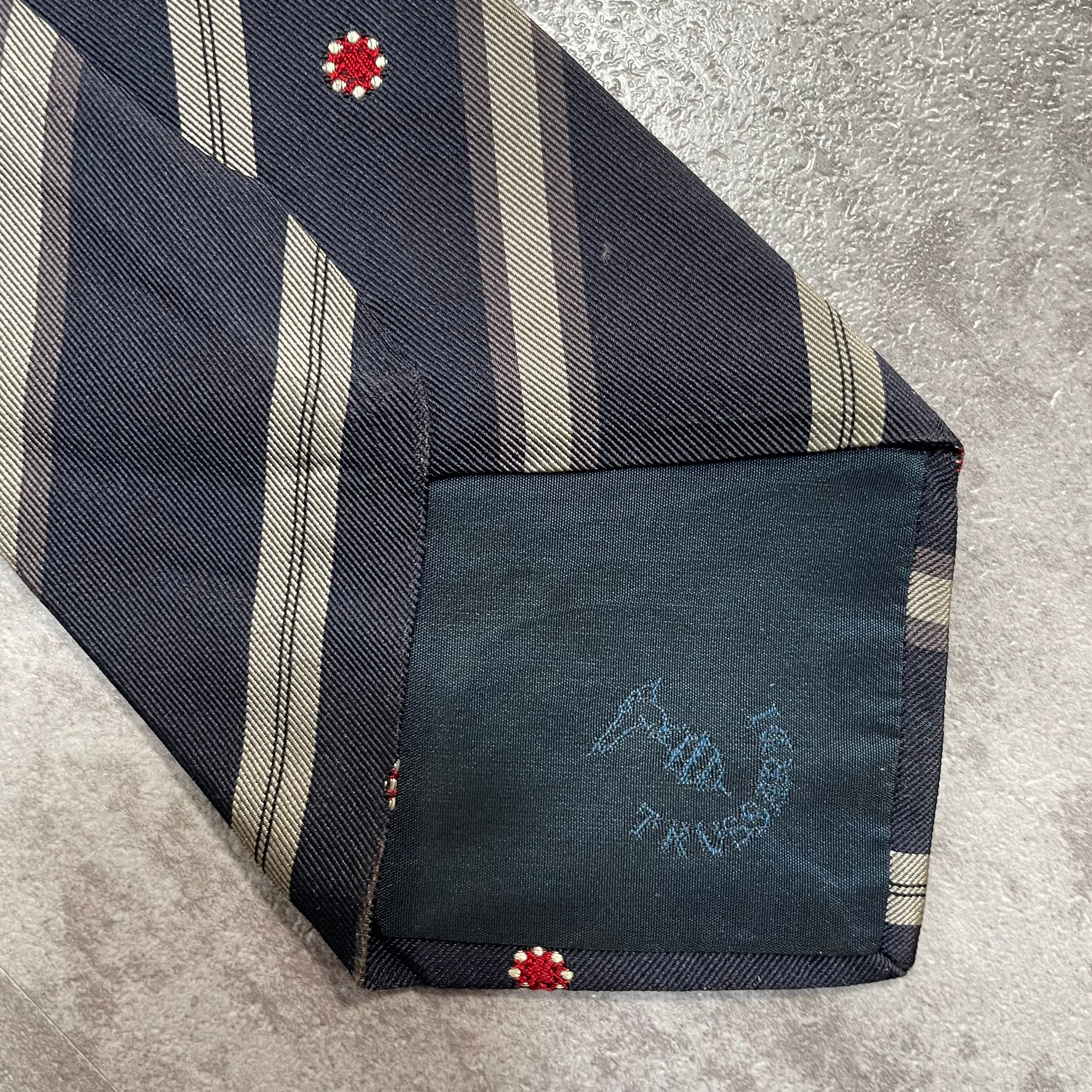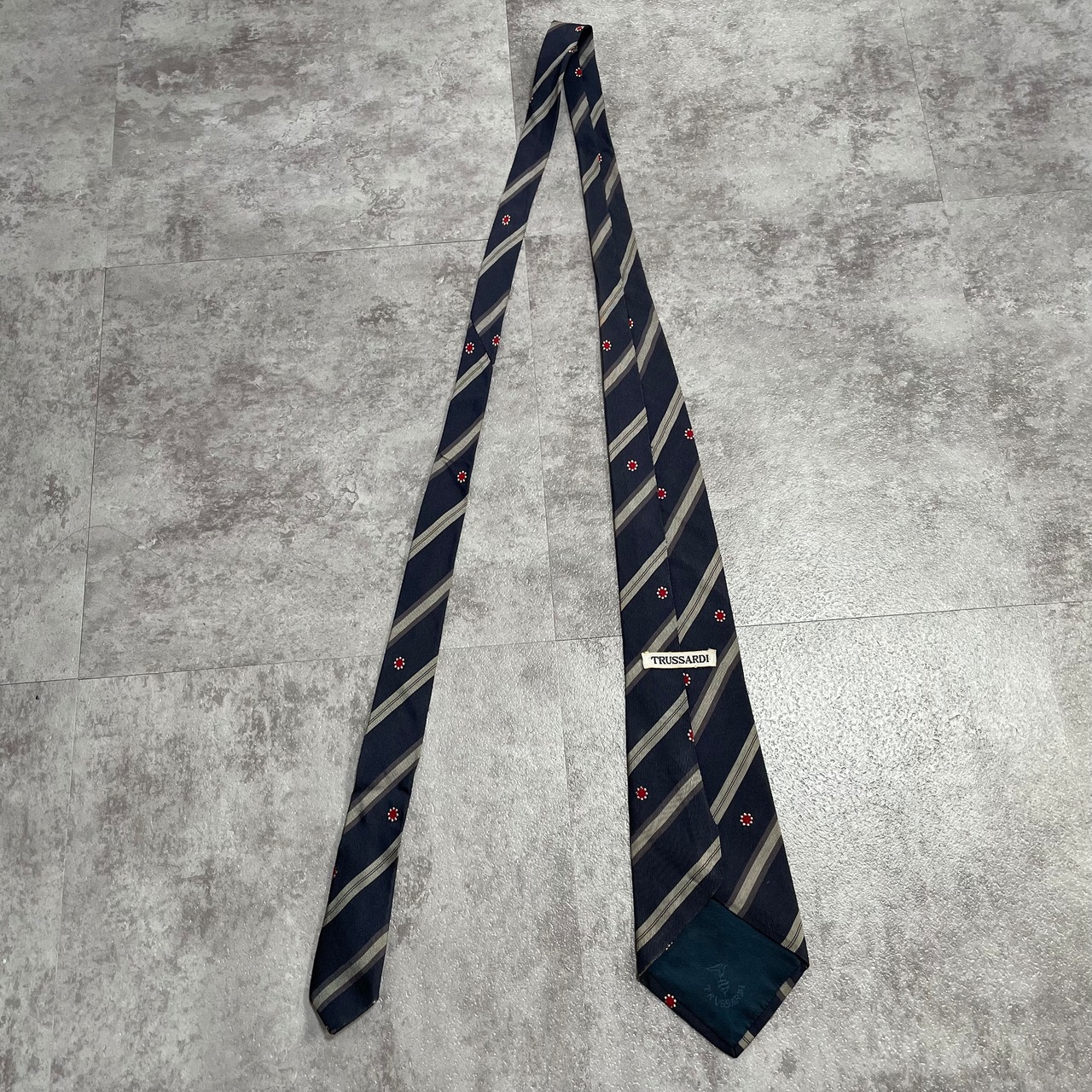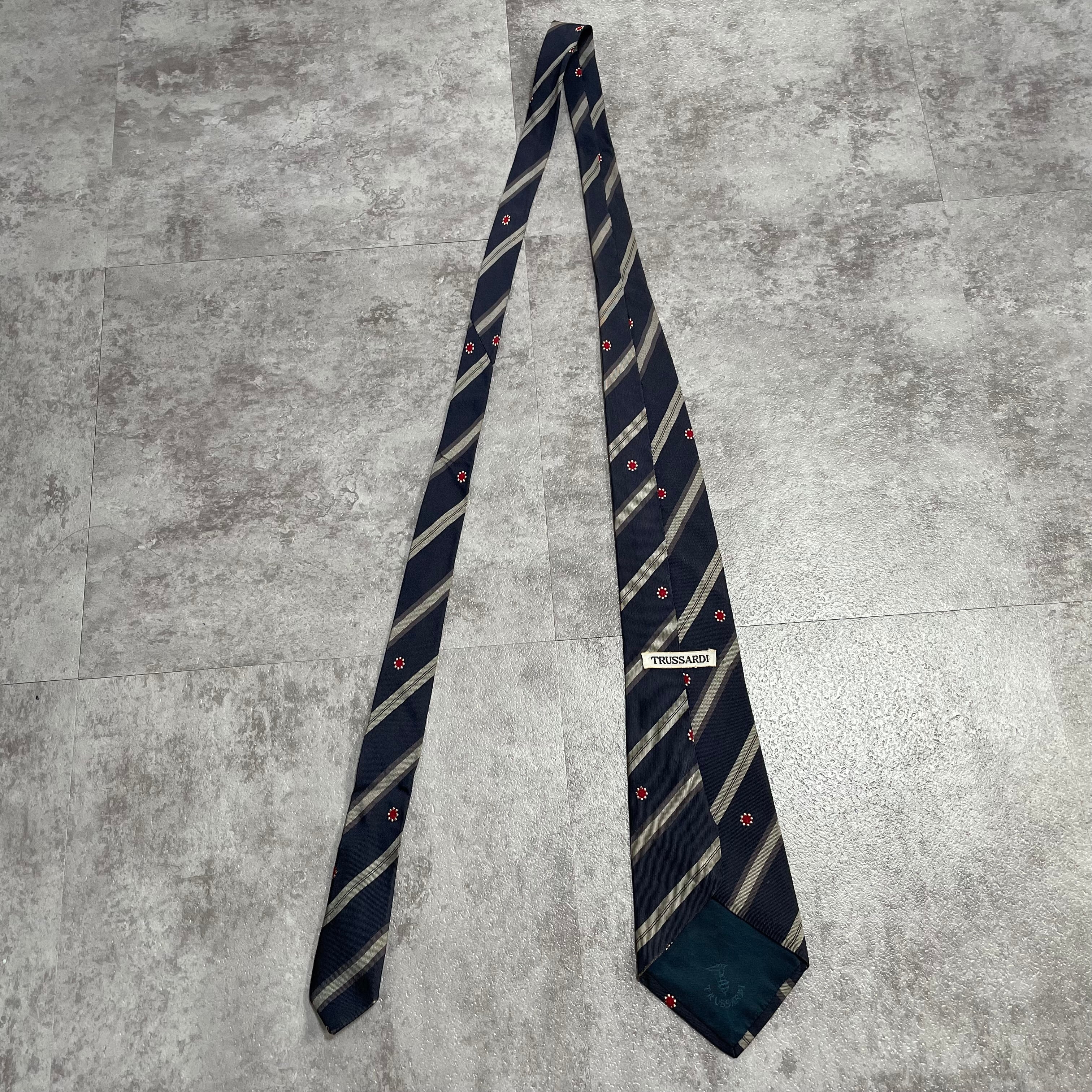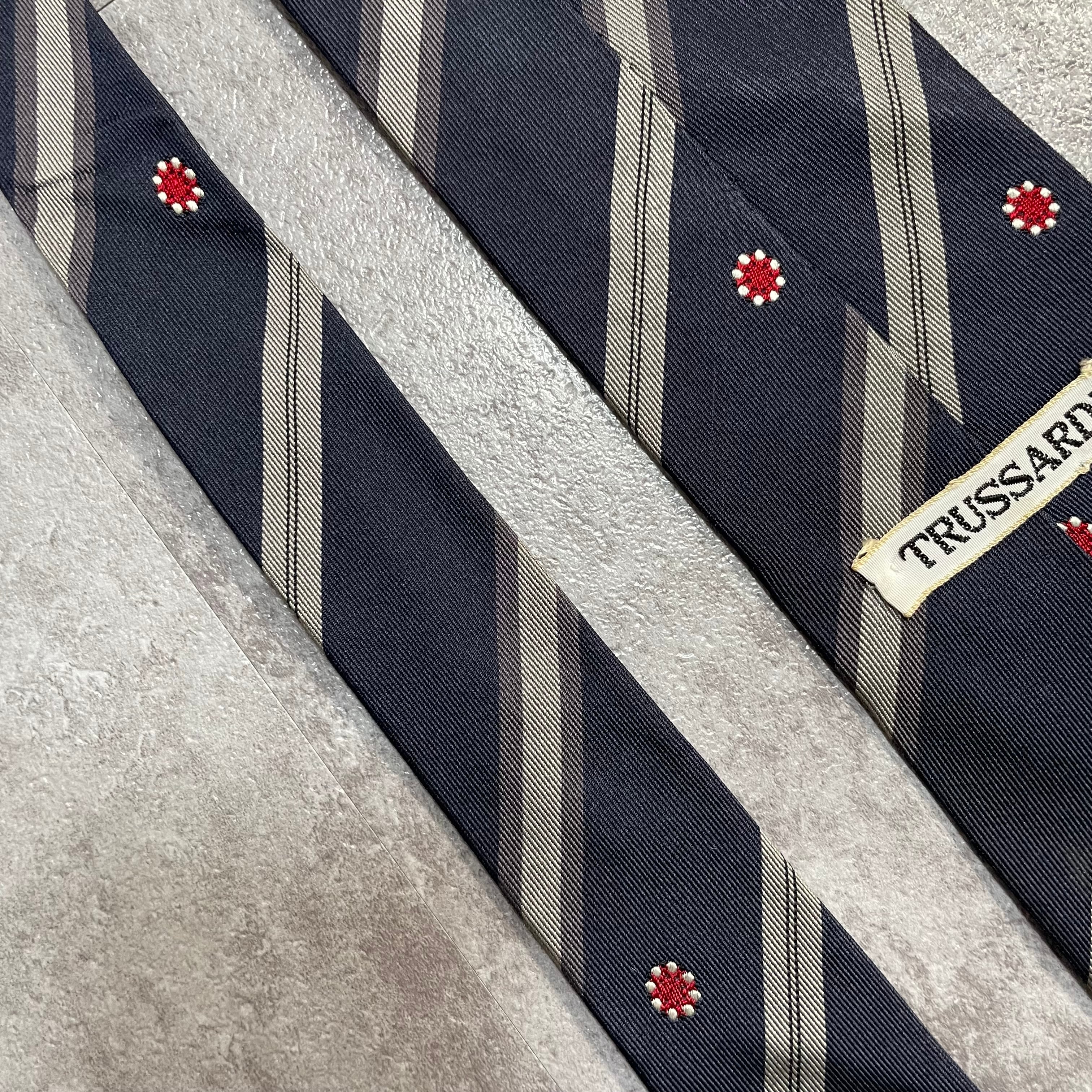 【Trussardi】レジメンタルストライプネクタイ ビジネス向け バイカラー ネイビー 紺色 花柄 トラサルディ