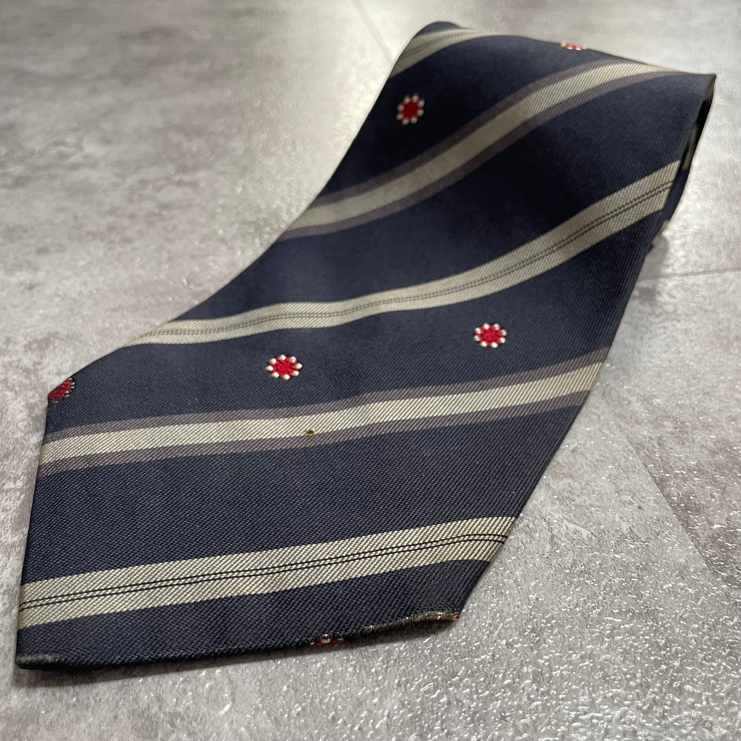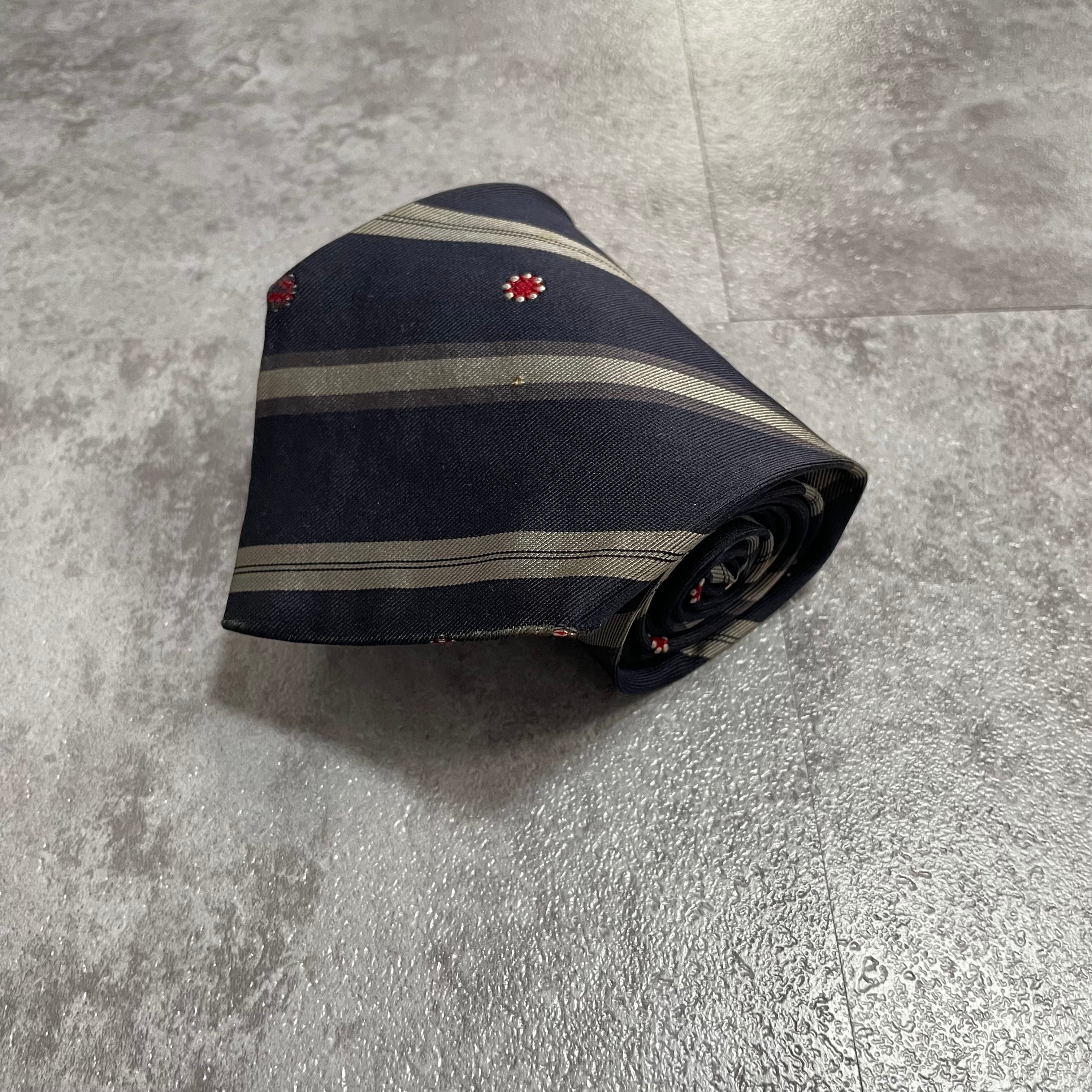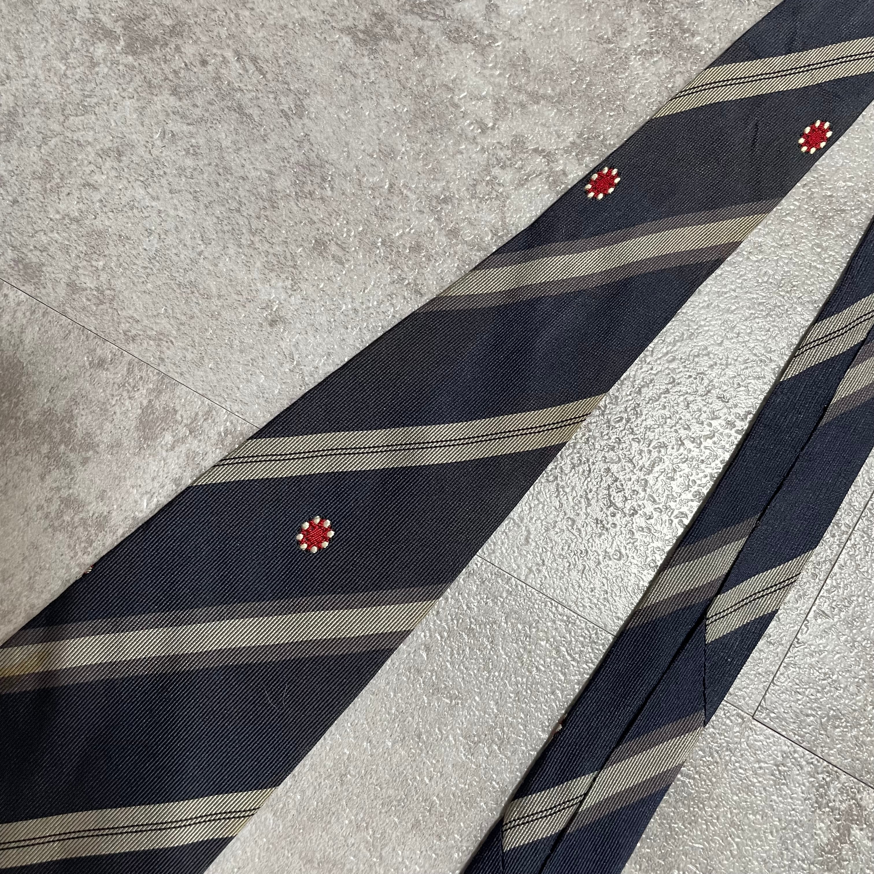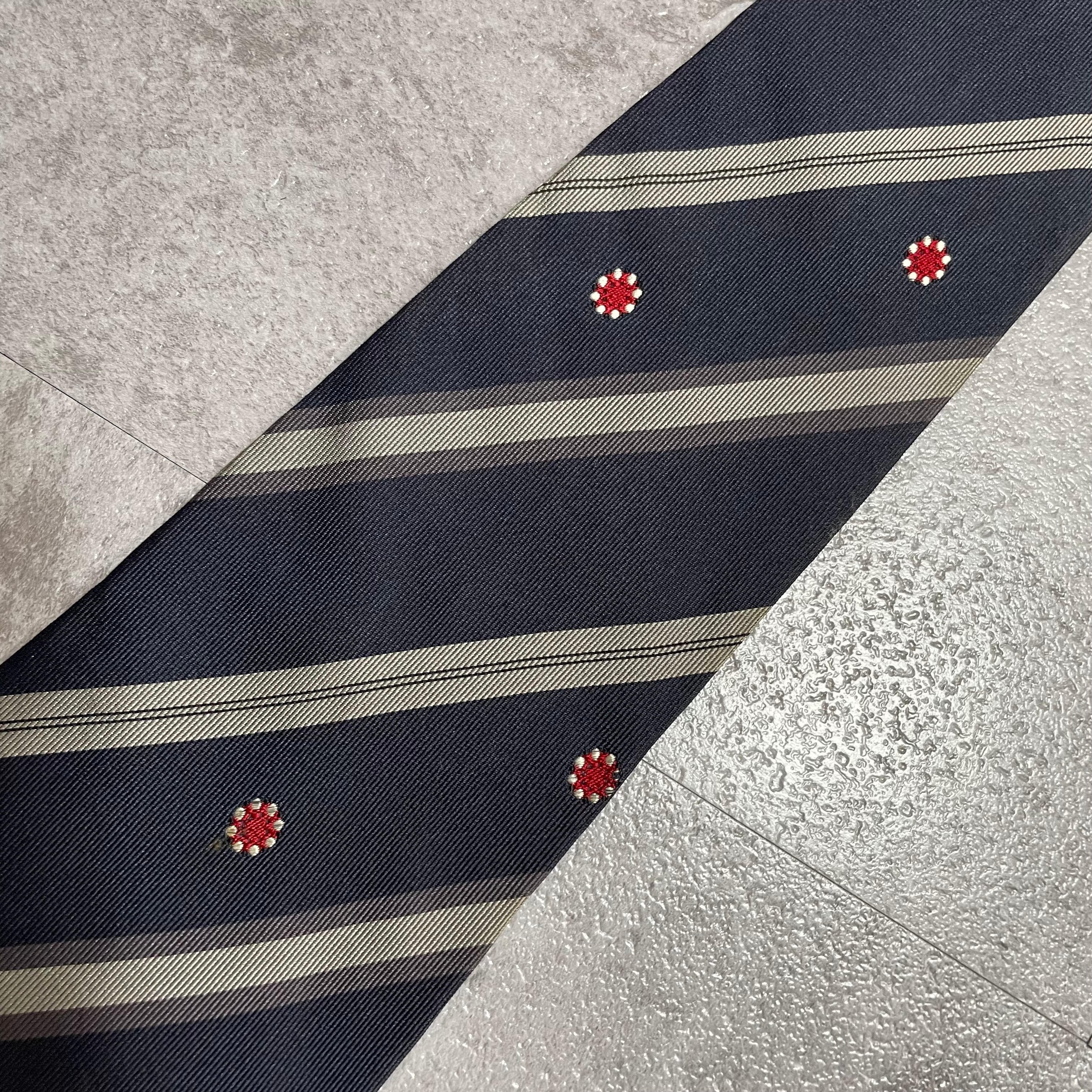 【Trussardi】レジメンタルストライプネクタイ ビジネス向け バイカラー ネイビー 紺色 花柄 トラサルディ