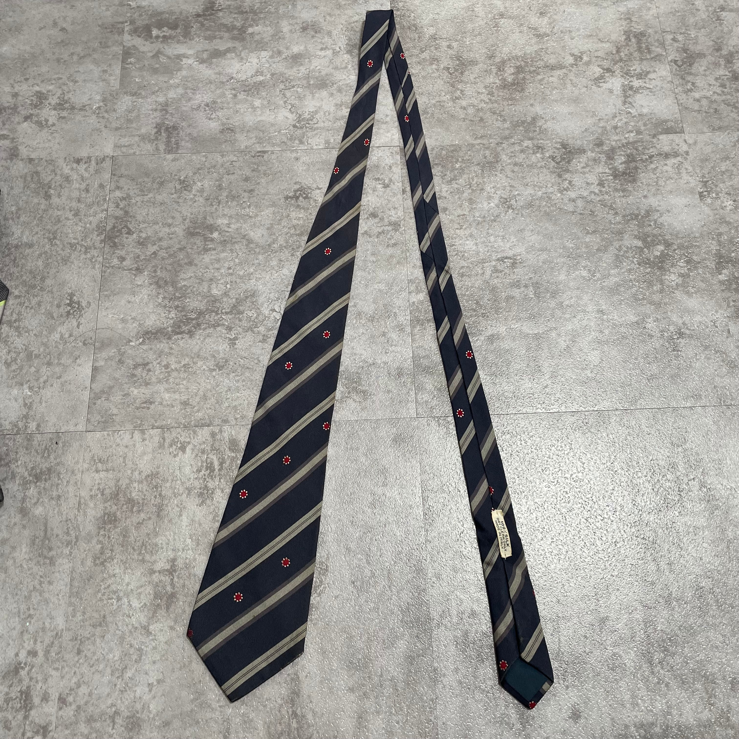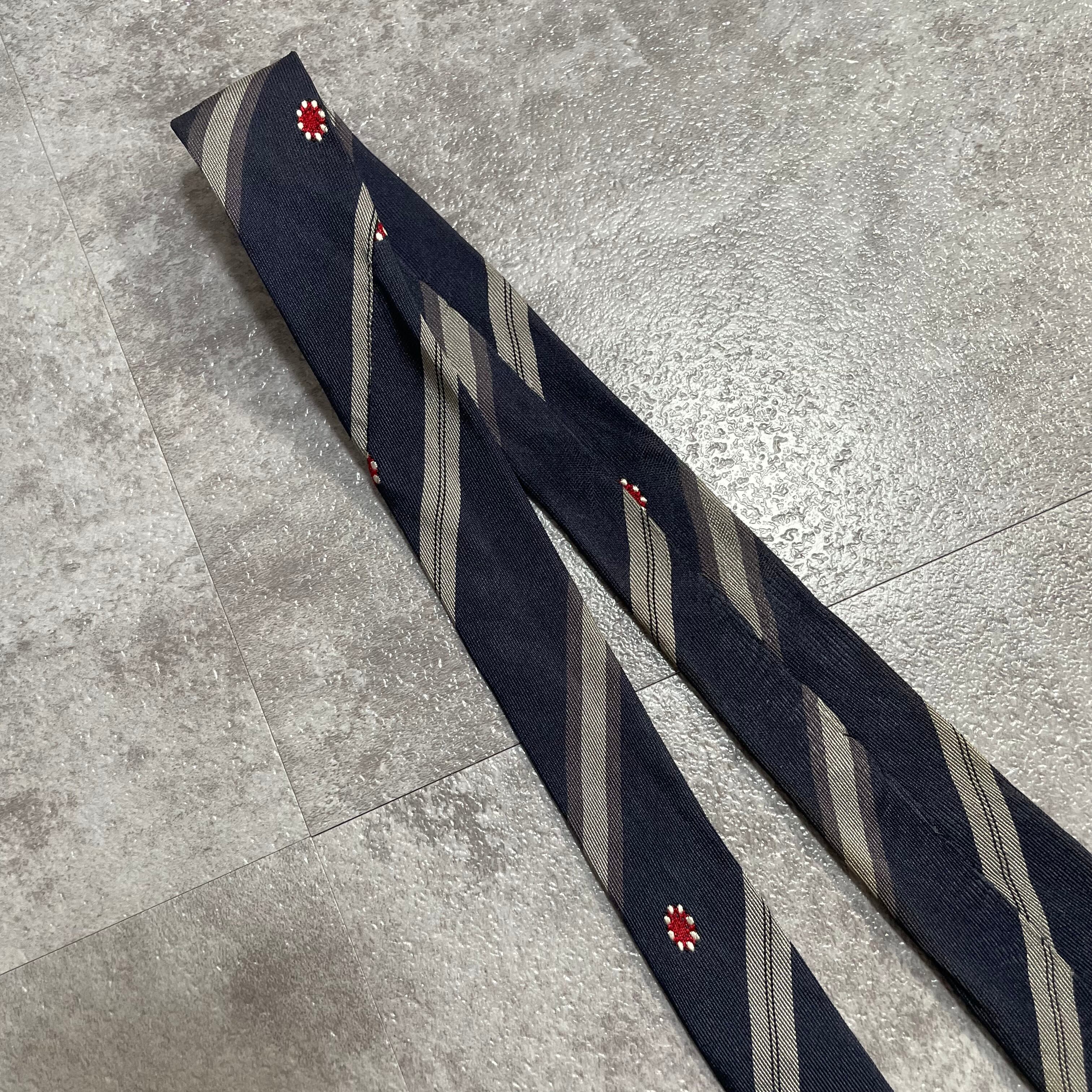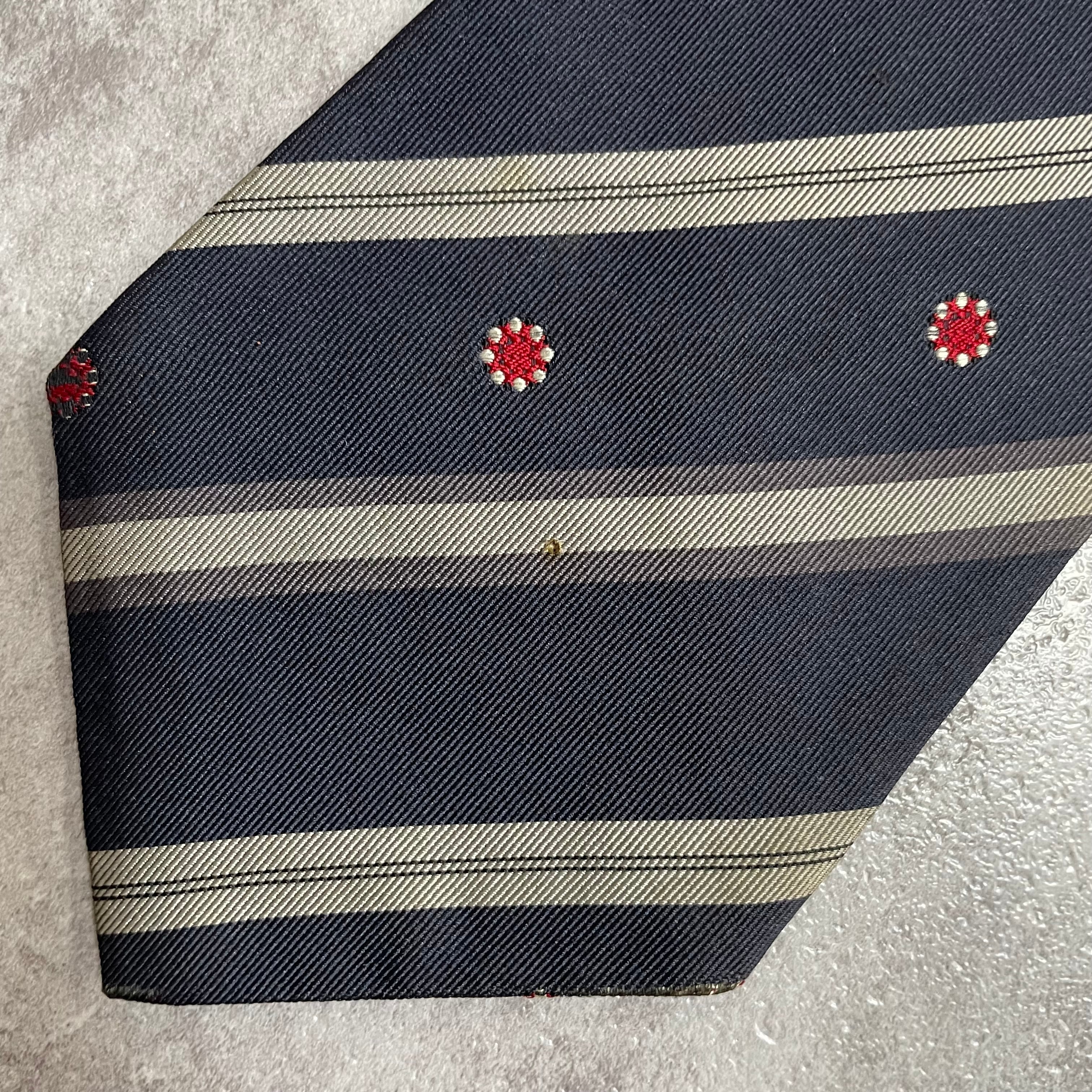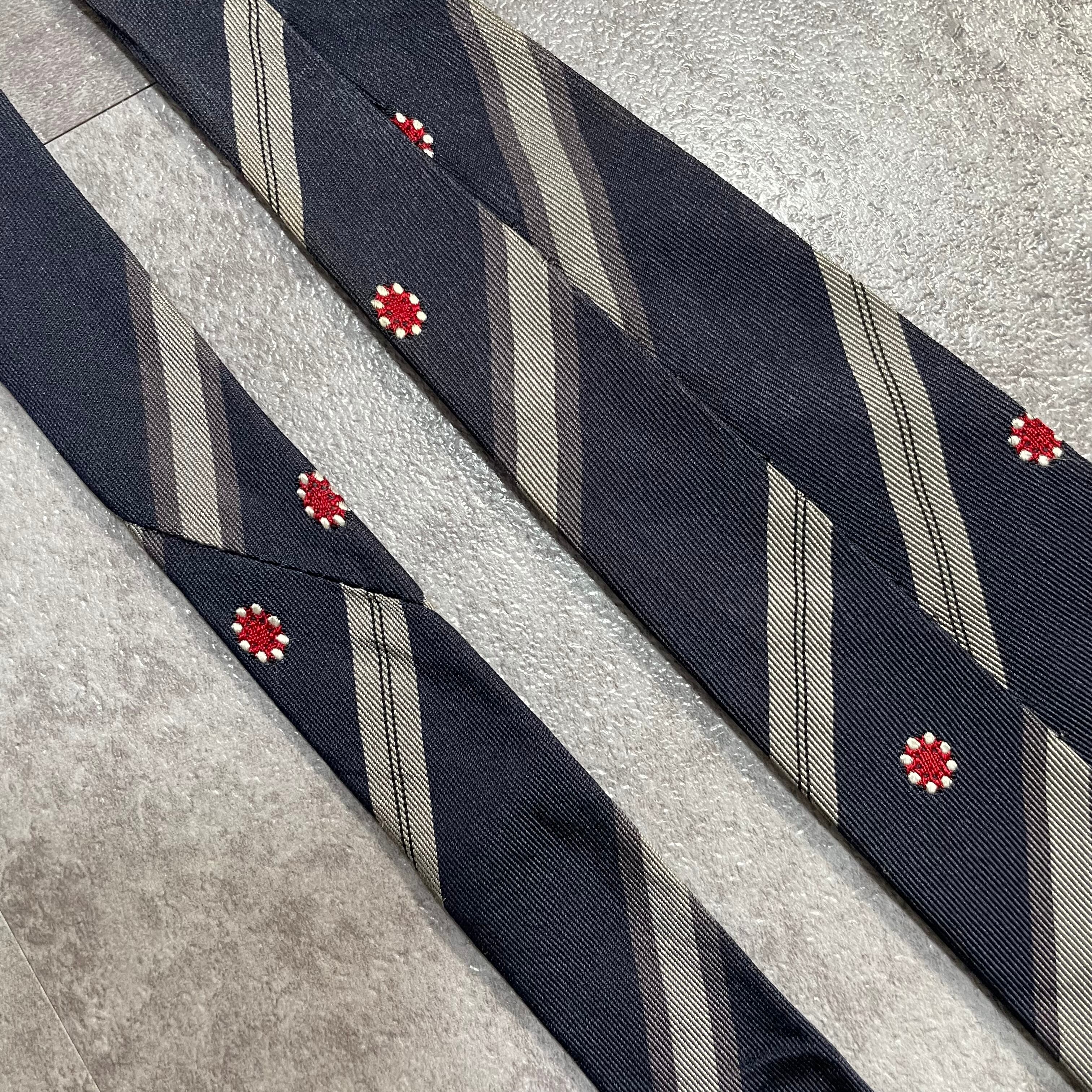 【Trussardi】レジメンタルストライプネクタイ ビジネス向け バイカラー ネイビー 紺色 花柄 トラサルディ