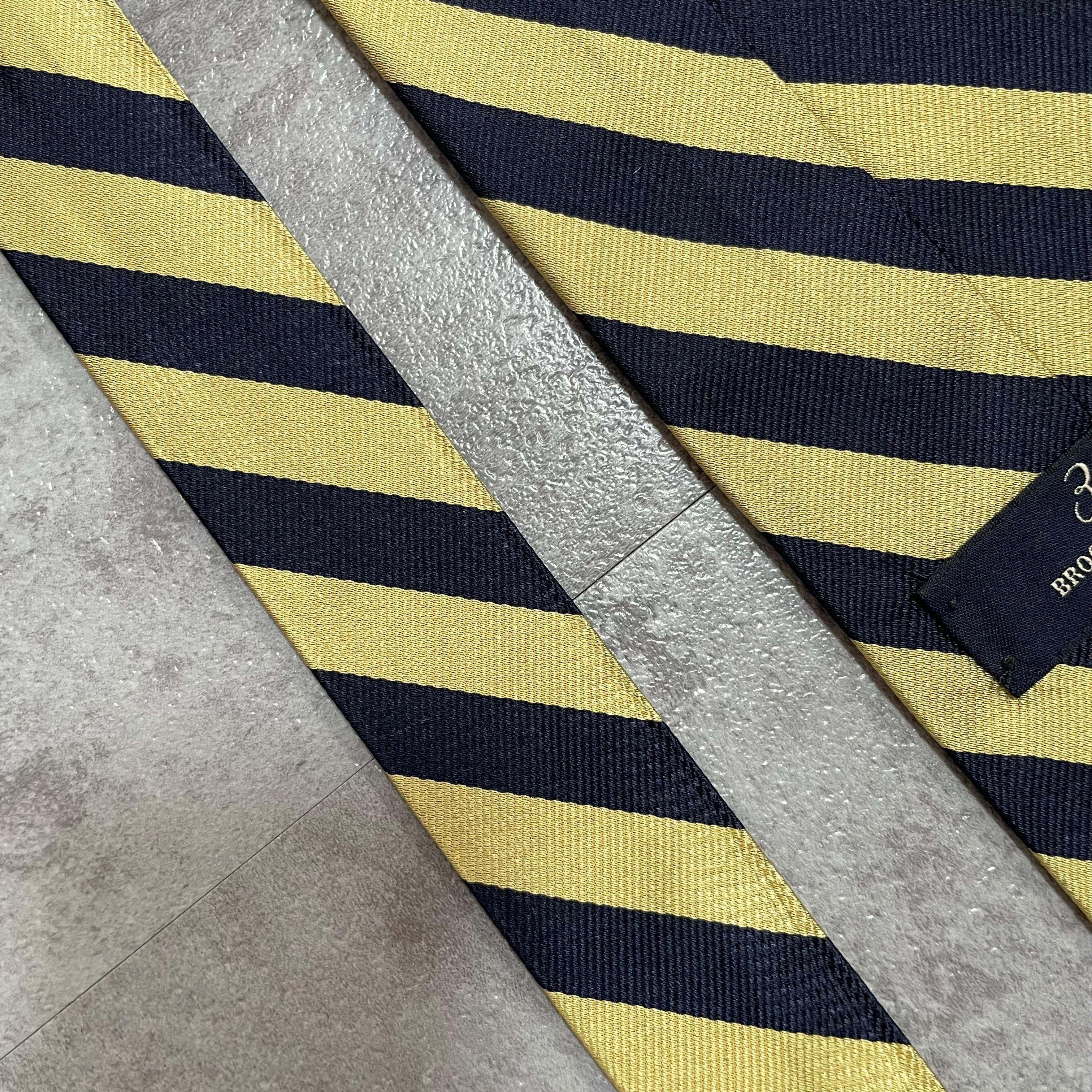 【Brooks Brothers】レジメンタルストライプネクタイ ビジネス向け バイカラー 黒金 最高配色 ブラック ゴールド 光沢 ブルックスブラザーズ