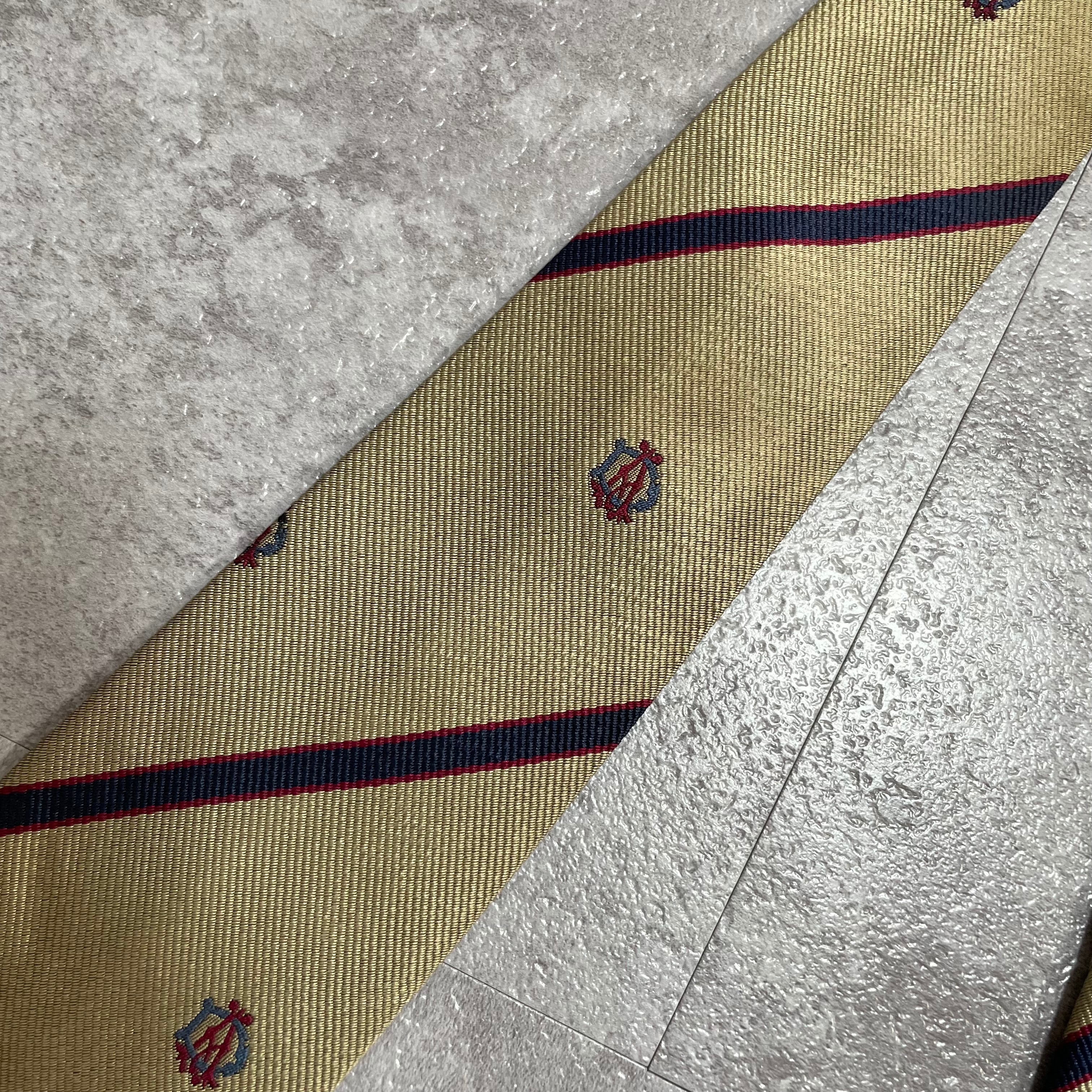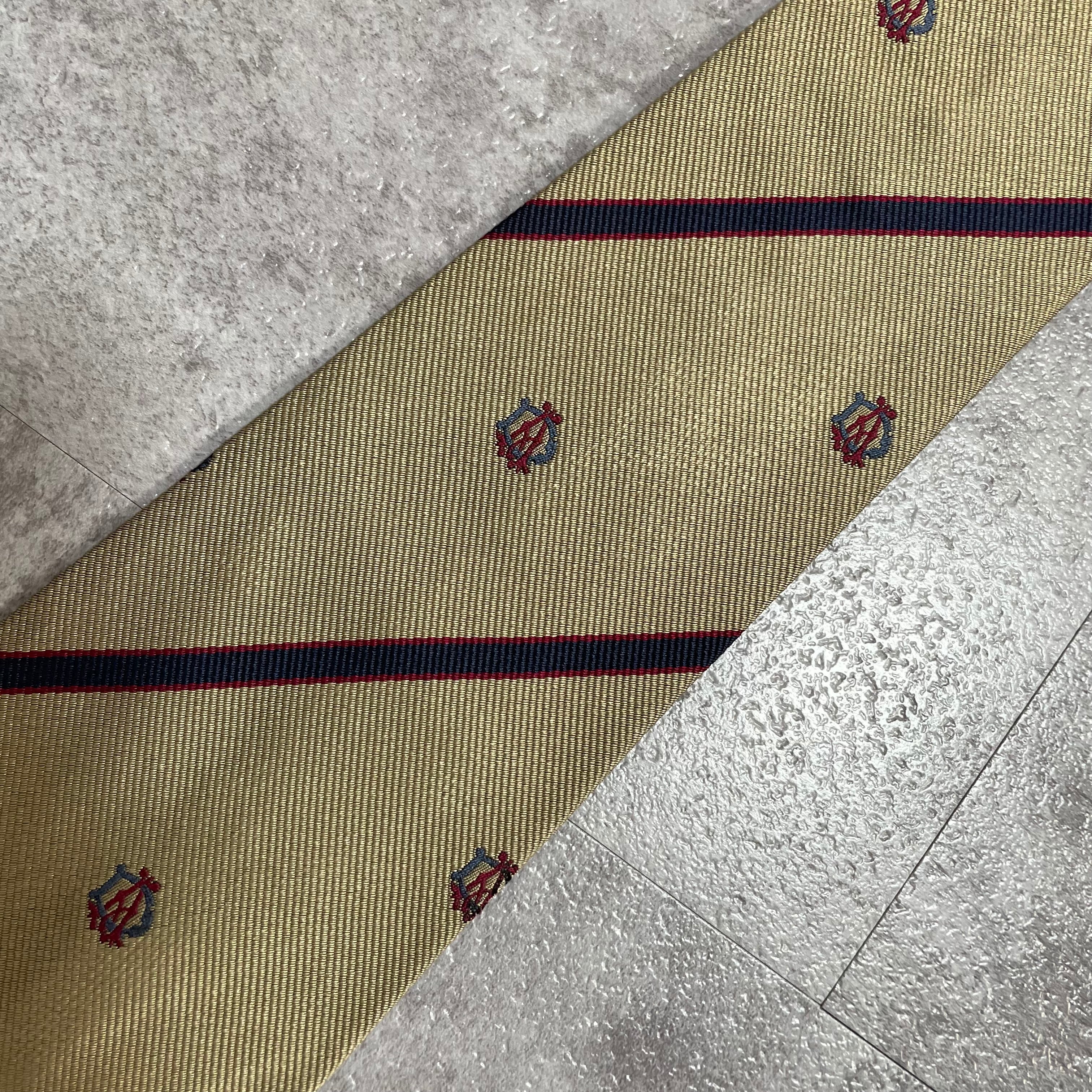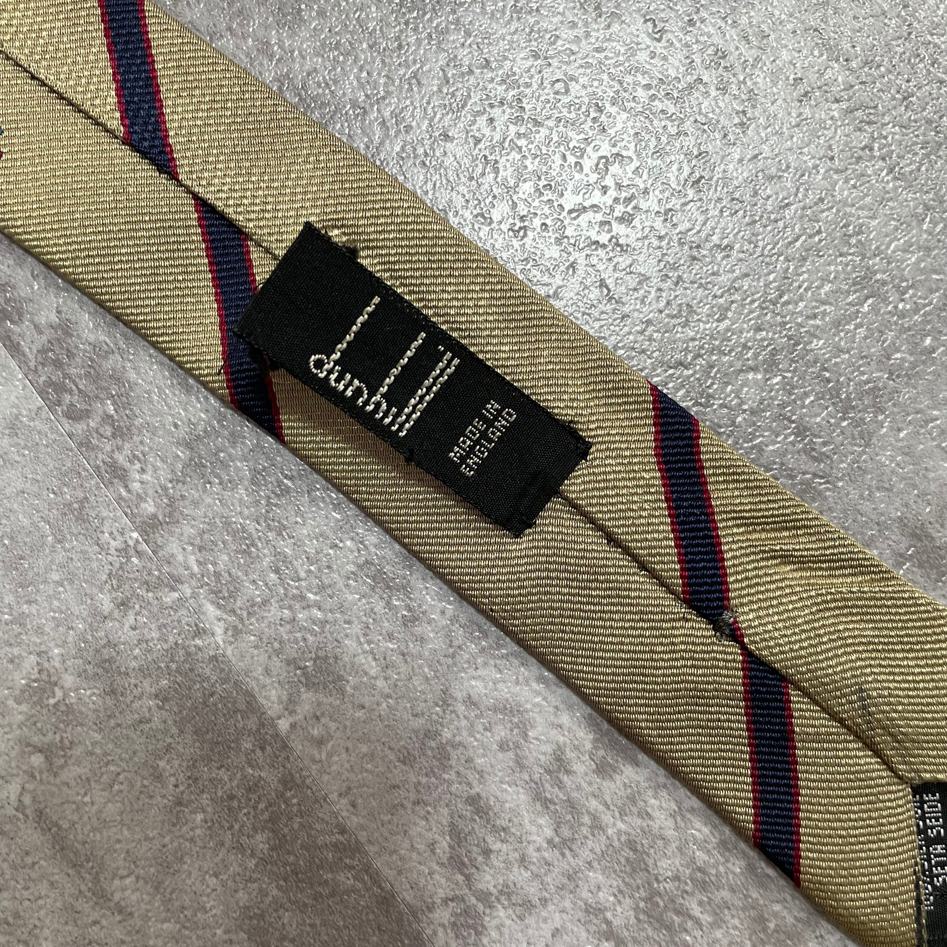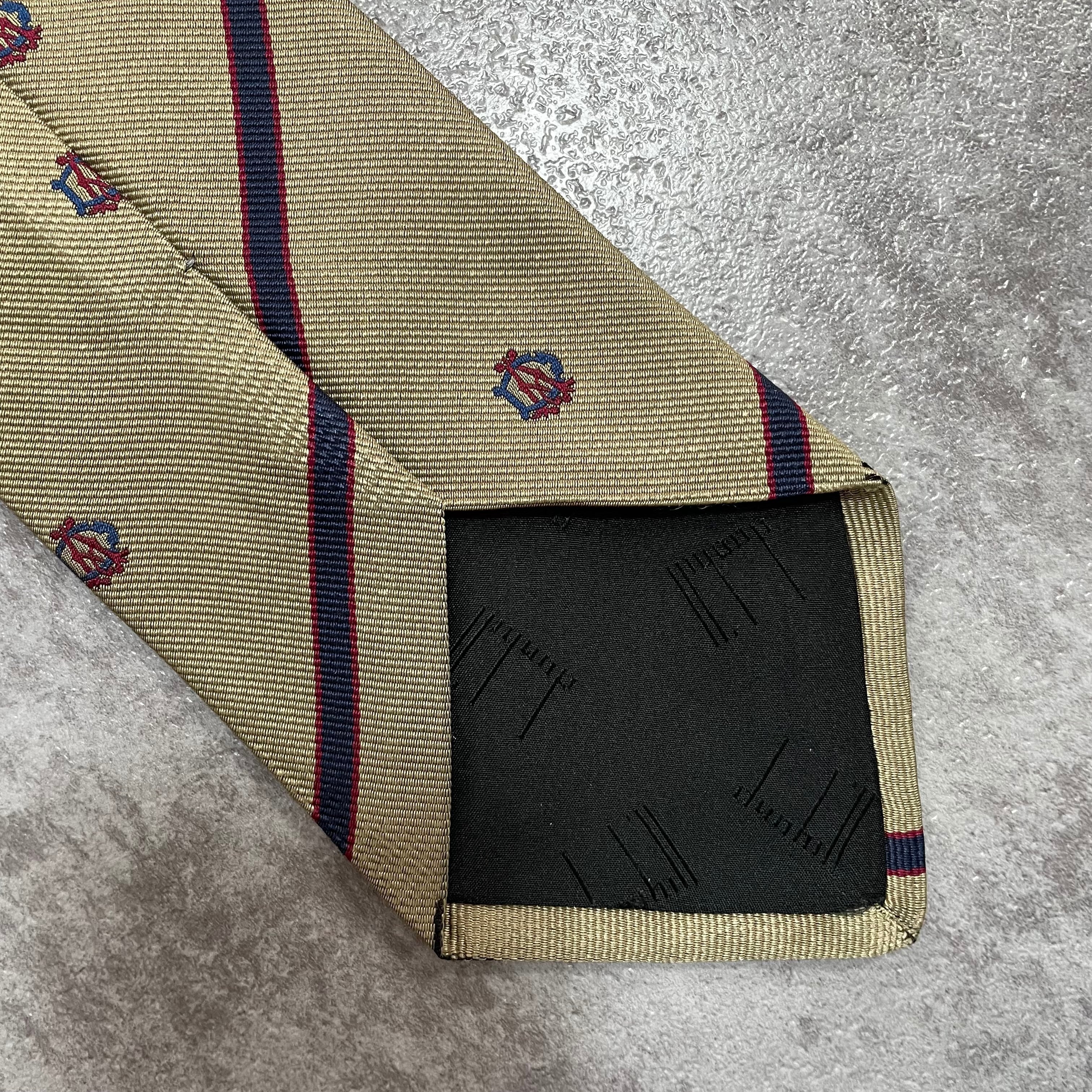 【dunhill】レジメンタルストライプネクタイ ビジネス向け ゴールド 金 光沢 DAロゴ入り 慶事にも
