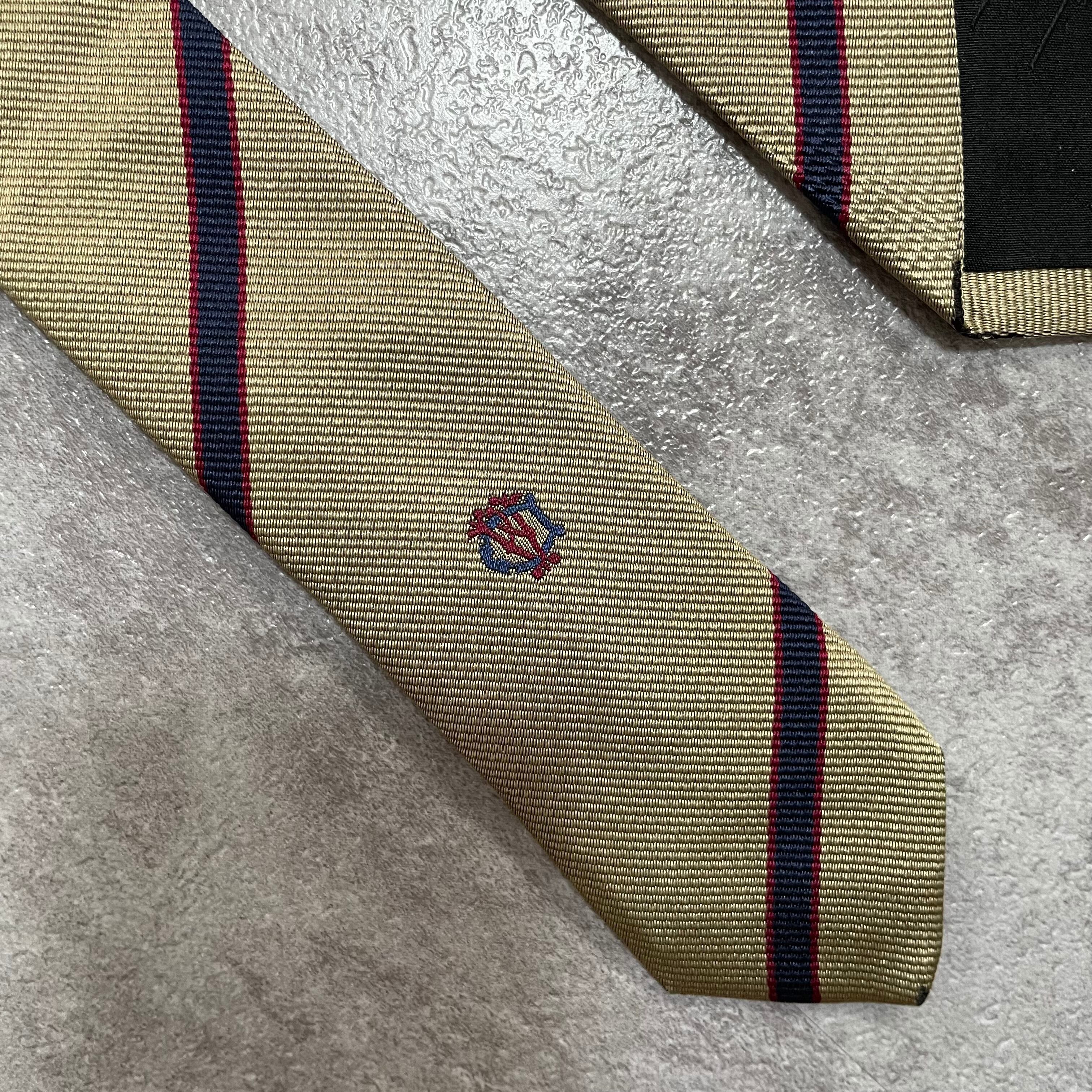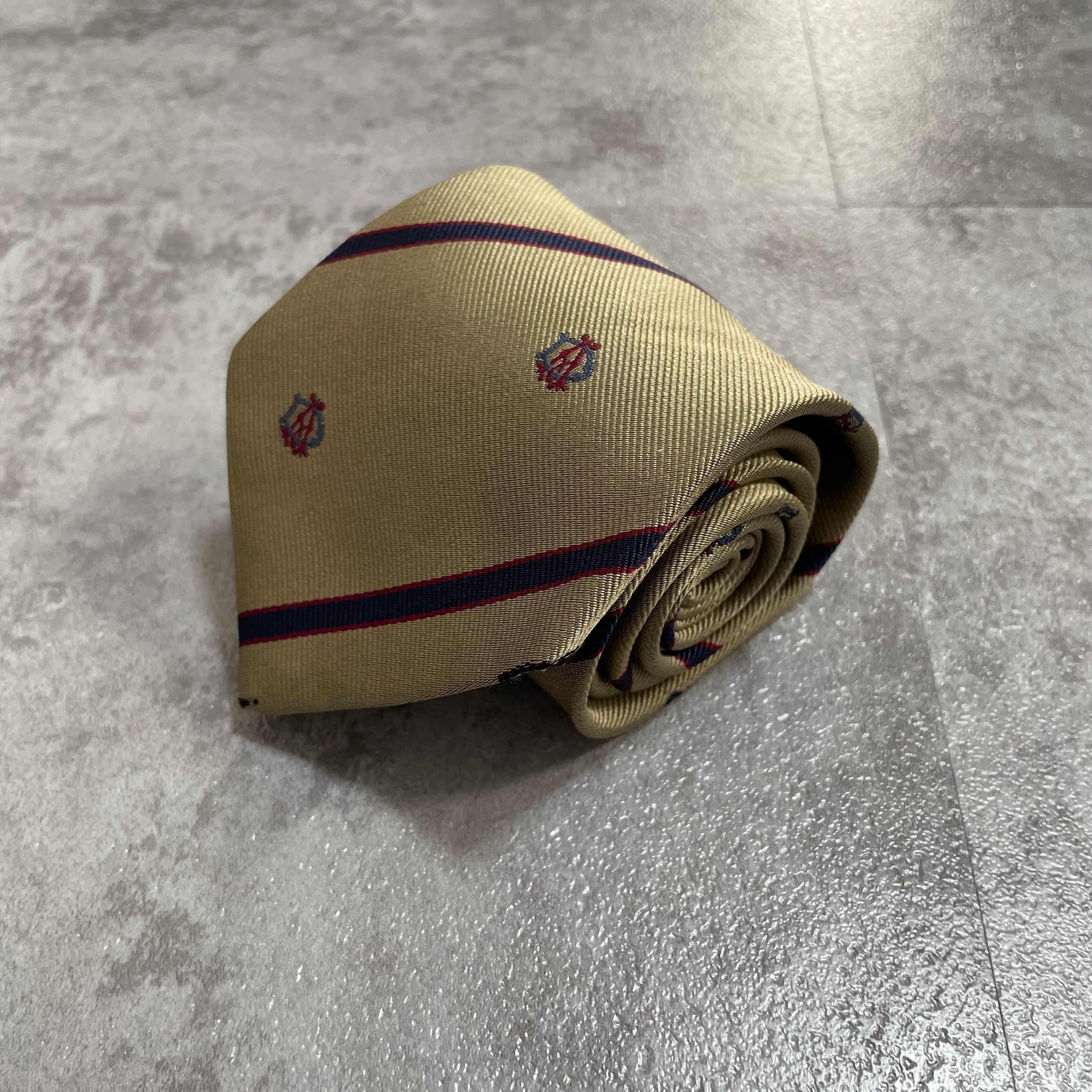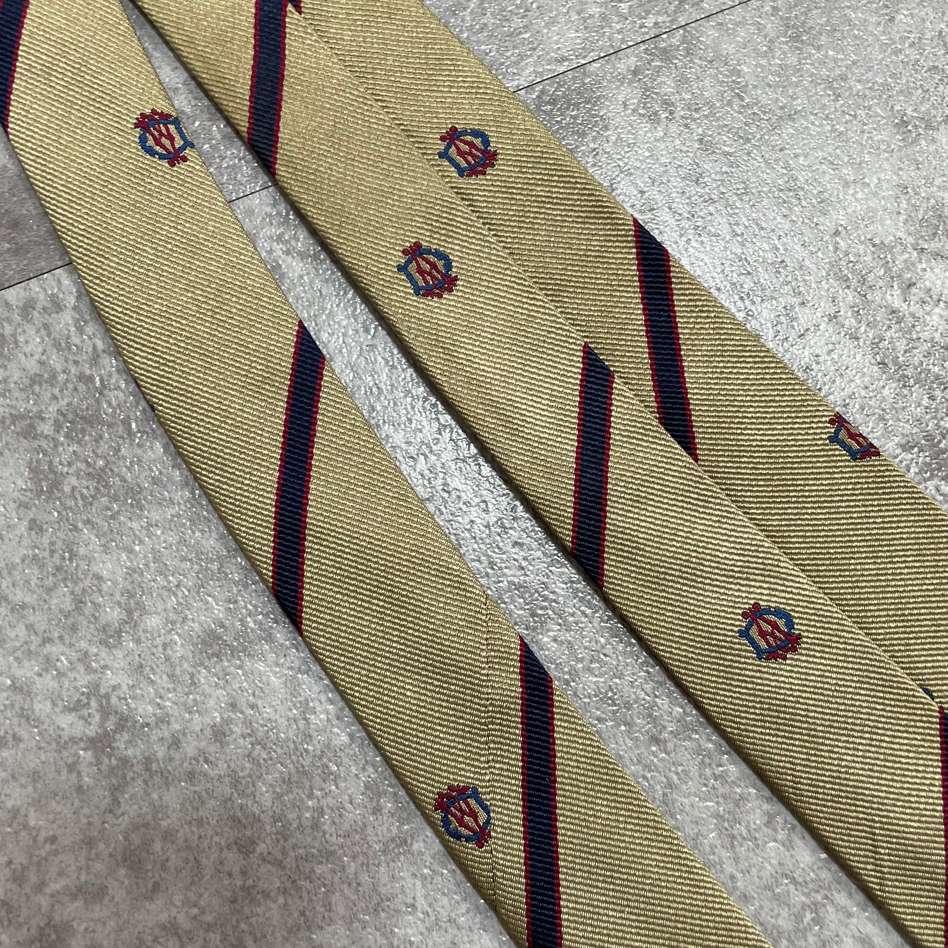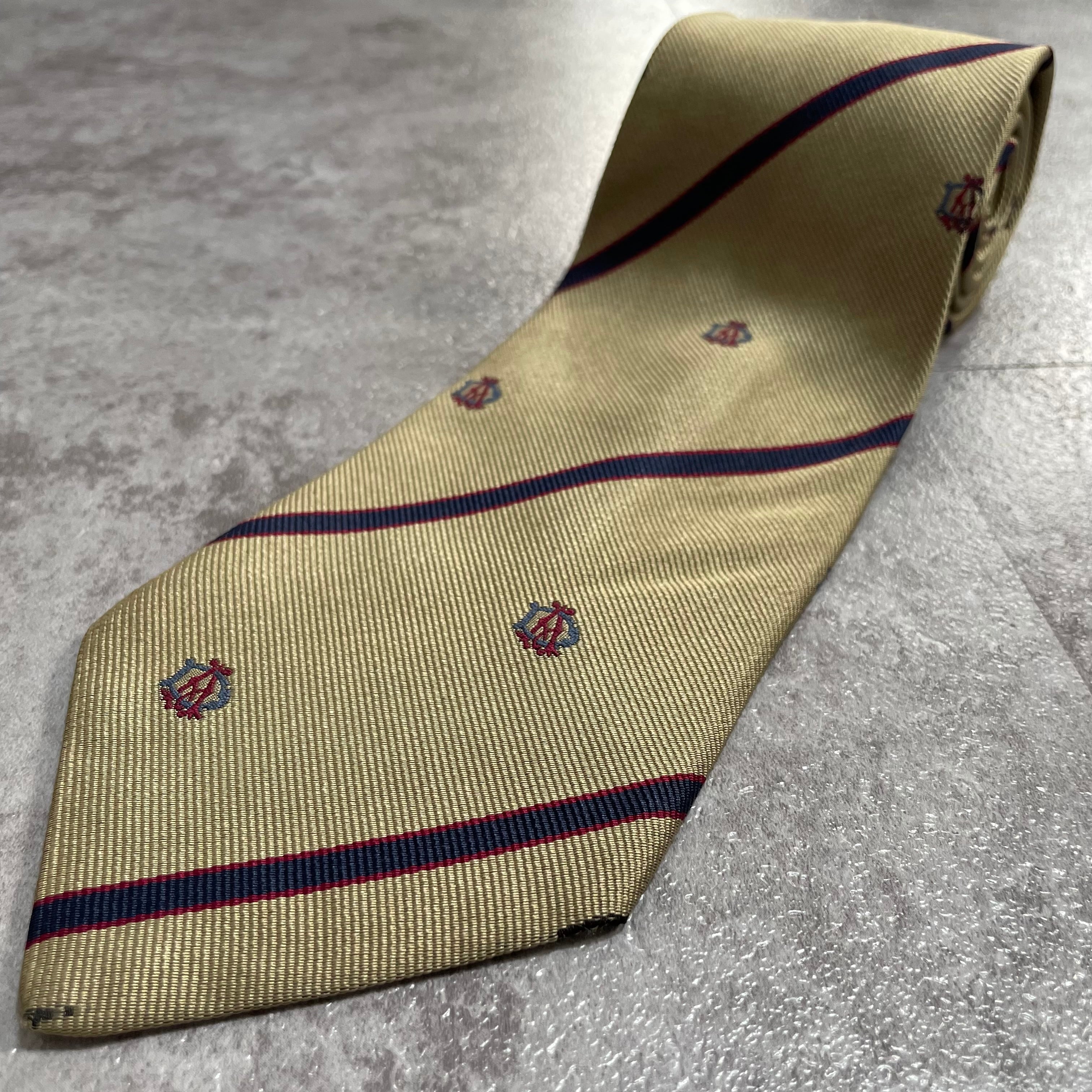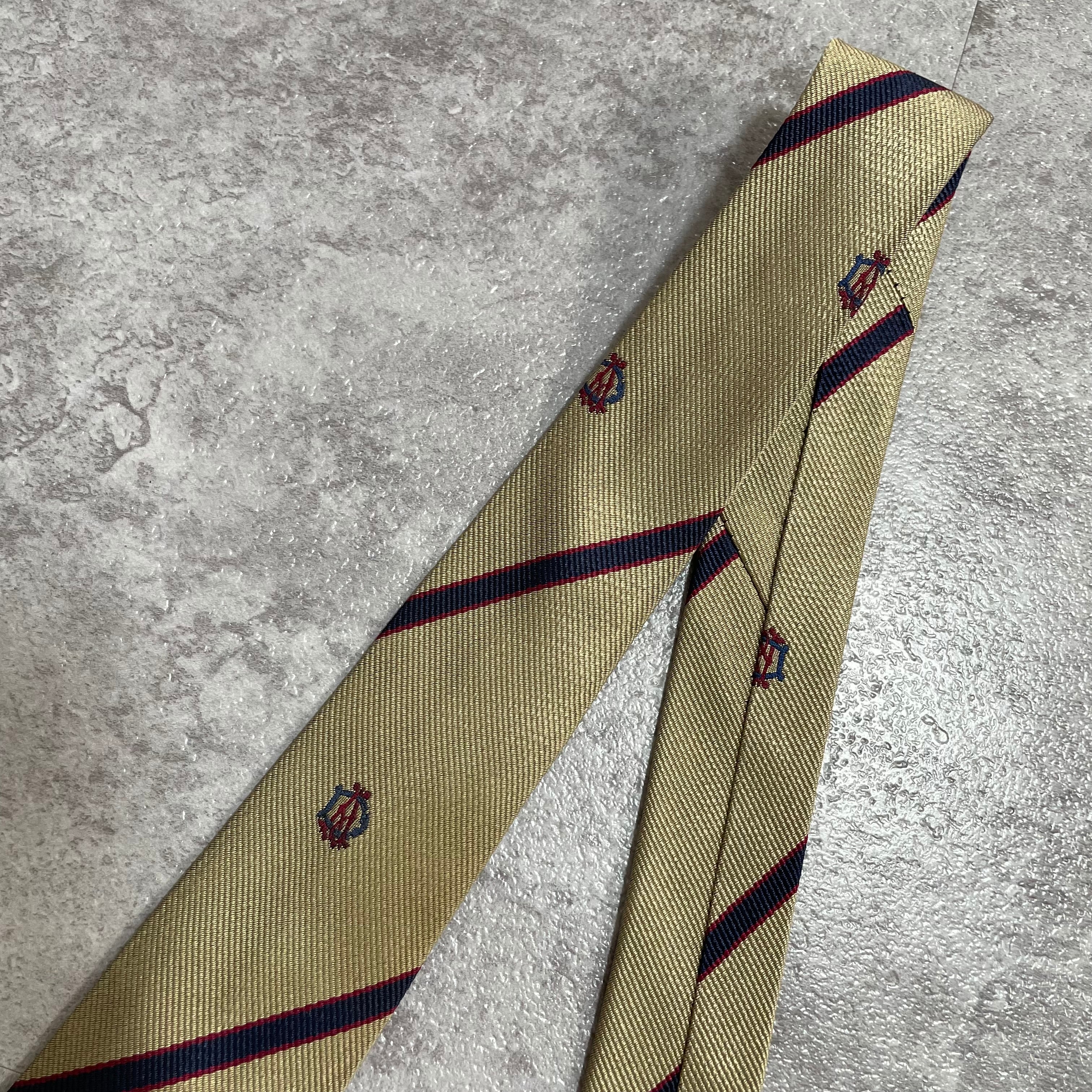 【dunhill】レジメンタルストライプネクタイ ビジネス向け ゴールド 金 光沢 DAロゴ入り 慶事にも