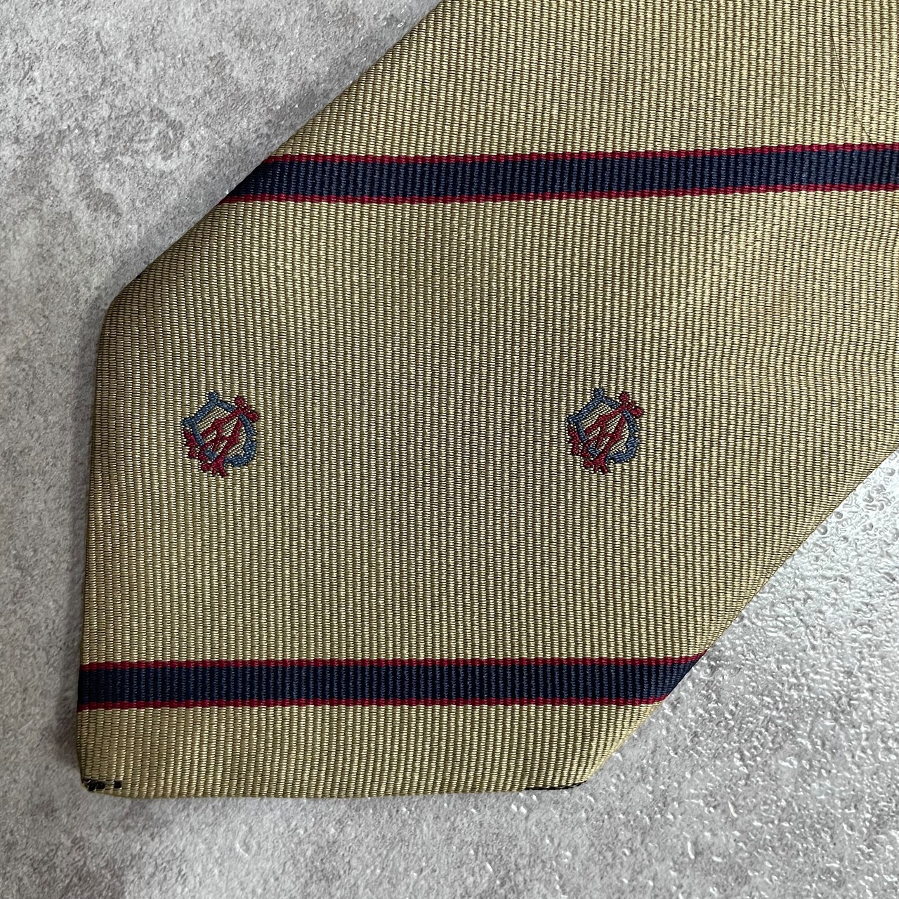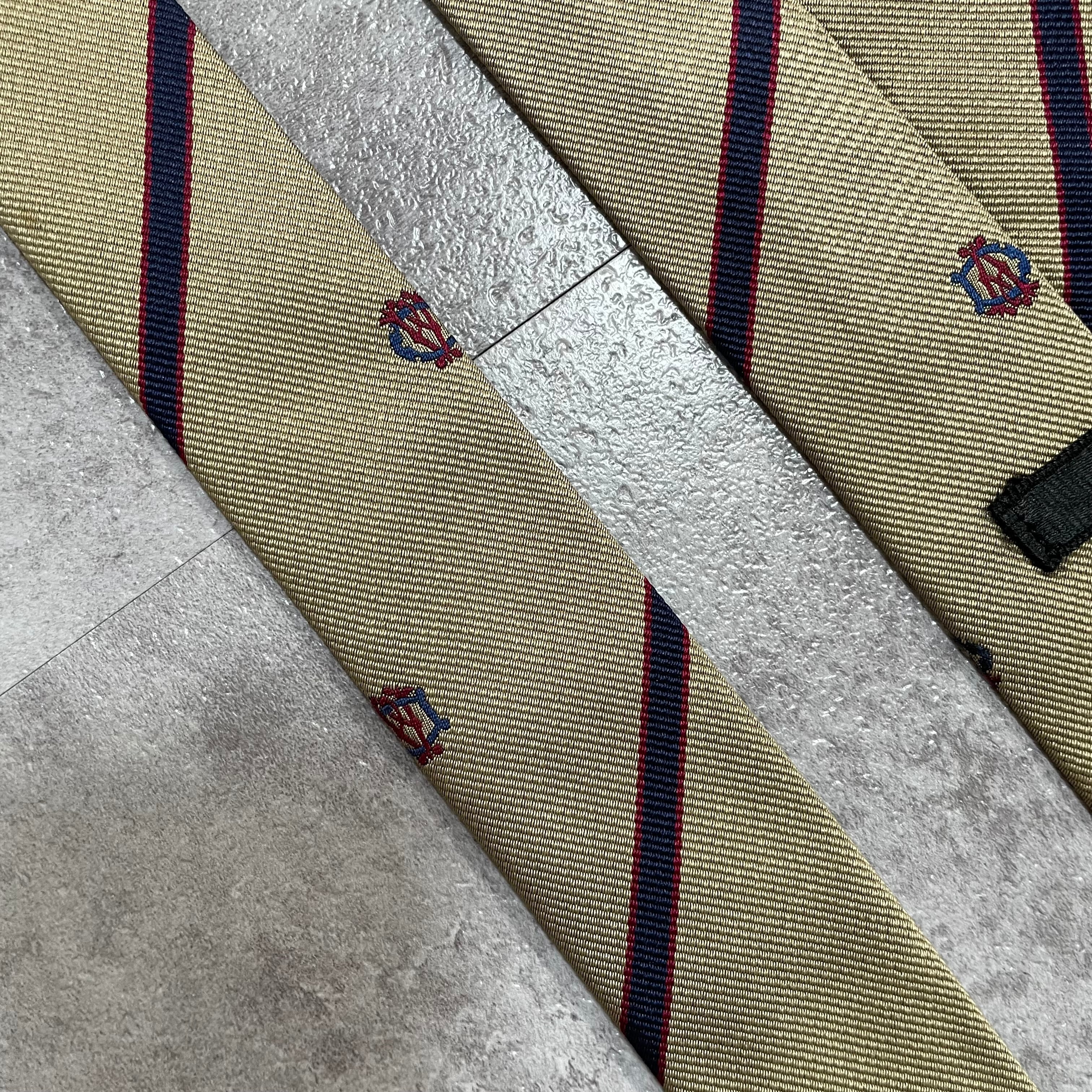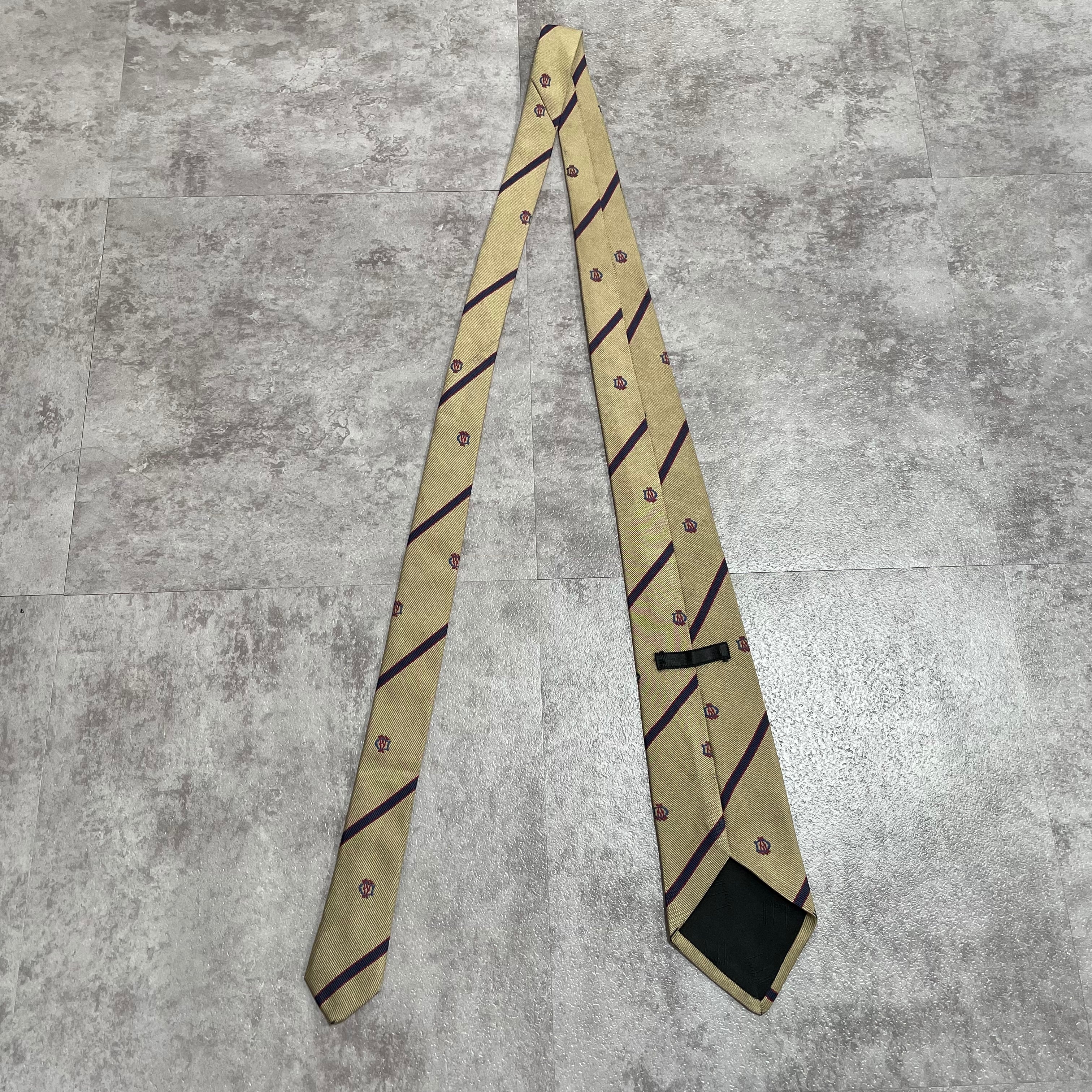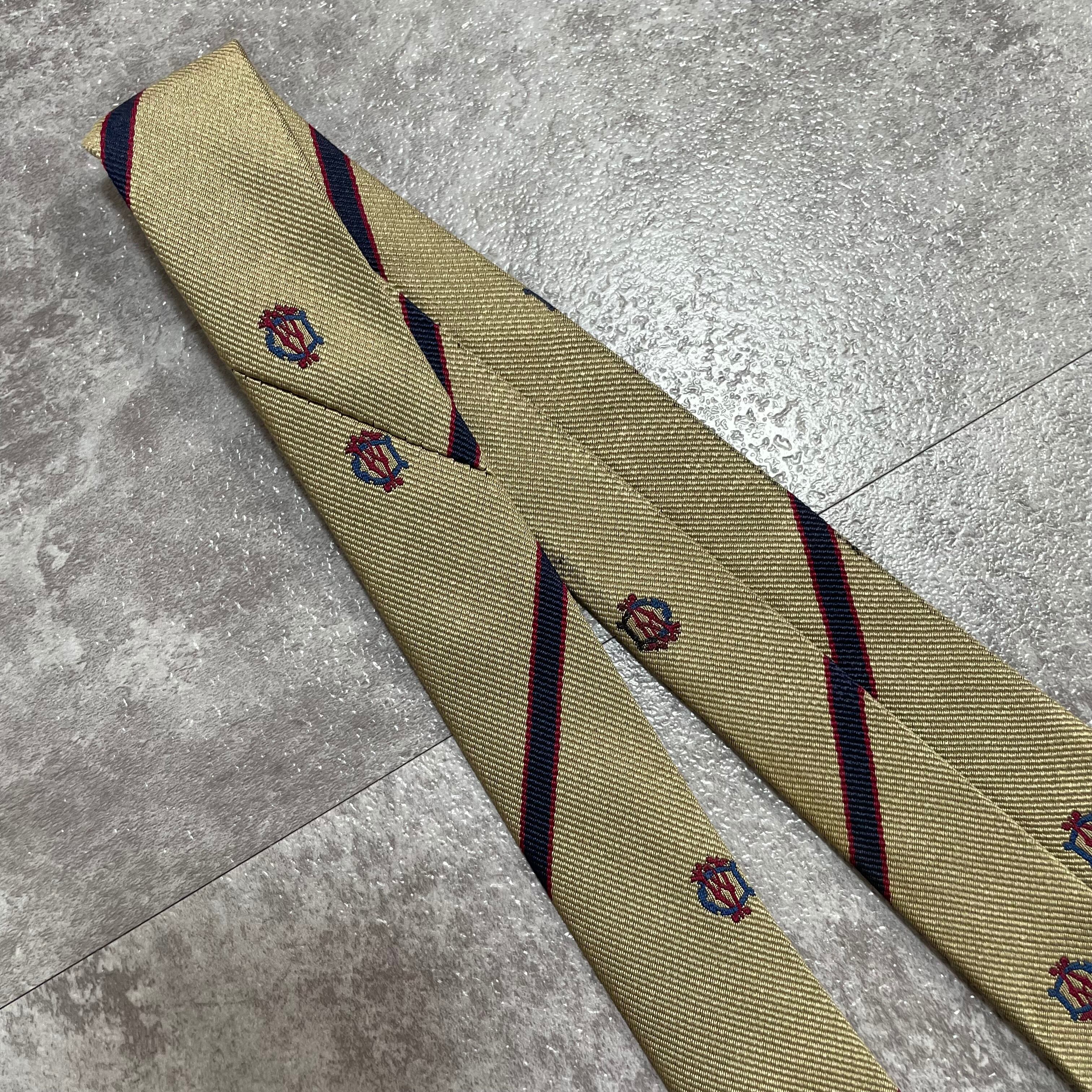 【dunhill】レジメンタルストライプネクタイ ビジネス向け ゴールド 金 光沢 DAロゴ入り 慶事にも