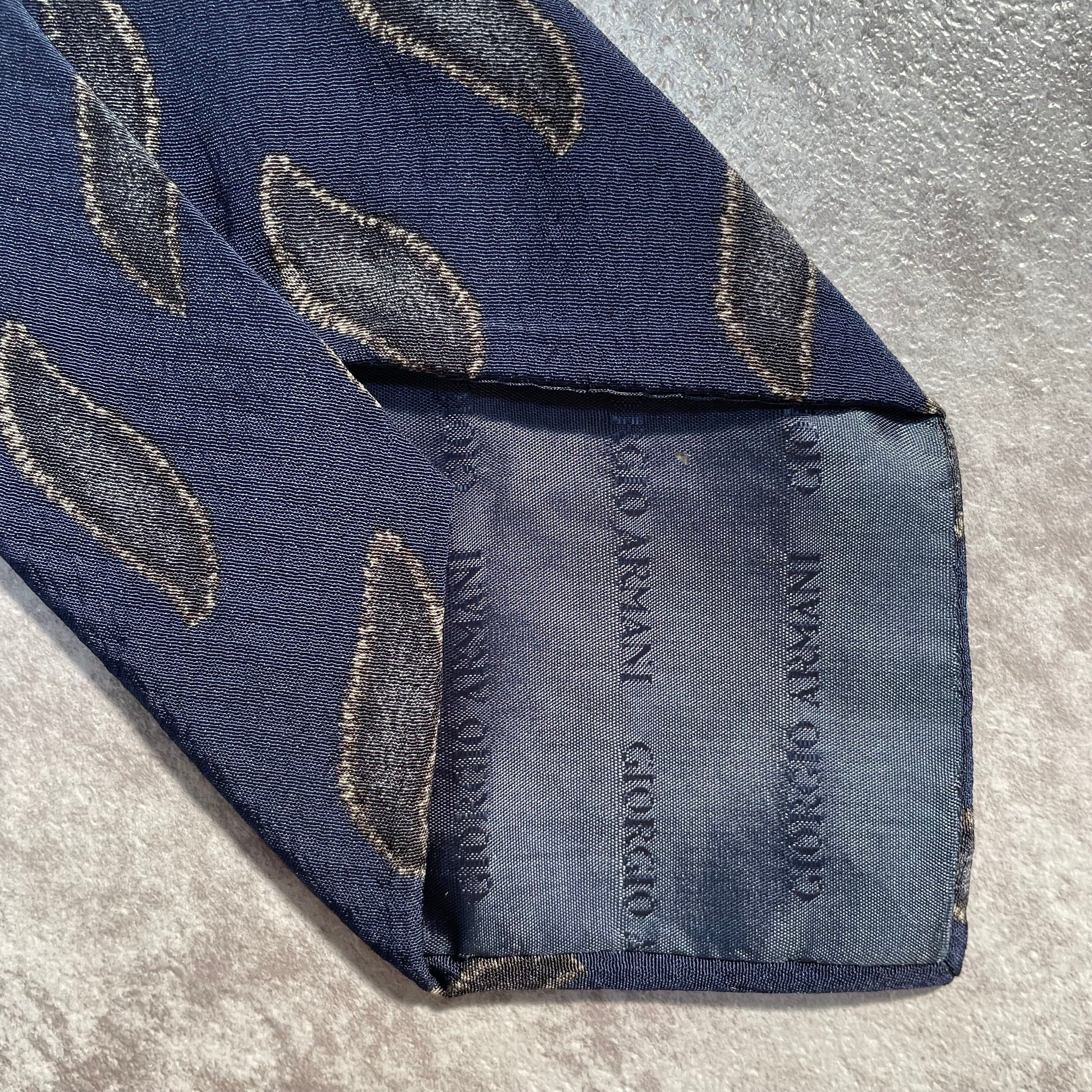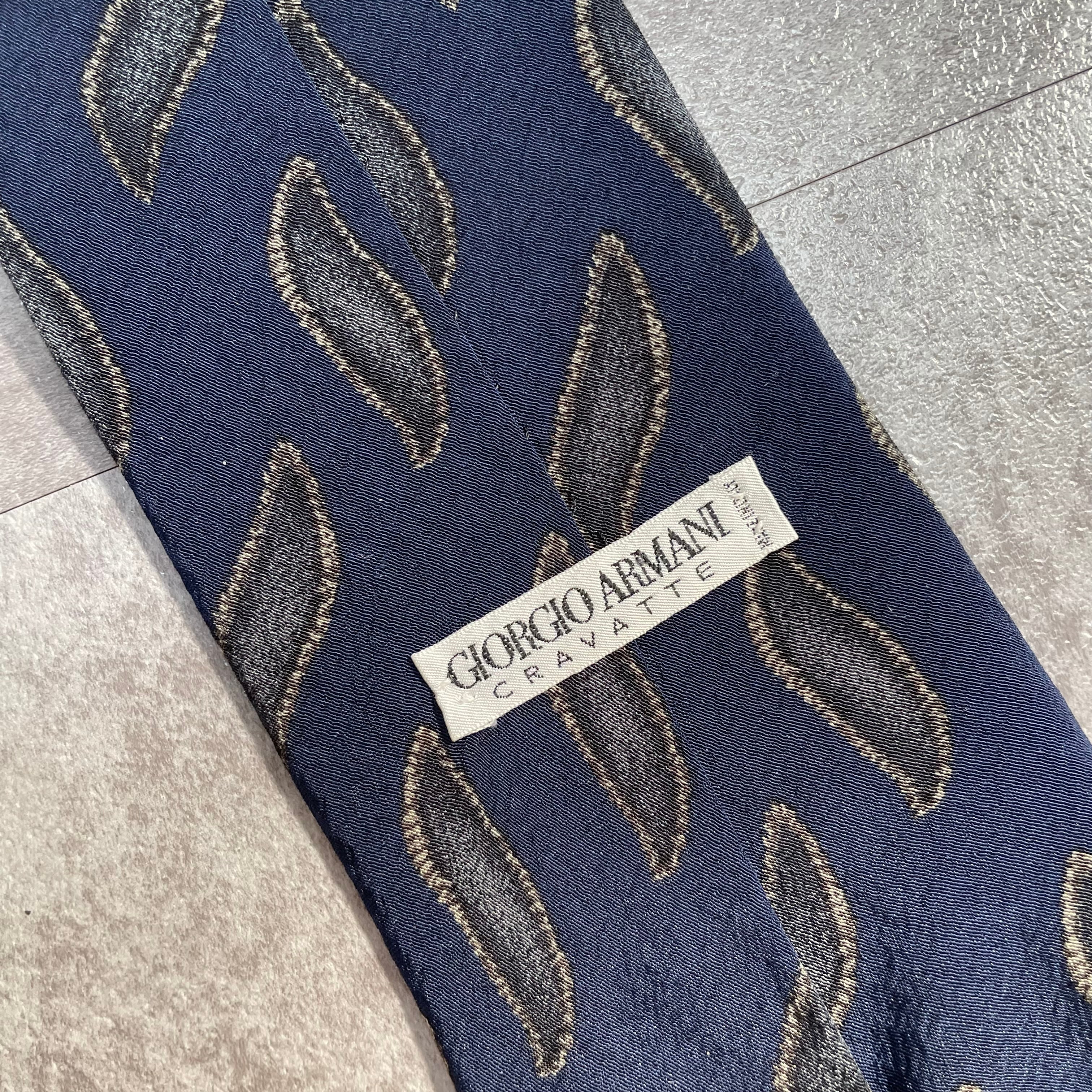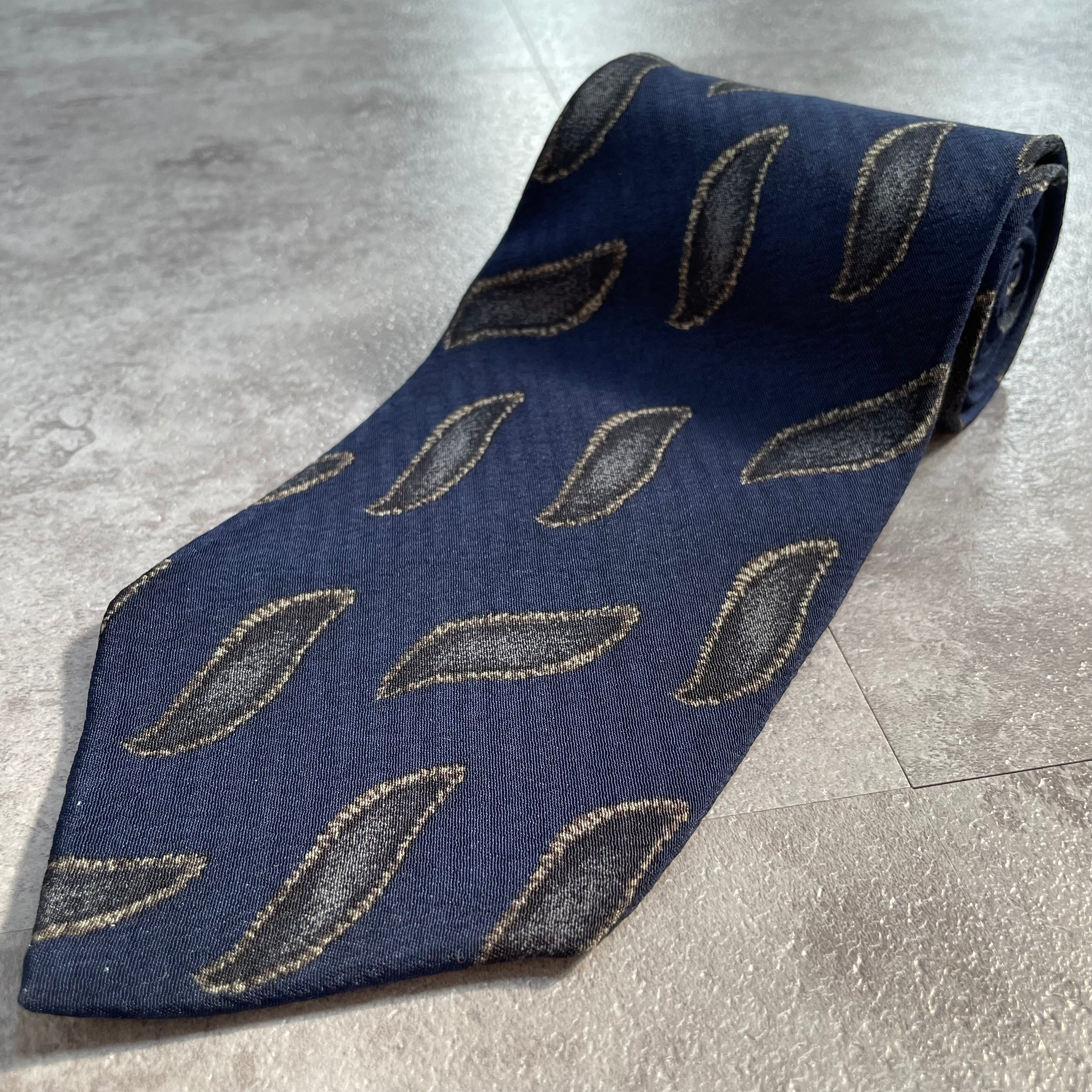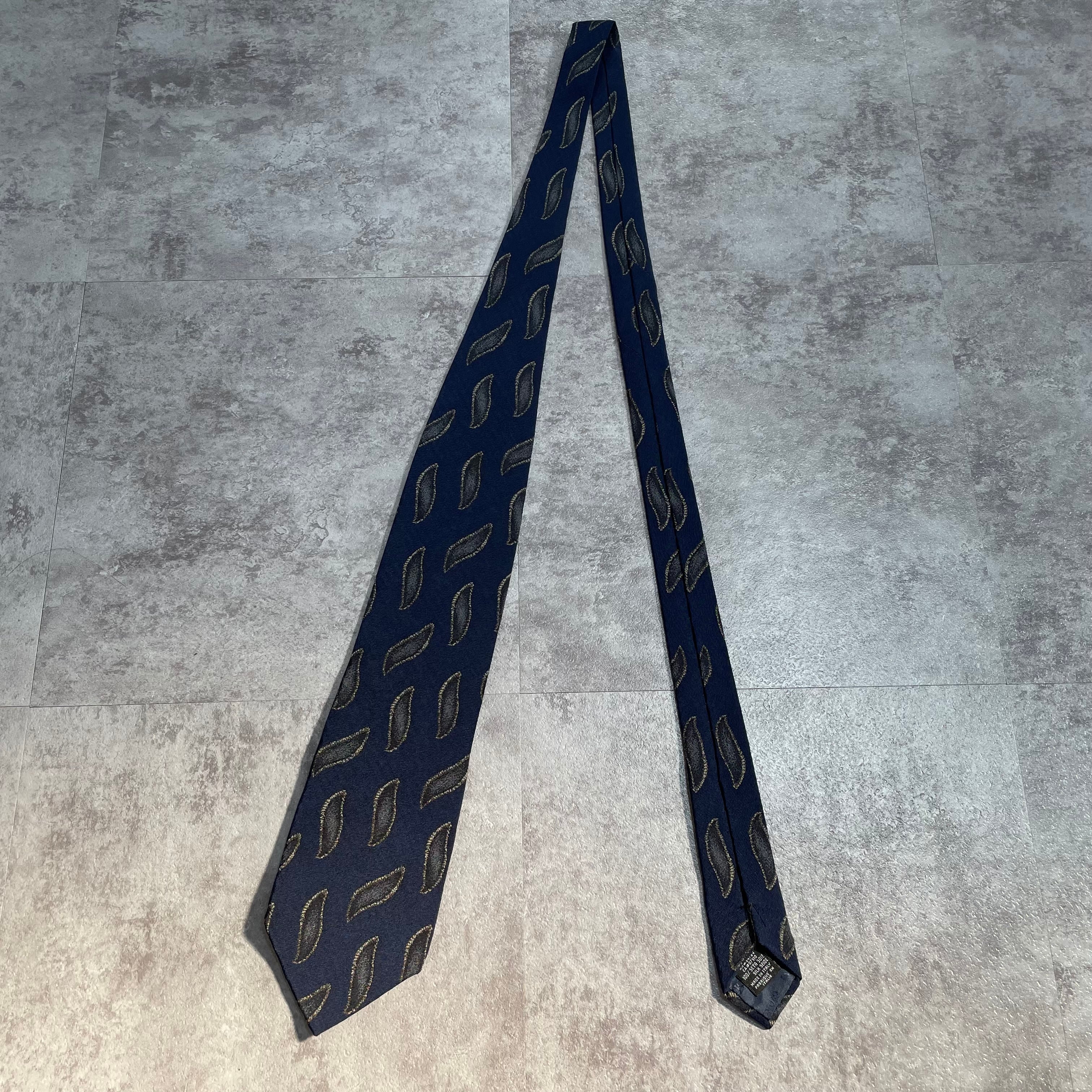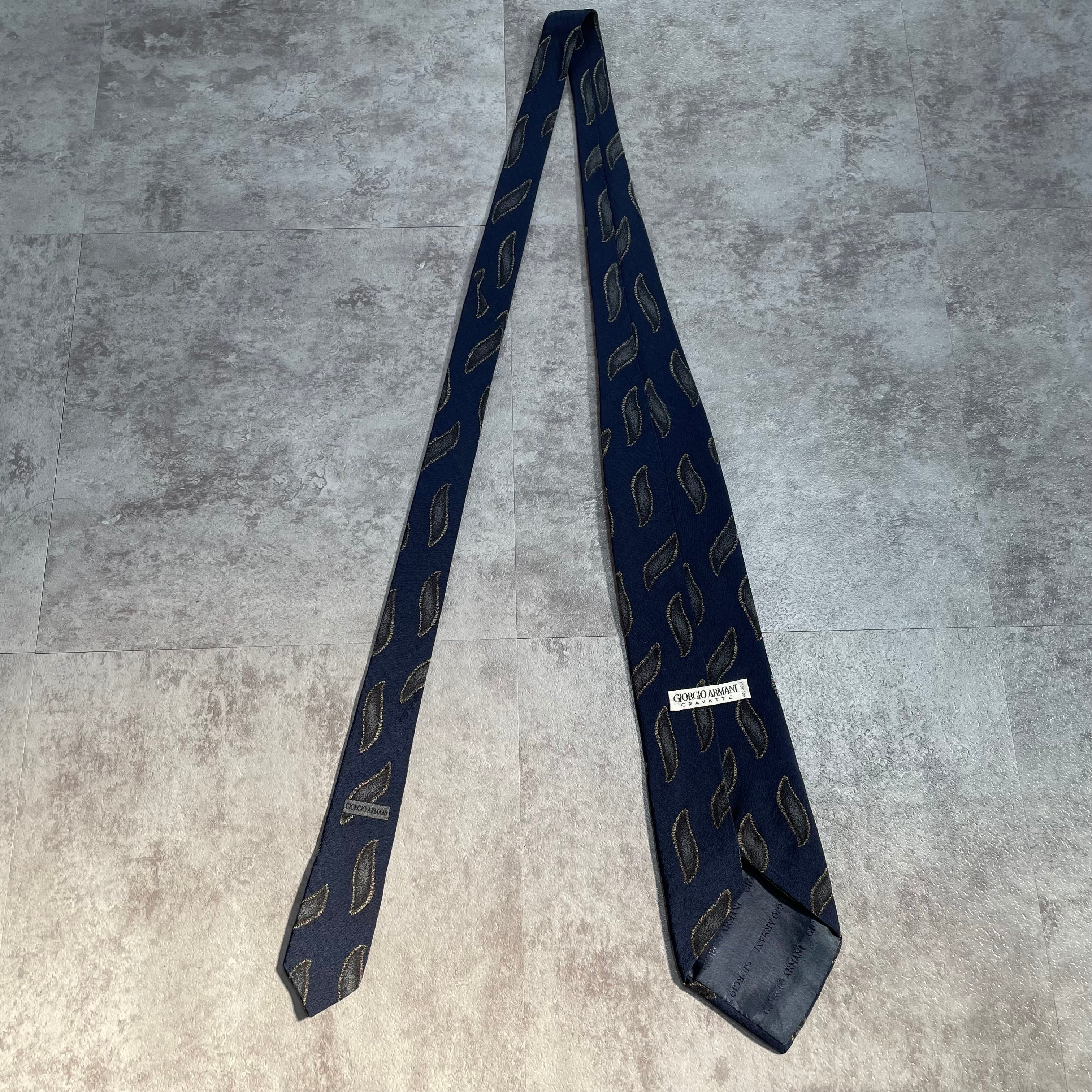 【GIORGIO ARMANI】アート柄ネクタイ ネイビー 紺色 ビジネス向け ジョルジオアルマーニ 波線