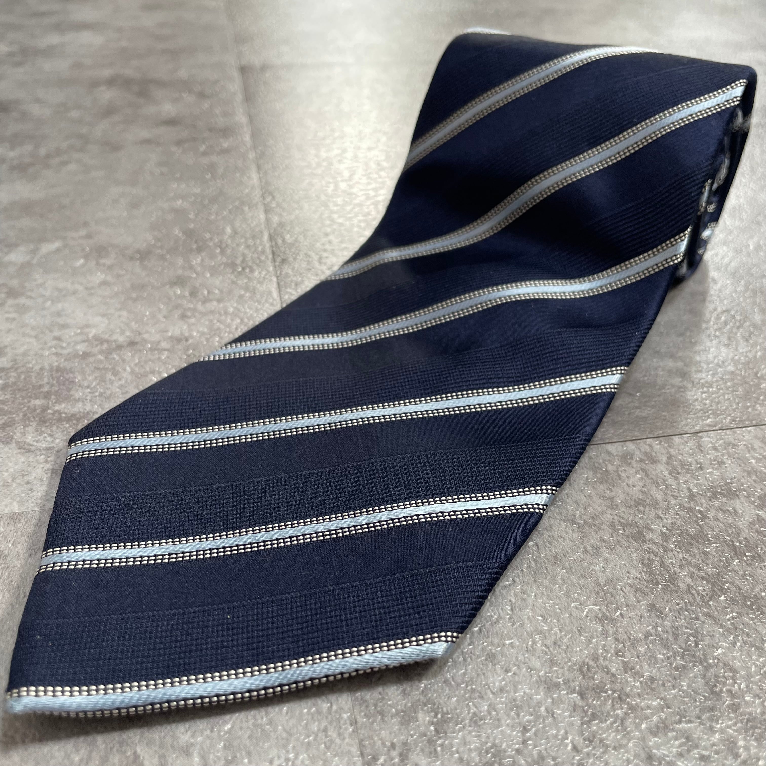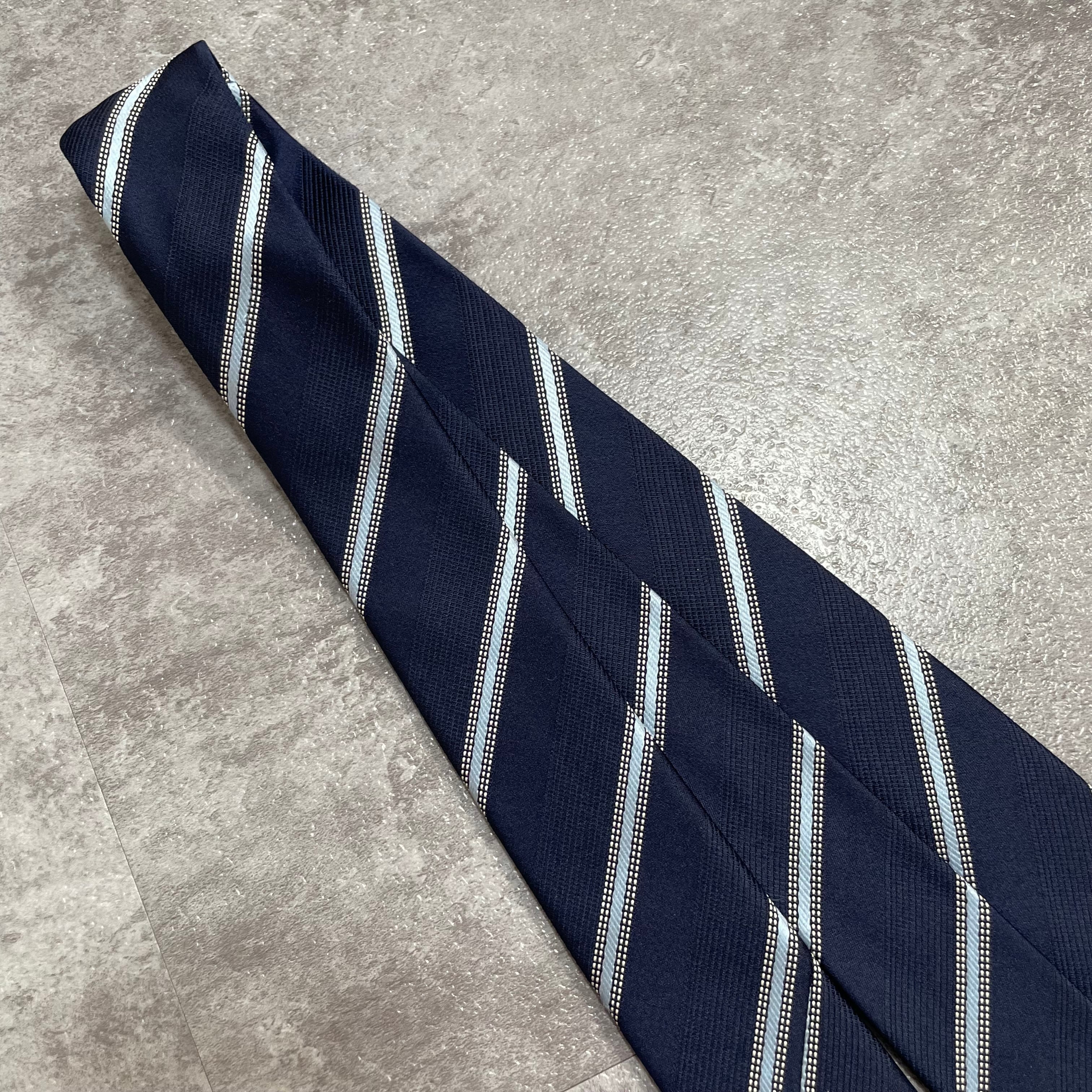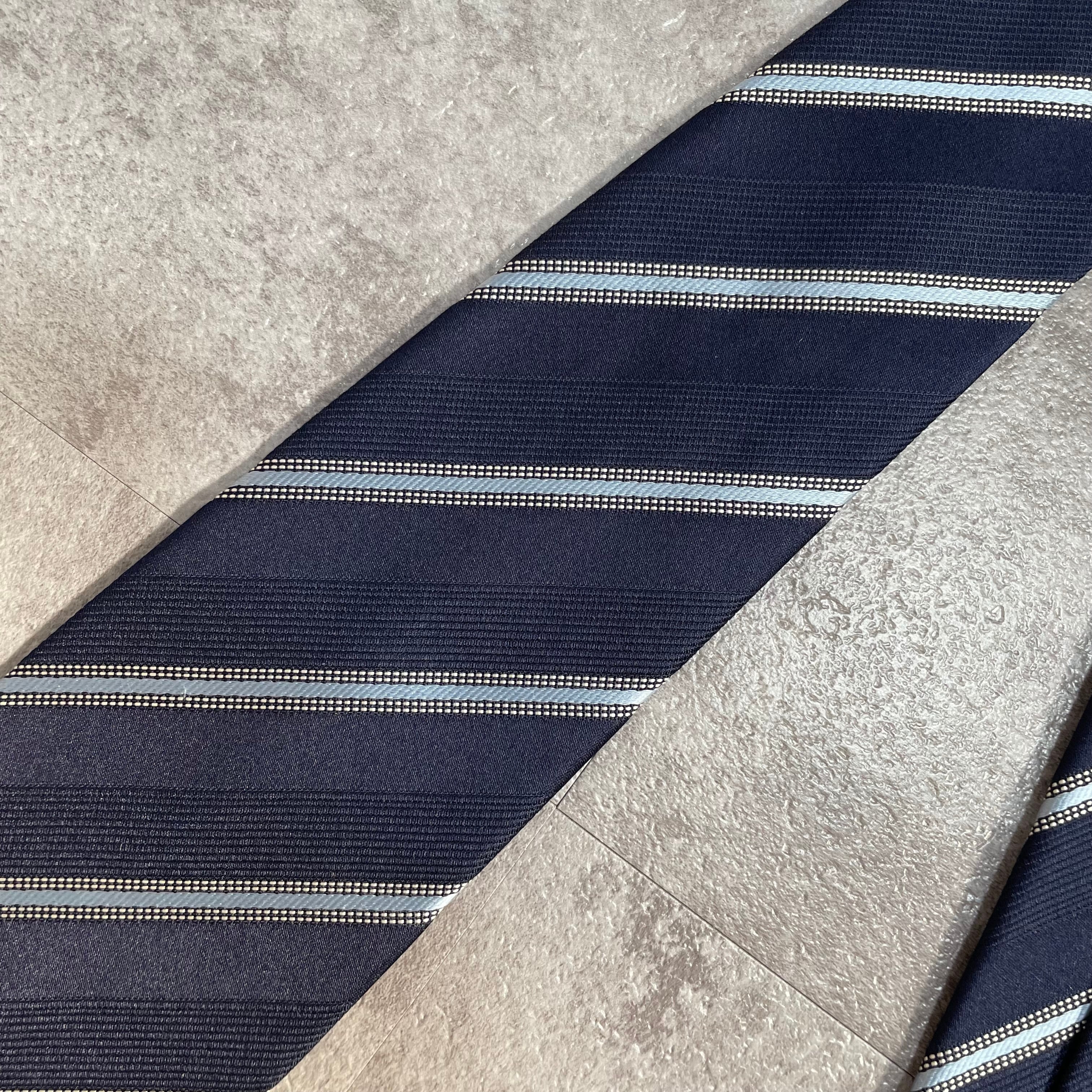 【ストライプ】レジメンタルストライプネクタイ ビジネス向け バイカラー ネイビー 紺色 光沢 シンプル