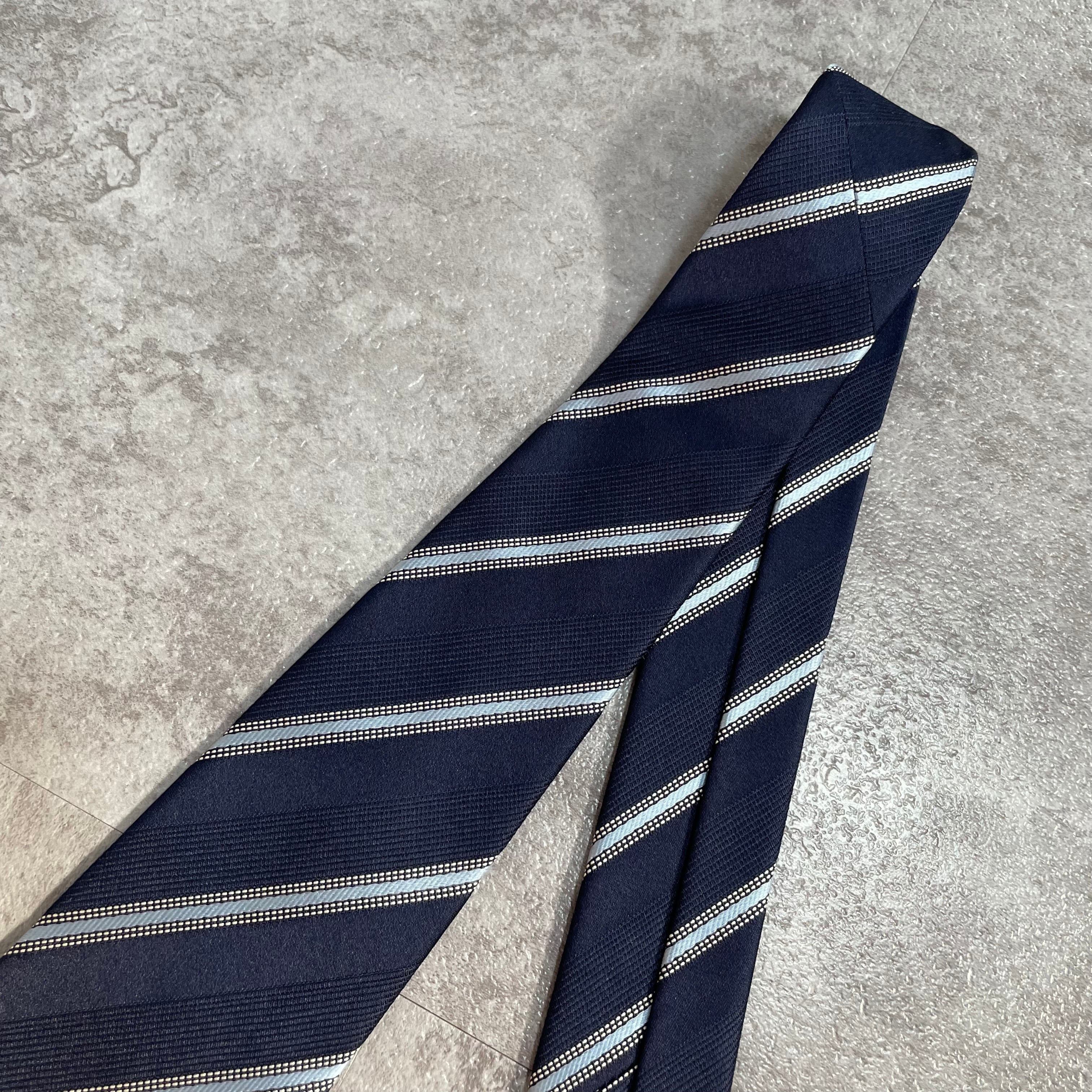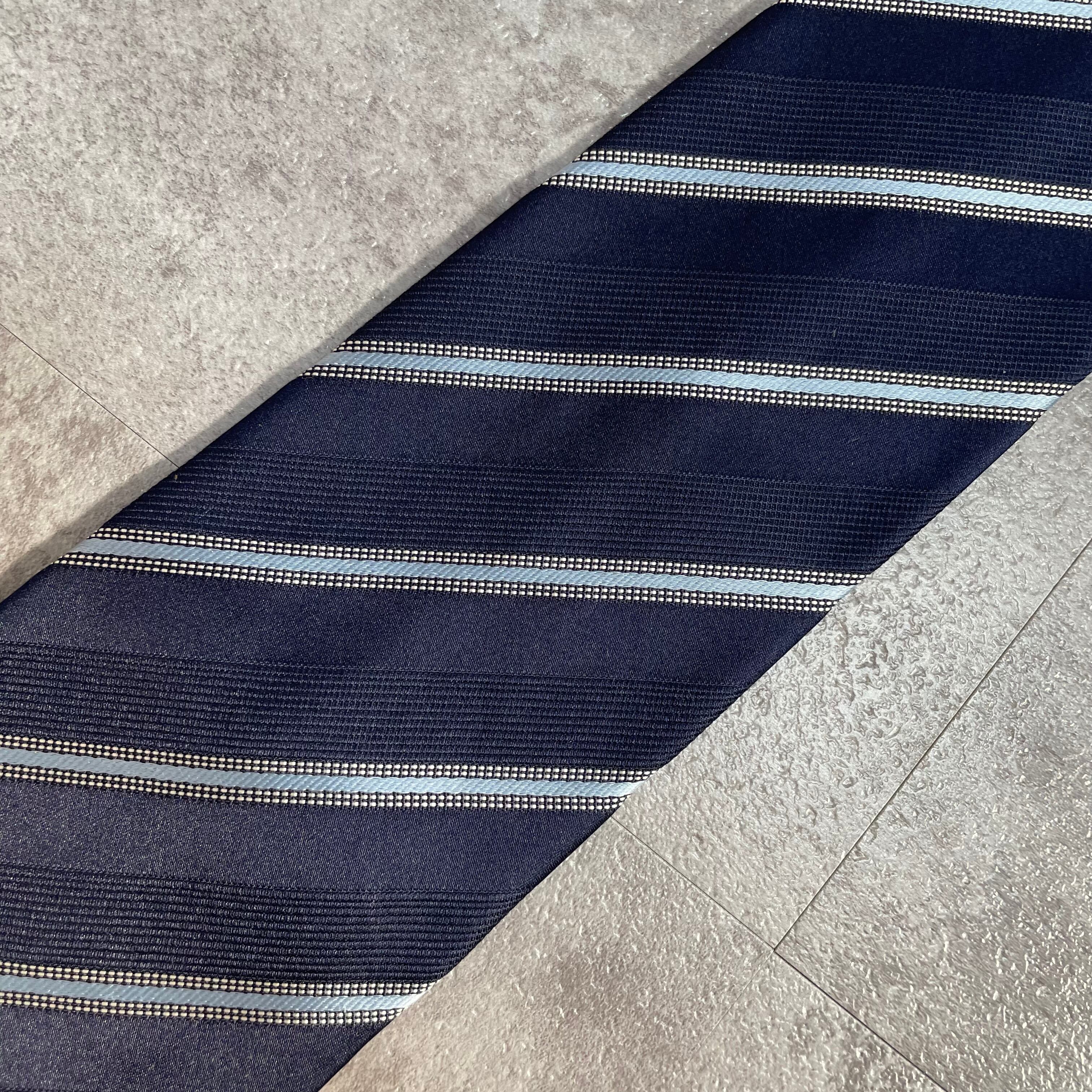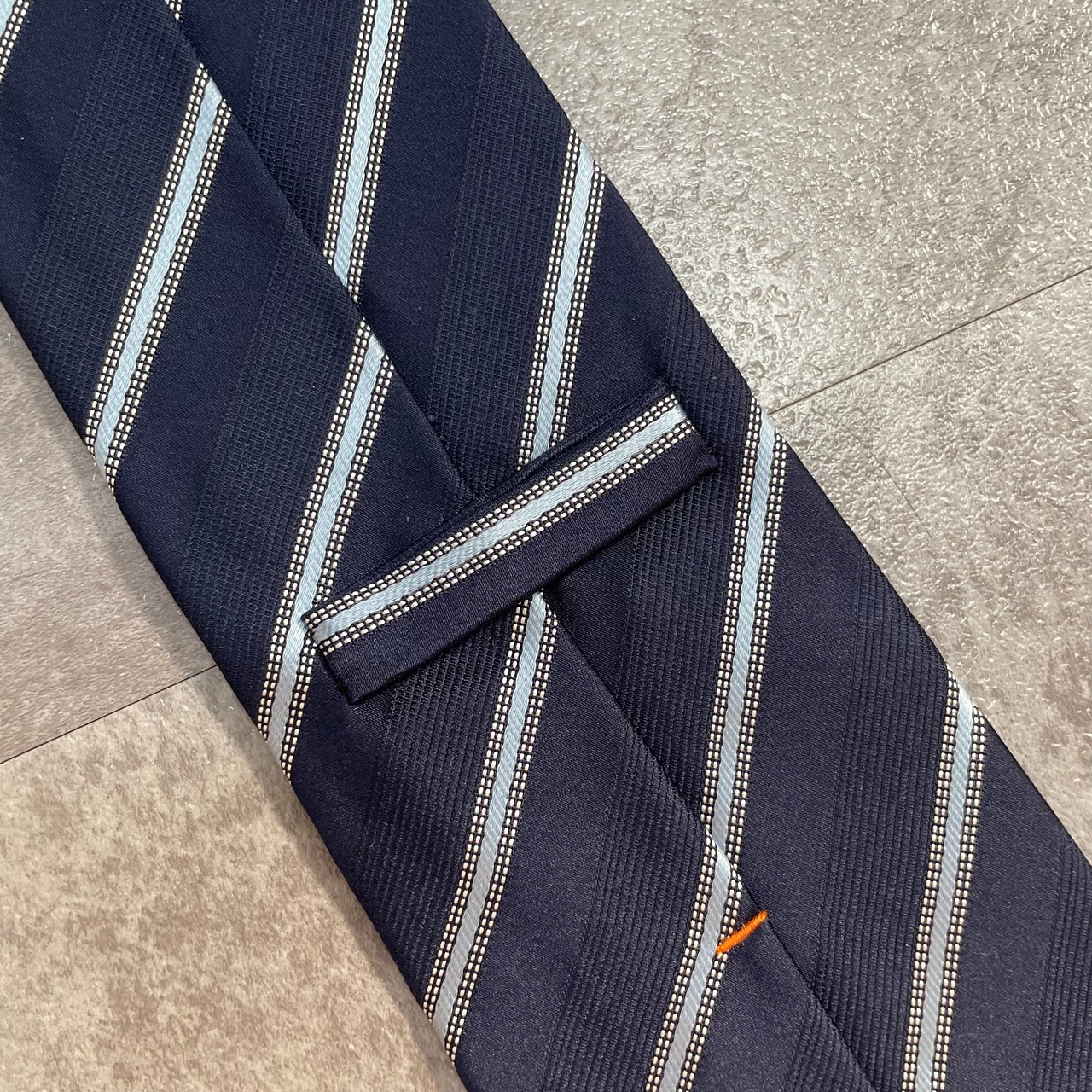 【ストライプ】レジメンタルストライプネクタイ ビジネス向け バイカラー ネイビー 紺色 光沢 シンプル