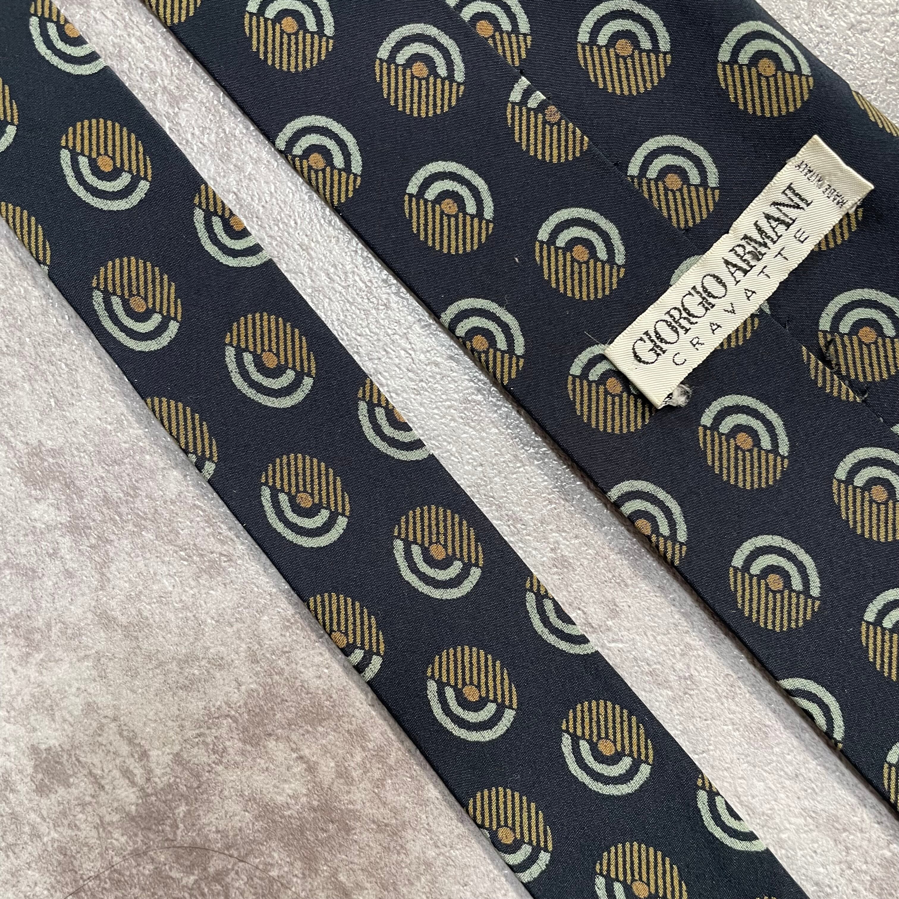 【GIORGIO ARMANI】特殊ドット柄ネクタイ 渦巻き ブラック 黒 ジョルジオアルマーニ ビジネス向け 和柄