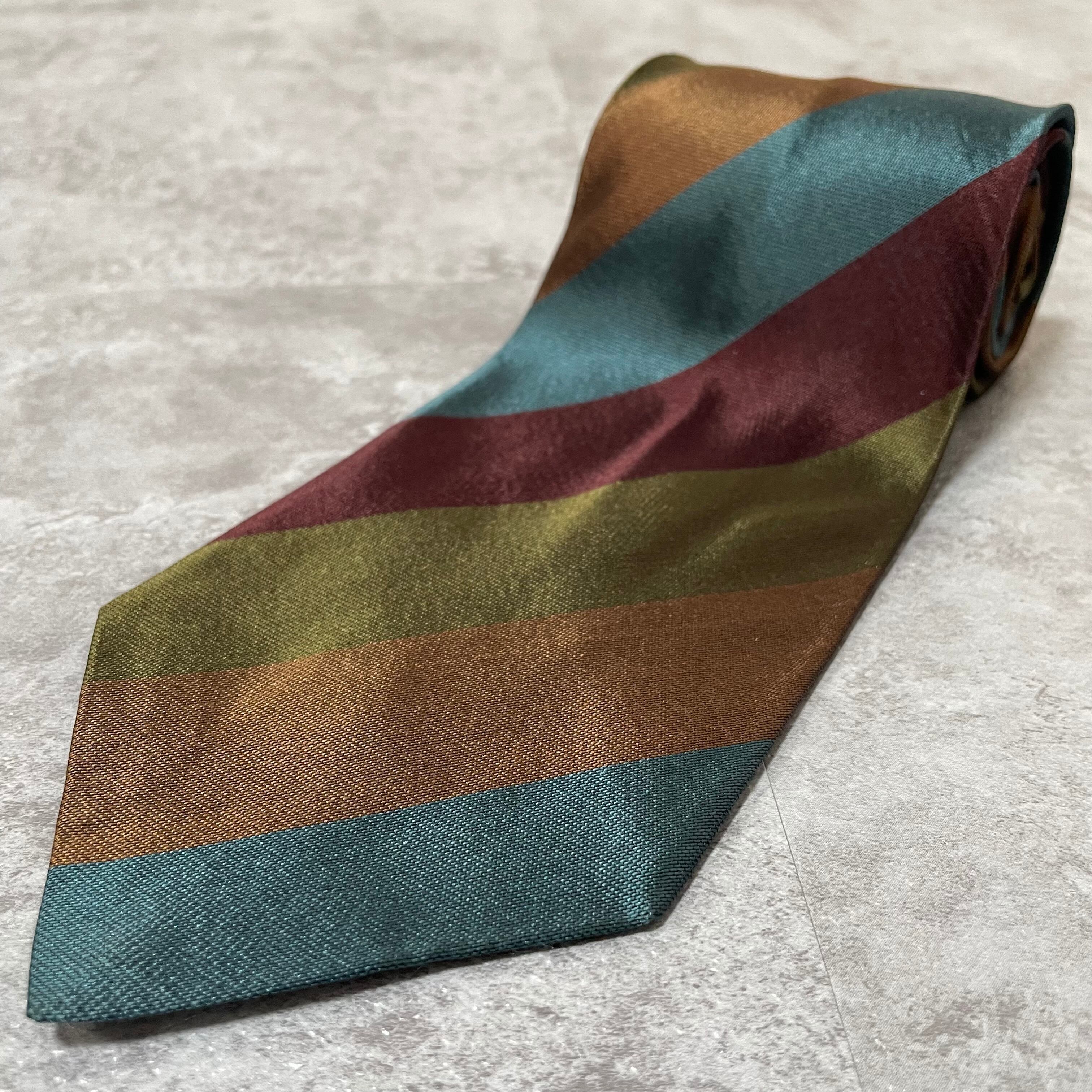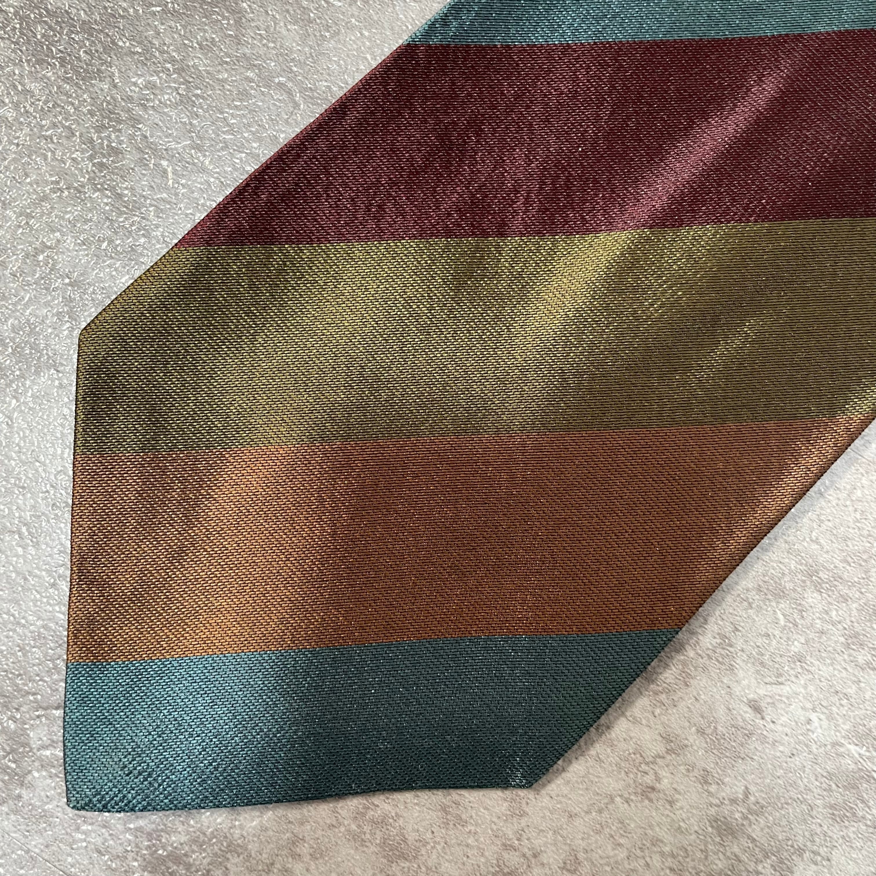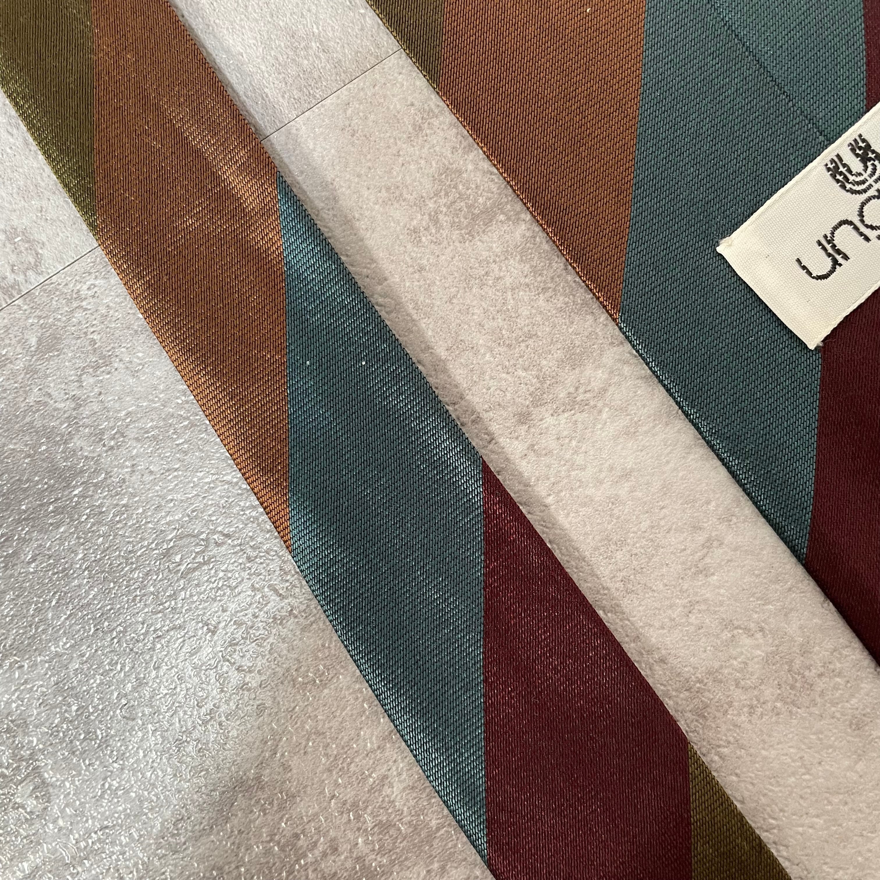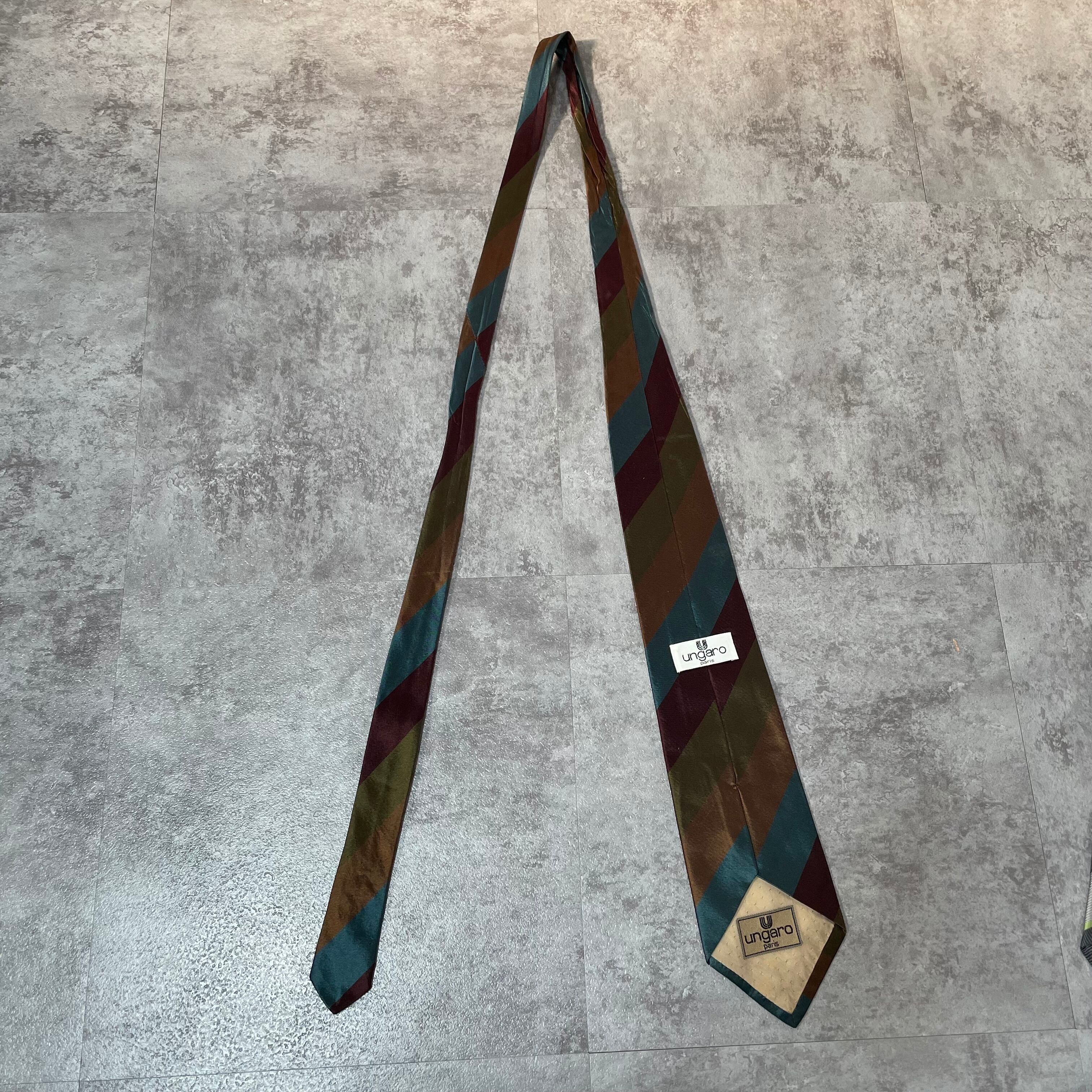【ungaro】レジメンタルストライプネクタイ ビジネス向け マルチカラー ブルー オレンジ カーキ パープル 青橙緑紫 光沢 ウンガロ