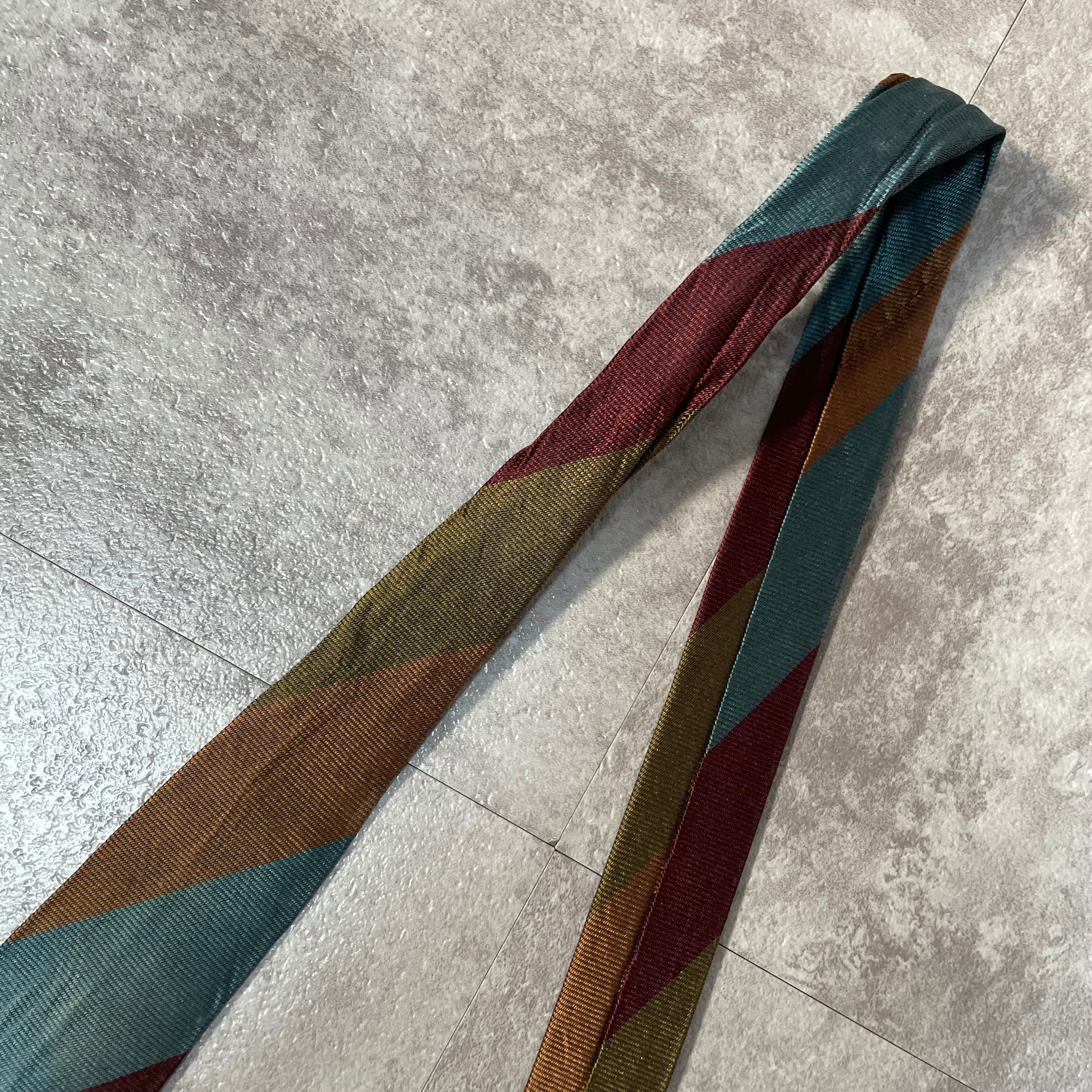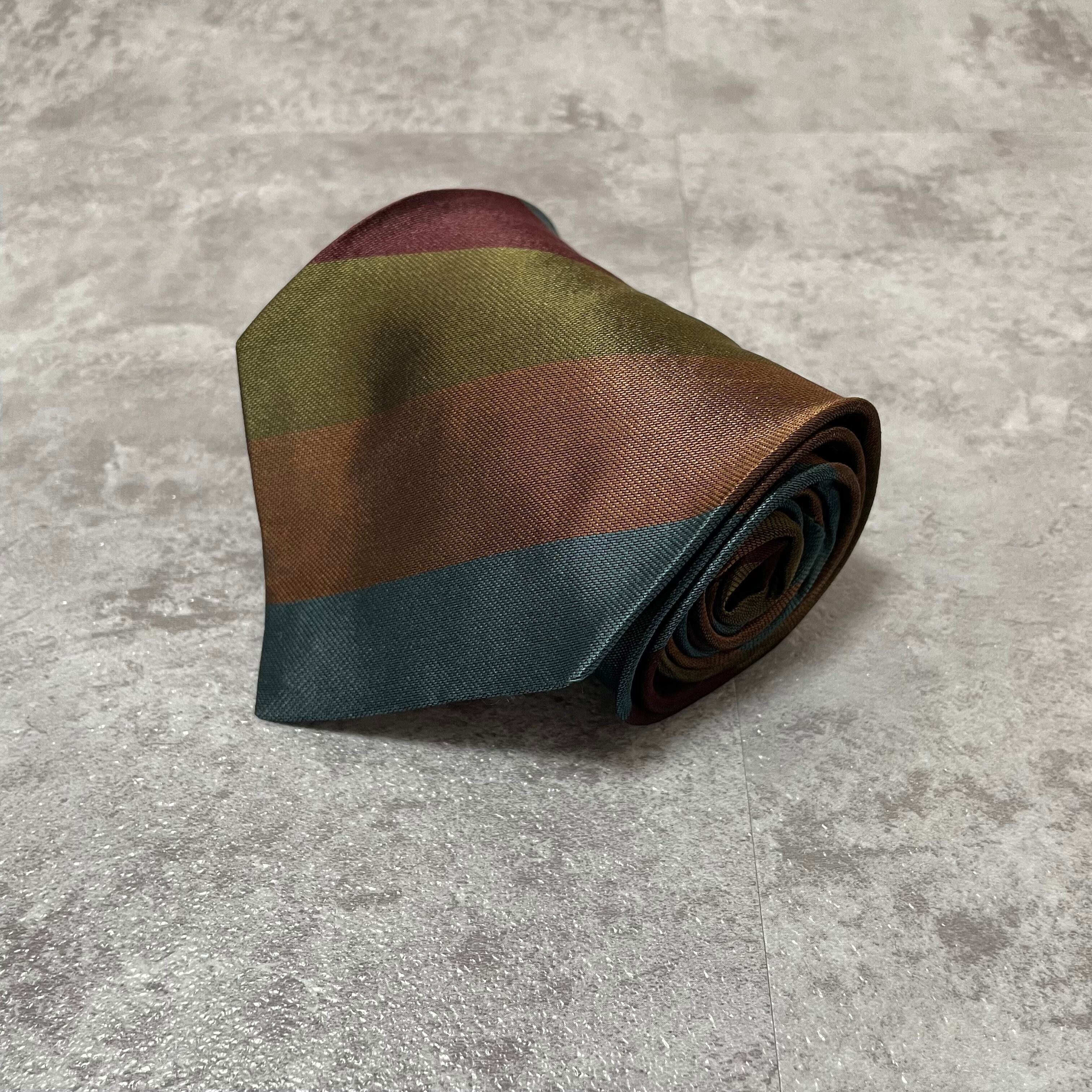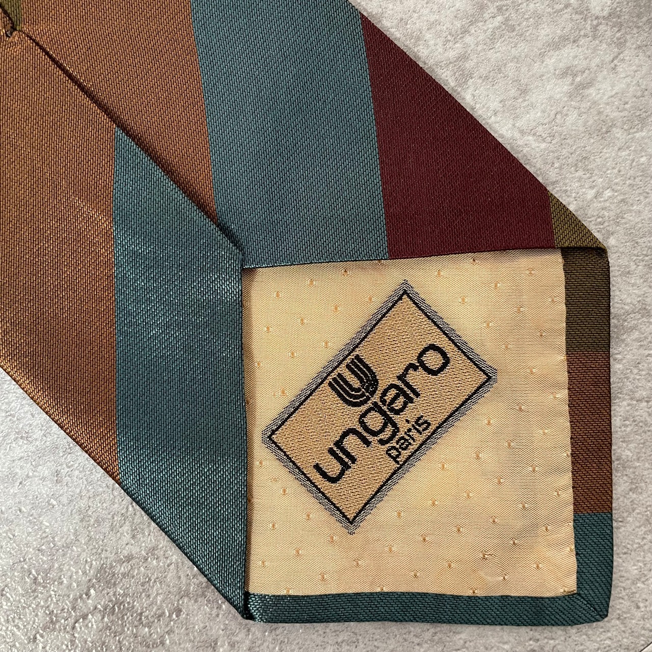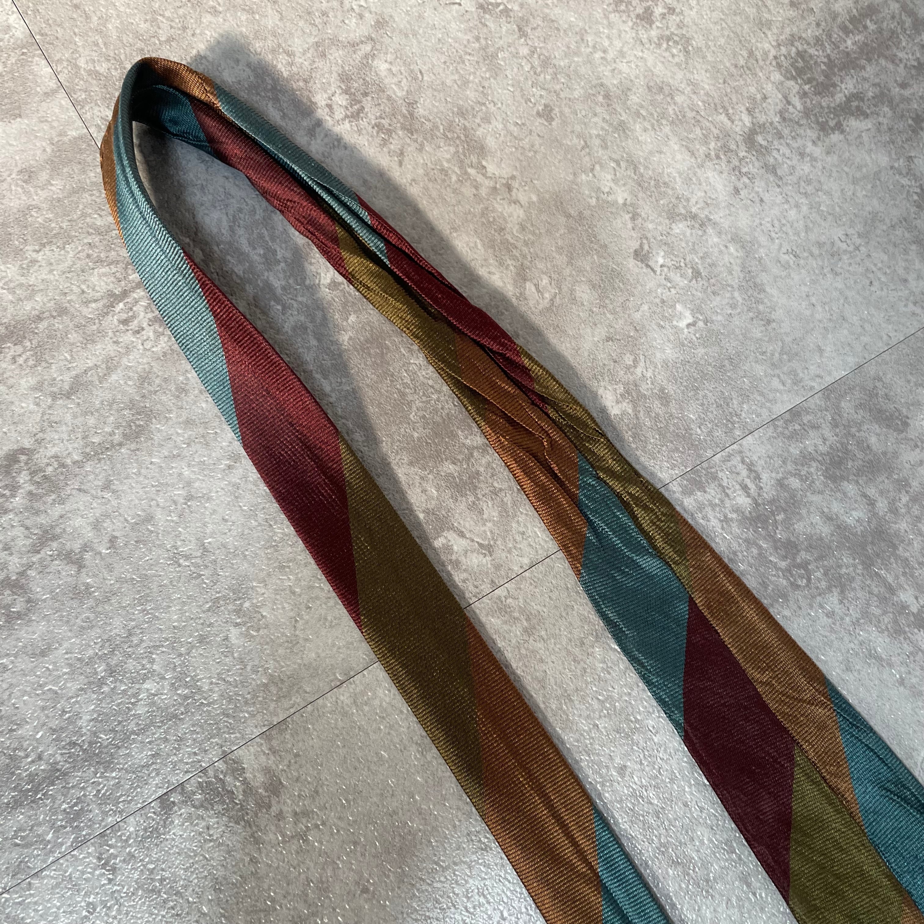 【ungaro】レジメンタルストライプネクタイ ビジネス向け マルチカラー ブルー オレンジ カーキ パープル 青橙緑紫 光沢 ウンガロ